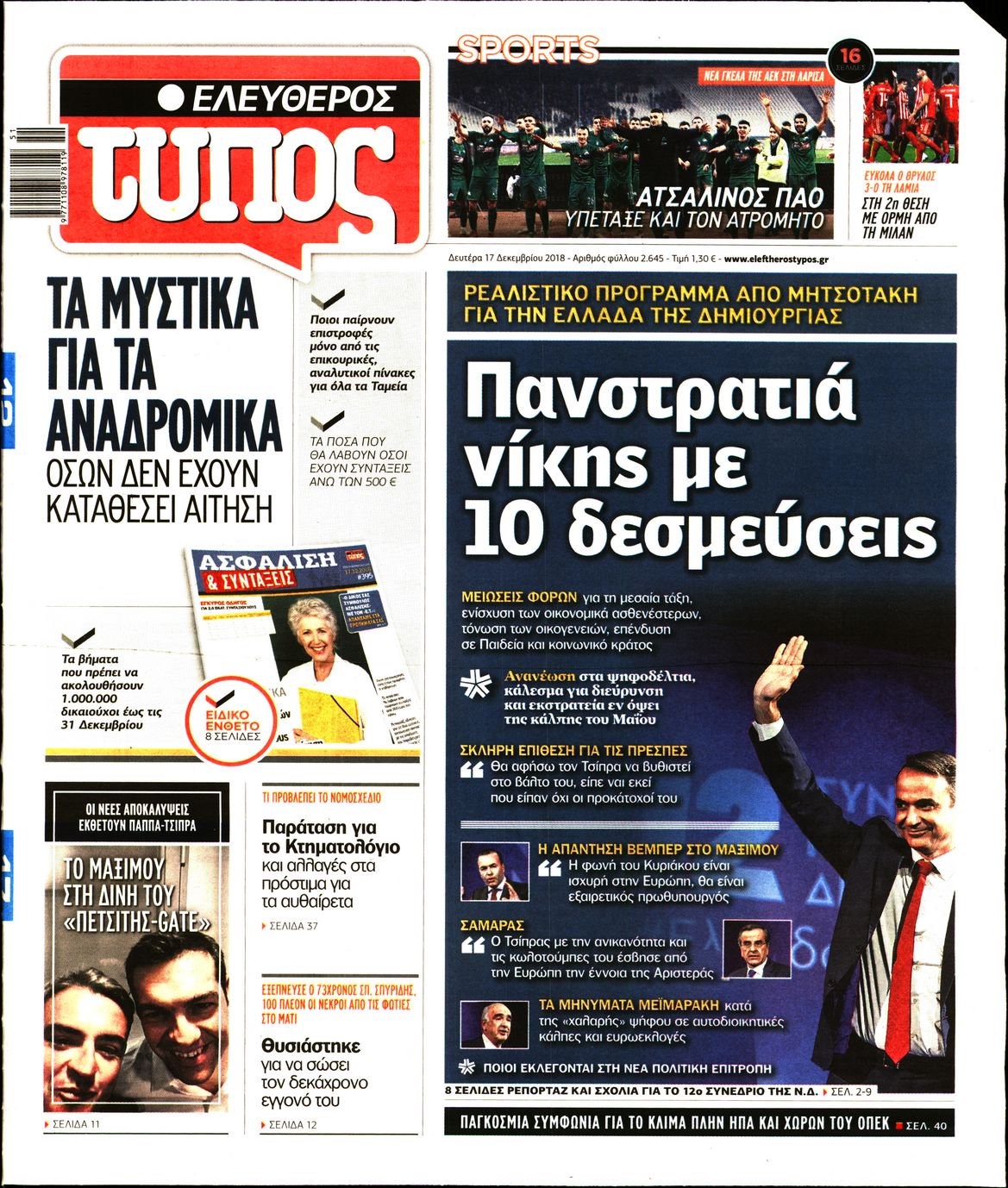 Οι πολιτικές εφημερίδες 17/12/18 Enikos Newsroom 06:21, Δευτέρα 17 Δεκεμβρίου 2018 Media Διαβάστε τα πρωτοσέλιδα: ΠΟΛΙΤΙΚΕΣ ΕΦΗΜΕΡΙΔΕΣ ΠΡΩΤΟΣΕΛΙΔΑ Μοιράσου το: σχολίασε κι εσύ (0 σχόλια) Ακολουθήστε το enikos.gr στο Google News και μάθετε πρώτοι όλες τις ειδήσεις Δείτε όλες τις τελευταίες ειδήσεις από την Ελλάδα και τον Κόσμο στο enikos.gr Ειδήσεις Ροή Ειδήσεων 27 λεπτά πριν Τσιάρας προς αγρότες: Τα μπλόκα και τα πείσματα δεν ωφελούν – Οι λύσεις περνούν μέσα από τον διάλογο 1 ώρα πριν Αρχεία Έπσταϊν: Οι συγκλονιστικές φωτογραφίες – Ο Μάικλ Τζάκσον, ο Μικ Τζάγκερ και ο Κέβιν Σπέισι ανάμεσα στους διάσημους που απεικονίζονται 3 ώρες πριν Νέες ταυτότητες: Μεγάλη αναμονή για ραντεβού στην Αττική – Τέλος τα ταξίδια εκτός Ελλάδος από τον Αύγουστο για όσους δεν έχουν αλλάξει 2 ώρες πριν Ινδία: Επτά ελέφαντες σκοτώθηκαν κατά τη σύγκρουση επιβατικού τρένου με κοπάδι 3 ώρες πριν Συνελήφθη οδηγός μηχανής που έτρεχε με 161 χλμ στη Συγγρού – Τον έπιασε το ραντάρ της Τροχαίας 4 ώρες πριν Μία νέα «χρυσή» περίοδος αρχίζει για 3 ζώδια από σήμερα – «Μία αναπάντεχη ευκαιρία οδηγεί στην επιτυχία» 5 ώρες πριν Αγχώνεται για το χριστουγεννιάτικο δώρο που πήρε στην πλούσια σύντροφό του – «Φοβάμαι πως θα το βρει φθηνιάρικο, φοράει βραχιόλια Cartier» 2 ώρες πριν Διαιτολόγος αποκαλύπτει 9 πρωινές συνήθειες που «λιώνουν» το κοιλιακό λίπος – «Υποστηρίζουν την υγιεινή απώλεια βάρους» 3 ώρες πριν Οι 7 φράσεις που δεν λένε ποτέ οι συναισθηματικά έξυπνοι άνθρωποι κατά τη διάρκεια ενός καβγά 10 λεπτά πριν Πάτρα: Πέθανε 46χρονος έπειτα από λιποθυμικό επεισόδιο στο σπίτι του 18 λεπτά πριν «Μεγάλη Χίμαιρα»: Πότε κάνει πρεμιέρα η σειρά 26 λεπτά πριν Καλλιθέα: Έφοδος του «ελληνικού FBI» σε δύο καταστήματα stripshow – 5 συλλήψεις – Βίντεο 27 λεπτά πριν Τσιάρας προς αγρότες: Τα μπλόκα και τα πείσματα δεν ωφελούν – Οι λύσεις περνούν μέσα από τον διάλογο 33 λεπτά πριν Μεσσηνία: Μαχαιριές έπειτα από καβγά για οικονομικές διαφορές στον Πολύλοφο – Συνελήφθη 40χρονος ENIKOS NETWORK Γήρανση του εγκεφάλου: Νευροεπιστήμονες ανακάλυψαν τη 10λεπτη δραστηριότητα που μπορεί να τη σταματήσει Είστε μόνιμα απρόσεκτοι; 3 σημάδια που δείχνουν ότι μπορεί να είναι σύμπτωμα πάθησης Χειμερινές εκπτώσεις 2026: Πρεμιέρα στις 12 Ιανουαρίου – Πόσο θα διαρκέσουν και τι πρέπει να γνωρίζουν οι καταναλωτές Χρήστος Δήμας: Στα 2,5 εκατ. ευρώ την ημέρα το κόστος από το άνοιγμα των διοδίων από τους αγρότες – Θα αξιώσουν αποζημίωση ... Χαρτογραφώντας το «σημείο χωρίς επιστροφή»: Για πρώτη φορά αποκαλύπτεται με λεπτομέρεια το ακανθώδες όριο της ατμόσφαιρας τ... Η Google καταργεί τη λειτουργία «dark web report» – Πώς θα μπορούν οι χρήστες να διαγράφουν τα δεδομένα τους περισσότερα 12:53 , Σάββατο 20 Δεκεμβρίου 2025 Να μ’ αγαπάς: Το παρελθόν έρχεται στο φως – Καταιγιστικές εξελίξεις στα τελευταία επεισόδια του 2025 Ο Άγγελος αποκαλύπτεται, η Φωτεινή ανησυχεί για τον Λευτέρη και η Ζωή έρχεται αντιμέτωπη με το... 11:41 , Σάββατο 20 Δεκεμβρίου 2025 «Η αγάπη δεν χάνεται ποτέ»: Η μικρού μήκους ταινία κινουμένων σχεδίων που θέτει ερωτήματα για τη ζωή και τον θάνατο Ο θάνατος είναι ένα από τα πιο σκληρά θέματα που καλείται να διαχειριστεί κάποιος στη διάρκεια... 09:30 , Σάββατο 20 Δεκεμβρίου 2025 «Porto Leone: Στη γειτονιά με τα κόκκινα φανάρια» – Ο Χρόνης αποκαλύπτει στην Αλεξάνδρα το μυστικό για το παιδί της Λένας Η μεγάλη δραματική σειρά του Apha «Porto Leone: Στη γειτονιά με τα κόκκινα φανάρια» μας μεταφέ... 08:14 , Σάββ