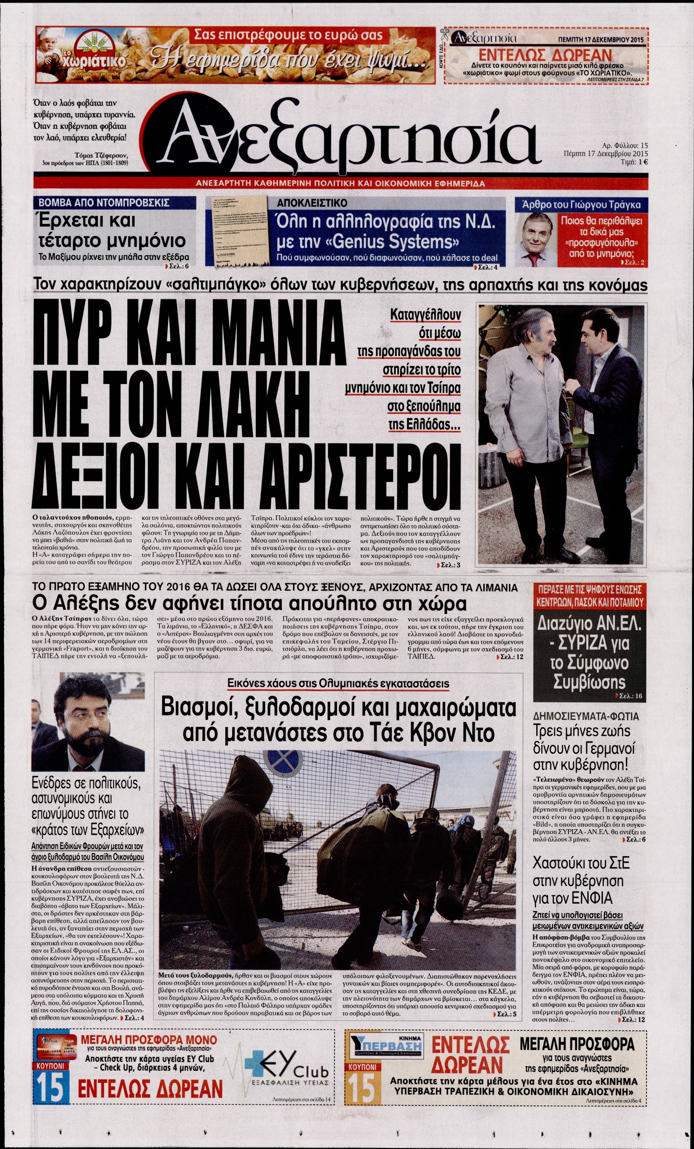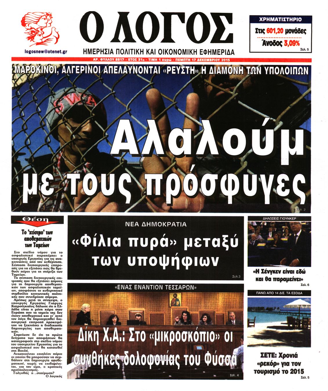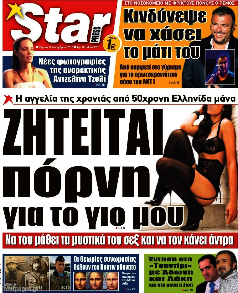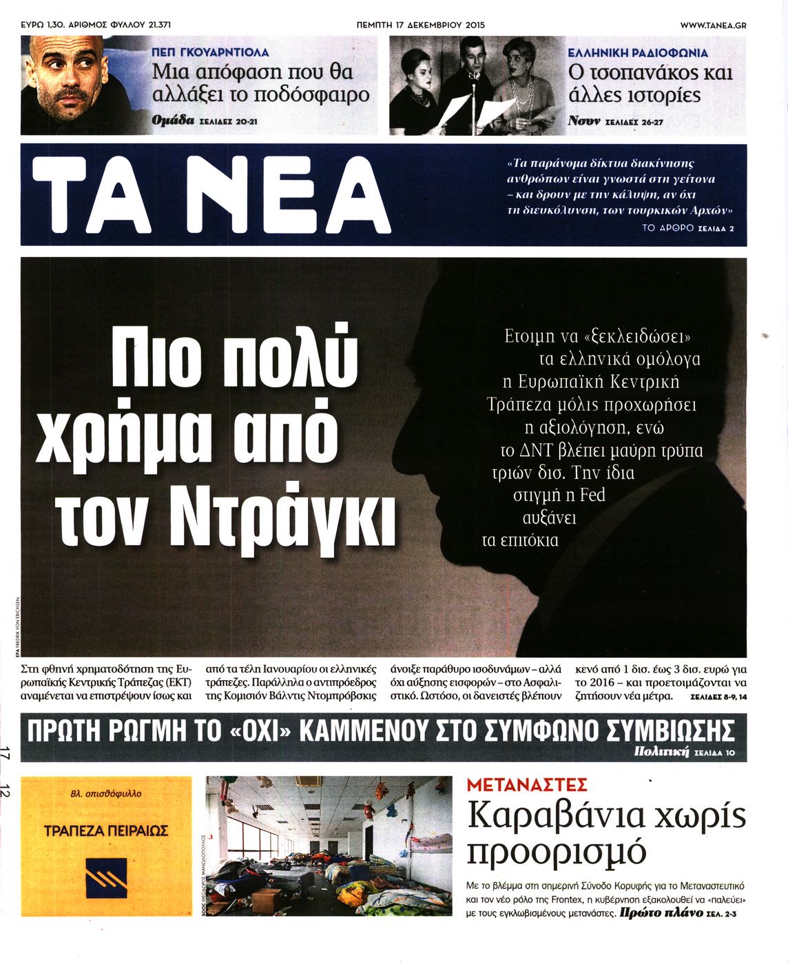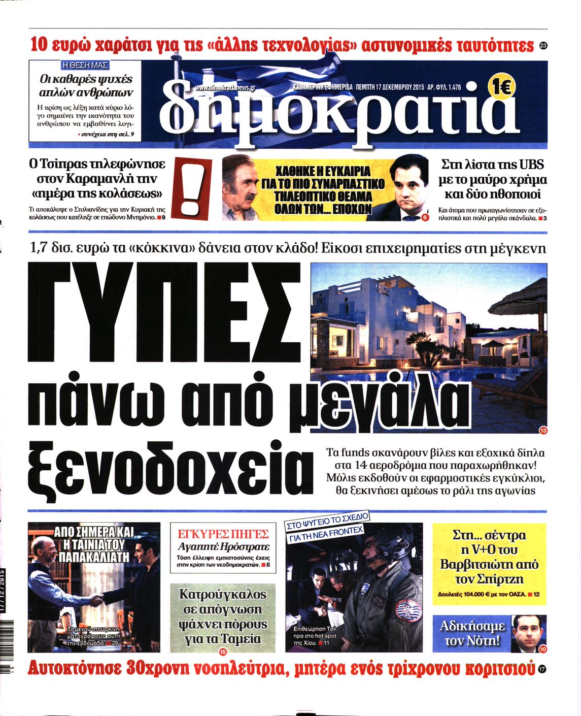 Οι πολιτικές εφημερίδες 17/12/2015 Enikos Newsroom 06:53, Πέμπτη 17 Δεκεμβρίου 2015 Media Διαβάστε τα σημερινά πρωτοσέλιδα των πολιτικών εφημερίδων: ΠΟΛΙΤΙΚΕΣ ΕΦΗΜΕΡΙΔΕΣ ΠΡΩΤΟΣΕΛΙΔΑ Μοιράσου το: σχολίασε κι εσύ (0 σχόλια) Ακολουθήστε το enikos.gr στο Google News και μάθετε πρώτοι όλες τις ειδήσεις Δείτε όλες τις τελευταίες ειδήσεις από την Ελλάδα και τον Κόσμο στο enikos.gr Ειδήσεις Ροή Ειδήσεων 4 ώρες πριν Μεσόγειος: Η διαδρομή του ρωσικού τάνκερ «Qendil» και η στοχευμένη επίθεση της Ουκρανίας με drone – Ο Πούτιν προειδοποίησε για αντίποινα 26 λεπτά πριν Αγρότες: Έκλεισαν για μία ώρα την παρακαμπτήρια της Ιόνιας Οδού στη θέση Χαλίκι 2 ώρες πριν Εμπλοκή και αερομαχίες με οπλισμένα τουρκικά F-16 στο Αιγαίο 2 ώρες πριν Πούτιν: «Ναι, είμαι ερωτευμένος» – Βίντεο από τη σπάνια προσωπική παραδοχή του 29 λεπτά πριν Ανδρέας Λυκουρέντζος: Υπέβαλε την παραίτησή του ο πρόεδρος του ΕΛΓΑ, αλλά δεν έγινε δεκτή – Όλο το παρασκήνιο 40 λεπτά πριν Αριθμολογία: Οι άνθρωποι που έχουν γεννηθεί αυτές τις 4 ημερομηνίες, συχνά παρεξηγούνται – «Η καλοσύνη τους κρύβει τεράστια δύναμη» 3 ώρες πριν Μήπως έχετε χάσει τον εαυτό σας στη σχέση σας; 7 «αθόρυβες» υποχωρήσεις που μάλλον κάνατε, χωρίς να το συνειδητοποιήσετε 2 ώρες πριν Ξεχάστε το καθάρισμα το Σαββατοκύριακο: Ο «κανόνας των 20 λεπτών» που θα σας λύσει τα χέρια 5 ώρες πριν Κουίζ για την παλιά Αθήνα: Αναγνωρίζετε την περιοχή; Έχετε περάσει 100% από εκεί 2 λεπτά πριν Ολυμπιακός – Βιλερμπάν: Μάτωσε στο πρόσωπο ο Παπανικολάου έπειτα από αγκωνιά του Βοτιέ – ΦΩΤΟ 10 λεπτά πριν Συνεχίζει να προκαλεί ο Μίτσκοσκι: «Για μένα το όνομα Μακεδονία είναι ιερό» 20 λεπτά πριν Ο Γιάννης Κακλέας σκηνοθετεί Βερόνικα Δαβάκη και Ιβάν Σβιτάιλο στη «Locandiera» 26 λεπτά πριν Αγρότες: Έκλεισαν για μία ώρα την παρακαμπτήρια της Ιόνιας Οδού στη θέση Χαλίκι 29 λεπτά πριν Ανδρέας Λυκουρέντζος: Υπέβαλε την παραίτησή του ο πρόεδρος του ΕΛΓΑ, αλλά δεν έγινε δεκτή – Όλο το παρασκήνιο ENIKOS NETWORK Το ΕΚΑΒ τιμήθηκε από την Ακαδημία Αθηνών για τα 40 χρόνια προσφοράς του Έχετε πραγματικά μεγάλη καρδιά; 10 χαρακτηριστικά όσων έχουν καλοσύνη Έρχονται νέες προσλήψεις σε Δήμο – Όλες οι λεπτομέρειες Επίδομα παιδιού: Πότε ανοίγει ξανά η πλατφόρμα για τις αιτήσεις Χαρτογραφώντας το «σημείο χωρίς επιστροφή»: Για πρώτη φορά αποκαλύπτεται με λεπτομέρεια το ακανθώδες όριο της ατμόσφαιρας τ... Η Google καταργεί τη λειτουργία «dark web report» – Πώς θα μπορούν οι χρήστες να διαγράφουν τα δεδομένα τους περισσότερα 20:37 , Παρασκευή 19 Δεκεμβρίου 2025 Don’t Forget The Lyrics: Η Έλλη Κοκκίνου υποδέχεται 4 παίκτες που θα κάνουν τα πάντα για να μη χάσουν ούτε… μισή λέξη από τους στίχους Το «Don’t Forget The Lyrics» επιστρέφει απόψε, Παρασκευή 19 Δεκεμβρίου, στις 21:00 με νέο επει... 19:31 , Παρασκευή 19 Δεκεμβρίου 2025 GNTM: Απόψε ο μεγάλος τελικός για τους 4 φιναλίστ Έπειτα από μήνες γεμάτους μόδα, δημιουργία και έντονες αναμετρήσεις, το GNTM 2025 κορυφώνεται,... 18:11 , Παρασκευή 19 Δεκεμβρίου 2025 Το σόι σου: Ο Άρης έρχεται στην Ελλάδα για τις γιορτές των Χριστουγέννων – Τι θα δούμε στο αποψινό εορταστικό επεισόδιο Ένα απολαυστικό, εορταστικό επεισόδιο της σειράς “Το σόι σου”, γεμάτο ευτράπελα αλ... 15:15 , Παρασκευή 19 Δεκεμβρίου 2025 Την Κυριακή με τη Realnews: Ό,τι και αν αγοράσεις, σκανάρεις και κερδίζεις! Την Κυριακή με τη Realnews: Ό,τι και αν αγοράσεις, σκανάρεις και κερδίζεις! Με το PADU app, το... ΤΕΛΕΥΤΑΙΕΣ ΕΙΔΗΣΕΙΣ 2 λεπτά πριν Ολυμπιακός – Βιλερμπάν: Μάτωσε στο πρόσωπο ο... 10 λεπτά πριν Σ