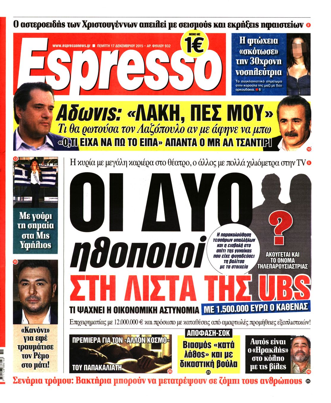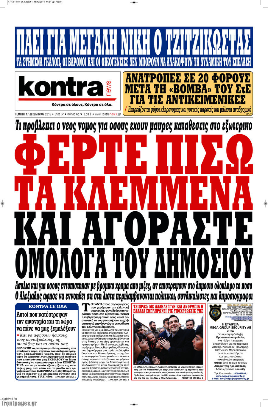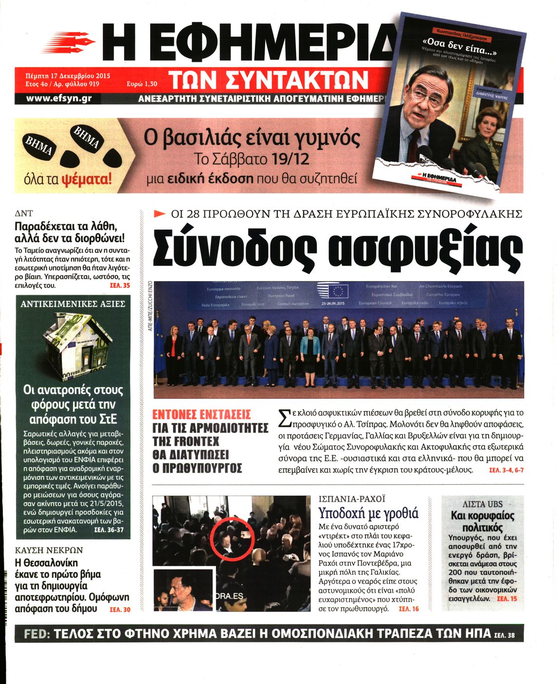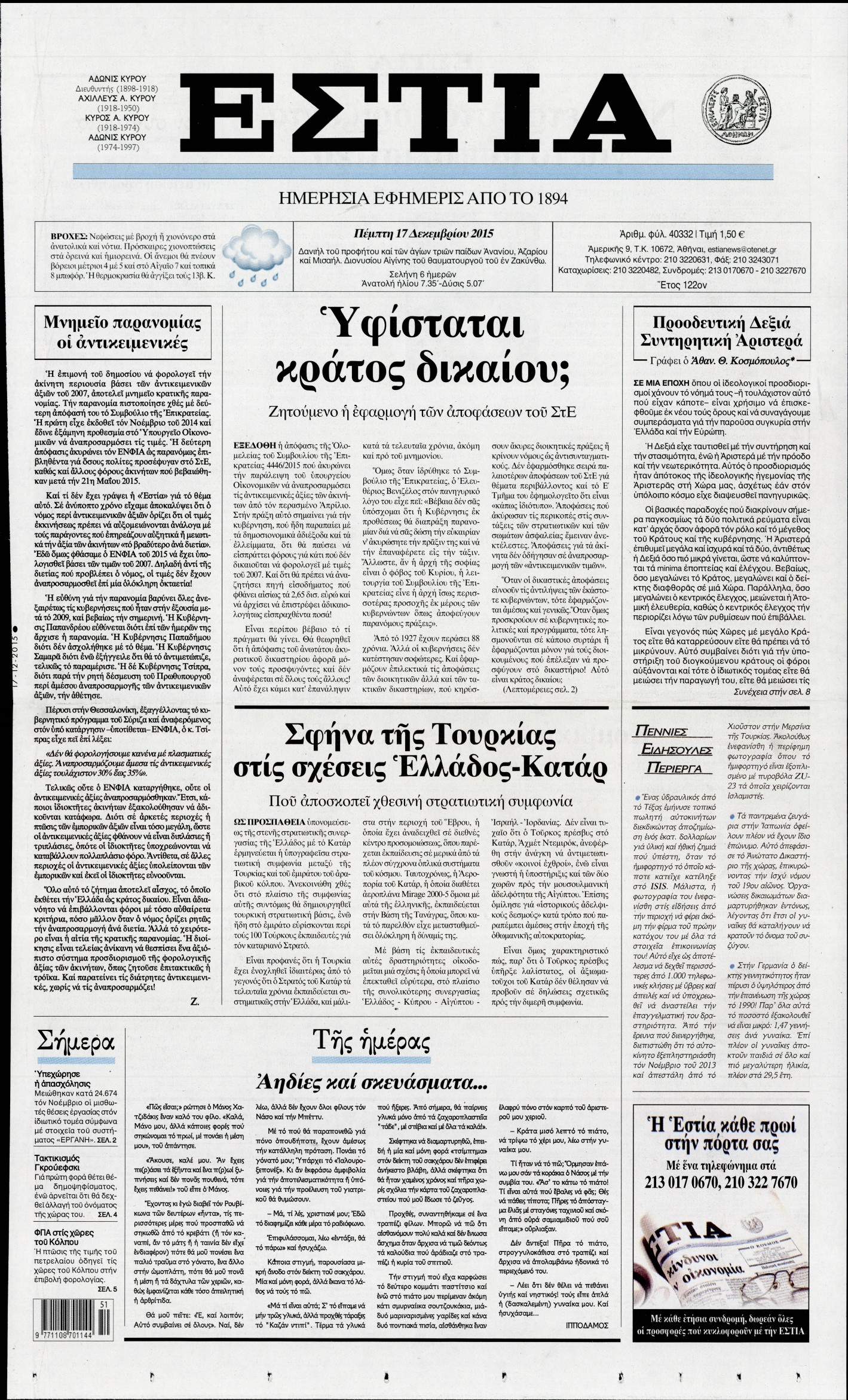 Οι πολιτικές εφημερίδες 17/12/2015 Enikos Newsroom 06:53, Πέμπτη 17 Δεκεμβρίου 2015 Media Διαβάστε τα σημερινά πρωτοσέλιδα των πολιτικών εφημερίδων: ΠΟΛΙΤΙΚΕΣ ΕΦΗΜΕΡΙΔΕΣ ΠΡΩΤΟΣΕΛΙΔΑ Μοιράσου το: σχολίασε κι εσύ (0 σχόλια) Ακολουθήστε το enikos.gr στο Google News και μάθετε πρώτοι όλες τις ειδήσεις Δείτε όλες τις τελευταίες ειδήσεις από την Ελλάδα και τον Κόσμο στο enikos.gr Ειδήσεις Ροή Ειδήσεων 4 ώρες πριν Μεσόγειος: Η διαδρομή του ρωσικού τάνκερ «Qendil» και η στοχευμένη επίθεση της Ουκρανίας με drone – Ο Πούτιν προειδοποίησε για αντίποινα 26 λεπτά πριν Αγρότες: Έκλεισαν για μία ώρα την παρακαμπτήρια της Ιόνιας Οδού στη θέση Χαλίκι 2 ώρες πριν Εμπλοκή και αερομαχίες με οπλισμένα τουρκικά F-16 στο Αιγαίο 2 ώρες πριν Πούτιν: «Ναι, είμαι ερωτευμένος» – Βίντεο από τη σπάνια προσωπική παραδοχή του 29 λεπτά πριν Ανδρέας Λυκουρέντζος: Υπέβαλε την παραίτησή του ο πρόεδρος του ΕΛΓΑ, αλλά δεν έγινε δεκτή – Όλο το παρασκήνιο 40 λεπτά πριν Αριθμολογία: Οι άνθρωποι που έχουν γεννηθεί αυτές τις 4 ημερομηνίες, συχνά παρεξηγούνται – «Η καλοσύνη τους κρύβει τεράστια δύναμη» 3 ώρες πριν Μήπως έχετε χάσει τον εαυτό σας στη σχέση σας; 7 «αθόρυβες» υποχωρήσεις που μάλλον κάνατε, χωρίς να το συνειδητοποιήσετε 2 ώρες πριν Ξεχάστε το καθάρισμα το Σαββατοκύριακο: Ο «κανόνας των 20 λεπτών» που θα σας λύσει τα χέρια 5 ώρες πριν Κουίζ για την παλιά Αθήνα: Αναγνωρίζετε την περιοχή; Έχετε περάσει 100% από εκεί 2 λεπτά πριν Ολυμπιακός – Βιλερμπάν: Μάτωσε στο πρόσωπο ο Παπανικολάου έπειτα από αγκωνιά του Βοτιέ – ΦΩΤΟ 10 λεπτά πριν Συνεχίζει να προκαλεί ο Μίτσκοσκι: «Για μένα το όνομα Μακεδονία είναι ιερό» 20 λεπτά πριν Ο Γιάννης Κακλέας σκηνοθετεί Βερόνικα Δαβάκη και Ιβάν Σβιτάιλο στη «Locandiera» 26 λεπτά πριν Αγρότες: Έκλεισαν για μία ώρα την παρακαμπτήρια της Ιόνιας Οδού στη θέση Χαλίκι 29 λεπτά πριν Ανδρέας Λυκουρέντζος: Υπέβαλε την παραίτησή του ο πρόεδρος του ΕΛΓΑ, αλλά δεν έγινε δεκτή – Όλο το παρασκήνιο ENIKOS NETWORK Το ΕΚΑΒ τιμήθηκε από την Ακαδημία Αθηνών για τα 40 χρόνια προσφοράς του Έχετε πραγματικά μεγάλη καρδιά; 10 χαρακτηριστικά όσων έχουν καλοσύνη Έρχονται νέες προσλήψεις σε Δήμο – Όλες οι λεπτομέρειες Επίδομα παιδιού: Πότε ανοίγει ξανά η πλατφόρμα για τις αιτήσεις Χαρτογραφώντας το «σημείο χωρίς επιστροφή»: Για πρώτη φορά αποκαλύπτεται με λεπτομέρεια το ακανθώδες όριο της ατμόσφαιρας τ... Η Google καταργεί τη λειτουργία «dark web report» – Πώς θα μπορούν οι χρήστες να διαγράφουν τα δεδομένα τους περισσότερα 20:37 , Παρασκευή 19 Δεκεμβρίου 2025 Don’t Forget The Lyrics: Η Έλλη Κοκκίνου υποδέχεται 4 παίκτες που θα κάνουν τα πάντα για να μη χάσουν ούτε… μισή λέξη από τους στίχους Το «Don’t Forget The Lyrics» επιστρέφει απόψε, Παρασκευή 19 Δεκεμβρίου, στις 21:00 με νέο επει... 19:31 , Παρασκευή 19 Δεκεμβρίου 2025 GNTM: Απόψε ο μεγάλος τελικός για τους 4 φιναλίστ Έπειτα από μήνες γεμάτους μόδα, δημιουργία και έντονες αναμετρήσεις, το GNTM 2025 κορυφώνεται,... 18:11 , Παρασκευή 19 Δεκεμβρίου 2025 Το σόι σου: Ο Άρης έρχεται στην Ελλάδα για τις γιορτές των Χριστουγέννων – Τι θα δούμε στο αποψινό εορταστικό επεισόδιο Ένα απολαυστικό, εορταστικό επεισόδιο της σειράς “Το σόι σου”, γεμάτο ευτράπελα αλ... 15:15 , Παρασκευή 19 Δεκεμβρίου 2025 Την Κυριακή με τη Realnews: Ό,τι και αν αγοράσεις, σκανάρεις και κερδίζεις! Την Κυριακή με τη Realnews: Ό,τι και αν αγοράσεις, σκανάρεις και κερδίζεις! Με το PADU app, το... ΤΕΛΕΥΤΑΙΕΣ ΕΙΔΗΣΕΙΣ 2 λεπτά πριν Ολυμπιακός – Βιλερμπάν: Μάτωσε στο πρόσωπο ο... 10 λεπτά πριν Σ