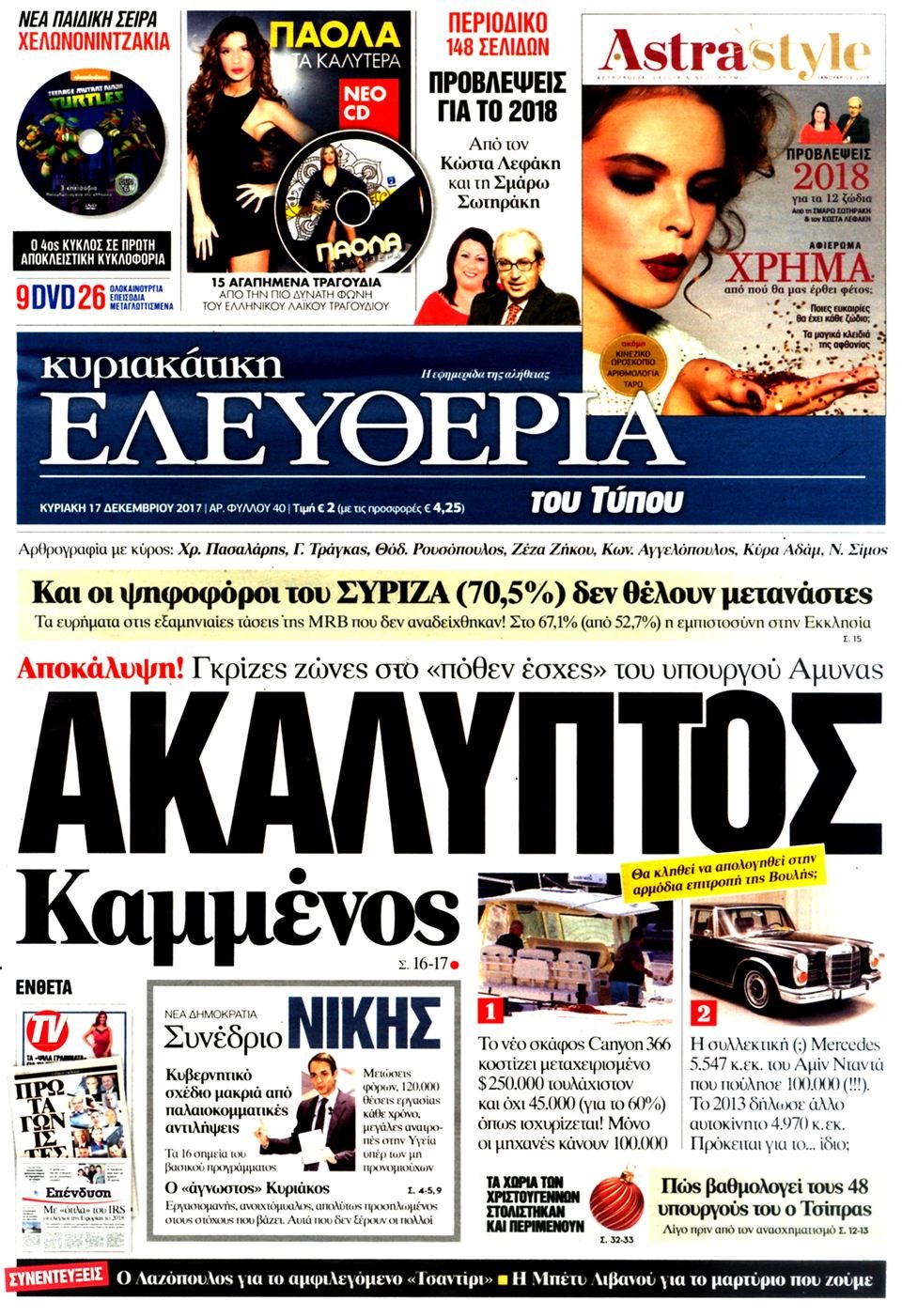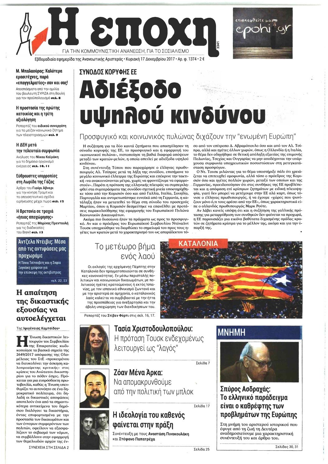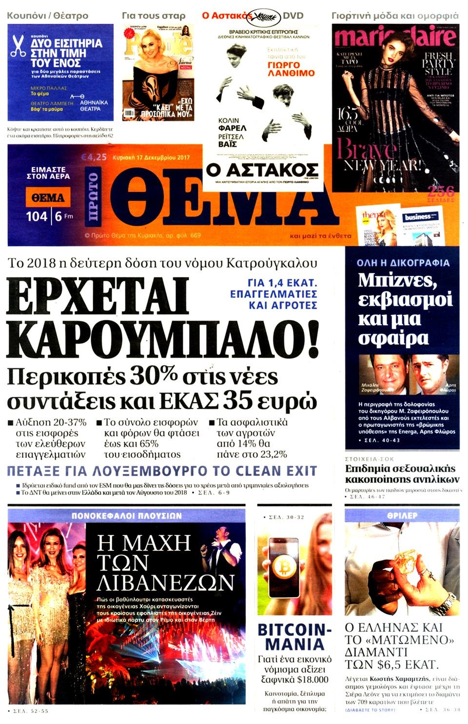 Οι πολιτικές εφημερίδες 17/12/2017 Κώστας Τεό 07:03, Κυριακή 17 Δεκεμβρίου 2017 Media Διαβάστε τα σημερινά πρωτοσέλιδα των πολιτικών εφημερίδων: ΠΟΛΙΤΙΚΕΣ ΕΦΗΜΕΡΙΔΕΣ ΠΡΩΤΟΣΕΛΙΔΑ Μοιράσου το: σχολίασε κι εσύ (0 σχόλια) Ακολουθήστε το enikos.gr στο Google News και μάθετε πρώτοι όλες τις ειδήσεις Δείτε όλες τις τελευταίες ειδήσεις από την Ελλάδα και τον Κόσμο στο enikos.gr Ειδήσεις Ροή Ειδήσεων 48 λεπτά πριν Μπλόκα: Οι αγρότες σηκώνουν τις μπάρες σε διόδια για τους εκδρομείς των Χριστουγέννων και μοιράζουν προϊόντα – Βίντεο 1 ώρα πριν Τσιάρας προς αγρότες: Τα μπλόκα και τα πείσματα δεν ωφελούν – Οι λύσεις περνούν μέσα από τον διάλογο 2 ώρες πριν Αρχεία Έπσταϊν: Οι συγκλονιστικές φωτογραφίες – Ο Μάικλ Τζάκσον, ο Μικ Τζάγκερ και ο Κέβιν Σπέισι ανάμεσα στους διάσημους που απεικονίζονται 7 λεπτά πριν Μαθητές διακινούσαν κοκαΐνη και χασίς σε σχολείο της Αττικής – 12 συλλήψεις 3 ώρες πριν Ινδία: Επτά ελέφαντες σκοτώθηκαν κατά τη σύγκρουση επιβατικού τρένου με κοπάδι 4 ώρες πριν Μία νέα «χρυσή» περίοδος αρχίζει για 3 ζώδια από σήμερα – «Μία αναπάντεχη ευκαιρία οδηγεί στην επιτυχία» 6 ώρες πριν Αγχώνεται για το χριστουγεννιάτικο δώρο που πήρε στην πλούσια σύντροφό του – «Φοβάμαι πως θα το βρει φθηνιάρικο, φοράει βραχιόλια Cartier» 3 ώρες πριν Διαιτολόγος αποκαλύπτει 9 πρωινές συνήθειες που «λιώνουν» το κοιλιακό λίπος – «Υποστηρίζουν την υγιεινή απώλεια βάρους» 4 ώρες πριν Οι 7 φράσεις που δεν λένε ποτέ οι συναισθηματικά έξυπνοι άνθρωποι κατά τη διάρκεια ενός καβγά 4 λεπτά πριν Γερμανού για Μαζωνάκη: «Η σχέση μας μετράει 30 χρόνια – Σαφώς και έχω άποψη» 7 λεπτά πριν Μαθητές διακινούσαν κοκαΐνη και χασίς σε σχολείο της Αττικής – 12 συλλήψεις 13 λεπτά πριν Βέλγιο: Άγνωστοι έριξαν κόκκινη μπογιά στο προξενείο της Πολωνίας στις Βρυξέλλες 20 λεπτά πριν Γρηγόρης Δημητριάδης: Χριστουγεννιάτικη συνάντηση με τα παιδιά της ΔΑΠ-ΝΔΦΚ και της ΟΝΝΕΔ 28 λεπτά πριν Στέφανος Παπαδόπουλος: Ξέσπασε σε κλάματα – «Θέλω να έρθει μπροστά μου και να μου πει ότι είμαι ψεύτης» ENIKOS NETWORK Η αποχή από την αναπαραγωγή παρατείνει τη ζωή στα ζώα, σύμφωνα με μελέτη – Τι ισχύει για τους ανθρώπους; Σημαντικές επαφές στις ΗΠΑ είχε ο υπουργός Υγείας Άδωνις Γεωργιάδης Τσιάρας προς αγρότες: Έχει ικανοποιηθεί το 74% των αιτημάτων – Τα μπλόκα και τα πείσματα δεν ωφελούν MyHealth App: Τα στοιχεία για τον Προσωπικό Βοηθό Υγείας Πολίτη – Τι ερωτήματα έγιναν μέσα σε 7 ημέρες Χαρτογραφώντας το «σημείο χωρίς επιστροφή»: Για πρώτη φορά αποκαλύπτεται με λεπτομέρεια το ακανθώδες όριο της ατμόσφαιρας τ... Η Google καταργεί τη λειτουργία «dark web report» – Πώς θα μπορούν οι χρήστες να διαγράφουν τα δεδομένα τους περισσότερα 14:04 , Σάββατο 20 Δεκεμβρίου 2025 Η Realnews αυτής της Κυριακής (21/12/2025) Με τίτλο: «Ασπίδα προστασίας για την Ελλάδα» κυκλοφορεί, αυτήν την Κυριακή, η Realnews. Σημαντ... 12:53 , Σάββατο 20 Δεκεμβρίου 2025 Να μ’ αγαπάς: Το παρελθόν έρχεται στο φως – Καταιγιστικές εξελίξεις στα τελευταία επεισόδια του 2025 Ο Άγγελος αποκαλύπτεται, η Φωτεινή ανησυχεί για τον Λευτέρη και η Ζωή έρχεται αντιμέτωπη με το... 11:41 , Σάββατο 20 Δεκεμβρίου 2025 «Η αγάπη δεν χάνεται ποτέ»: Η μικρού μήκους ταινία κινουμένων σχεδίων που θέτει ερωτήματα για τη ζωή και τον θάνατο Ο θάνατος είναι ένα από τα πιο σκληρά θέματα που καλείται να διαχειριστεί κάποιος στη διάρκεια... 09:30 , Σάββατο 20 Δεκεμβρίου 2025 «Porto Leone: Στη γειτονιά με τα κόκκινα φανάρια» – Ο Χρόνης αποκαλύπτει στην Αλεξάνδρα τ