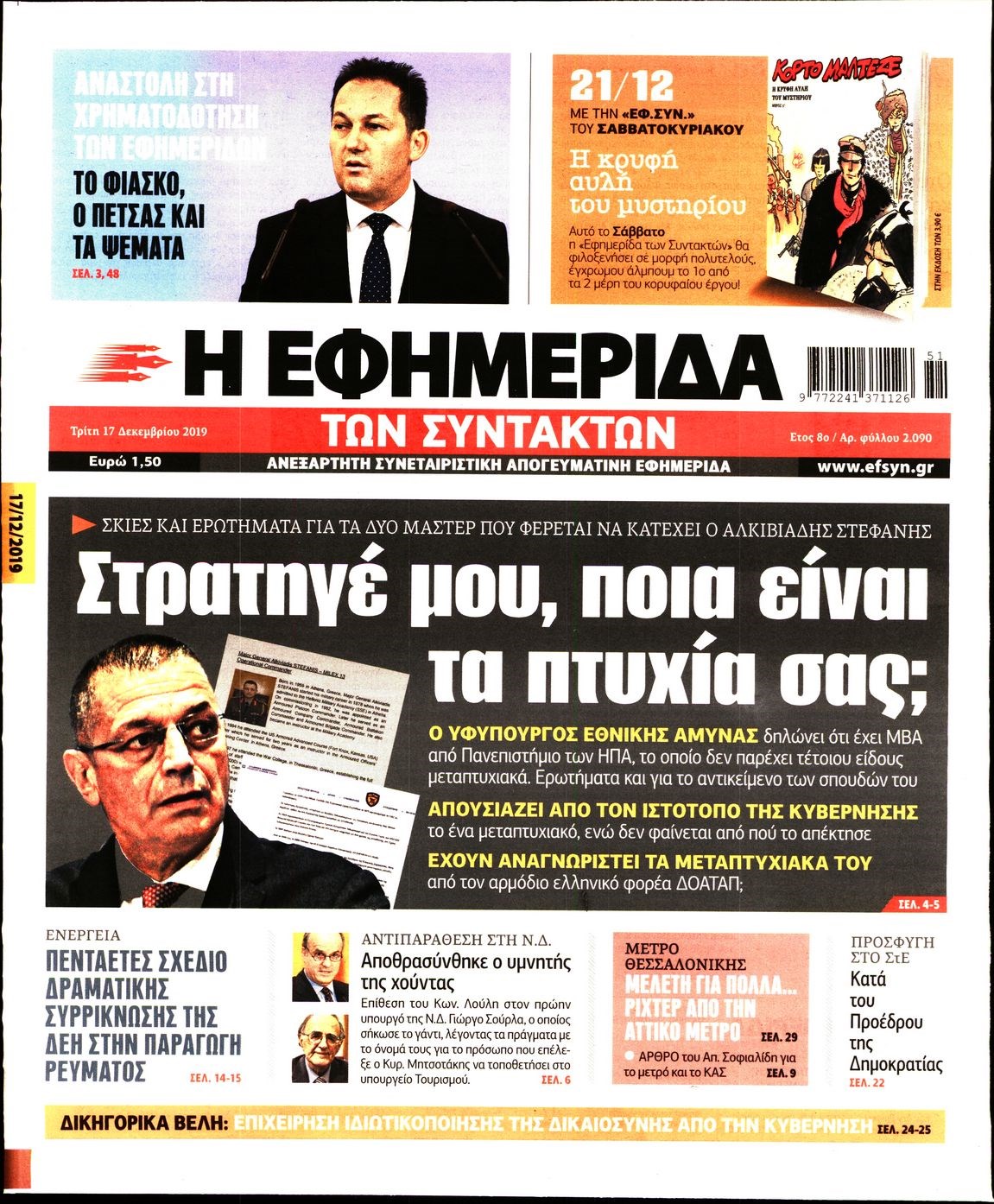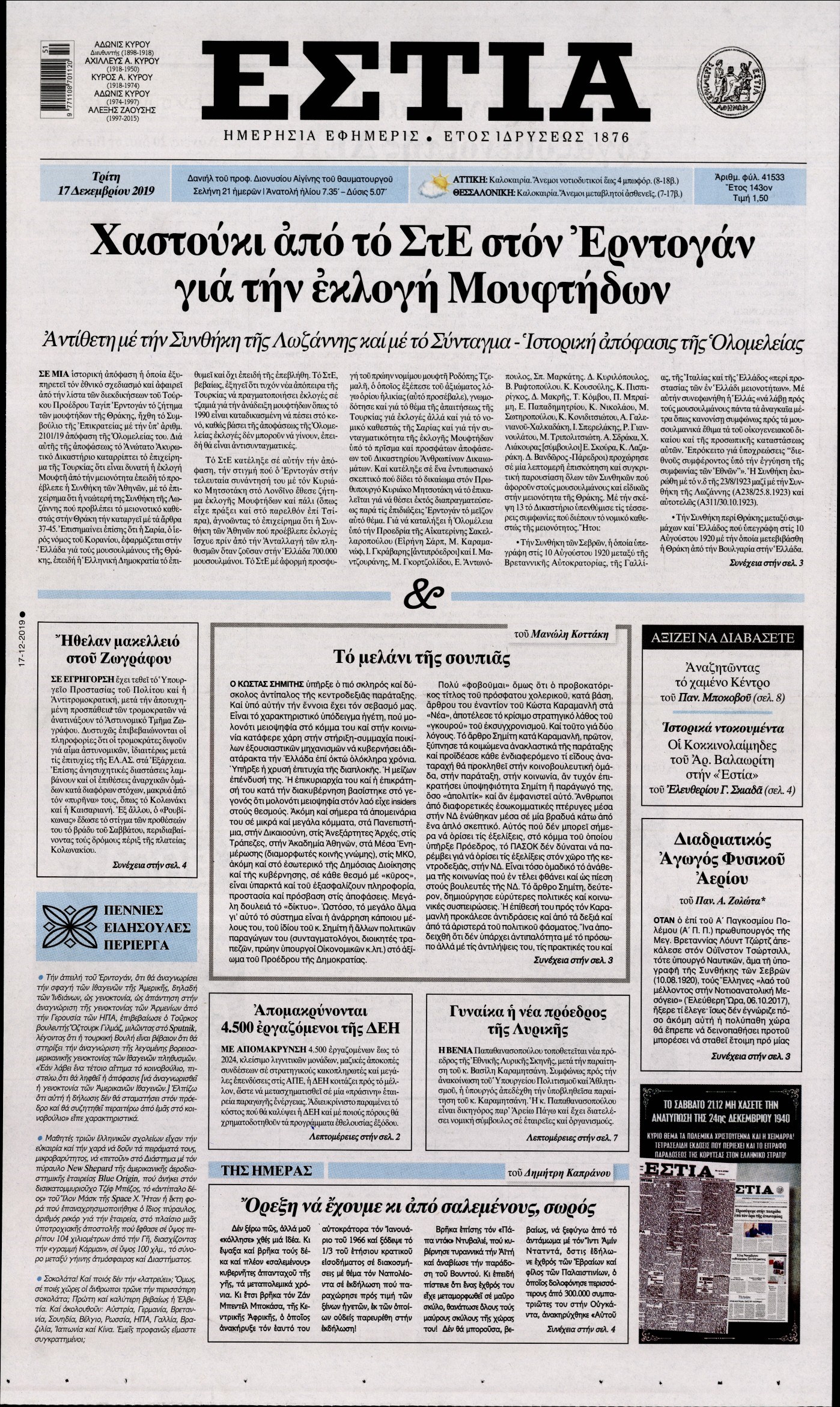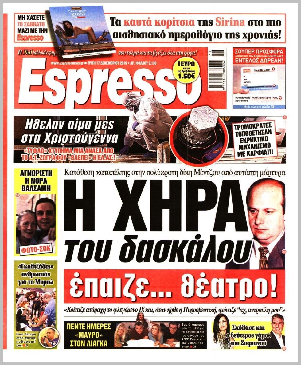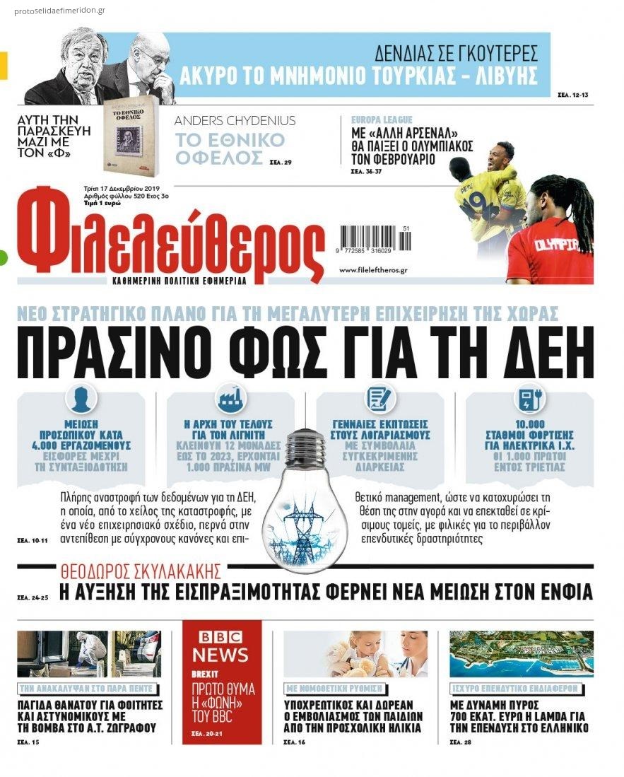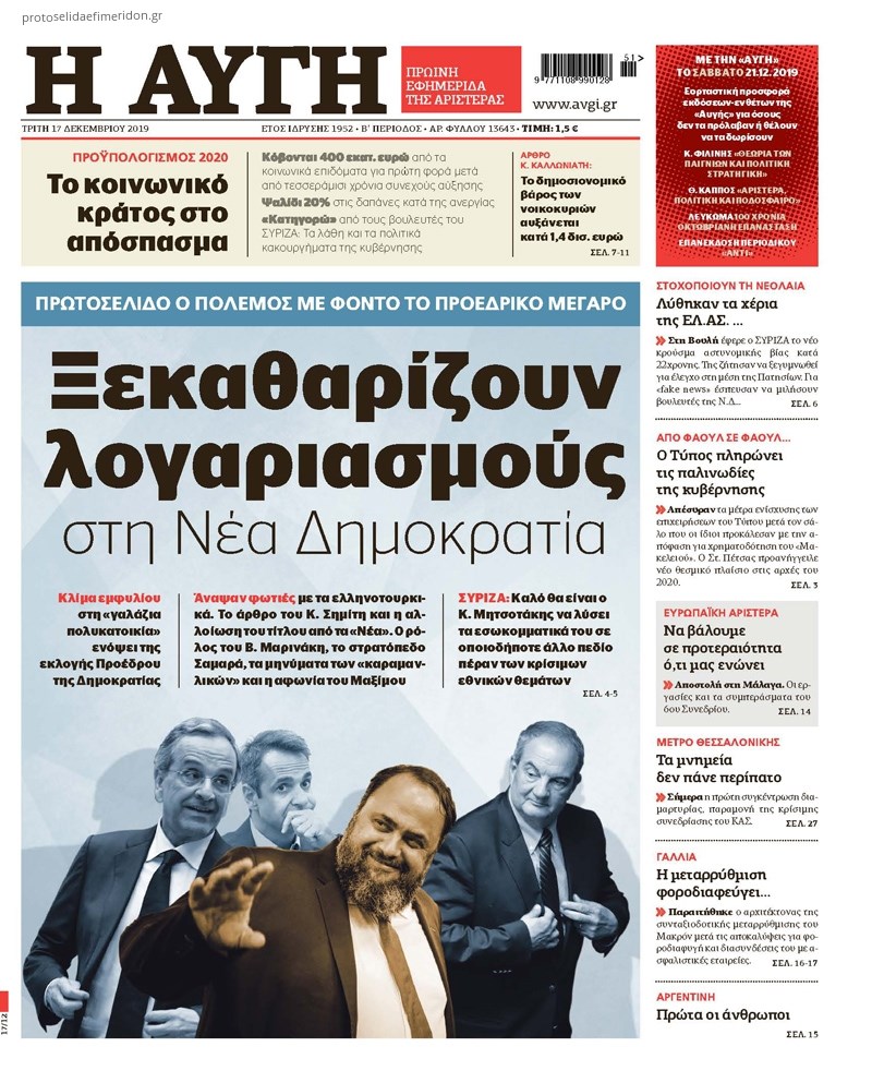 Οι πολιτικές εφημερίδες 17/12/2019 Κώστας Τεό 06:31, Τρίτη 17 Δεκεμβρίου 2019 Media Διαβάστε τα πρωτοσέλιδα των πολιτικών εφημερίδων: ΠΟΛΙΤΙΚΕΣ ΕΦΗΜΕΡΙΔΕΣ ΠΡΩΤΟΣΕΛΙΔΑ Μοιράσου το: σχολίασε κι εσύ (0 σχόλια) Ακολουθήστε το enikos.gr στο Google News και μάθετε πρώτοι όλες τις ειδήσεις Δείτε όλες τις τελευταίες ειδήσεις από την Ελλάδα και τον Κόσμο στο enikos.gr Ειδήσεις Ροή Ειδήσεων 3 ώρες πριν Χριστούγεννα στα μπλόκα: Επιμένουν στις κινητοποιήσεις τους οι αγρότες – Ανοίγουν τα διόδια το Σαββατοκύριακο 3 ώρες πριν Ουκρανία: Η άνευ προηγουμένου επίθεση σε ρωσικό τάνκερ στη Μεσόγειο και το μήνυμα προς στον Πούτιν – Το «μακρύ χέρι» του Κιέβου 3 ώρες πριν Πούτιν: Τα μηνύματα σε Ευρώπη και ΝΑΤΟ από το μαραθώνιο «σόου» του – Η απαίτηση για «σεβασμό» και η ειρήνη «με τους όρους» της Μόσχας 4 ώρες πριν Τραμπ: Δεν αποκλείει την πιθανότητα ενός πολέμου στη Βενεζουέλα – «Ο Μαδούρο ξέρει καλύτερα από τον καθένα τι ακριβώς θέλω» 4 ώρες πριν Συνεχίζει να προκαλεί ο Μίτσκοσκι: «Για μένα το όνομα Μακεδονία είναι ιερό» 3 ώρες πριν Ανακαλύφθηκαν αρχαία χρυσά νομίσματα 2.200 ετών που απεικονίζουν τον θεό Απόλλωνα – Η άγνωστη σύνδεση με τον Φίλιππο Β΄ της Μακεδονίας 4 ώρες πριν Ύπνος: Μια κρυφή κατάσταση του εγκεφάλου πριν από τον ύπνο μπορεί να είναι το “κλειδί” για υψηλή ευφυΐα και δημιουργικότητα 5 ώρες πριν Αριθμολογία: Οι άνθρωποι που έχουν γεννηθεί αυτές τις 4 ημερομηνίες, συχνά παρεξηγούνται – «Η καλοσύνη τους κρύβει τεράστια δύναμη» 6 ώρες πριν Ξεχάστε το καθάρισμα το Σαββατοκύριακο: Ο «κανόνας των 20 λεπτών» που θα σας λύσει τα χέρια 18 λεπτά πριν Euroleague: Επέστρεψε στις νίκες ο Ολυμπιακός, πήρε την ματσάρα της χρονιάς η Μπάρτσα – Τα αποτελέσματα και η βαθμολογία 33 λεπτά πριν Συρία: Μαζικά πλήγματα των ΗΠΑ σε θέσεις του Ισλαμικού Κράτους – Χέγκσεθ: «Δεν είναι αρχή πολέμου, είναι μια δήλωση εκδίκησης» για το θάνατο των στρατιωτών μας 46 λεπτά πριν Ουκρανία: Ολοκληρώθηκαν οι συνομιλίες με τους Αμερικανούς κι Ευρωπαίους διαπραγματευτές 1 ώρα πριν Μπαρτσελόνα – Μπασκόνια 134-124: Οι «μπλαουγκράνα» πήραν το ματς της χρονιάς ύστερα από τρεις παρατάσεις 1 ώρα πριν Φαίη Σκορδά: «Παλιότερα τα κομπλιμέντα τα προσπερνούσα, τώρα τα έχω ανάγκη» ENIKOS NETWORK Το ΕΚΑΒ τιμήθηκε από την Ακαδημία Αθηνών για τα 40 χρόνια προσφοράς του Έχετε πραγματικά μεγάλη καρδιά; 10 χαρακτηριστικά όσων έχουν καλοσύνη Αναστολή μέτρων αναγκαστικής εκτέλεσης για κτηνοτρόφους που πλήττονται από την ευλογιά των αιγοπροβάτων Πλήρης επάρκεια προϊόντων στις λαϊκές της Αττικής, παρά τις αγροτικές κινητοποιήσεις – Τι απαντούν οι πωλητές Χαρτογραφώντας το «σημείο χωρίς επιστροφή»: Για πρώτη φορά αποκαλύπτεται με λεπτομέρεια το ακανθώδες όριο της ατμόσφαιρας τ... Η Google καταργεί τη λειτουργία «dark web report» – Πώς θα μπορούν οι χρήστες να διαγράφουν τα δεδομένα τους περισσότερα 22:42 , Παρασκευή 19 Δεκεμβρίου 2025 Γιώργος Γιαννόπουλος για “Το σόι σου”: “Είναι ευτυχία και ευλογία αυτή η σειρά” «Είναι ευτυχία και ευλογία η συγκυρία αυτής της σειράς», θα πει ο Γιώργος Γιαννόπουλος -ο αγαπ... 20:37 , Παρασκευή 19 Δεκεμβρίου 2025 Don’t Forget The Lyrics: Η Έλλη Κοκκίνου υποδέχεται 4 παίκτες που θα κάνουν τα πάντα για να μη χάσουν ούτε… μισή λέξη από τους στίχους Το «Don’t Forget The Lyrics» επιστρέφει απόψε, Παρασκευή 19 Δεκεμβρίου, στις 21:00 με νέο επει... 19:31 , Παρασκευή 19 Δεκεμβρίου 2025 GNTM: Απόψε ο μεγάλος τελικός για τους 4 φιναλίστ Έπειτα από μήνες γεμάτους μόδα, δημιουρ