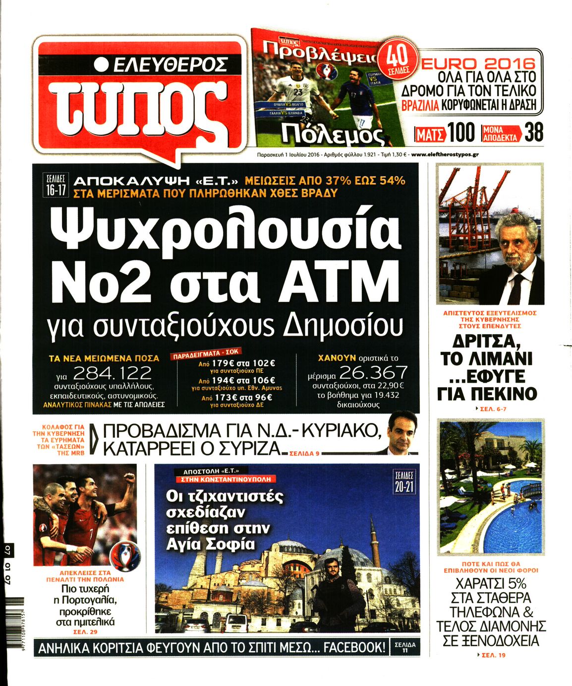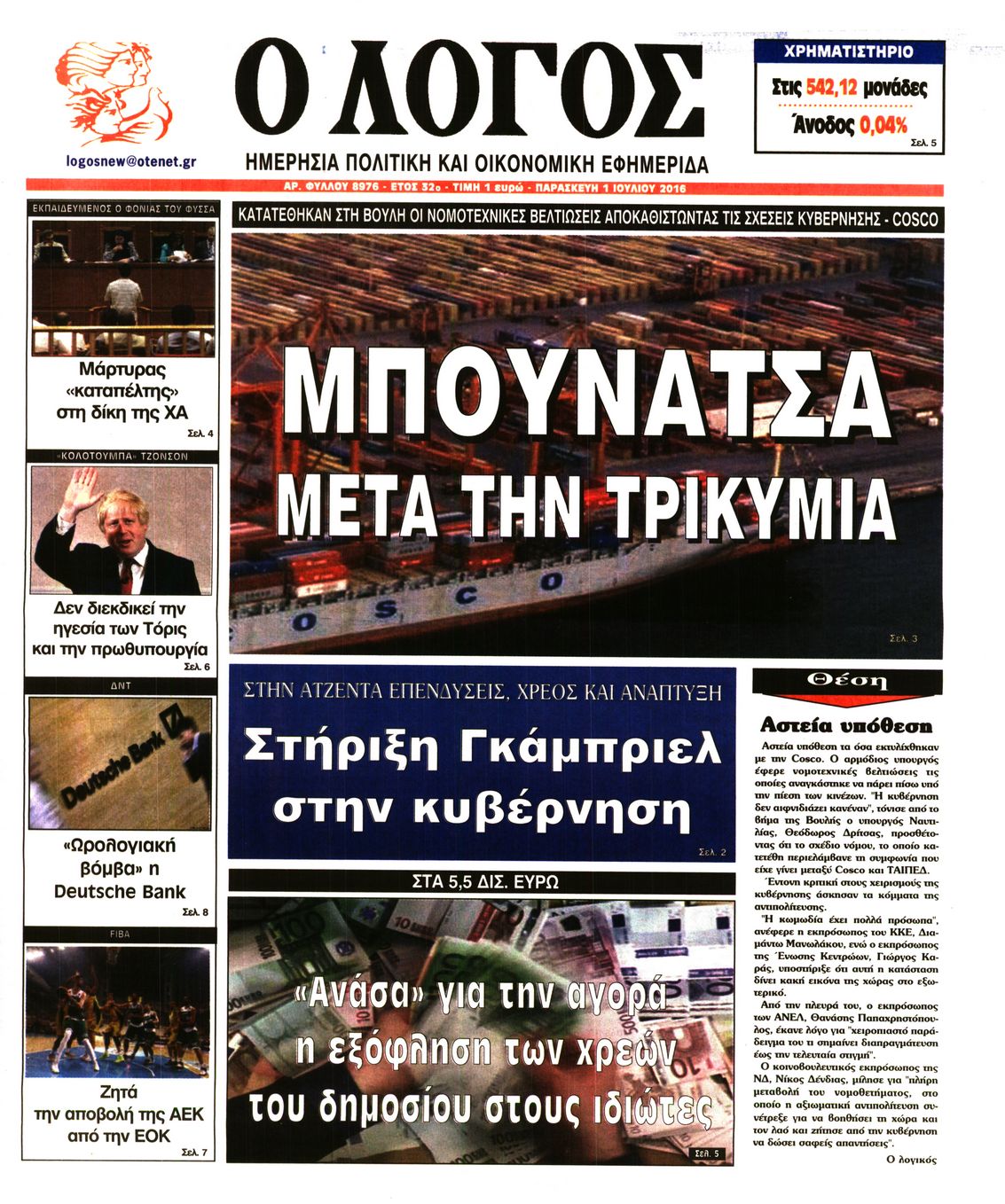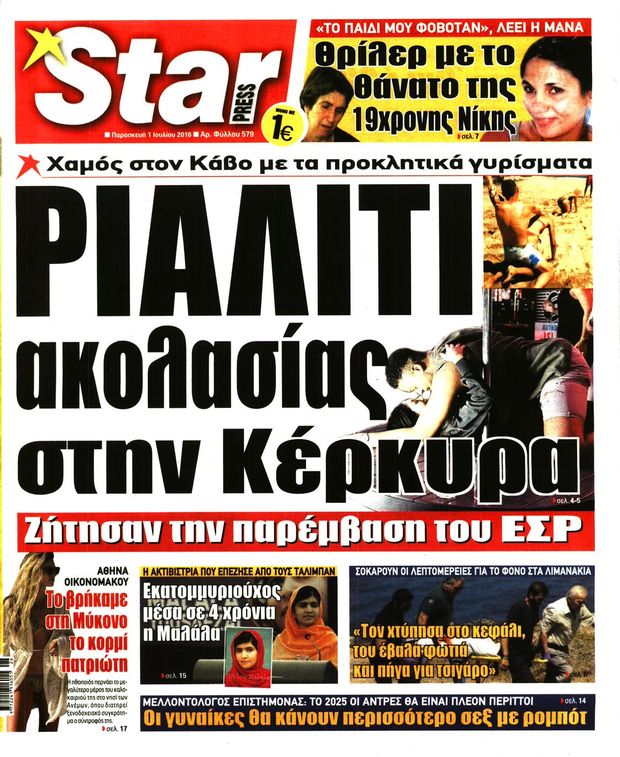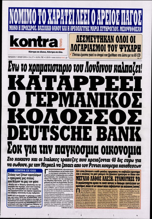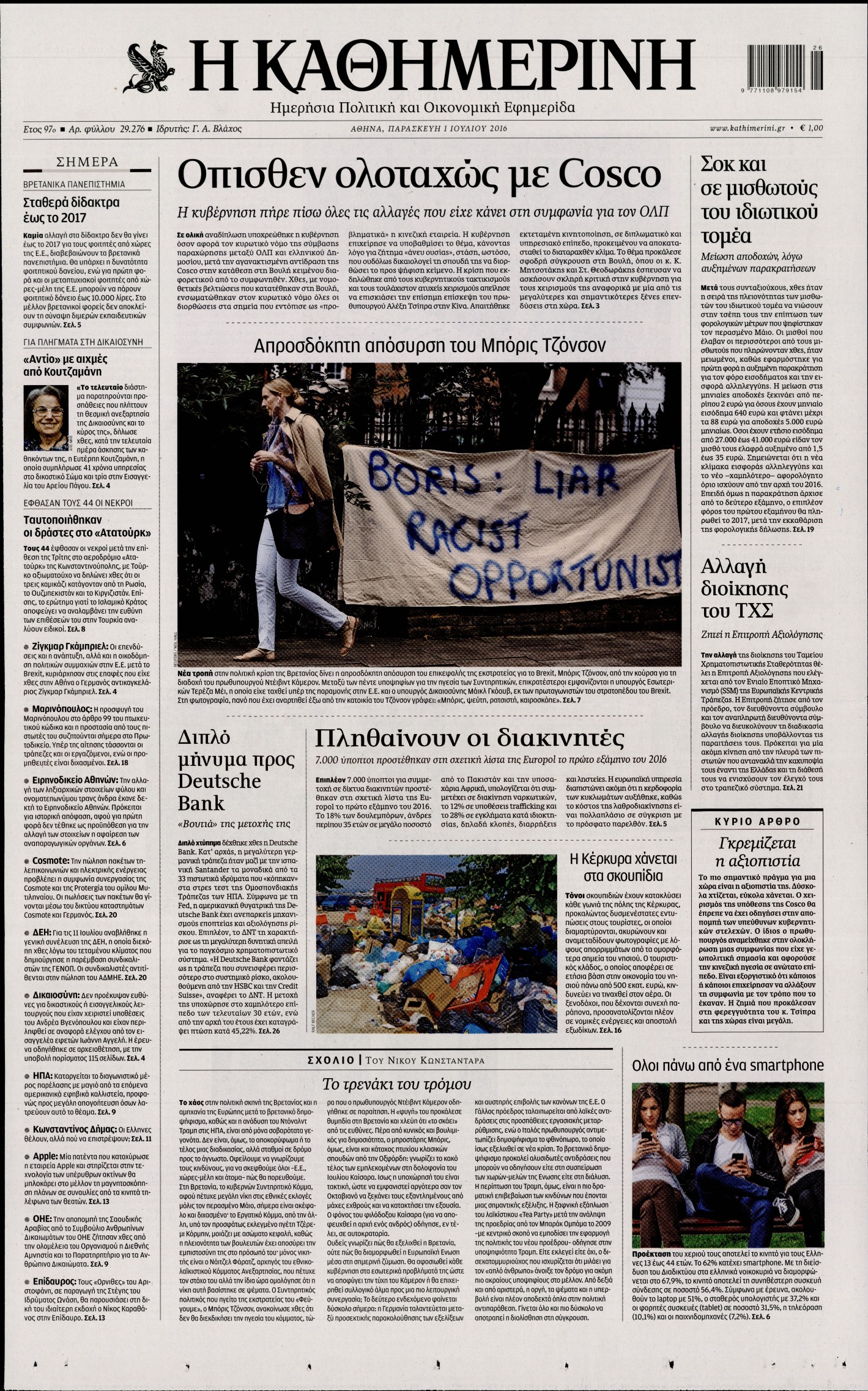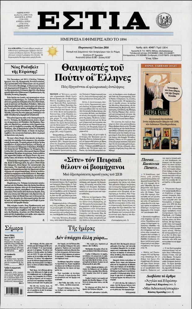 Oι πολιτικές εφημερίδες 1/7/2016 Enikos Newsroom 05:22, Παρασκευή 01 Ιουλίου 2016 Media Διαβάστε τα σημερινά πρωτοσέλιδα των πολιτικών εφημερίδων: ΠΟΛΙΤΙΚΕΣ ΕΦΗΜΕΡΙΔΕΣ ΠΡΩΤΟΣΕΛΙΔΑ Μοιράσου το: σχολίασε κι εσύ (0 σχόλια) Ακολουθήστε το enikos.gr στο Google News και μάθετε πρώτοι όλες τις ειδήσεις Δείτε όλες τις τελευταίες ειδήσεις από την Ελλάδα και τον Κόσμο στο enikos.gr Ειδήσεις Ροή Ειδήσεων 4 ώρες πριν Πώς δρούσε το κύκλωμα που διακινούσε ναρκωτικά σε σχολεία – Υπέβαλαν σε βασανιστήρια όσους δεν τηρούσαν τους «κανόνες πειθαρχίας» 4 ώρες πριν Αγρότες: Γιορτές στα μπλόκα με ανοιχτά διόδια – Δικογραφία στα Ιωάννινα για το σήκωμα των μπαρών 4 ώρες πριν Ζελένσκι: Οι Αμερικανοί πρότειναν συνάντηση Ουκρανίας, ΗΠΑ, Ρωσίας στο Μαϊάμι 2 ώρες πριν Τραμπ: Πώς περνάει τις γιορτές των Χριστουγέννων – Τα δώρα που κάνει στα εγγόνια του 3 ώρες πριν Μικαέλα Μπέντχαους: Ο πρώτος άνθρωπος σε αναπηρικό αμαξίδιο που ταξίδεψε στο διάστημα – ΒΙΝΤΕΟ 4 ώρες πριν Η τύχη χαμογελά σε 3 ζώδια έως τις 28 Δεκεμβρίου – «Προσέξτε τις επιλογές σας και η επιμονή σας θα ανταμειφθεί» 5 ώρες πριν Μία ανεκμετάλλευτη πηγή θα μπορούσε να προσφέρει ανεξάντλητη ενέργεια – Οι επιστήμονες ίσως γνωρίζουν πώς να την ξεκλειδώσουν 1 ώρα πριν Μήπως οι γιορτές σας δεν είναι τόσο τέλειες; 7 χριστουγεννιάτικες συνήθειες που μαρτυρούν ότι μια οικογένεια είναι δυσλειτουργική 12 ώρες πριν Enerwave: Το νέο «ρεύμα» στη λιανική ενέργειας που αλλάζει την εμπειρία του καταναλωτή 2 λεπτά πριν Ο ΑΝΤ1 γεμίζει τις γιορτές με μουσική – Ποιους καλλιτέχνες θα απολαύσουμε 20 λεπτά πριν Πέθανε η σπουδαία αρχαιολόγος Λίλα Μαραγκού – 30 λεπτά πριν Πώς να απαλλαγείτε από τη μυρωδιά του τηγανητού φαγητού: Το μυστικό βρίσκεται στην κουζίνα σας 35 λεπτά πριν Βλαχοδήμος: «Νιώθω καλά που είμαι σημαντικός για τη Σεβίλλη» – Τι είπε για τη Ρεάλ Μαδρίτης και τον Μπαπέ 44 λεπτά πριν Πρίγκιπας Ουίλιαμ: Μαγείρεψε παρέα με τον πρίγκιπα Τζορτζ για τους αστέγους – ΦΩΤΟ και ΒΙΝΤΕΟ ENIKOS NETWORK Οι γυναίκες αποκαλύπτουν το πιο ελκυστικό πράγμα που μπορεί να κάνει ένας άνδρας Ομορφιά και αντιγήρανση: Ειδικοί μιλούν για συσκευές περιποίησης του δέρματος Θεοδωρικάκος: Εθνική στρατηγική για τους ημιαγωγούς – Πρώτο βήμα η χρηματοδότηση του πρώτου Κέντρου Ικανοτήτων, με 3,63 εκα... Επίδομα θέρμανσης: Μπαίνει η πρώτη δόση την Τρίτη – Οι επόμενες πληρωμές Χαρτογραφώντας το «σημείο χωρίς επιστροφή»: Για πρώτη φορά αποκαλύπτεται με λεπτομέρεια το ακανθώδες όριο της ατμόσφαιρας τ... Η Google καταργεί τη λειτουργία «dark web report» – Πώς θα μπορούν οι χρήστες να διαγράφουν τα δεδομένα τους περισσότερα 20:28 , Σάββατο 20 Δεκεμβρίου 2025 Ο ΑΝΤ1 γεμίζει τις γιορτές με μουσική – Ποιους καλλιτέχνες θα απολαύσουμε Φέτος στον ΑΝΤ1 γιορτάζουμε τις νύχτες μας παρέα με αγαπημένους καλλιτέχνες και μεγάλες μουσι... 18:19 , Σάββατο 20 Δεκεμβρίου 2025 HOTΕΛ ΕΛVIRA: Η Ελβίρα μαθαίνει πως ο Χάρι μένει κρυφά στο ξενοδοχείο του Παντελή Συνεχίζονται οι εκλογές για πρόεδρο, στο νέο επεισόδιο της κωμικής σειράς του MEGA, HOTΕΛ ΕΛVI... 14:04 , Σάββατο 20 Δεκεμβρίου 2025 Η Realnews αυτής της Κυριακής (21/12/2025) Με τίτλο: «Ασπίδα προστασίας για την Ελλάδα» κυκλοφορεί, αυτήν την Κυριακή, η Realnews. Σημαντ... 12:53 , Σάββατο 20 Δεκεμβρίου 2025 Να μ’ αγαπάς: Το παρελθόν έρχεται στο φως – Καταιγιστικές εξελίξεις στα τελευταία επεισόδια του 2025 Ο Άγγελος αποκαλύπτεται, η Φωτεινή ανησυχεί για τον Λευτέρη και η Ζωή έρχεται αντιμέτωπη με το... ΤΕΛΕΥΤΑΙΕΣ ΕΙΔΗΣΕΙ