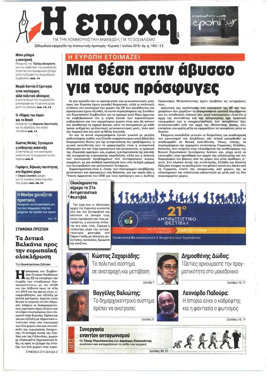 Οι πολιτικές εφημερίδες 1/7/2018 Κώστας Τεό 07:07, Κυριακή 01 Ιουλίου 2018 Media Διαβάστε τα σημερινά πρωτοσέλιδα των πολιτικών εφημερίδων: ΠΟΛΙΤΙΚΕΣ ΕΦΗΜΕΡΙΔΕΣ ΠΡΩΤΟΣΕΛΙΔΑ Μοιράσου το: σχολίασε κι εσύ (0 σχόλια) Ακολουθήστε το enikos.gr στο Google News και μάθετε πρώτοι όλες τις ειδήσεις Δείτε όλες τις τελευταίες ειδήσεις από την Ελλάδα και τον Κόσμο στο enikos.gr Ειδήσεις Ροή Ειδήσεων 22 λεπτά πριν Ζελένσκι: Μόνο οι ΗΠΑ και ο Τραμπ μπορούν να πιέσουν τη Ρωσία να βάλει τέλος στον πόλεμο 41 λεπτά πριν Φοινικούντα: Προφυλακιστέος ο 30χρονος για συνέργεια στη διπλή δολοφονία – Και άλλα πρόσωπα στο «μικροσκόπιο» 2 ώρες πριν Κυριάκος Μητσοτάκης: Στην Ιερουσαλήμ την Τρίτη ο Πρωθυπουργός για την τριμερή Ελλάδας, Κύπρου, Ισραήλ – Θα συναντηθεί και με τον Αμπάς 5 ώρες πριν Πώς δρούσε το κύκλωμα που διακινούσε ναρκωτικά σε σχολεία – Υπέβαλαν σε βασανιστήρια όσους δεν τηρούσαν τους «κανόνες πειθαρχίας» 1 ώρα πριν Πάπας Λέων: Όταν έχει αϋπνίες επενδύει παραγωγικά τον χρόνο του – Ποιο παιχνίδι παίζει στο κινητό 32 λεπτά πριν Αριθμολογία: Ο αριθμός του φύλακα αγγέλου σας, με βάση τον μήνα γέννησής σας – «Έτσι σας στέλνει σημάδια το σύμπαν» 2 ώρες πριν Πώς να απαλλαγείτε από τη μυρωδιά του τηγανητού φαγητού: Το μυστικό βρίσκεται στην κουζίνα σας 3 ώρες πριν Μήπως οι γιορτές σας δεν είναι τόσο τέλειες; 7 χριστουγεννιάτικες συνήθειες που μαρτυρούν ότι μια οικογένεια είναι δυσλειτουργική 13 ώρες πριν Enerwave: Το νέο «ρεύμα» στη λιανική ενέργειας που αλλάζει την εμπειρία του καταναλωτή 15 λεπτά πριν Εριέττα Μανούρη: «Έχω νιώσει ανταγωνισμό από άντρες, μύθος αυτό που λένε για τις γυναίκες» 22 λεπτά πριν Ζελένσκι: Μόνο οι ΗΠΑ και ο Τραμπ μπορούν να πιέσουν τη Ρωσία να βάλει τέλος στον πόλεμο 32 λεπτά πριν Αριθμολογία: Ο αριθμός του φύλακα αγγέλου σας, με βάση τον μήνα γέννησής σας – «Έτσι σας στέλνει σημάδια το σύμπαν» 41 λεπτά πριν Φοινικούντα: Προφυλακιστέος ο 30χρονος για συνέργεια στη διπλή δολοφονία – Και άλλα πρόσωπα στο «μικροσκόπιο» 52 λεπτά πριν Super League: Ο Σιαμπάνης «κατέβασε ρολά» και ο Βόλος νίκησε 1-0 τον Παναιτωλικό ENIKOS NETWORK Οι γυναίκες αποκαλύπτουν το πιο ελκυστικό πράγμα που μπορεί να κάνει ένας άνδρας Ομορφιά και αντιγήρανση: Ειδικοί μιλούν για συσκευές περιποίησης του δέρματος Εφορία: 7 αλλαγές σε δηλώσεις και ελέγχους ακινήτων – Όλα όσα πρέπει να γνωρίζετε Πορτοκαλί τιμολόγια ρεύματος: Τα σημεία που πρέπει να προσέξουν οι καταναλωτές – Πότε θα εφαρμοστούν Χαρτογραφώντας το «σημείο χωρίς επιστροφή»: Για πρώτη φορά αποκαλύπτεται με λεπτομέρεια το ακανθώδες όριο της ατμόσφαιρας τ... Η Google καταργεί τη λειτουργία «dark web report» – Πώς θα μπορούν οι χρήστες να διαγράφουν τα δεδομένα τους περισσότερα 20:30 , Σάββατο 20 Δεκεμβρίου 2025 Αυτή την Κυριακή με τη Realnews: Instyle, μαζί Drive και Realnews Geopolitics Αυτή την Κυριακή με τη Realnews: Instyle, μαζί Drive και Realnews Geopolitics Instyle Η Άννα Ρ... 20:28 , Σάββατο 20 Δεκεμβρίου 2025 Ο ΑΝΤ1 γεμίζει τις γιορτές με μουσική – Ποιους καλλιτέχνες θα απολαύσουμε Φέτος στον ΑΝΤ1 γιορτάζουμε τις νύχτες μας παρέα με αγαπημένους καλλιτέχνες και μεγάλες μουσι... 18:19 , Σάββατο 20 Δεκεμβρίου 2025 HOTΕΛ ΕΛVIRA: Η Ελβίρα μαθαίνει πως ο Χάρι μένει κρυφά στο ξενοδοχείο του Παντελή Συνεχίζονται οι εκλογές για πρόεδρο, στο νέο επεισόδιο της κωμικής σειράς του MEGA, HOTΕΛ ΕΛVI... 14:04 , Σάββατο 20 Δεκεμβρίου 2025 Η Realnews αυτής της Κυριακής (21/12/2025) Με τίτλο: «Ασπίδα προστασίας για την Ελλάδα» κυκλοφορεί, αυτήν την Κυριακή, η Realn