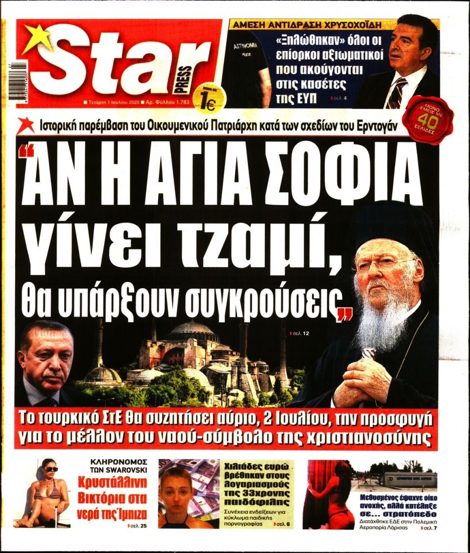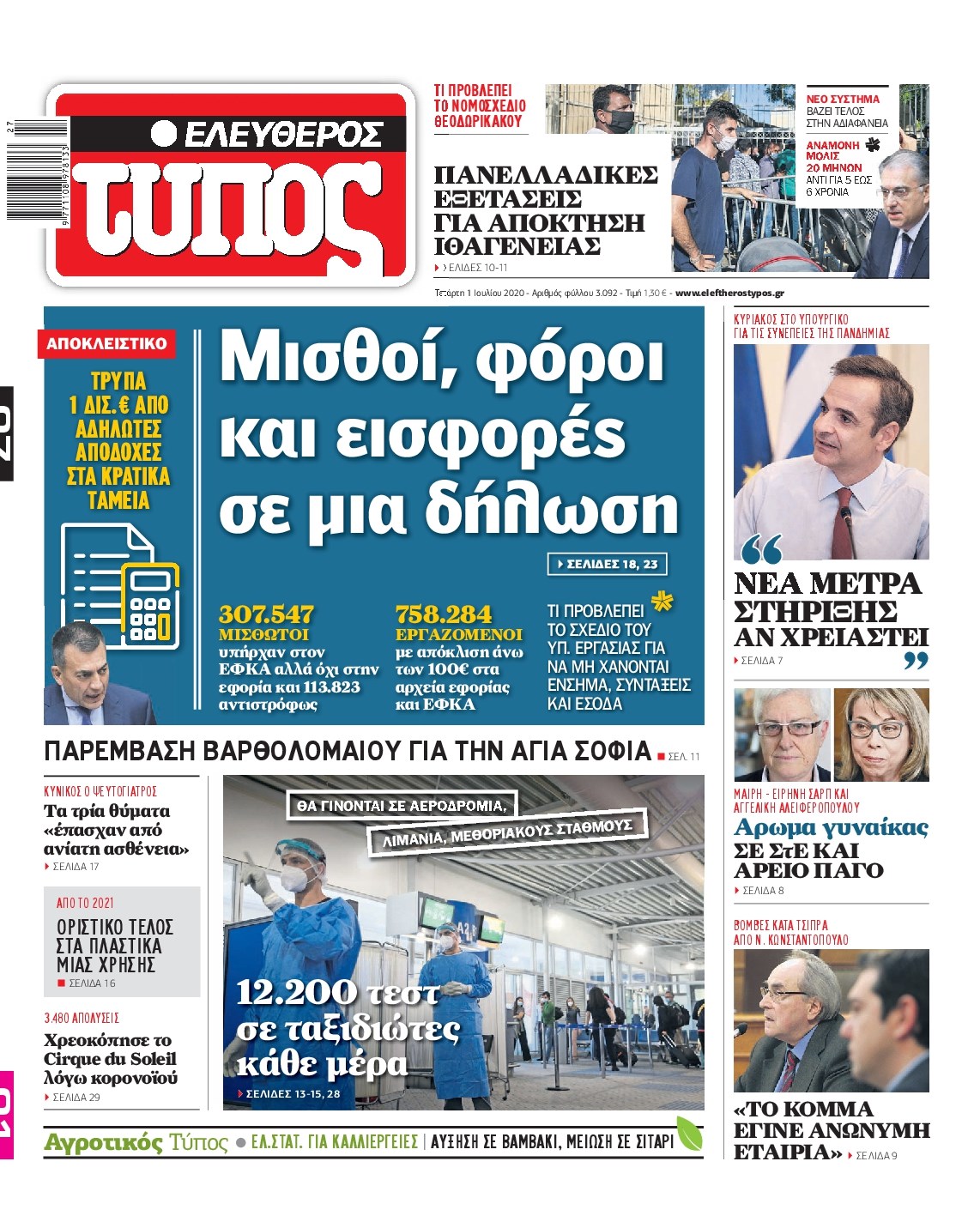 Οι πολιτικές εφημερίδες 1/7/2020 Διονύσης Νίκκας 06:08, Τετάρτη 01 Ιουλίου 2020 Media Διαβάστε τα πρωτοσέλιδα των πολιτικών εφημερίδων… ΠΟΛΙΤΙΚΕΣ ΕΦΗΜΕΡΙΔΕΣ Μοιράσου το: σχολίασε κι εσύ (0 σχόλια) Ακολουθήστε το enikos.gr στο Google News και μάθετε πρώτοι όλες τις ειδήσεις Δείτε όλες τις τελευταίες ειδήσεις από την Ελλάδα και τον Κόσμο στο enikos.gr Ειδήσεις Ροή Ειδήσεων 6 ώρες πριν Χριστούγεννα στα μπλόκα: Επιμένουν στις κινητοποιήσεις τους οι αγρότες – Ανοίγουν τα διόδια το Σαββατοκύριακο 6 ώρες πριν Ουκρανία: Η άνευ προηγουμένου επίθεση σε ρωσικό τάνκερ στη Μεσόγειο και το μήνυμα προς στον Πούτιν – Το «μακρύ χέρι» του Κιέβου 5 ώρες πριν Πούτιν: Τα μηνύματα σε Ευρώπη και ΝΑΤΟ από το μαραθώνιο «σόου» του – Η απαίτηση για «σεβασμό» και η ειρήνη «με τους όρους» της Μόσχας 6 ώρες πριν Τραμπ: Δεν αποκλείει την πιθανότητα ενός πολέμου στη Βενεζουέλα – «Ο Μαδούρο ξέρει καλύτερα από τον καθένα τι ακριβώς θέλω» 7 ώρες πριν Συνεχίζει να προκαλεί ο Μίτσκοσκι: «Για μένα το όνομα Μακεδονία είναι ιερό» 5 ώρες πριν Ανακαλύφθηκαν αρχαία χρυσά νομίσματα 2.200 ετών που απεικονίζουν τον θεό Απόλλωνα – Η άγνωστη σύνδεση με τον Φίλιππο Β΄ της Μακεδονίας 6 ώρες πριν Ύπνος: Μια κρυφή κατάσταση του εγκεφάλου πριν από τον ύπνο μπορεί να είναι το “κλειδί” για υψηλή ευφυΐα και δημιουργικότητα 7 ώρες πριν Αριθμολογία: Οι άνθρωποι που έχουν γεννηθεί αυτές τις 4 ημερομηνίες, συχνά παρεξηγούνται – «Η καλοσύνη τους κρύβει τεράστια δύναμη» 8 ώρες πριν Ξεχάστε το καθάρισμα το Σαββατοκύριακο: Ο «κανόνας των 20 λεπτών» που θα σας λύσει τα χέρια 11 λεπτά πριν Βολιβία: Μαζική διαδηλώσεις εναντίον της κατάργησης των επιδοτήσεων των τιμών των καυσίμων 27 λεπτά πριν Φως στο Τούνελ: Έφτασε η ώρα της αλήθειας για την δολοφονία της χήρας του πρώην υπουργού στο Κολωνάκι 42 λεπτά πριν Ντόναλντ Τραμπ: Προστέθηκε το όνομά του στην πρόσοψη του Κέντρου Κένεντι – Οργισμένη αντίδραση των συγγενών του JFK 57 λεπτά πριν Ταμίλα Κουλίεβα: «Δεν θέλω να είμαι κάποια που πορεύεται συνεχώς με τις ίδιες αναφορές» 1 ώρα πριν Η Ελλάδα προσχωρεί στη Διεθνή Επιτροπή Αποζημιώσεων για την Ουκρανία ENIKOS NETWORK Το ΕΚΑΒ τιμήθηκε από την Ακαδημία Αθηνών για τα 40 χρόνια προσφοράς του Έχετε πραγματικά μεγάλη καρδιά; 10 χαρακτηριστικά όσων έχουν καλοσύνη Αναστολή μέτρων αναγκαστικής εκτέλεσης για κτηνοτρόφους που πλήττονται από την ευλογιά των αιγοπροβάτων Πλήρης επάρκεια προϊόντων στις λαϊκές της Αττικής, παρά τις αγροτικές κινητοποιήσεις – Τι απαντούν οι πωλητές Χαρτογραφώντας το «σημείο χωρίς επιστροφή»: Για πρώτη φορά αποκαλύπτεται με λεπτομέρεια το ακανθώδες όριο της ατμόσφαιρας τ... Η Google καταργεί τη λειτουργία «dark web report» – Πώς θα μπορούν οι χρήστες να διαγράφουν τα δεδομένα τους περισσότερα 02:50 , Σάββατο 20 Δεκεμβρίου 2025 GNTM: Η Ξένια Τσίρκοβα αναδείχθηκε μεγάλη νικήτρια και πήρε τις 50.000 ευρώ – Ποιος βρέθηκε σε απόσταση αναπνοής; Με φαντασμαγορικό τρόπο ολοκληρώθηκε το βράδυ της Παρασκευής ο μεγάλος τελικός του GNTM, μέσα ... 22:42 , Παρασκευή 19 Δεκεμβρίου 2025 Γιώργος Γιαννόπουλος για “Το σόι σου”: “Είναι ευτυχία και ευλογία αυτή η σειρά” «Είναι ευτυχία και ευλογία η συγκυρία αυτής της σειράς», θα πει ο Γιώργος Γιαννόπουλος -ο αγαπ... 20:37 , Παρασκευή 19 Δεκεμβρίου 2025 Don’t Forget The Lyrics: Η Έλλη Κοκκίνου υποδέχεται 4 παίκτες που θα κάνουν τα πάντα για να μη χάσουν ούτε… μισή λέξη από τους στίχους Το «Don’t Forget The Lyrics» επιστρέφει απόψε, Παρασκευή 19 Δ