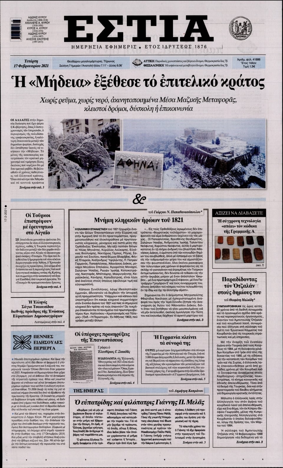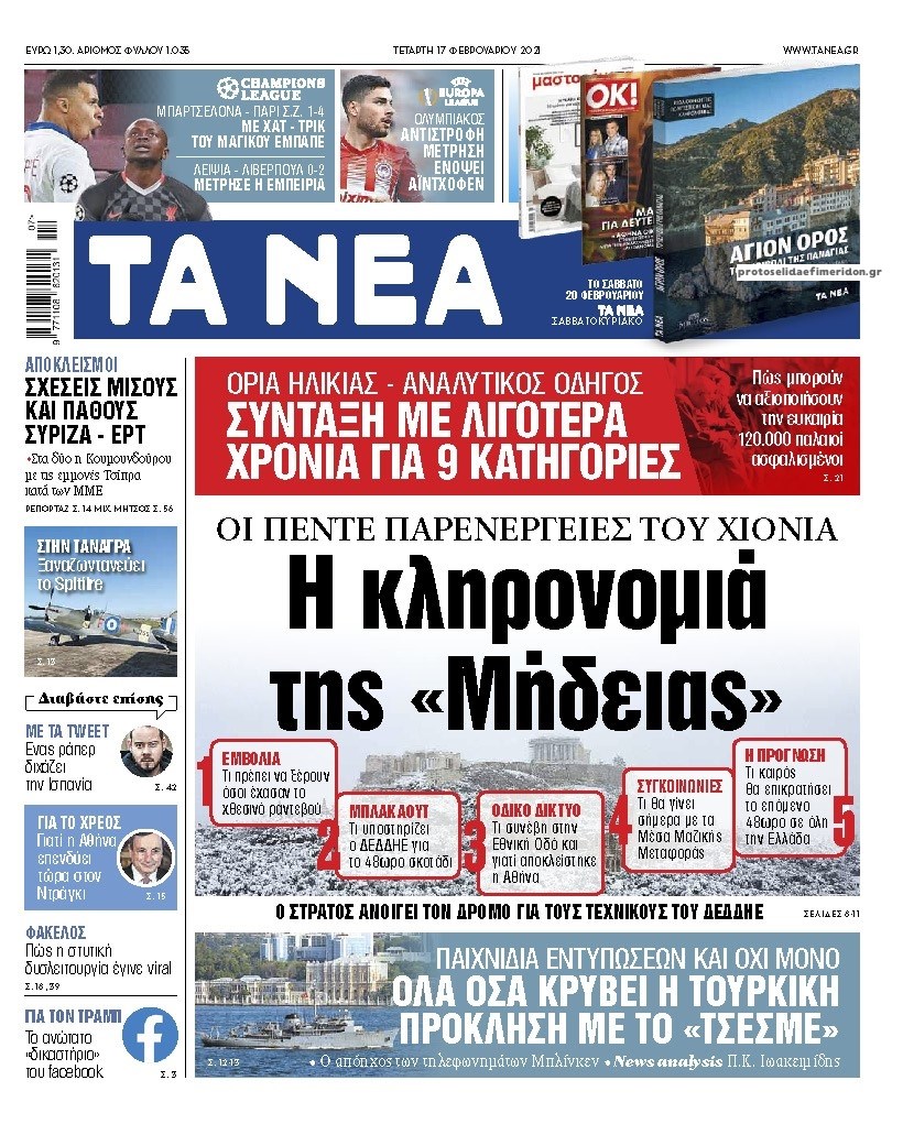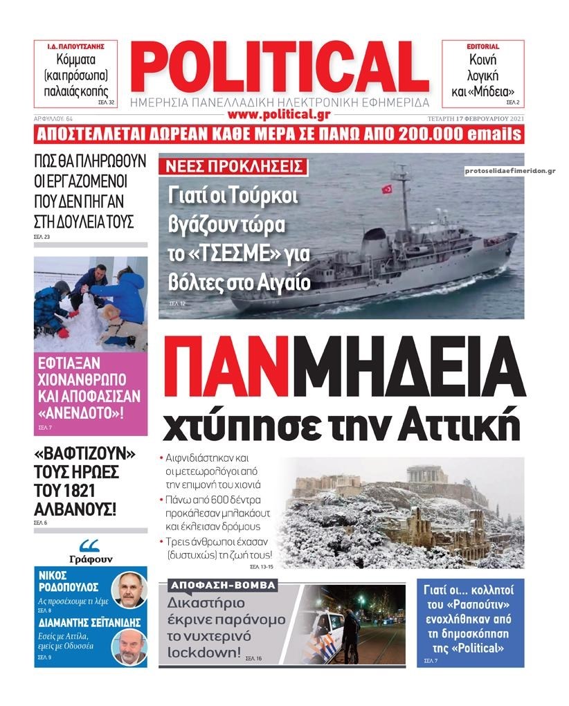 Οι πολιτικές εφημερίδες 17/2/2021 Σήφης Γαρυφαλάκης 06:36, Τετάρτη 17 Φεβρουαρίου 2021 Media Διαβάστε τα πρωτοσέλιδα των πολιτικών εφημερίδων… ΕΦΗΜΕΡΙΔΕΣ ΠΟΛΙΤΙΚΕΣ ΕΦΗΜΕΡΙΔΕΣ ΠΡΩΤΟΣΕΛΙΔΑ ΠΡΩΤΟΣΕΛΙΔΑ ΕΦΗΜΕΡΙΔΩΝ Μοιράσου το: σχολίασε κι εσύ (0 σχόλια) Ακολουθήστε το enikos.gr στο Google News και μάθετε πρώτοι όλες τις ειδήσεις Δείτε όλες τις τελευταίες ειδήσεις από την Ελλάδα και τον Κόσμο στο enikos.gr Ειδήσεις Ροή Ειδήσεων 34 λεπτά πριν Μητσοτάκης σε αγρότες: Είμαστε ανοιχτοί στον διάλογο, αλλά όχι στο παράλογο – Η διεκδίκηση αιτημάτων οφείλει να γίνεται με σεβασμό στο κοινωνικό σύνολο 50 λεπτά πριν Γρίπη: «Καμπανάκι» από τους επιστήμονες για έξαρση κρουσμάτων στις γιορτές – Ποιοι κινδυνεύουν και πώς προστατευόμαστε 2 ώρες πριν Γαλλία: Έτοιμοι για Χριστούγεννα στους δρόμους οι αγρότες – «Οι δεσμεύσεις της κυβέρνησης δεν είναι αρκετές» 2 ώρες πριν Φοροδιαφυγή και «κενό ΦΠΑ»: Πώς τα ψηφιακά εργαλεία έφεραν δισεκατομμύρια στα ταμεία του Δημοσίου 3 ώρες πριν Τζορτζ Κλούνεϊ: Πέθανε η αδελφή του, Άντα Ζάιντλερ – «Η ηρωίδα μου» 43 λεπτά πριν Τα άστρα ευνοούν σκανδαλωδώς 4 ζώδια – «Εμφανίζονται ξαφνικά ευκαιρίες γιατί αποφασίζετε να αφήσετε πίσω το παρελθόν» 2 ώρες πριν Οι γονείς της θέλουν να έχουν πρόσβαση στον τραπεζικό της λογαριασμό – «Επιμένουν πως στις οικογένειες δεν υπάρχουν μυστικά» 2 ώρες πριν Αρχαιολόγοι ανακάλυψαν κάτι που δεν περίμεναν: Τα μαθηματικά υπήρχαν πριν από τους αριθμούς – Το μυστικό που κρύβεται πίσω από περίεργα αγγεία 8.000 ετών 1 ημέρα πριν Enerwave: Το νέο «ρεύμα» στη λιανική ενέργειας που αλλάζει την εμπειρία του καταναλωτή 9 λεπτά πριν Τηλεθέαση (20/12): Πρωτιά για το The Voice στην prime time – Τα ποσοστά στο δυναμικό και στο γενικό σύνολο 14 λεπτά πριν Συναγερμός στην Σκύρο – Ακυβέρνητο δεξαμενόπλοιο λόγω μπλακ άουτ 17 λεπτά πριν Σοκ στις Πινακάτες: Νεκρός ο πρόεδρος του χωριού Νίκος Παππάς – Κατέρρευσε μπροστά στη σύζυγο και τα παιδιά του 26 λεπτά πριν Πώς «ακούγονται» το Δέλτα του Αξιού και η λίμνη Ορεστιάδα; Οι πρώτες ηχογραφήσεις των επιστημόνων δείχνουν κάτι απρόσμενο 34 λεπτά πριν Μητσοτάκης σε αγρότες: Είμαστε ανοιχτοί στον διάλογο, αλλά όχι στο παράλογο – Η διεκδίκηση αιτημάτων οφείλει να γίνεται με σεβασμό στο κοινωνικό σύνολο ENIKOS NETWORK Έχετε καταρροή και φαγούρα στα μάτια στις γιορτές; Μπορεί να ευθύνεται το σύνδρομο χριστουγεννιάτικου δέντρου Η Danielle Fishel μετά τη διάγνωση καρκίνου του μαστού: «Είμαι καλά και νιώθω ευγνωμοσύνη» Ανοιχτά τα καταστήματα σήμερα – Μέχρι τι ώρα μπορείτε να κάνετε τις αγορές σας Πρωτοχρονιά 2026: Πόσο θα κοστίσει φέτος η βασιλόπιτα – Οι τιμές σε ζαχαροπλαστεία, φούρνους και σούπερ μάρκετ Χαρτογραφώντας το «σημείο χωρίς επιστροφή»: Για πρώτη φορά αποκαλύπτεται με λεπτομέρεια το ακανθώδες όριο της ατμόσφαιρας τ... Η Google καταργεί τη λειτουργία «dark web report» – Πώς θα μπορούν οι χρήστες να διαγράφουν τα δεδομένα τους περισσότερα 09:43 , Κυριακή 21 Δεκεμβρίου 2025 Το λάθος στην ταινία Die Hard που άφησε άναυδους τους θαυμαστές του Μπρους Γουίλις Ένας φανατικός των ταινιών άφησε άναυδους τους θαυμαστές του Die Hard, επισημαίνοντας τρία βασ... 08:13 , Κυριακή 21 Δεκεμβρίου 2025 Άγιος έρωτας: Ένας καταστροφικός σεισμός χτυπά τη Στέρνα Καταιγιστικές είναι οι εξελίξεις στα δυο τελευταία, συγκλονιστικά επεισόδια του 2025 της σειρά... 08:00 , Κυριακή 21 Δεκεμβρίου 2025 Σήμερα με τη Realnews: Ό,τι και αν αγοράσεις, σκανάρεις και κερδίζεις! Σήμερα με τη Realnews: Ό,τ