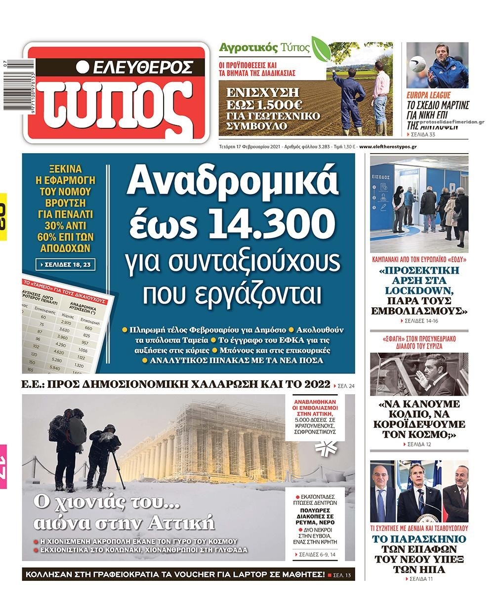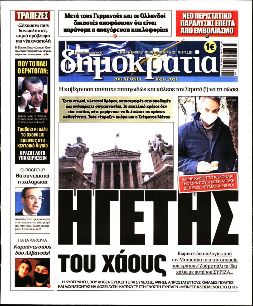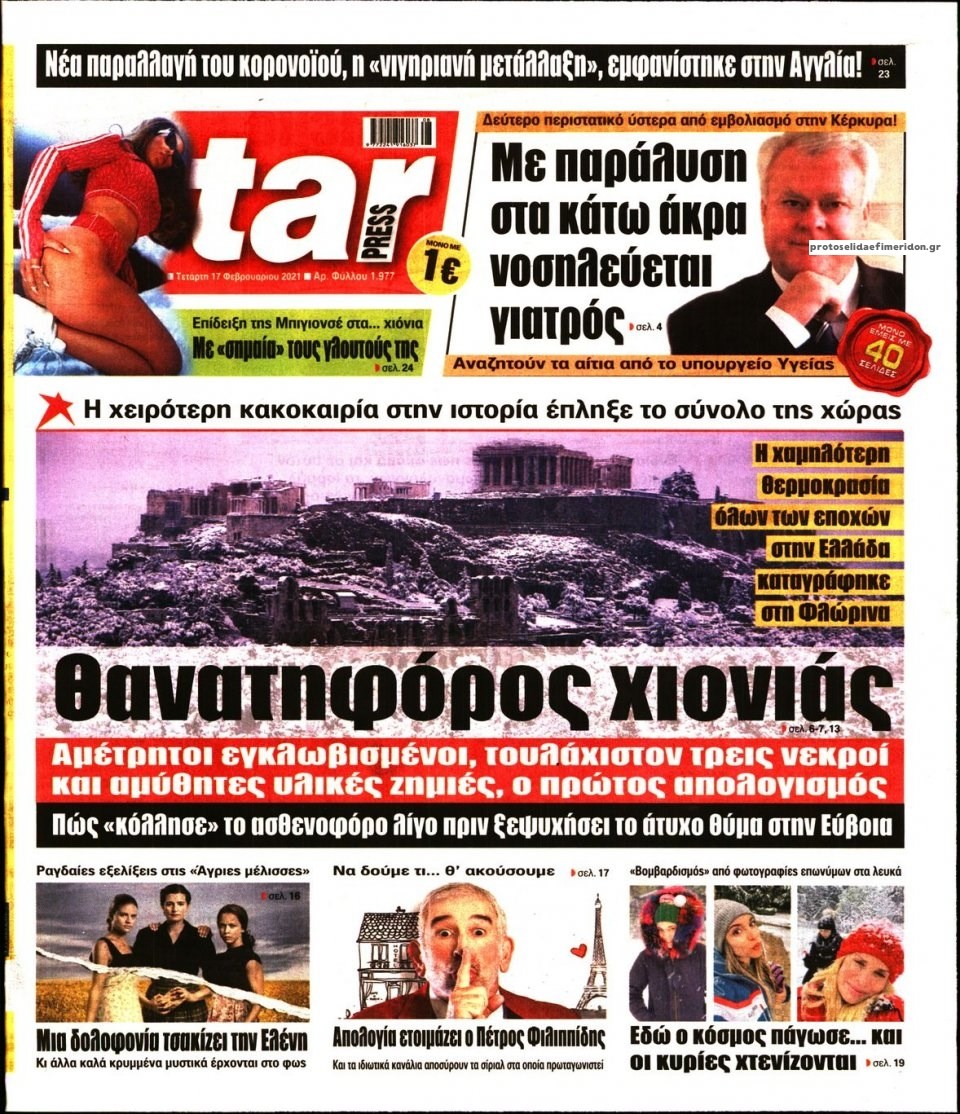 Οι πολιτικές εφημερίδες 17/2/2021 Σήφης Γαρυφαλάκης 06:36, Τετάρτη 17 Φεβρουαρίου 2021 Media Διαβάστε τα πρωτοσέλιδα των πολιτικών εφημερίδων… ΕΦΗΜΕΡΙΔΕΣ ΠΟΛΙΤΙΚΕΣ ΕΦΗΜΕΡΙΔΕΣ ΠΡΩΤΟΣΕΛΙΔΑ ΠΡΩΤΟΣΕΛΙΔΑ ΕΦΗΜΕΡΙΔΩΝ Μοιράσου το: σχολίασε κι εσύ (0 σχόλια) Ακολουθήστε το enikos.gr στο Google News και μάθετε πρώτοι όλες τις ειδήσεις Δείτε όλες τις τελευταίες ειδήσεις από την Ελλάδα και τον Κόσμο στο enikos.gr Ειδήσεις Ροή Ειδήσεων 34 λεπτά πριν Μητσοτάκης σε αγρότες: Είμαστε ανοιχτοί στον διάλογο, αλλά όχι στο παράλογο – Η διεκδίκηση αιτημάτων οφείλει να γίνεται με σεβασμό στο κοινωνικό σύνολο 50 λεπτά πριν Γρίπη: «Καμπανάκι» από τους επιστήμονες για έξαρση κρουσμάτων στις γιορτές – Ποιοι κινδυνεύουν και πώς προστατευόμαστε 2 ώρες πριν Γαλλία: Έτοιμοι για Χριστούγεννα στους δρόμους οι αγρότες – «Οι δεσμεύσεις της κυβέρνησης δεν είναι αρκετές» 2 ώρες πριν Φοροδιαφυγή και «κενό ΦΠΑ»: Πώς τα ψηφιακά εργαλεία έφεραν δισεκατομμύρια στα ταμεία του Δημοσίου 3 ώρες πριν Τζορτζ Κλούνεϊ: Πέθανε η αδελφή του, Άντα Ζάιντλερ – «Η ηρωίδα μου» 43 λεπτά πριν Τα άστρα ευνοούν σκανδαλωδώς 4 ζώδια – «Εμφανίζονται ξαφνικά ευκαιρίες γιατί αποφασίζετε να αφήσετε πίσω το παρελθόν» 2 ώρες πριν Οι γονείς της θέλουν να έχουν πρόσβαση στον τραπεζικό της λογαριασμό – «Επιμένουν πως στις οικογένειες δεν υπάρχουν μυστικά» 2 ώρες πριν Αρχαιολόγοι ανακάλυψαν κάτι που δεν περίμεναν: Τα μαθηματικά υπήρχαν πριν από τους αριθμούς – Το μυστικό που κρύβεται πίσω από περίεργα αγγεία 8.000 ετών 1 ημέρα πριν Enerwave: Το νέο «ρεύμα» στη λιανική ενέργειας που αλλάζει την εμπειρία του καταναλωτή 9 λεπτά πριν Τηλεθέαση (20/12): Πρωτιά για το The Voice στην prime time – Τα ποσοστά στο δυναμικό και στο γενικό σύνολο 14 λεπτά πριν Συναγερμός στην Σκύρο – Ακυβέρνητο δεξαμενόπλοιο λόγω μπλακ άουτ 17 λεπτά πριν Σοκ στις Πινακάτες: Νεκρός ο πρόεδρος του χωριού Νίκος Παππάς – Κατέρρευσε μπροστά στη σύζυγο και τα παιδιά του 26 λεπτά πριν Πώς «ακούγονται» το Δέλτα του Αξιού και η λίμνη Ορεστιάδα; Οι πρώτες ηχογραφήσεις των επιστημόνων δείχνουν κάτι απρόσμενο 34 λεπτά πριν Μητσοτάκης σε αγρότες: Είμαστε ανοιχτοί στον διάλογο, αλλά όχι στο παράλογο – Η διεκδίκηση αιτημάτων οφείλει να γίνεται με σεβασμό στο κοινωνικό σύνολο ENIKOS NETWORK Έχετε καταρροή και φαγούρα στα μάτια στις γιορτές; Μπορεί να ευθύνεται το σύνδρομο χριστουγεννιάτικου δέντρου Η Danielle Fishel μετά τη διάγνωση καρκίνου του μαστού: «Είμαι καλά και νιώθω ευγνωμοσύνη» Ανοιχτά τα καταστήματα σήμερα – Μέχρι τι ώρα μπορείτε να κάνετε τις αγορές σας Πρωτοχρονιά 2026: Πόσο θα κοστίσει φέτος η βασιλόπιτα – Οι τιμές σε ζαχαροπλαστεία, φούρνους και σούπερ μάρκετ Χαρτογραφώντας το «σημείο χωρίς επιστροφή»: Για πρώτη φορά αποκαλύπτεται με λεπτομέρεια το ακανθώδες όριο της ατμόσφαιρας τ... Η Google καταργεί τη λειτουργία «dark web report» – Πώς θα μπορούν οι χρήστες να διαγράφουν τα δεδομένα τους περισσότερα 09:43 , Κυριακή 21 Δεκεμβρίου 2025 Το λάθος στην ταινία Die Hard που άφησε άναυδους τους θαυμαστές του Μπρους Γουίλις Ένας φανατικός των ταινιών άφησε άναυδους τους θαυμαστές του Die Hard, επισημαίνοντας τρία βασ... 08:13 , Κυριακή 21 Δεκεμβρίου 2025 Άγιος έρωτας: Ένας καταστροφικός σεισμός χτυπά τη Στέρνα Καταιγιστικές είναι οι εξελίξεις στα δυο τελευταία, συγκλονιστικά επεισόδια του 2025 της σειρά... 08:00 , Κυριακή 21 Δεκεμβρίου 2025 Σήμερα με τη Realnews: Ό,τι και αν αγοράσεις, σκανάρεις και κερδίζεις! Σήμερα με τη Realnews: Ό,τ