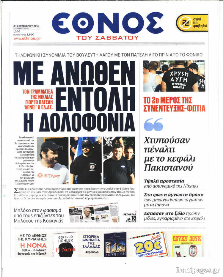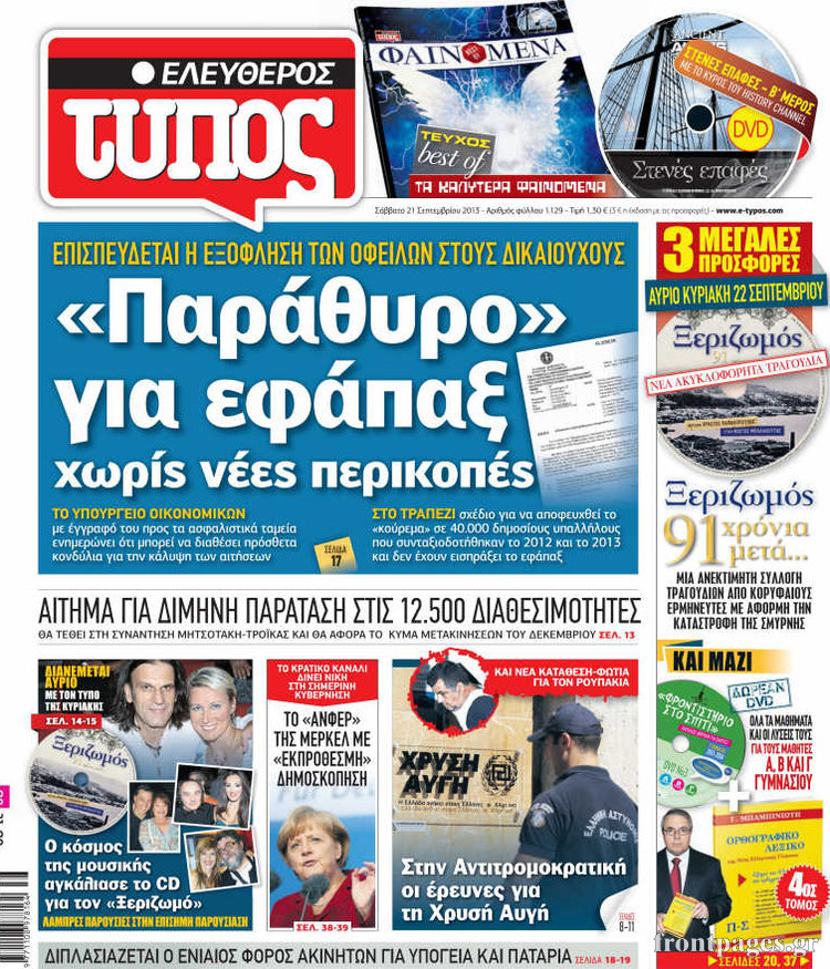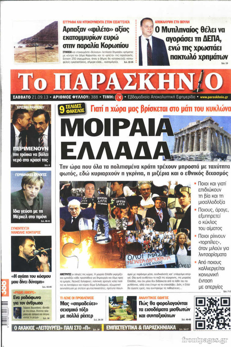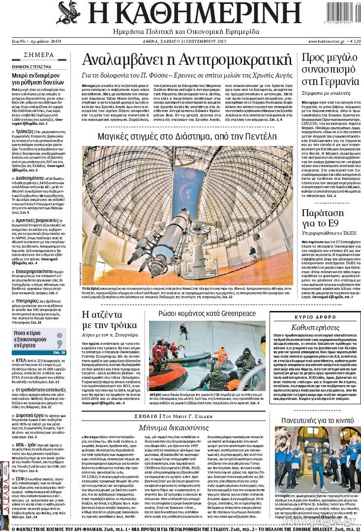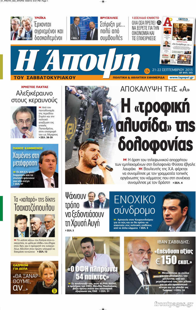Οι πολιτικές εφημερίδες Enikos Newsroom 08:31, Σάββατο 21 Σεπτεμβρίου 2013 Media Οι πολιτικές εφημερίδες Διαβάστε τα πρωτοσέλιδα των πολιτικών εφημερίδων: ΕΦΗΜΕΡΙΔΕΣ ΠΟΛΙΤΙΚΕΣ ΕΦΗΜΕΡΙΔΕΣ ΠΡΩΤΟΣΕΛΙΔΑ Μοιράσου το: σχολίασε κι εσύ (0 σχόλια) Ακολουθήστε το enikos.gr στο Google News και μάθετε πρώτοι όλες τις ειδήσεις Δείτε όλες τις τελευταίες ειδήσεις από την Ελλάδα και τον Κόσμο στο enikos.gr Ειδήσεις Ροή Ειδήσεων 3 ώρες πριν Κύκλωμα διακίνησης ναρκωτικών σε σχολεία: Βίντεο ντοκουμέντο από τα βασανιστήρια στους ανήλικους – Συζητούσαν για το πώς θα κάνουν «ξέπλυμα χρήματος» 2 ώρες πριν Κλιμακώνουν τις κινητοποιήσεις τους οι αγρότες: Κλείνουν τη Δευτέρα τις σήραγγες των Τεμπών για τα φορτηγά – Ανοίγουν την Τρίτη τους δρόμους για τους εκδρομείς 3 ώρες πριν Αιματηρό επεισόδιο στον Άγιο Παντελεήμονα – Δύο τραυματίες, αναζητείται ο δράστης 2 ώρες πριν ΗΠΑ: Αυξάνουν την πίεση στην Βενεζουέλα – Το νέο ρεσάλτο σε τάνκερ και ο στόχος του Τραμπ 3 ώρες πριν Κασσελάκης για παραίτηση Μάλαμα: «Η πορεία μας δεν θα καθοριστεί από μεμονωμένα πρόσωπα, μηχανισμούς και προσωπικές ατζέντες» 3 ώρες πριν Ύπνος: Τι είναι ο «κανόνας 3-3-3» που χρησιμοποιεί ένας γιατρός για να ξεχωρίσει την κόπωση από την αϋπνία 4 ώρες πριν Αριθμολογία: Οι άνθρωποι που έχουν γεννηθεί αυτές τις 4 ημερομηνίες, είναι οι πιο πιστοί και αφοσιωμένοι σύντροφοι 2 ώρες πριν Αρχαιολογικό θρίλερ στην καρδιά της Ευρώπης: Παράξενο θραύσμα με ανάγλυφα και σφηνοειδή γραφή ανακαλύφθηκε σε μέρος που δεν περίμενε κανείς 2 ημέρες πριν Enerwave: Το νέο «ρεύμα» στη λιανική ενέργειας που αλλάζει την εμπειρία του καταναλωτή 12 λεπτά πριν Νείλος: Νεκρή μία 47χρονη Ιταλίδα έπειτα από σύγκρουση δύο κρουαζιερόπλοιων 27 λεπτά πριν Τζέιμς Ράνσον: Πέθανε σε ηλικία 46 ετών ο Αμερικανός ηθοποιός – Γνωστός για την συμμετοχή του στην σειρά «The Wire» 42 λεπτά πριν Πέθανε ο Rosa von Praunheim – Πρωτοπόρος του queer κινηματογράφου και της γκέι απελευθέρωσης 54 λεπτά πριν MasterChef: Στον… αέρα το τρέιλερ του 10ου κύκλου – ΒΙΝΤΕΟ 1 ώρα πριν Περιστέρι: Έφοδος της Αστυνομίας σε νυχτερινό κέντρο που σέρβιρε αλκοόλ σε ανήλικους – Μία σύλληψη ENIKOS NETWORK Οι γυναίκες έχουν βρει μια νέα απόλαυση στην κρεβατοκάμαρα που οι περισσότεροι άνδρες αγνοούν Christmas glow: 5 χρυσές συμβουλές για επιδερμίδα που λάμπει από ομορφιά τα Χριστούγεννα Νέο έτος ρεκόρ για τον ελληνικό τουρισμό το 2025: «Είμαστε μέσα στους 10 πλέον επισκέψιμους προορισμούς παγκοσμίως» λέει η ... Τιμές καυσίμων: Πόσο θα πληρώσουν οι εκδρομείς των Χριστουγέννων – Το κόστος μετακινήσεων σε δημοφιλείς προορισμούς Χαρτογραφώντας το «σημείο χωρίς επιστροφή»: Για πρώτη φορά αποκαλύπτεται με λεπτομέρεια το ακανθώδες όριο της ατμόσφαιρας τ... Η Google καταργεί τη λειτουργία «dark web report» – Πώς θα μπορούν οι χρήστες να διαγράφουν τα δεδομένα τους περισσότερα 00:13 , Δευτέρα 22 Δεκεμβρίου 2025 MasterChef: Στον… αέρα το τρέιλερ του 10ου κύκλου – ΒΙΝΤΕΟ Κυκλοφόρησε το τρέιλερ για τον 10ο κύκλο του MasterChef, σηματοδοτώντας την επιστροφή του δημο... 21:30 , Κυριακή 21 Δεκεμβρίου 2025 Ο Δικαστής: Στα χέρια της Αστυνομίας βίντεο, που ανατρέπει όλα τα δεδομένα – Στενεύει ο κλοιός γύρω από τον Δικαστή Καταιγιστικές εξελίξεις στο τελευταίο επεισόδιο της χρονιάς της σειράς “Ο Δικαστής”... 17:18 , Κυριακή 21 Δεκεμβρίου 2025 «Η Μεγάλη Χίμαιρα»: Μάγεψε το κοινό κατά την avant-première της προβολής της Την Πρωτοχρονιά (Πέμπτη 1η Ιανουαρίου 2026) στο ERTFLIX θα γίνει η πρεμιέρα της πολυαναμεν