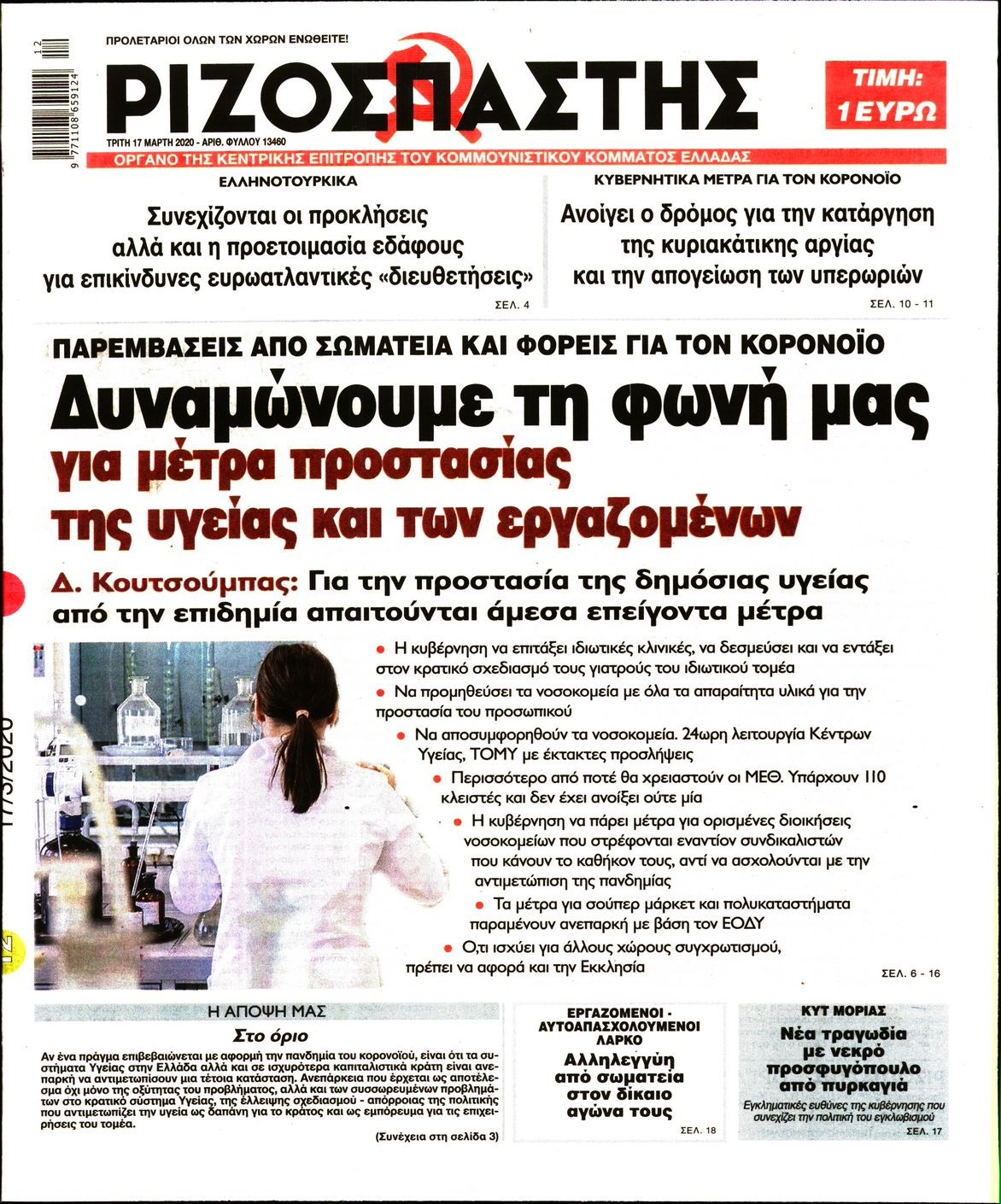 Οι πολιτικές εφημερίδες 17/3/2020 Διονύσης Νίκκας 06:07, Τρίτη 17 Μαρτίου 2020 Media Διαβάστε τα πρωτοσέλιδα των πολιτικών εφημερίδων… ΠΟΛΙΤΙΚΕΣ ΕΦΗΜΕΡΙΔΕΣ ΠΡΩΤΟΣΕΛΙΔΑ Μοιράσου το: σχολίασε κι εσύ (0 σχόλια) Ακολουθήστε το enikos.gr στο Google News και μάθετε πρώτοι όλες τις ειδήσεις Δείτε όλες τις τελευταίες ειδήσεις από την Ελλάδα και τον Κόσμο στο enikos.gr Ειδήσεις Ροή Ειδήσεων 2 ώρες πριν Καμία «ανακωχή» για τους αγρότες: Γενική συνέλευση σήμερα στο μπλόκο της Νίκαιας – Ο σχεδιασμός για ανοιχτούς δρόμους τα Χριστούγεννα 1 ώρα πριν Γαλλία: Έτοιμοι για Χριστούγεννα στους δρόμους οι αγρότες – «Οι δεσμεύσεις της κυβέρνησης δεν είναι αρκετές» 60 λεπτά πριν Επιχείρηση διάσωσης στον Όλυμπο – Ορειβάτης εγκλωβίστηκε και έδωσε στίγμα μέσω 112 3 ώρες πριν LEGEND: Ο διάδοχος της φρεγάτας Constellation έρχεται από την ακτοφυλακή των ΗΠΑ 2 ώρες πριν Τζορτζ Κλούνεϊ: Πέθανε η αδελφή του, Άντα Ζάιντλερ – «Η ηρωίδα μου» 4 ώρες πριν Μήλο vs μπανάνα: Ποιο φρούτο έχει περισσότερες φυτικές ίνες, σύμφωνα με διαιτολόγους – Τα οφέλη τους για την υγεία 59 λεπτά πριν Οι γονείς της θέλουν να έχουν πρόσβαση στον τραπεζικό της λογαριασμό – «Επιμένουν πως στις οικογένειες δεν υπάρχουν μυστικά» 1 ώρα πριν Αρχαιολόγοι ανακάλυψαν κάτι που δεν περίμεναν: Τα μαθηματικά υπήρχαν πριν από τους αριθμούς – Το μυστικό που κρύβεται πίσω από περίεργα αγγεία 8.000 ετών 1 ημέρα πριν Enerwave: Το νέο «ρεύμα» στη λιανική ενέργειας που αλλάζει την εμπειρία του καταναλωτή 2 λεπτά πριν Γρίπη: «Καμπανάκι» από τους επιστήμονες για έξαρση κρουσμάτων στις γιορτές – Ποιοι κινδυνεύουν και πώς προστατευόμαστε 10 λεπτά πριν Πυροβολισμοί στη Νότια Αφρική: Τουλάχιστον εννέα άνθρωποι σκοτώθηκαν κοντά στο Γιοχάνεσμπουργκ 18 λεπτά πριν Το λάθος στην ταινία Die Hard που άφησε άναυδους τους θαυμαστές του Μπρους Γουίλις 25 λεπτά πριν Κόντρα Τζάκρη – Μυλωνάκη: «Θα περίμενε κανείς να απολογείται για τον ΟΠΕΚΕΠΕ» – «Κάθε λέξη της και ένα νέο ψέμα, είναι γυρολόγος της πολιτικής» 33 λεπτά πριν Η οικογενειακή διαμάχη των Μπέκαμ: Το block από τον Μπρούκλιν και η απόφαση να περάσει τα Χριστούγεννα με τους δισεκατομμυριούχους γονείς της συζύγου του ENIKOS NETWORK Έχετε καταρροή και φαγούρα στα μάτια στις γιορτές; Μπορεί να ευθύνεται το σύνδρομο χριστουγεννιάτικου δέντρου Η Danielle Fishel μετά τη διάγνωση καρκίνου του μαστού: «Είμαι καλά και νιώθω ευγνωμοσύνη» Πρωτοχρονιά 2026: Πόσο θα κοστίσει φέτος η βασιλόπιτα – Οι τιμές σε ζαχαροπλαστεία, φούρνους και σούπερ μάρκετ «Πολεμική» προετοιμασία από την ευρωπαϊκή βιομηχανία ενέργειας – Η Eurelectric ζητεί «ομπρέλα» προστασίας για τις υποδομές Χαρτογραφώντας το «σημείο χωρίς επιστροφή»: Για πρώτη φορά αποκαλύπτεται με λεπτομέρεια το ακανθώδες όριο της ατμόσφαιρας τ... Η Google καταργεί τη λειτουργία «dark web report» – Πώς θα μπορούν οι χρήστες να διαγράφουν τα δεδομένα τους περισσότερα 09:43 , Κυριακή 21 Δεκεμβρίου 2025 Το λάθος στην ταινία Die Hard που άφησε άναυδους τους θαυμαστές του Μπρους Γουίλις Ένας φανατικός των ταινιών άφησε άναυδους τους θαυμαστές του Die Hard, επισημαίνοντας τρία βασ... 08:13 , Κυριακή 21 Δεκεμβρίου 2025 Άγιος έρωτας: Ένας καταστροφικός σεισμός χτυπά τη Στέρνα Καταιγιστικές είναι οι εξελίξεις στα δυο τελευταία, συγκλονιστικά επεισόδια του 2025 της σειρά... 08:00 , Κυριακή 21 Δεκεμβρίου 2025 Σήμερα με τη Realnews: Ό,τι και αν αγοράσεις, σκανάρεις και κερδίζεις! Σήμερα με τη Realnews: Ό,τι και αν αγοράσεις, σκανάρεις και κερδίζεις! Με το PAD