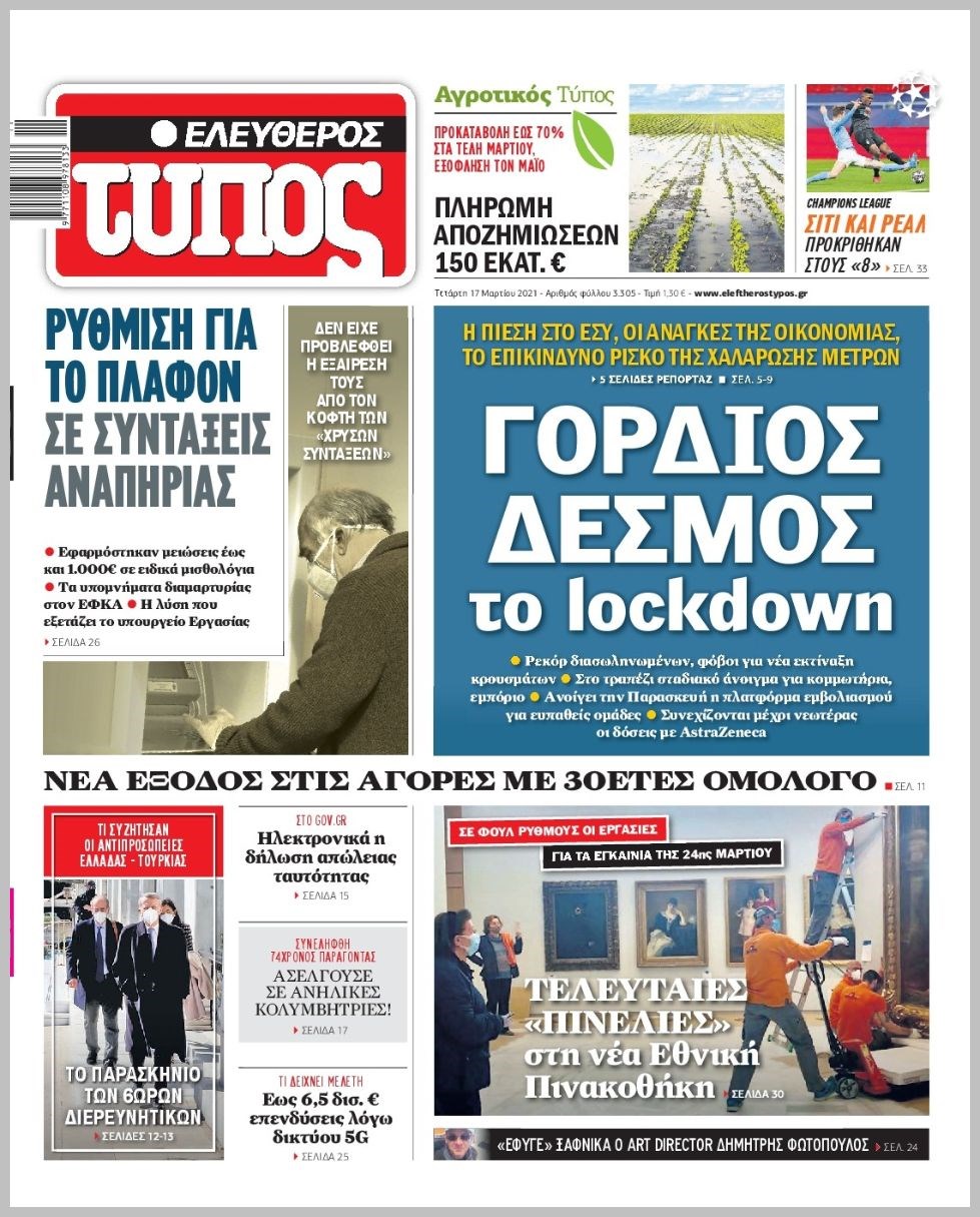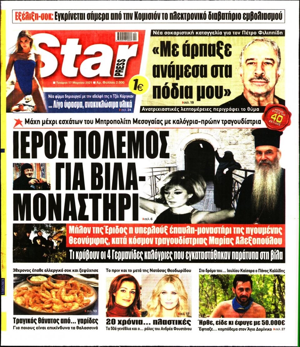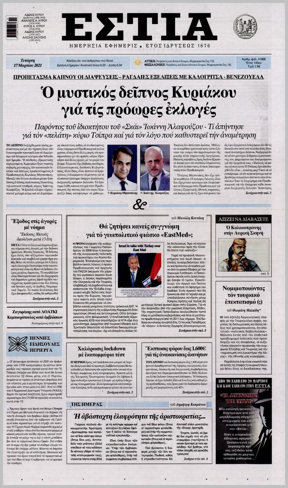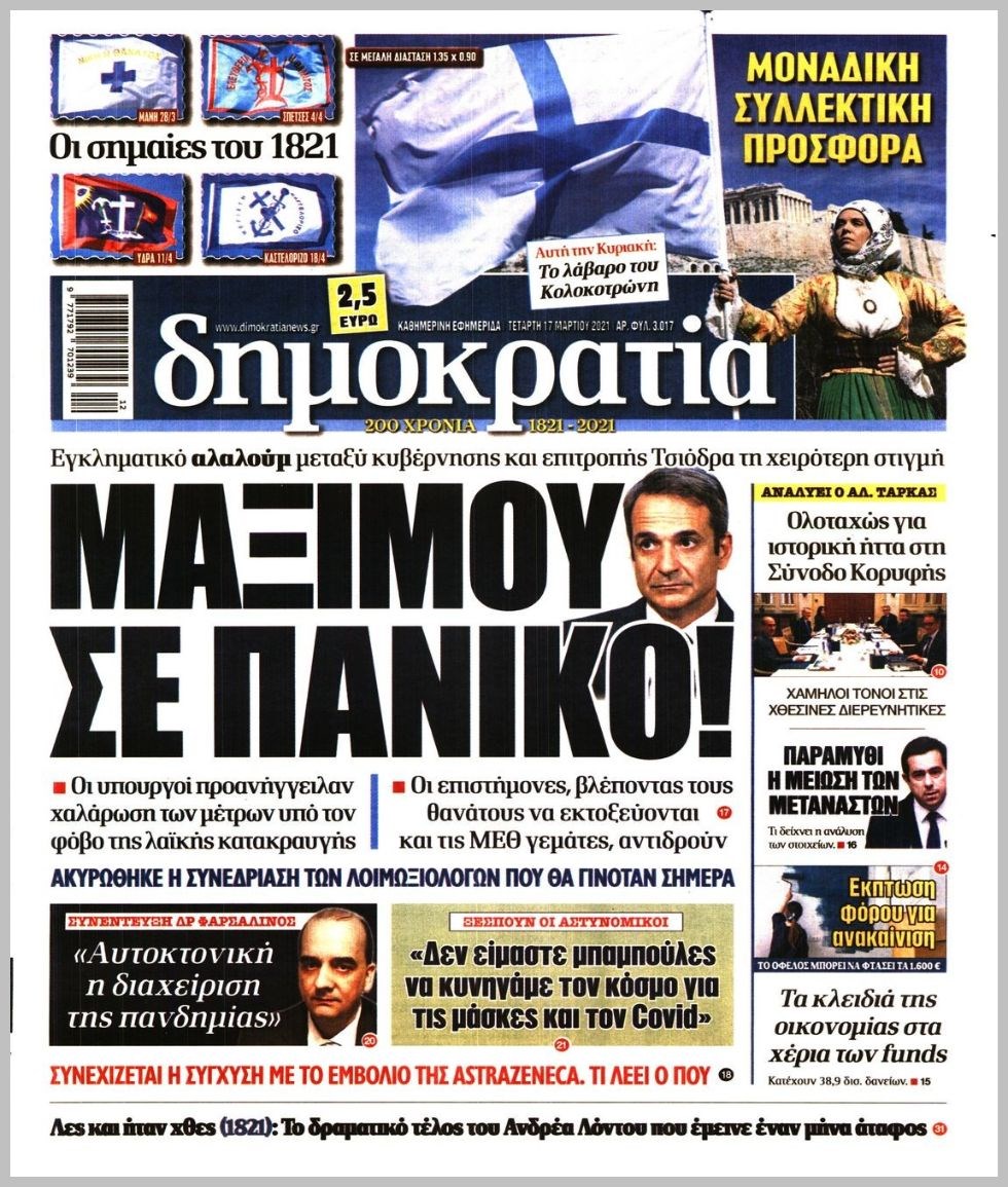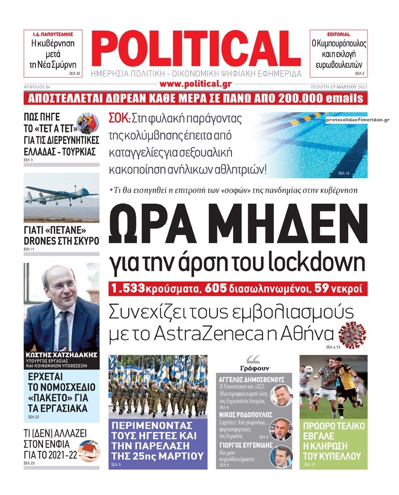 Οι πολιτικές εφημερίδες 17/3/2021 Διονύσης Νίκκας 06:10, Τετάρτη 17 Μαρτίου 2021 Media Διαβάστε τα πρωτοσέλιδα των πολιτικών εφημερίδων… ΕΦΗΜΕΡΙΔΕΣ ΠΟΛΙΤΙΚΕΣ ΕΦΗΜΕΡΙΔΕΣ ΠΡΩΤΟΣΕΛΙΔΑ Μοιράσου το: σχολίασε κι εσύ (0 σχόλια) Ακολουθήστε το enikos.gr στο Google News και μάθετε πρώτοι όλες τις ειδήσεις Δείτε όλες τις τελευταίες ειδήσεις από την Ελλάδα και τον Κόσμο στο enikos.gr Ειδήσεις Ροή Ειδήσεων 2 ώρες πριν Χριστούγεννα στα μπλόκα: Επιμένουν στις κινητοποιήσεις τους οι αγρότες – Ανοίγουν τα διόδια το Σαββατοκύριακο 2 ώρες πριν Ουκρανία: Η άνευ προηγουμένου επίθεση σε ρωσικό τάνκερ στη Μεσόγειο και το μήνυμα προς στον Πούτιν – Το «μακρύ χέρι» του Κιέβου 2 ώρες πριν Πούτιν: Τα μηνύματα σε Ευρώπη και ΝΑΤΟ από το μαραθώνιο «σόου» του – Η απαίτηση για «σεβασμό» και η ειρήνη «με τους όρους» της Μόσχας 3 ώρες πριν Τραμπ: Δεν αποκλείει την πιθανότητα ενός πολέμου στη Βενεζουέλα – «Ο Μαδούρο ξέρει καλύτερα από τον καθένα τι ακριβώς θέλω» 3 ώρες πριν Συνεχίζει να προκαλεί ο Μίτσκοσκι: «Για μένα το όνομα Μακεδονία είναι ιερό» 2 ώρες πριν Ανακαλύφθηκαν αρχαία χρυσά νομίσματα 2.200 ετών που απεικονίζουν τον θεό Απόλλωνα – Η άγνωστη σύνδεση με τον Φίλιππο Β΄ της Μακεδονίας 3 ώρες πριν Ύπνος: Μια κρυφή κατάσταση του εγκεφάλου πριν από τον ύπνο μπορεί να είναι το “κλειδί” για υψηλή ευφυΐα και δημιουργικότητα 4 ώρες πριν Αριθμολογία: Οι άνθρωποι που έχουν γεννηθεί αυτές τις 4 ημερομηνίες, συχνά παρεξηγούνται – «Η καλοσύνη τους κρύβει τεράστια δύναμη» 5 ώρες πριν Ξεχάστε το καθάρισμα το Σαββατοκύριακο: Ο «κανόνας των 20 λεπτών» που θα σας λύσει τα χέρια 15 λεπτά πριν Φαίη Σκορδά: «Παλιότερα τα κομπλιμέντα τα προσπερνούσα, τώρα τα έχω ανάγκη» 31 λεπτά πριν Βασίλης Σπανούλης: Δεν εμφανίστηκε ούτε ένας δημοσιογράφος στην συνέντευξη Τύπου – «Καλησπέρα στον… κανέναν», δείτε βίντεο 42 λεπτά πριν Πόλεμος στην Ουκρανία: Εφτά νεκροί από ρωσική πυραυλική επίθεση στο λιμάνι της Οδησσού 46 λεπτά πριν ΗΠΑ: Η κυβέρνηση του Ντόναλντ Τραμπ άρχισε να δημοσιοποιεί τα αρχεία Έπσταϊν 57 λεπτά πριν Σάμος: Άνοιξε το μπλόκο των αγροτών στον κόμβο Κοκκαρίου – Σε νέα συνεδρίαση θα καθορίσουν την στάση τους ENIKOS NETWORK Το ΕΚΑΒ τιμήθηκε από την Ακαδημία Αθηνών για τα 40 χρόνια προσφοράς του Έχετε πραγματικά μεγάλη καρδιά; 10 χαρακτηριστικά όσων έχουν καλοσύνη Αναστολή μέτρων αναγκαστικής εκτέλεσης για κτηνοτρόφους που πλήττονται από την ευλογιά των αιγοπροβάτων Πλήρης επάρκεια προϊόντων στις λαϊκές της Αττικής, παρά τις αγροτικές κινητοποιήσεις – Τι απαντούν οι πωλητές Χαρτογραφώντας το «σημείο χωρίς επιστροφή»: Για πρώτη φορά αποκαλύπτεται με λεπτομέρεια το ακανθώδες όριο της ατμόσφαιρας τ... Η Google καταργεί τη λειτουργία «dark web report» – Πώς θα μπορούν οι χρήστες να διαγράφουν τα δεδομένα τους περισσότερα 22:42 , Παρασκευή 19 Δεκεμβρίου 2025 Γιώργος Γιαννόπουλος για “Το σόι σου”: “Είναι ευτυχία και ευλογία αυτή η σειρά” «Είναι ευτυχία και ευλογία η συγκυρία αυτής της σειράς», θα πει ο Γιώργος Γιαννόπουλος -ο αγαπ... 20:37 , Παρασκευή 19 Δεκεμβρίου 2025 Don’t Forget The Lyrics: Η Έλλη Κοκκίνου υποδέχεται 4 παίκτες που θα κάνουν τα πάντα για να μη χάσουν ούτε… μισή λέξη από τους στίχους Το «Don’t Forget The Lyrics» επιστρέφει απόψε, Παρασκευή 19 Δεκεμβρίου, στις 21:00 με νέο επει... 19:31 , Παρασκευή 19 Δεκεμβρίου 2025 GNTM: Απόψε ο μεγάλος τελικός για τους 4 φιναλίστ Έπειτα από μήνες γεμάτους μόδα, δημιουργία και έντονες αναμετρήσεις, το GNTM 2025 κορυφώνεται,