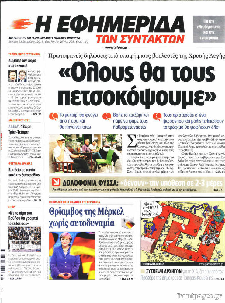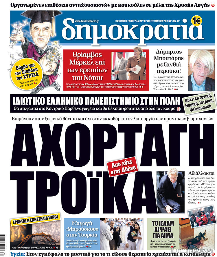 Οι πολιτικές εφημερίδες Enikos Newsroom 08:44, Δευτέρα 23 Σεπτεμβρίου 2013 Media Οι πολιτικές εφημερίδες Διαβάστε τα πρωτοσέλιδα των πολιτικών εφημερίδων: ΕΦΗΜΕΡΙΔΕΣ ΠΟΛΙΤΙΚΕΣ ΕΦΗΜΕΡΙΔΕΣ ΠΡΩΤΟΣΕΛΙΔΑ Μοιράσου το: σχολίασε κι εσύ (0 σχόλια) Ακολουθήστε το enikos.gr στο Google News και μάθετε πρώτοι όλες τις ειδήσεις Δείτε όλες τις τελευταίες ειδήσεις από την Ελλάδα και τον Κόσμο στο enikos.gr Ειδήσεις Ροή Ειδήσεων 3 ώρες πριν Άνοιξαν οι σήραγγες των Τεμπών – Οι επόμενες κινήσεις των αγροτών πριν από τα Χριστούγεννα 20 λεπτά πριν Προκλήσεις: Έστειλαν πάλι οπλισμένα F-16 στο Αιγαίο οι Τούρκοι – Παραβιάσεις και αερομαχίες 3 ώρες πριν Κώστας Ανεστίδης: Πληροφορίες ότι εστάλη εισαγγελική διάταξη για δέσμευση των περιουσιακών στοιχείων του 2 ώρες πριν Νέα Δημοκρατία: Ανακοινώθηκαν 6 ονόματα για τα ψηφοδέλτια των εκλογών του 2027 2 ώρες πριν Πέθανε ο τραγουδιστής Chris Rea σε ηλικία 74 ετών 15 λεπτά πριν Τα μυστικά του «αόρατου» φλερτ: 7 τρόποι για να δείξετε το ενδιαφέρον σας για κάποιον χωρίς να αποκαλυφθούν οι προθέσεις σας 3 ώρες πριν Αυτό το ζώδιο θα ξαναγεννηθεί το 2026 – «Αφήνετε τις δυσκολίες στο παρελθόν και κάνετε restart» 2 ημέρες πριν Enerwave: Το νέο «ρεύμα» στη λιανική ενέργειας που αλλάζει την εμπειρία του καταναλωτή 4 ώρες πριν Ιστορική ανακάλυψη στη Φυσική – Επιβεβαιώθηκε η ύπαρξη του «δεύτερου ήχου» 3 λεπτά πριν Αγρότες: Ανοίγουν το τελωνείο των Κήπων και για τα φορτηγά από απόψε έως και την Παρασκευή 4 λεπτά πριν Ποινική δίωξη για δύο κακουργήματα άσκησε ο Εισαγγελέας σε 3 αγρότες 9 λεπτά πριν Σύλλογος Πληγέντων Τεμπών για ΣΔΟΕ: «Δεν τρομοκρατούμαστε. Συνεχίζουμε!» 10 λεπτά πριν Συνάντηση Παπασταύρου – Γκιλφόιλ: Επί τάπητος οι ενεργειακές συμφωνίες μεταξύ Ελλάδας – ΗΠΑ 15 λεπτά πριν Τα μυστικά του «αόρατου» φλερτ: 7 τρόποι για να δείξετε το ενδιαφέρον σας για κάποιον χωρίς να αποκαλυφθούν οι προθέσεις σας ENIKOS NETWORK Ενεργειακή αναβάθμιση του νοσοκομείου Πατρών «Ο Άγιος Ανδρέας» ΕΟΦ: Ανάκληση παρτίδων καλλυντικών προϊόντων Προκήρυξη ΑΣΕΠ για 2.217 μόνιμες θέσεις στο Δημόσιο: Παρατείνεται η προθεσμία για τις ενστάσεις – Ποιες ειδικότητες αφορά Ευλογιά αιγοπροβάτων: Πόσα χρήματα δίνει το υπουργείο Αγροτικής Ανάπτυξης στις Περιφέρειες για λειτουργικές δαπάνες Ο Google Assistant θα παραμείνει λίγο περισσότερο για ορισμένους χρήστες Android Τεστ προσωπικότητας: Το βάζο που θα επιλέξετε αποκαλύπτει πώς λύνετε προβλήματα στη ζωή σας περισσότερα 18:39 , Δευτέρα 22 Δεκεμβρίου 2025 Να μ’αγαπάς: Ο Θεόφιλος απειλεί να καταστρέψει τη Ζωή Σοκαριστικές αποκαλύψεις έρχονται στο νέο επεισόδιο της σειράς “Να μ΄αγαπάς” απόψε... 17:48 , Δευτέρα 22 Δεκεμβρίου 2025 Βελτιωτικές κινήσεις με νέους συνεργάτες Στοχευμένες κινήσεις για την ενίσχυση του «Καλημέρα Ελλάδα» κάνει ο ΑΝΤ1 ενόψει της νέας χρονι... 16:56 , Δευτέρα 22 Δεκεμβρίου 2025 ALPHA: Θα επιμείνει στο μοντέλο της οικογενειακής κωμωδίας – Η νέα σειρά που έρχεται Στο μοντέλο της οικογενειακής κωμωδίας με εναλλαγή σειρών θα επιμείνει ο Alpha, σύμφωνα με την... 16:25 , Δευτέρα 22 Δεκεμβρίου 2025 Μελίνα Τσαμπάνη – Πέτρος Καλκόβαλης: Eπιστρέφουν το 2026, μέσα από τη συχνότητα του Mega Μέσα από τη συχνότητα του Mega θα επιστρέψουν το 2026 η Μελίνα Τσαμπάνη και ο Πέτρος Καλκόβαλη... ΤΕΛΕΥΤΑΙΕΣ ΕΙΔΗΣΕΙΣ 3 λεπτά πριν Αγρότες: Ανοίγουν το τελωνείο των Κήπων και για τα... 4 λεπτά πριν Ποινική δίωξη για δύο κακουργήματα άσκησε ο... 9 λεπτά πριν Σύλλογος Πληγέντων Τεμπών για ΣΔΟΕ: «Δεν... 10 λεπτά πριν 