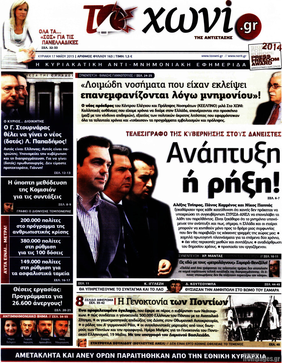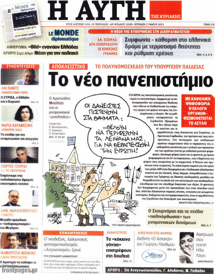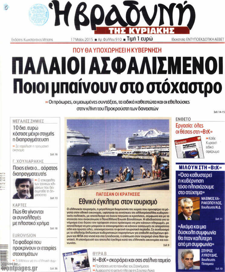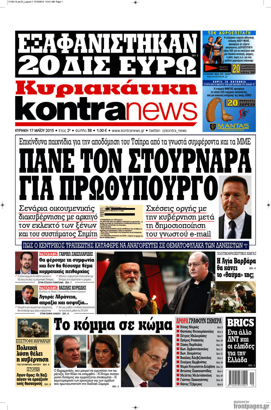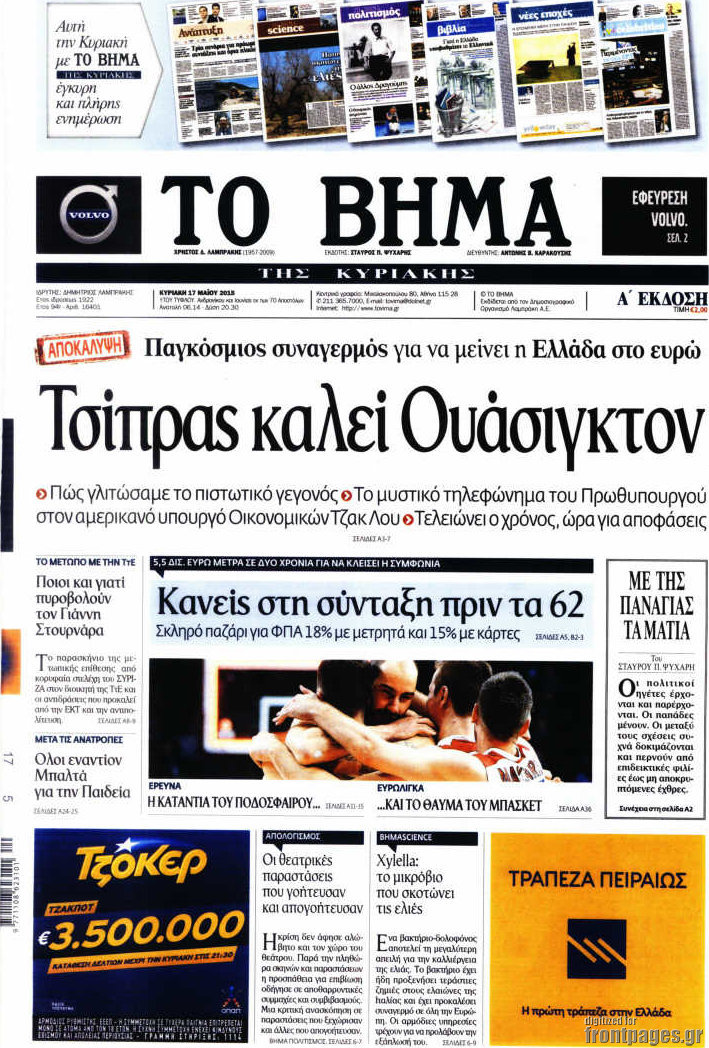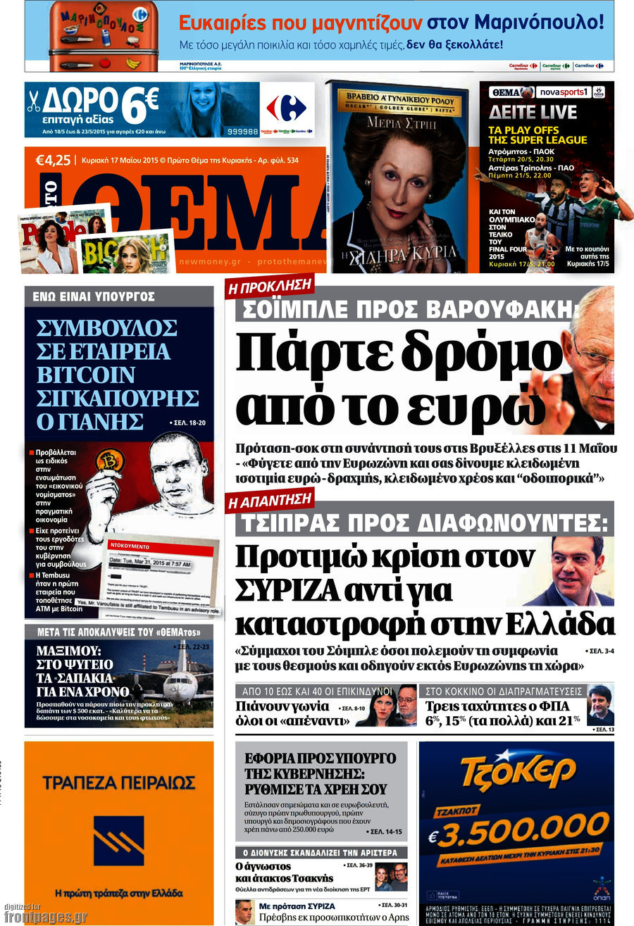 Οι πολιτικές εφημερίδες 17/5/2015 Enikos Newsroom 07:43, Κυριακή 17 Μαΐου 2015 Media Διαβάστε τα σημερινά πρωτοσέλιδα των πολιτικών εφημερίδων: ΠΟΛΙΤΙΚΕΣ ΕΦΗΜΕΡΙΔΕΣ ΠΡΩΤΟΣΕΛΙΔΑ Μοιράσου το: σχολίασε κι εσύ (0 σχόλια) Ακολουθήστε το enikos.gr στο Google News και μάθετε πρώτοι όλες τις ειδήσεις Δείτε όλες τις τελευταίες ειδήσεις από την Ελλάδα και τον Κόσμο στο enikos.gr Ειδήσεις Ροή Ειδήσεων 56 λεπτά πριν Χριστούγεννα στα μπλόκα: Επιμένουν στις κινητοποιήσεις τους οι αγρότες – Ανοίγουν τα διόδια το Σαββατοκύριακο 1 ώρα πριν Ουκρανία: Η άνευ προηγουμένου επίθεση σε ρωσικό τάνκερ στη Μεσόγειο και το μήνυμα προς στον Πούτιν – Το «μακρύ χέρι» του Κιέβου 33 λεπτά πριν Πούτιν: Τα μηνύματα σε Ευρώπη και ΝΑΤΟ από το μαραθώνιο «σόου» του – Η απαίτηση για «σεβασμό» και η ειρήνη «με τους όρους» της Μόσχας 1 ώρα πριν Τραμπ: Δεν αποκλείει την πιθανότητα ενός πολέμου στη Βενεζουέλα – «Ο Μαδούρο ξέρει καλύτερα από τον καθένα τι ακριβώς θέλω» 2 ώρες πριν Συνεχίζει να προκαλεί ο Μίτσκοσκι: «Για μένα το όνομα Μακεδονία είναι ιερό» 4 ώρες πριν Πούτιν: «Ναι, είμαι ερωτευμένος» – Βίντεο από τη σπάνια προσωπική παραδοχή του 3 ώρες πριν Αριθμολογία: Οι άνθρωποι που έχουν γεννηθεί αυτές τις 4 ημερομηνίες, συχνά παρεξηγούνται – «Η καλοσύνη τους κρύβει τεράστια δύναμη» 2 ώρες πριν Ύπνος: Μια κρυφή κατάσταση του εγκεφάλου πριν από τον ύπνο μπορεί να είναι το “κλειδί” για υψηλή ευφυΐα και δημιουργικότητα 4 ώρες πριν Ξεχάστε το καθάρισμα το Σαββατοκύριακο: Ο «κανόνας των 20 λεπτών» που θα σας λύσει τα χέρια 34 λεπτά πριν Ανακαλύφθηκαν αρχαία χρυσά νομίσματα 2.200 ετών που απεικονίζουν τον θεό Απόλλωνα – Η άγνωστη σύνδεση με τον Φίλιππο Β΄ της Μακεδονίας 4 λεπτά πριν Γάζα: Ισραηλινό πλήγμα σε σχολείο που είχαν καταφύγει εκτοπισμένοι – Τουλάχιστον έξι νεκροί 18 λεπτά πριν Ολυμπιακός – Βιλερμπάν 107-84: Επιστροφή στις νίκες με… προπόνηση 24 λεπτά πριν Νέος Κόσμος: Συνελήφθη 41χρονος με ένταλμα από την Τουρκία για εμπόριο ναρκωτικών και ληστεία 33 λεπτά πριν Πούτιν: Τα μηνύματα σε Ευρώπη και ΝΑΤΟ από το μαραθώνιο «σόου» του – Η απαίτηση για «σεβασμό» και η ειρήνη «με τους όρους» της Μόσχας 34 λεπτά πριν Ανακαλύφθηκαν αρχαία χρυσά νομίσματα 2.200 ετών που απεικονίζουν τον θεό Απόλλωνα – Η άγνωστη σύνδεση με τον Φίλιππο Β΄ της Μακεδονίας ENIKOS NETWORK Το ΕΚΑΒ τιμήθηκε από την Ακαδημία Αθηνών για τα 40 χρόνια προσφοράς του Έχετε πραγματικά μεγάλη καρδιά; 10 χαρακτηριστικά όσων έχουν καλοσύνη Αναστολή μέτρων αναγκαστικής εκτέλεσης για κτηνοτρόφους που πλήττονται από την ευλογιά των αιγοπροβάτων Πλήρης επάρκεια προϊόντων στις λαϊκές της Αττικής, παρά τις αγροτικές κινητοποιήσεις – Τι απαντούν οι πωλητές Χαρτογραφώντας το «σημείο χωρίς επιστροφή»: Για πρώτη φορά αποκαλύπτεται με λεπτομέρεια το ακανθώδες όριο της ατμόσφαιρας τ... Η Google καταργεί τη λειτουργία «dark web report» – Πώς θα μπορούν οι χρήστες να διαγράφουν τα δεδομένα τους περισσότερα 22:42 , Παρασκευή 19 Δεκεμβρίου 2025 Γιώργος Γιαννόπουλος για “Το σόι σου”: “Είναι ευτυχία και ευλογία αυτή η σειρά” «Είναι ευτυχία και ευλογία η συγκυρία αυτής της σειράς», θα πει ο Γιώργος Γιαννόπουλος -ο αγαπ... 20:37 , Παρασκευή 19 Δεκεμβρίου 2025 Don’t Forget The Lyrics: Η Έλλη Κοκκίνου υποδέχεται 4 παίκτες που θα κάνουν τα πάντα για να μη χάσουν ούτε… μισή λέξη από τους στίχους Το «Don’t Forget The Lyrics» επιστρέφει απόψε, Παρασκευή 19 Δεκεμβρίου, στις 21:00 με νέο επει... 19:31 , Παρασκευή 19 Δεκεμβρίου 2025 GNTM: Απόψε ο 