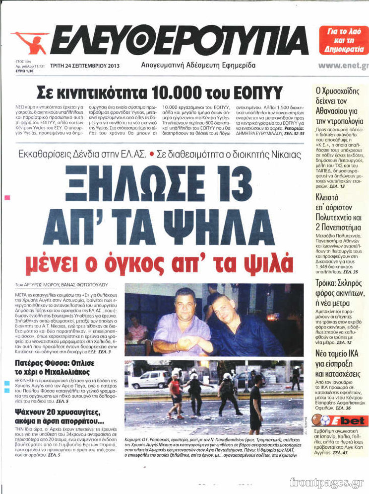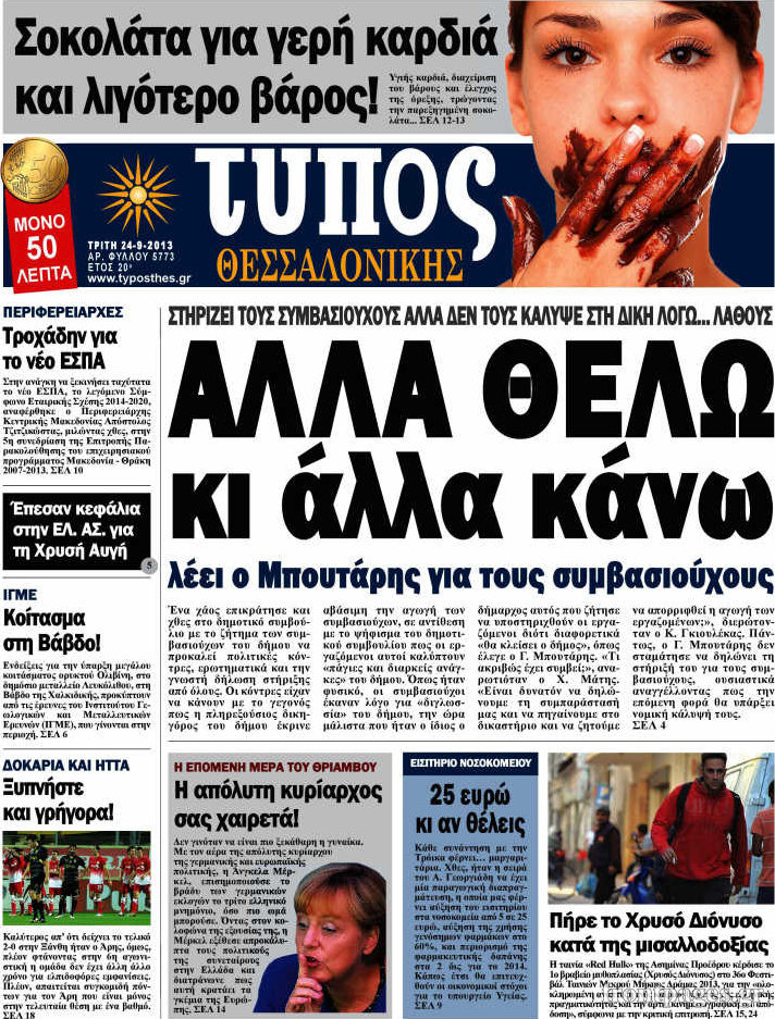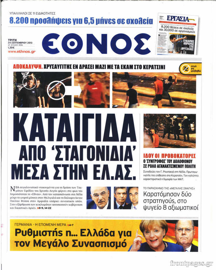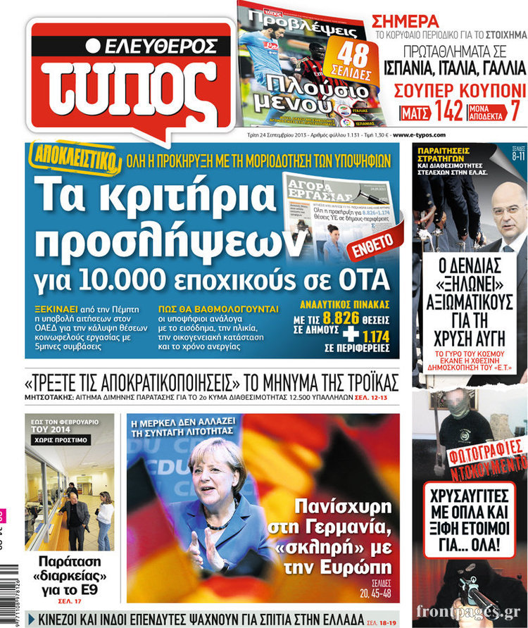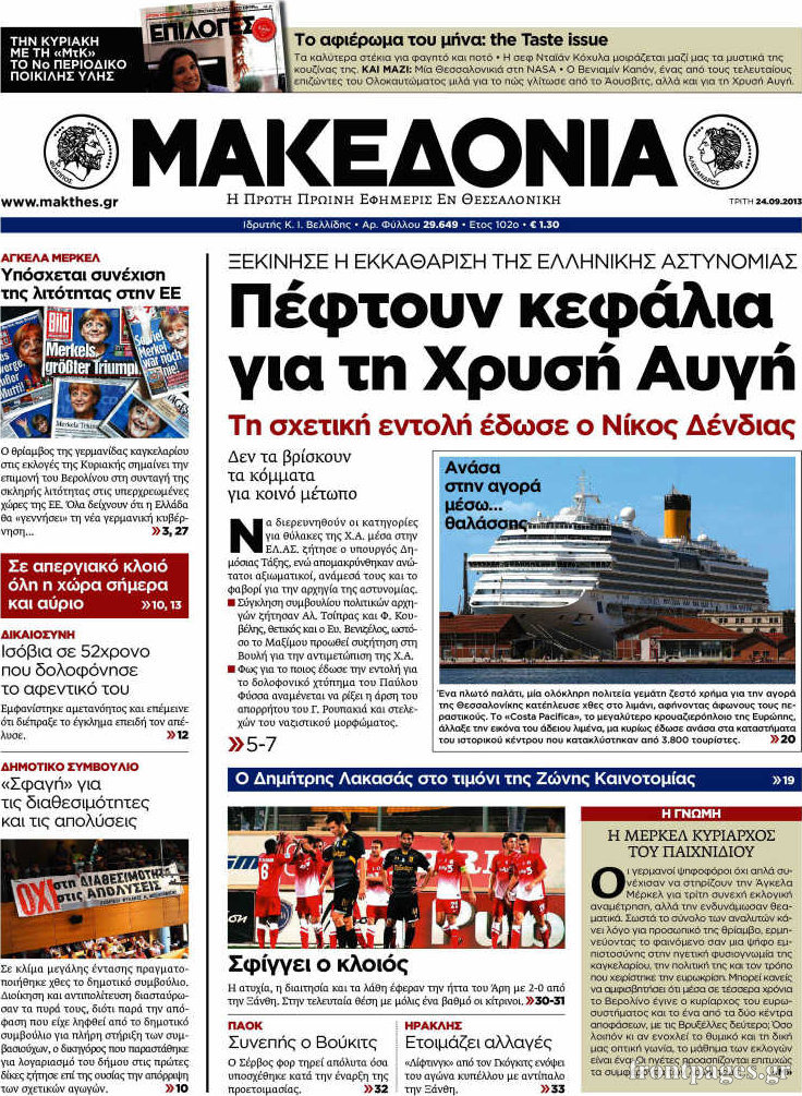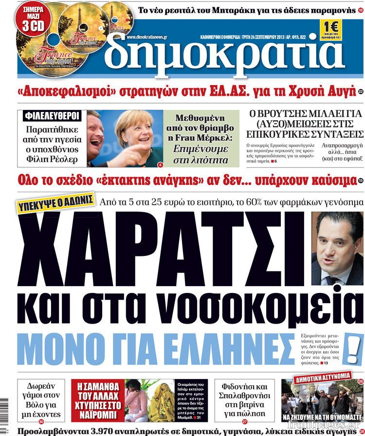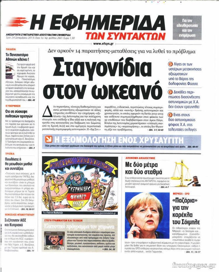 Οι πολιτικές εφημερίδες Enikos Newsroom 08:46, Τρίτη 24 Σεπτεμβρίου 2013 Media Οι πολιτικές εφημερίδες Διαβάστε τα πρωτοσέλιδα των πολιτικών εφημερίδων: ΕΦΗΜΕΡΙΔΕΣ ΠΟΛΙΤΙΚΕΣ ΕΦΗΜΕΡΙΔΕΣ ΠΡΩΤΟΣΕΛΙΔΑ Μοιράσου το: σχολίασε κι εσύ (0 σχόλια) Ακολουθήστε το enikos.gr στο Google News και μάθετε πρώτοι όλες τις ειδήσεις Δείτε όλες τις τελευταίες ειδήσεις από την Ελλάδα και τον Κόσμο στο enikos.gr Ειδήσεις Ροή Ειδήσεων 3 ώρες πριν Κύκλωμα διακίνησης ναρκωτικών σε σχολεία: Βίντεο ντοκουμέντο από τα βασανιστήρια στους ανήλικους – Συζητούσαν για το πώς θα κάνουν «ξέπλυμα χρήματος» 2 ώρες πριν Κλιμακώνουν τις κινητοποιήσεις τους οι αγρότες: Κλείνουν τη Δευτέρα τις σήραγγες των Τεμπών για τα φορτηγά – Ανοίγουν την Τρίτη τους δρόμους για τους εκδρομείς 3 ώρες πριν Αιματηρό επεισόδιο στον Άγιο Παντελεήμονα – Δύο τραυματίες, αναζητείται ο δράστης 2 ώρες πριν ΗΠΑ: Αυξάνουν την πίεση στην Βενεζουέλα – Το νέο ρεσάλτο σε τάνκερ και ο στόχος του Τραμπ 2 ώρες πριν Κασσελάκης για παραίτηση Μάλαμα: «Η πορεία μας δεν θα καθοριστεί από μεμονωμένα πρόσωπα, μηχανισμούς και προσωπικές ατζέντες» 3 ώρες πριν Ύπνος: Τι είναι ο «κανόνας 3-3-3» που χρησιμοποιεί ένας γιατρός για να ξεχωρίσει την κόπωση από την αϋπνία 4 ώρες πριν Αριθμολογία: Οι άνθρωποι που έχουν γεννηθεί αυτές τις 4 ημερομηνίες, είναι οι πιο πιστοί και αφοσιωμένοι σύντροφοι 2 ώρες πριν Αρχαιολογικό θρίλερ στην καρδιά της Ευρώπης: Παράξενο θραύσμα με ανάγλυφα και σφηνοειδή γραφή ανακαλύφθηκε σε μέρος που δεν περίμενε κανείς 2 ημέρες πριν Enerwave: Το νέο «ρεύμα» στη λιανική ενέργειας που αλλάζει την εμπειρία του καταναλωτή 17 λεπτά πριν Πέθανε ο Rosa von Praunheim – Πρωτοπόρος του queer κινηματογράφου και της γκέι απελευθέρωσης 29 λεπτά πριν MasterChef: Στον… αέρα το τρέιλερ του 10ου κύκλου – ΒΙΝΤΕΟ 44 λεπτά πριν Περιστέρι: Έφοδος της Αστυνομίας σε νυχτερινό κέντρο που σέρβιρε αλκοόλ σε ανήλικους – Μία σύλληψη 52 λεπτά πριν Γουατεμάλα: 12 νεκροί κοντά στην πρωτεύουσα – Για ξεκαθάρισμα λογαριασμών κάνουν λόγο οι Αρχές 1 ώρα πριν Μαρόκο – Κομόρες 2-0: Ιδανική πρεμιέρα στο Copa Africa με… αριστούργημα του Ελ Κααμπί – Δείτε Βίντεο ENIKOS NETWORK Οι γυναίκες έχουν βρει μια νέα απόλαυση στην κρεβατοκάμαρα που οι περισσότεροι άνδρες αγνοούν Christmas glow: 5 χρυσές συμβουλές για επιδερμίδα που λάμπει από ομορφιά τα Χριστούγεννα Νέο έτος ρεκόρ για τον ελληνικό τουρισμό το 2025: «Είμαστε μέσα στους 10 πλέον επισκέψιμους προορισμούς παγκοσμίως» λέει η ... Τιμές καυσίμων: Πόσο θα πληρώσουν οι εκδρομείς των Χριστουγέννων – Το κόστος μετακινήσεων σε δημοφιλείς προορισμούς Χαρτογραφώντας το «σημείο χωρίς επιστροφή»: Για πρώτη φορά αποκαλύπτεται με λεπτομέρεια το ακανθώδες όριο της ατμόσφαιρας τ... Η Google καταργεί τη λειτουργία «dark web report» – Πώς θα μπορούν οι χρήστες να διαγράφουν τα δεδομένα τους περισσότερα 00:13 , Δευτέρα 22 Δεκεμβρίου 2025 MasterChef: Στον… αέρα το τρέιλερ του 10ου κύκλου – ΒΙΝΤΕΟ Κυκλοφόρησε το τρέιλερ για τον 10ο κύκλο του MasterChef, σηματοδοτώντας την επιστροφή του δημο... 21:30 , Κυριακή 21 Δεκεμβρίου 2025 Ο Δικαστής: Στα χέρια της Αστυνομίας βίντεο, που ανατρέπει όλα τα δεδομένα – Στενεύει ο κλοιός γύρω από τον Δικαστή Καταιγιστικές εξελίξεις στο τελευταίο επεισόδιο της χρονιάς της σειράς “Ο Δικαστής”... 17:18 , Κυριακή 21 Δεκεμβρίου 2025 «Η Μεγάλη Χίμαιρα»: Μάγεψε το κοινό κατά την avant-première της προβολής της Την Πρωτοχρονιά (Πέμπτη 1η Ιανουαρίου 2026) στο ERTFLIX θα γίνει η πρεμιέρα της πολυαναμε