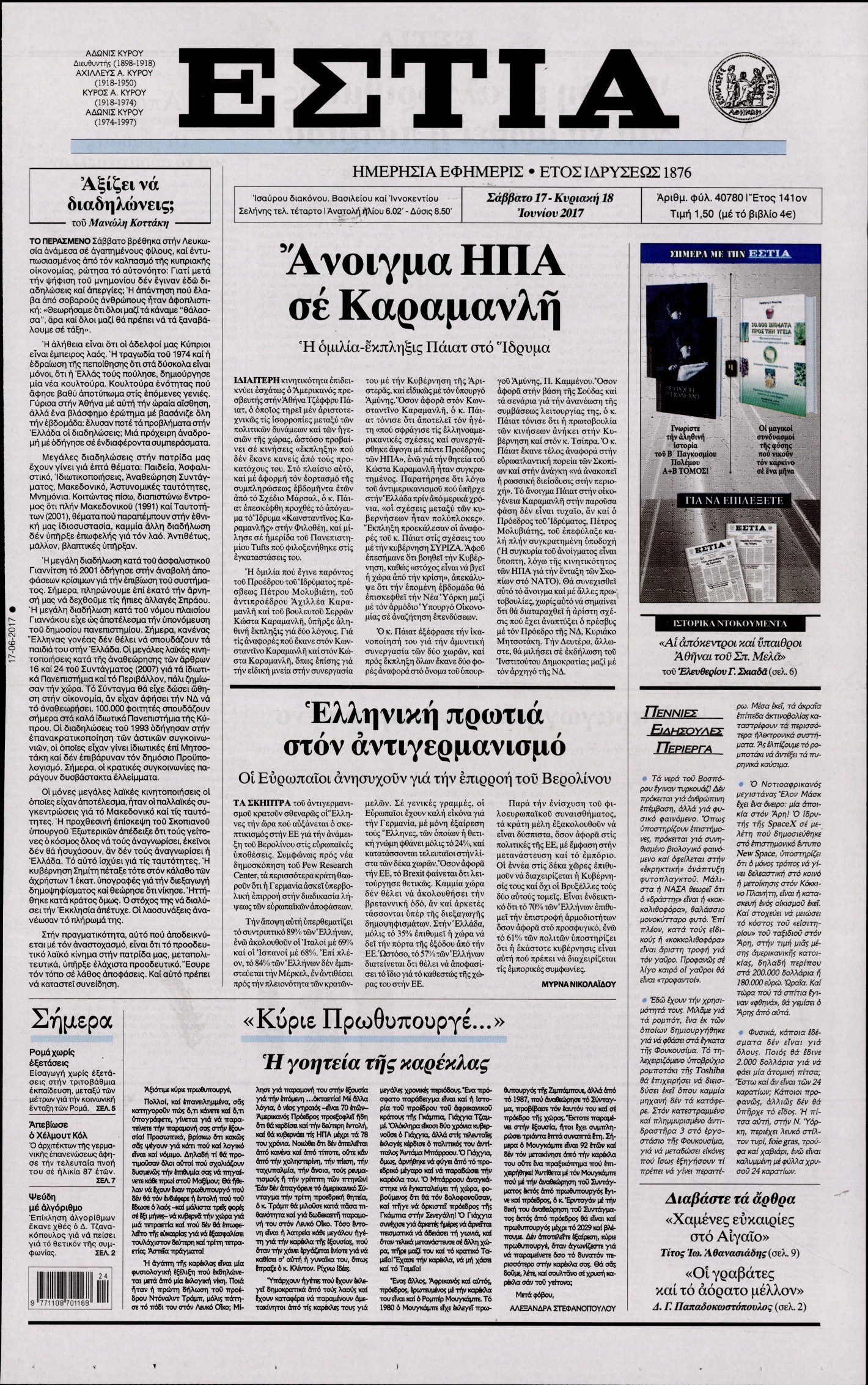 Οι πολιτικές εφημερίδες 17/6/2017 Enikos Newsroom 07:45, Σάββατο 17 Ιουνίου 2017 Media Διαβάστε τα σημερινά πρωτοσέλιδα των πολιτικών εφημερίδων: ΠΟΛΙΤΙΚΕΣ ΕΦΗΜΕΡΙΔΕΣ ΠΡΩΤΟΣΕΛΙΔΑ Μοιράσου το: σχολίασε κι εσύ (0 σχόλια) Ακολουθήστε το enikos.gr στο Google News και μάθετε πρώτοι όλες τις ειδήσεις Δείτε όλες τις τελευταίες ειδήσεις από την Ελλάδα και τον Κόσμο στο enikos.gr Ειδήσεις Ροή Ειδήσεων 4 ώρες πριν Αυξάνουν την πίεση προς την κυβέρνηση οι αγρότες: Κλείνουν παρακαμπτήριους και ανοίγουν διόδια – Τι θα γίνει τις γιορτές 3 ώρες πριν ΟΠΕΚΕΠΕ: Προφυλακιστέος ο φερόμενος αρχηγός και ο λογιστής της εγκληματικής οργάνωσης 4 ώρες πριν Φοινικούντα: Το Σάββατο απολογείται ο 30χρονος γιος γνωστού επιχειρηματία της Πλάκας που παραδόθηκε – Όσα είπε στους αστυνομικούς και ο ρόλος του στο έγκλημα 3 ώρες πριν Μπορεί ο Μαδούρο να αντέξει τον αποκλεισμό του Τραμπ; Τι θα χρειαστεί η Ουάσινγκτον για να τον ανατρέψει 2 ώρες πριν ΑΕΚ – Κραϊόβα 3-2: Επική ανατροπή και πρόκριση στους «16» του Conference League η Ένωση 3 ώρες πριν Αρχαιολόγοι ανακάλυψαν ρωμαϊκά τεχνουργήματα από μια πόλη που δεν υπήρξε ποτέ – Τα τρία εντυπωσιακά κτίρια και ο αμφορέας με τις… σαρδέλες 5 ώρες πριν Ύπνος: Η απλή βραδινή ρουτίνα για να προστατεύσετε τα μαλλιά σας από το κρύο κατά τη διάρκεια του χειμώνα 5 ώρες πριν Manifesting: Πώς να συναντήσετε τον σύντροφο της ζωής σας, ανάλογα με τον μήνα γέννησής σας 2 ημέρες πριν 20 χρόνια τα Χριστούγεννα ξεκινούν στα Public με μεγάλη ποικιλία σε δώρα! 10 λεπτά πριν Πόλεμος στην Ουκρανία: Ρωσικά drones έπληξαν την Οδησσό – Μία νεκρή και ζημιές σε ενεργειακές υποδομές 18 λεπτά πριν ΑΕΚ-Κραϊόβα: Τα highlights της μυθικής ανατροπής της «Ένωσης» 33 λεπτά πριν Μιχάλης Χρυσοχοΐδης από την Κωνσταντινούπολη: Κοινές επιχειρήσεις Ελλάδας – Τουρκίας ενάντια στο οργανωμένο έγκλημα 55 λεπτά πριν Μάρκο Νίκολιτς: «Είμαι περήφανος για τους παίκτες μου, όποιος αντίπαλος και να έρθει θα προετοιμαστούμε» 1 ώρα πριν ΟΗΕ: Την εκλογή του νέου ύπατου αρμοστή για τους Πρόσφυγες Μπαρχάμ Άχμεντ Σαλίχ χαιρέτησε ο Αντόνιο Γκουτέρες ENIKOS NETWORK Σε περίοδο αυξημένης δραστηριότητας η γρίπη στην Ελλάδα-Μέτρα προστασίας από τον ΕΟΔΥ Σκέφτεστε συνέχεια συζητήσεις που έχετε κάνει; Τι σημαίνει αυτό, σύμφωνα με ειδικό Στεγαστικό: Τι λέει η ΠΟΜΙΔΑ για τα νέα μέτρα που ανακοίνωσε ο Κυριάκος Μητσοτάκης Λαγκάρντ: Αισιόδοξη για την ανάπτυξη της Ευρωζώνης, αβέβαιη για τον πληθωρισμό Χαρτογραφώντας το «σημείο χωρίς επιστροφή»: Για πρώτη φορά αποκαλύπτεται με λεπτομέρεια το ακανθώδες όριο της ατμόσφαιρας τ... Η Google καταργεί τη λειτουργία «dark web report» – Πώς θα μπορούν οι χρήστες να διαγράφουν τα δεδομένα τους περισσότερα 17:45 , Πέμπτη 18 Δεκεμβρίου 2025 ROUK ZOUK: Εορταστικό επεισόδιο με καλεσμένους τους πρωταγωνιστές του «Γιατί ρε πατέρα» Το Σάββατο 20 Δεκεμβρίου στις 21:00, η Ζέτα Μακρυπούλια υποδέχεται εκλεκτούς ηθοποιούς που όλο... 17:20 , Πέμπτη 18 Δεκεμβρίου 2025 Άγιος έρωτας: Η Χριστίνα εξομολογείται στον πατέρα Νικόλαο, απόψε στις 21:00 στον Alpha Η Νότα αποφασίζει να εκδικηθεί τον Πέτρο και τον Στέφανο, για χάρη του Λούη, όμως τα πράγματα ... 16:50 , Πέμπτη 18 Δεκεμβρίου 2025 Να μ’ αγαπάς: Ζωή και Φωτεινή συμφιλιώνονται ως μάνα με κόρη, απόψε στις 20:00 Η ταυτότητα του Άγγελου αποκαλύπτεται στο νέο επεισόδιο της σειράς “Να μ’ αγαπάς... 15:52 , Πέμπτη 18 Δεκεμβρίου 2025 Το Σπίτι Δίπλα Στο Ποτάμι: Το καθηλωτικό τελευταίο επεισόδιο για το 2025 απόψε στις 22:30 Καθηλώνει το σημερινό επει