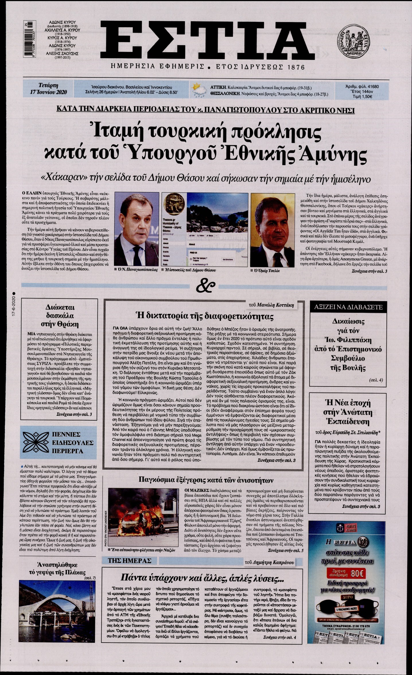 Οι πολιτικές εφημερίδες 17/6/2020 Διονύσης Νίκκας 06:09, Τετάρτη 17 Ιουνίου 2020 Media Διαβάστε τα πρωτοσέλιδα των πολιτικών εφημερίδων… ΠΟΛΙΤΙΚΕΣ ΕΦΗΜΕΡΙΔΕΣ Μοιράσου το: σχολίασε κι εσύ (0 σχόλια) Ακολουθήστε το enikos.gr στο Google News και μάθετε πρώτοι όλες τις ειδήσεις Δείτε όλες τις τελευταίες ειδήσεις από την Ελλάδα και τον Κόσμο στο enikos.gr Ειδήσεις Ροή Ειδήσεων 2 ώρες πριν Χριστούγεννα στα μπλόκα: Επιμένουν στις κινητοποιήσεις τους οι αγρότες – Ανοίγουν τα διόδια το Σαββατοκύριακο 2 ώρες πριν Ουκρανία: Η άνευ προηγουμένου επίθεση σε ρωσικό τάνκερ στη Μεσόγειο και το μήνυμα προς στον Πούτιν – Το «μακρύ χέρι» του Κιέβου 2 ώρες πριν Πούτιν: Τα μηνύματα σε Ευρώπη και ΝΑΤΟ από το μαραθώνιο «σόου» του – Η απαίτηση για «σεβασμό» και η ειρήνη «με τους όρους» της Μόσχας 3 ώρες πριν Τραμπ: Δεν αποκλείει την πιθανότητα ενός πολέμου στη Βενεζουέλα – «Ο Μαδούρο ξέρει καλύτερα από τον καθένα τι ακριβώς θέλω» 3 ώρες πριν Συνεχίζει να προκαλεί ο Μίτσκοσκι: «Για μένα το όνομα Μακεδονία είναι ιερό» 2 ώρες πριν Ανακαλύφθηκαν αρχαία χρυσά νομίσματα 2.200 ετών που απεικονίζουν τον θεό Απόλλωνα – Η άγνωστη σύνδεση με τον Φίλιππο Β΄ της Μακεδονίας 3 ώρες πριν Ύπνος: Μια κρυφή κατάσταση του εγκεφάλου πριν από τον ύπνο μπορεί να είναι το “κλειδί” για υψηλή ευφυΐα και δημιουργικότητα 4 ώρες πριν Αριθμολογία: Οι άνθρωποι που έχουν γεννηθεί αυτές τις 4 ημερομηνίες, συχνά παρεξηγούνται – «Η καλοσύνη τους κρύβει τεράστια δύναμη» 5 ώρες πριν Ξεχάστε το καθάρισμα το Σαββατοκύριακο: Ο «κανόνας των 20 λεπτών» που θα σας λύσει τα χέρια 14 λεπτά πριν Φαίη Σκορδά: «Παλιότερα τα κομπλιμέντα τα προσπερνούσα, τώρα τα έχω ανάγκη» 30 λεπτά πριν Βασίλης Σπανούλης: Δεν εμφανίστηκε ούτε ένας δημοσιογράφος στην συνέντευξη Τύπου – «Καλησπέρα στον… κανέναν», δείτε βίντεο 41 λεπτά πριν Πόλεμος στην Ουκρανία: Εφτά νεκροί από ρωσική πυραυλική επίθεση στο λιμάνι της Οδησσού 45 λεπτά πριν ΗΠΑ: Η κυβέρνηση του Ντόναλντ Τραμπ άρχισε να δημοσιοποιεί τα αρχεία Έπσταϊν 57 λεπτά πριν Σάμος: Άνοιξε το μπλόκο των αγροτών στον κόμβο Κοκκαρίου – Σε νέα συνεδρίαση θα καθορίσουν την στάση τους ENIKOS NETWORK Το ΕΚΑΒ τιμήθηκε από την Ακαδημία Αθηνών για τα 40 χρόνια προσφοράς του Έχετε πραγματικά μεγάλη καρδιά; 10 χαρακτηριστικά όσων έχουν καλοσύνη Αναστολή μέτρων αναγκαστικής εκτέλεσης για κτηνοτρόφους που πλήττονται από την ευλογιά των αιγοπροβάτων Πλήρης επάρκεια προϊόντων στις λαϊκές της Αττικής, παρά τις αγροτικές κινητοποιήσεις – Τι απαντούν οι πωλητές Χαρτογραφώντας το «σημείο χωρίς επιστροφή»: Για πρώτη φορά αποκαλύπτεται με λεπτομέρεια το ακανθώδες όριο της ατμόσφαιρας τ... Η Google καταργεί τη λειτουργία «dark web report» – Πώς θα μπορούν οι χρήστες να διαγράφουν τα δεδομένα τους περισσότερα 22:42 , Παρασκευή 19 Δεκεμβρίου 2025 Γιώργος Γιαννόπουλος για “Το σόι σου”: “Είναι ευτυχία και ευλογία αυτή η σειρά” «Είναι ευτυχία και ευλογία η συγκυρία αυτής της σειράς», θα πει ο Γιώργος Γιαννόπουλος -ο αγαπ... 20:37 , Παρασκευή 19 Δεκεμβρίου 2025 Don’t Forget The Lyrics: Η Έλλη Κοκκίνου υποδέχεται 4 παίκτες που θα κάνουν τα πάντα για να μη χάσουν ούτε… μισή λέξη από τους στίχους Το «Don’t Forget The Lyrics» επιστρέφει απόψε, Παρασκευή 19 Δεκεμβρίου, στις 21:00 με νέο επει... 19:31 , Παρασκευή 19 Δεκεμβρίου 2025 GNTM: Απόψε ο μεγάλος τελικός για τους 4 φιναλίστ Έπειτα από μήνες γεμάτους μόδα, δημιουργία και έντονες αναμετρήσεις, το GNTM 2025 κορυφώνεται,... 18:11 , Παρασκευή 19 Δεκεμ