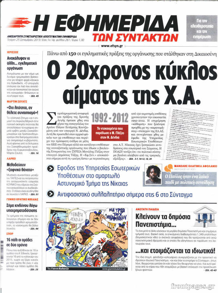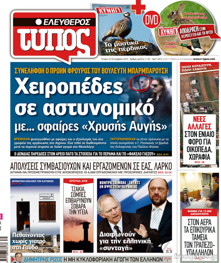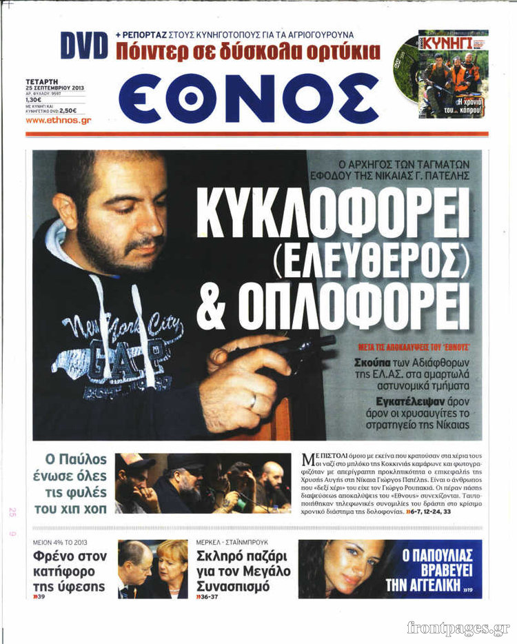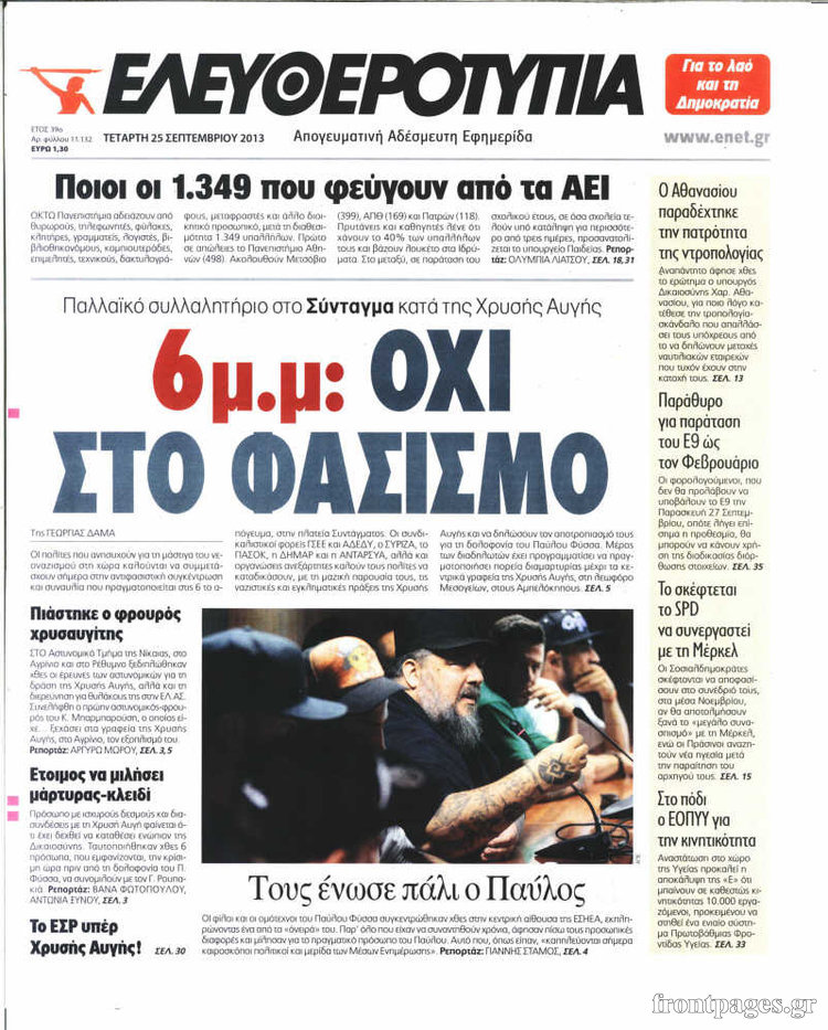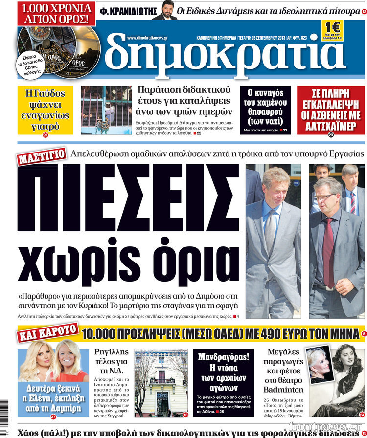 Οι πολιτικές εφημερίδες Enikos Newsroom 08:23, Τετάρτη 25 Σεπτεμβρίου 2013 Media Οι πολιτικές εφημερίδες Διαβάστε τα πρωτοσέλιδα των πολιτικών εφημερίδων: ΕΦΗΜΕΡΙΔΕΣ ΠΟΛΙΤΙΚΕΣ ΕΦΗΜΕΡΙΔΕΣ ΠΡΩΤΟΣΕΛΙΔΑ Μοιράσου το: σχολίασε κι εσύ (0 σχόλια) Ακολουθήστε το enikos.gr στο Google News και μάθετε πρώτοι όλες τις ειδήσεις Δείτε όλες τις τελευταίες ειδήσεις από την Ελλάδα και τον Κόσμο στο enikos.gr Ειδήσεις Ροή Ειδήσεων 8 ώρες πριν Χριστούγεννα στα μπλόκα: Επιμένουν στις κινητοποιήσεις τους οι αγρότες – Ανοίγουν τα διόδια το Σαββατοκύριακο 9 ώρες πριν Ουκρανία: Η άνευ προηγουμένου επίθεση σε ρωσικό τάνκερ στη Μεσόγειο και το μήνυμα προς στον Πούτιν – Το «μακρύ χέρι» του Κιέβου 8 ώρες πριν Πούτιν: Τα μηνύματα σε Ευρώπη και ΝΑΤΟ από το μαραθώνιο «σόου» του – Η απαίτηση για «σεβασμό» και η ειρήνη «με τους όρους» της Μόσχας 7 ώρες πριν ΗΠΑ: Η κυβέρνηση του Ντόναλντ Τραμπ άρχισε να δημοσιοποιεί τα αρχεία Έπσταϊν 7 ώρες πριν Άνω Λιόσια: Πυροβολισμοί σε επιχείρηση με χαλιά – Εντοπίστηκαν 10 κάλυκες 53 λεπτά πριν Αυγά: Πόσα μπορείτε να τρώτε την ημέρα με ασφάλεια για μέγιστη πρόσληψη πρωτεΐνης 1 ώρα πριν Τα ζώδια σήμερα, Σάββατο 20 Δεκεμβρίου: Παρθένοι, το σύμπαν σας δίνει το κλειδί 8 ώρες πριν Ανακαλύφθηκαν αρχαία χρυσά νομίσματα 2.200 ετών που απεικονίζουν τον θεό Απόλλωνα – Η άγνωστη σύνδεση με τον Φίλιππο Β΄ της Μακεδονίας 9 ώρες πριν Ύπνος: Μια κρυφή κατάσταση του εγκεφάλου πριν από τον ύπνο μπορεί να είναι το “κλειδί” για υψηλή ευφυΐα και δημιουργικότητα 14 λεπτά πριν Κίριλ Ντμίτριεφ: Στις ΗΠΑ ο απεσταλμένος της Ρωσίας για συνομιλίες με τους ομολόγους του, Γουίτκοφ και Κούσνερ 21 λεπτά πριν ΔΕΔΔΗΕ: Διακοπές ρεύματος σήμερα (20/12) στην Αθήνα και σε άλλες 7 περιοχές της Αττικής 30 λεπτά πριν Κολομβία: Είκοσι χρόνια κάθειρξη σε πρώην ανώτερο αξιωματικό για 72 εκτελέσεις αμάχων 37 λεπτά πριν Οπτική ψευδαίσθηση: Μόνο αν είσαι ο Σέρλοκ Χολμς θα βρεις τον αριθμό «87» σε 7 δευτερόλεπτα 44 λεπτά πριν Σαρωτικοί οι έλεγχοι στους δρόμους ενόψει εορτών – Μπλόκα της τροχαίας σε κεντρικές αρτηρίες της Αττικής ENIKOS NETWORK Το ΕΚΑΒ τιμήθηκε από την Ακαδημία Αθηνών για τα 40 χρόνια προσφοράς του Έχετε πραγματικά μεγάλη καρδιά; 10 χαρακτηριστικά όσων έχουν καλοσύνη Αναστολή μέτρων αναγκαστικής εκτέλεσης για κτηνοτρόφους που πλήττονται από την ευλογιά των αιγοπροβάτων Πλήρης επάρκεια προϊόντων στις λαϊκές της Αττικής, παρά τις αγροτικές κινητοποιήσεις – Τι απαντούν οι πωλητές Χαρτογραφώντας το «σημείο χωρίς επιστροφή»: Για πρώτη φορά αποκαλύπτεται με λεπτομέρεια το ακανθώδες όριο της ατμόσφαιρας τ... Η Google καταργεί τη λειτουργία «dark web report» – Πώς θα μπορούν οι χρήστες να διαγράφουν τα δεδομένα τους περισσότερα 05:48 , Σάββατο 20 Δεκεμβρίου 2025 Οι οικονομικές εφημερίδες 20/12/2025 Διαβάστε τα πρωτοσέλιδα από τις οικονομικές εφημερίδες, σήμερα 20/12/2025. 05:43 , Σάββατο 20 Δεκεμβρίου 2025 Οι αθλητικές εφημερίδες 20/12/2025 Διαβάστε τα πρωτοσέλιδα από τις αθλητικές εφημερίδες, σήμερα 20/12/2025. 05:38 , Σάββατο 20 Δεκεμβρίου 2025 Οι πολιτικές εφημερίδες 20/12/2025 Διαβάστε τα πρωτοσέλιδα από τις πολιτικές εφημερίδες, σήμερα 20/12/2025. 04:20 , Σάββατο 20 Δεκεμβρίου 2025 Αγγελική Νικολούλη: Τα συλλυπητήρια για την απώλεια της Ειρήνης Μαρινάκη Τα συλληπητήρια στον πρόεδρο του Mega, τον Βαγγέλη Μαρινάκη, για την απώλεια της μητέρας του Ε... ΤΕΛΕΥΤΑΙΕΣ ΕΙΔΗΣΕΙΣ 14 λεπτά πριν Κίριλ Ντμίτριεφ: Στις ΗΠΑ ο απεσταλμένος της Ρωσίας... 21 λεπτά πριν ΔΕΔΔΗΕ: Διακοπές ρεύματ
