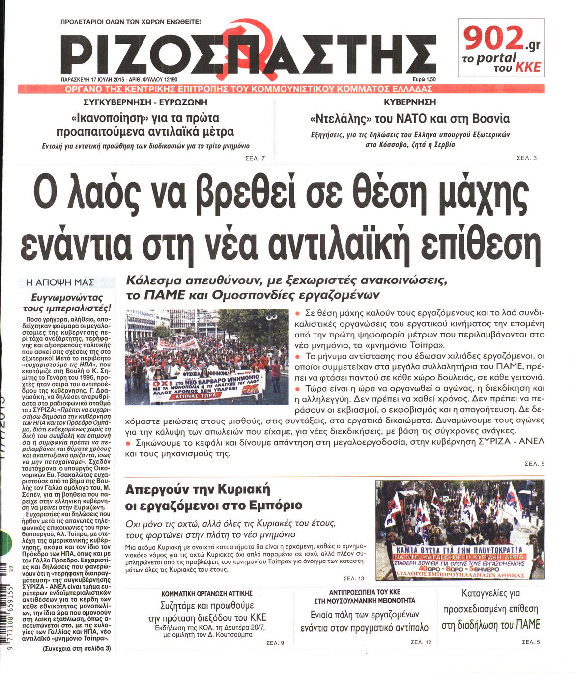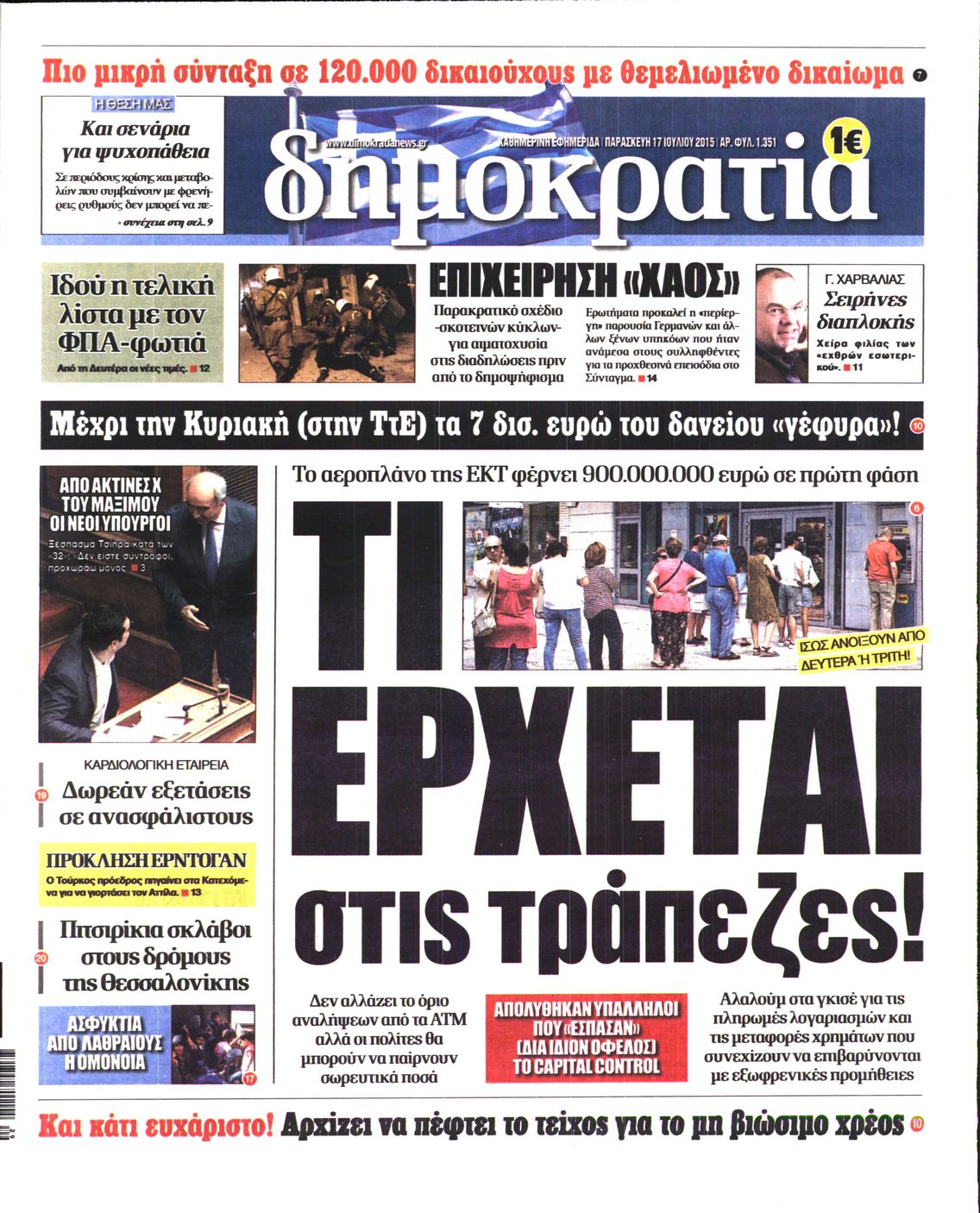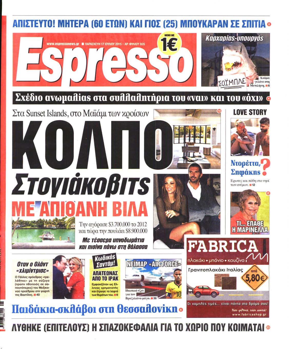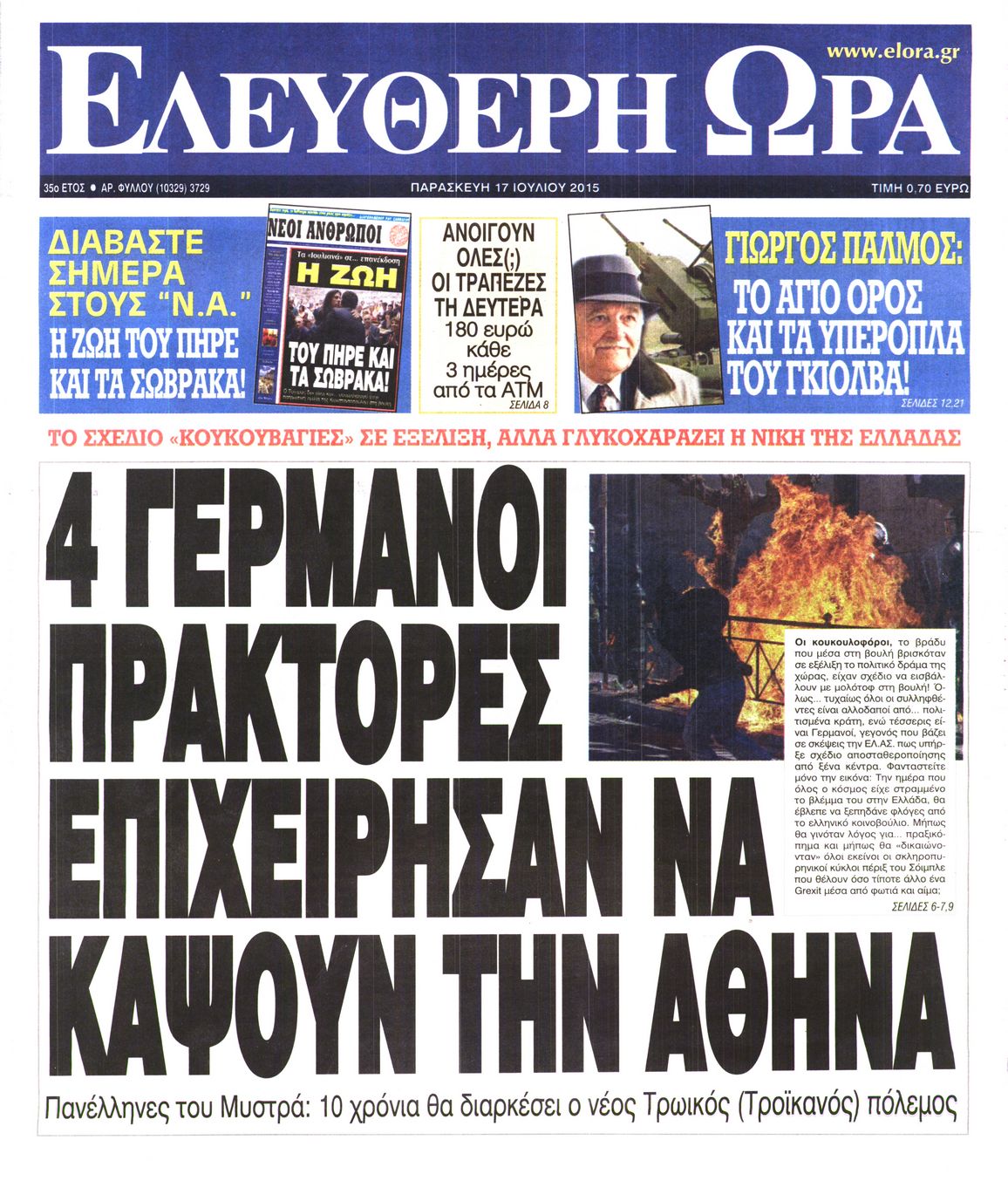 Οι πολιτικές εφημερίδες 17/7/2015 Enikos Newsroom 06:46, Παρασκευή 17 Ιουλίου 2015 Media Διαβάστε τα σημερινά πρωτοσέλιδα των πολιτικών εφημερίδων: ΠΟΛΙΤΙΚΕΣ ΕΦΗΜΕΡΙΔΕΣ ΠΡΩΤΟΣΕΛΙΔΑ Μοιράσου το: σχολίασε κι εσύ (0 σχόλια) Ακολουθήστε το enikos.gr στο Google News και μάθετε πρώτοι όλες τις ειδήσεις Δείτε όλες τις τελευταίες ειδήσεις από την Ελλάδα και τον Κόσμο στο enikos.gr Ειδήσεις Ροή Ειδήσεων 4 ώρες πριν Χριστούγεννα στα μπλόκα: Επιμένουν στις κινητοποιήσεις τους οι αγρότες – Ανοίγουν τα διόδια το Σαββατοκύριακο 4 ώρες πριν Ουκρανία: Η άνευ προηγουμένου επίθεση σε ρωσικό τάνκερ στη Μεσόγειο και το μήνυμα προς στον Πούτιν – Το «μακρύ χέρι» του Κιέβου 3 ώρες πριν Πούτιν: Τα μηνύματα σε Ευρώπη και ΝΑΤΟ από το μαραθώνιο «σόου» του – Η απαίτηση για «σεβασμό» και η ειρήνη «με τους όρους» της Μόσχας 4 ώρες πριν Τραμπ: Δεν αποκλείει την πιθανότητα ενός πολέμου στη Βενεζουέλα – «Ο Μαδούρο ξέρει καλύτερα από τον καθένα τι ακριβώς θέλω» 5 ώρες πριν Συνεχίζει να προκαλεί ο Μίτσκοσκι: «Για μένα το όνομα Μακεδονία είναι ιερό» 3 ώρες πριν Ανακαλύφθηκαν αρχαία χρυσά νομίσματα 2.200 ετών που απεικονίζουν τον θεό Απόλλωνα – Η άγνωστη σύνδεση με τον Φίλιππο Β΄ της Μακεδονίας 4 ώρες πριν Ύπνος: Μια κρυφή κατάσταση του εγκεφάλου πριν από τον ύπνο μπορεί να είναι το “κλειδί” για υψηλή ευφυΐα και δημιουργικότητα 5 ώρες πριν Αριθμολογία: Οι άνθρωποι που έχουν γεννηθεί αυτές τις 4 ημερομηνίες, συχνά παρεξηγούνται – «Η καλοσύνη τους κρύβει τεράστια δύναμη» 6 ώρες πριν Ξεχάστε το καθάρισμα το Σαββατοκύριακο: Ο «κανόνας των 20 λεπτών» που θα σας λύσει τα χέρια 16 λεπτά πριν Εξάρχεια: Ένταση με μολότοφ, χημικά και κρότου λάμψης 31 λεπτά πριν ΗΠΑ: Τραγωδία στην Αλαμπάμα – Σκότωσε την δημοσιογράφο σύζυγό του και αυτοκτόνησε μπροστά στον 3χρονο γιο τους 46 λεπτά πριν Πρόταση γάμου στο ΣΕΦ κατά την διάρκεια του αγώνα Ολυμπιακός-Βιλερμπάν – Δείτε βίντεο 1 ώρα πριν Euroleague: Επέστρεψε στις νίκες ο Ολυμπιακός, πήρε την ματσάρα της χρονιάς η Μπάρτσα – Τα αποτελέσματα και η βαθμολογία 1 ώρα πριν Συρία: Μαζικά πλήγματα των ΗΠΑ σε θέσεις του Ισλαμικού Κράτους – Χέγκσεθ: «Δεν είναι αρχή πολέμου, είναι μια δήλωση εκδίκησης» για το θάνατο των στρατιωτών μας ENIKOS NETWORK Το ΕΚΑΒ τιμήθηκε από την Ακαδημία Αθηνών για τα 40 χρόνια προσφοράς του Έχετε πραγματικά μεγάλη καρδιά; 10 χαρακτηριστικά όσων έχουν καλοσύνη Αναστολή μέτρων αναγκαστικής εκτέλεσης για κτηνοτρόφους που πλήττονται από την ευλογιά των αιγοπροβάτων Πλήρης επάρκεια προϊόντων στις λαϊκές της Αττικής, παρά τις αγροτικές κινητοποιήσεις – Τι απαντούν οι πωλητές Χαρτογραφώντας το «σημείο χωρίς επιστροφή»: Για πρώτη φορά αποκαλύπτεται με λεπτομέρεια το ακανθώδες όριο της ατμόσφαιρας τ... Η Google καταργεί τη λειτουργία «dark web report» – Πώς θα μπορούν οι χρήστες να διαγράφουν τα δεδομένα τους περισσότερα 22:42 , Παρασκευή 19 Δεκεμβρίου 2025 Γιώργος Γιαννόπουλος για “Το σόι σου”: “Είναι ευτυχία και ευλογία αυτή η σειρά” «Είναι ευτυχία και ευλογία η συγκυρία αυτής της σειράς», θα πει ο Γιώργος Γιαννόπουλος -ο αγαπ... 20:37 , Παρασκευή 19 Δεκεμβρίου 2025 Don’t Forget The Lyrics: Η Έλλη Κοκκίνου υποδέχεται 4 παίκτες που θα κάνουν τα πάντα για να μη χάσουν ούτε… μισή λέξη από τους στίχους Το «Don’t Forget The Lyrics» επιστρέφει απόψε, Παρασκευή 19 Δεκεμβρίου, στις 21:00 με νέο επει... 19:31 , Παρασκευή 19 Δεκεμβρίου 2025 GNTM: Απόψε ο μεγάλος τελικός για τους 4 φιναλίστ Έπειτα από μήνες γεμάτους μόδα, δημιουργία και έν