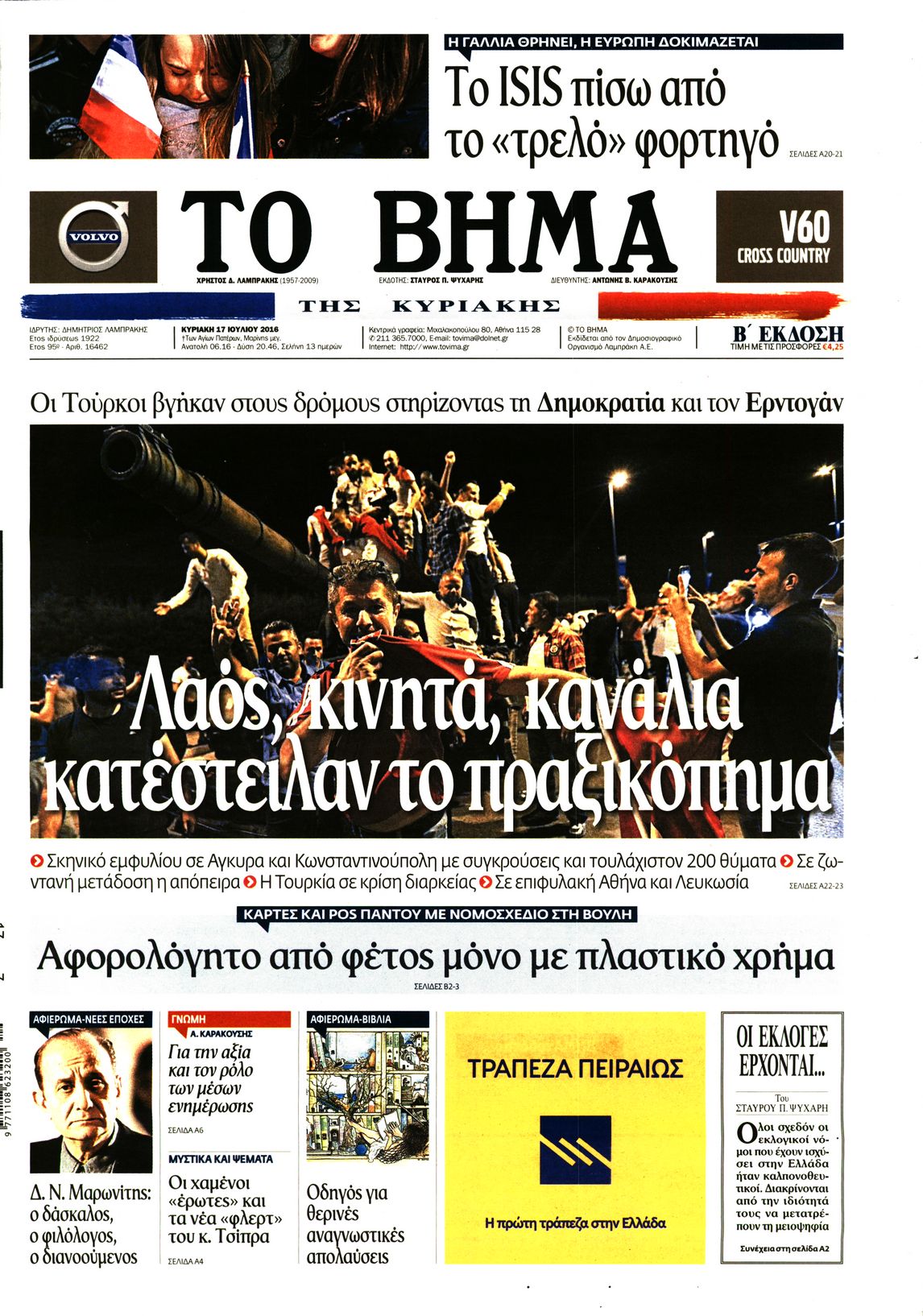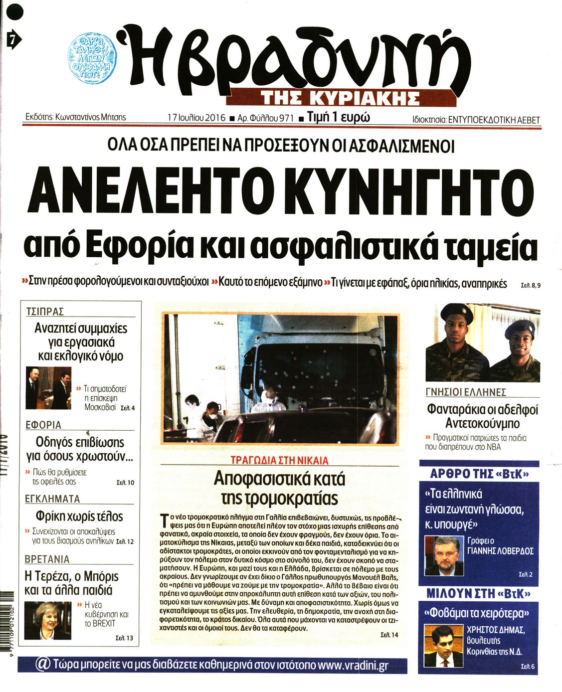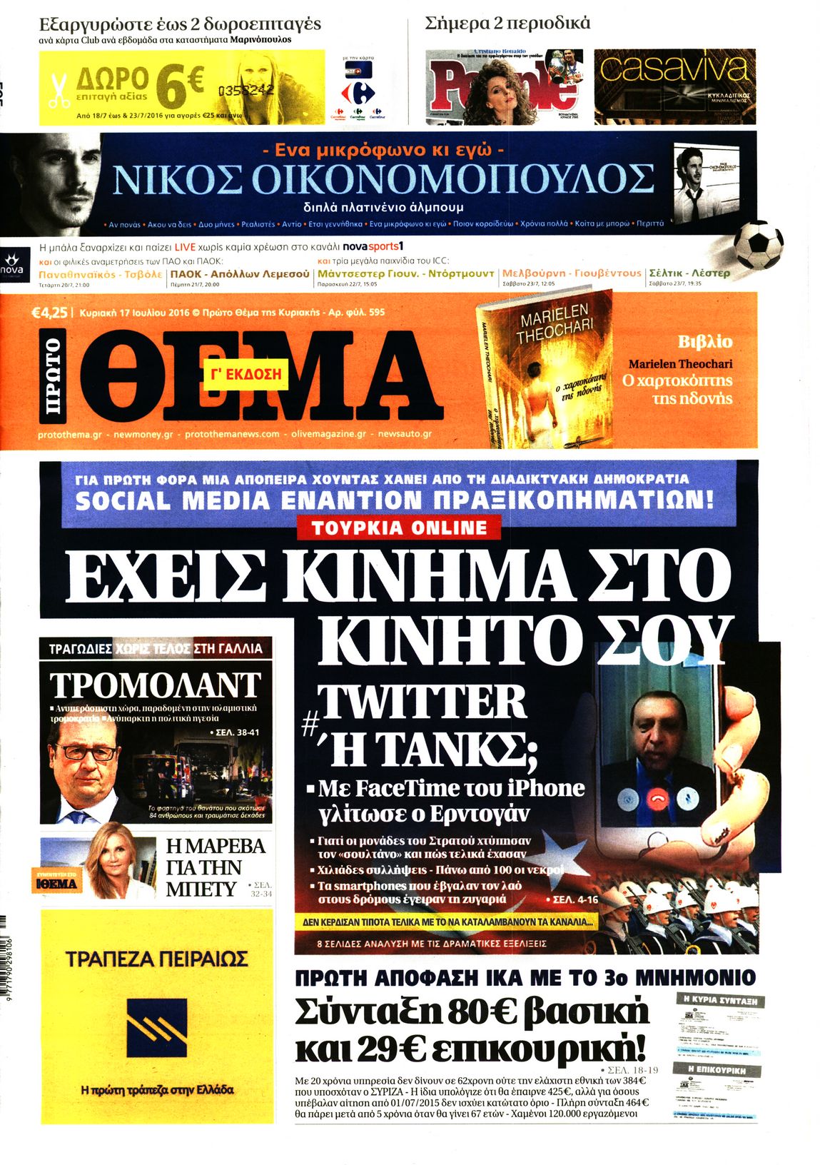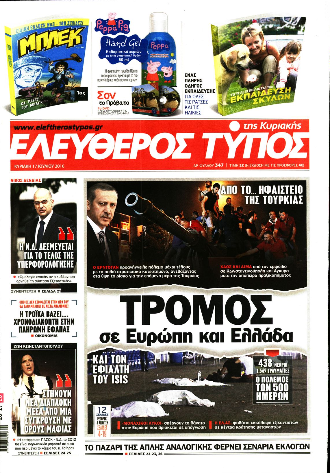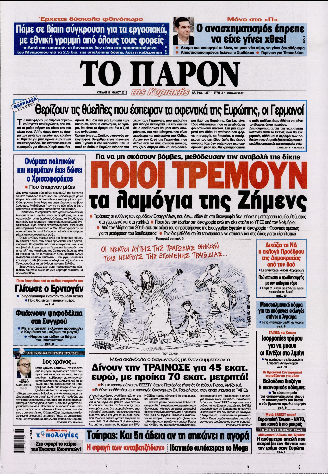 Οι πολιτικές εφημερίδες 17/7/2016 Enikos Newsroom 05:35, Κυριακή 17 Ιουλίου 2016 Media Διαβάστε τα σημερινά πρωτοσέλιδα των πολιτικών εφημερίδων: ΠΟΛΙΤΙΚΕΣ ΕΦΗΜΕΡΙΔΕΣ ΠΡΩΤΟΣΕΛΙΔΑ Μοιράσου το: σχολίασε κι εσύ (0 σχόλια) Ακολουθήστε το enikos.gr στο Google News και μάθετε πρώτοι όλες τις ειδήσεις Δείτε όλες τις τελευταίες ειδήσεις από την Ελλάδα και τον Κόσμο στο enikos.gr Ειδήσεις Ροή Ειδήσεων 4 ώρες πριν Χριστούγεννα στα μπλόκα: Επιμένουν στις κινητοποιήσεις τους οι αγρότες – Ανοίγουν τα διόδια το Σαββατοκύριακο 4 ώρες πριν Ουκρανία: Η άνευ προηγουμένου επίθεση σε ρωσικό τάνκερ στη Μεσόγειο και το μήνυμα προς στον Πούτιν – Το «μακρύ χέρι» του Κιέβου 3 ώρες πριν Πούτιν: Τα μηνύματα σε Ευρώπη και ΝΑΤΟ από το μαραθώνιο «σόου» του – Η απαίτηση για «σεβασμό» και η ειρήνη «με τους όρους» της Μόσχας 4 ώρες πριν Τραμπ: Δεν αποκλείει την πιθανότητα ενός πολέμου στη Βενεζουέλα – «Ο Μαδούρο ξέρει καλύτερα από τον καθένα τι ακριβώς θέλω» 5 ώρες πριν Συνεχίζει να προκαλεί ο Μίτσκοσκι: «Για μένα το όνομα Μακεδονία είναι ιερό» 3 ώρες πριν Ανακαλύφθηκαν αρχαία χρυσά νομίσματα 2.200 ετών που απεικονίζουν τον θεό Απόλλωνα – Η άγνωστη σύνδεση με τον Φίλιππο Β΄ της Μακεδονίας 4 ώρες πριν Ύπνος: Μια κρυφή κατάσταση του εγκεφάλου πριν από τον ύπνο μπορεί να είναι το “κλειδί” για υψηλή ευφυΐα και δημιουργικότητα 5 ώρες πριν Αριθμολογία: Οι άνθρωποι που έχουν γεννηθεί αυτές τις 4 ημερομηνίες, συχνά παρεξηγούνται – «Η καλοσύνη τους κρύβει τεράστια δύναμη» 6 ώρες πριν Ξεχάστε το καθάρισμα το Σαββατοκύριακο: Ο «κανόνας των 20 λεπτών» που θα σας λύσει τα χέρια 1 λεπτό πριν Εξάρχεια: Ένταση με μολότοφ, χημικά και κρότου λάμψης 17 λεπτά πριν ΗΠΑ: Τραγωδία στην Αλαμπάμα – Σκότωσε την δημοσιογράφο σύζυγό του και αυτοκτόνησε μπροστά στον 3χρονο γιο τους 31 λεπτά πριν Πρόταση γάμου στο ΣΕΦ κατά την διάρκεια του αγώνα Ολυμπιακός-Βιλερμπάν – Δείτε βίντεο 46 λεπτά πριν Euroleague: Επέστρεψε στις νίκες ο Ολυμπιακός, πήρε την ματσάρα της χρονιάς η Μπάρτσα – Τα αποτελέσματα και η βαθμολογία 1 ώρα πριν Συρία: Μαζικά πλήγματα των ΗΠΑ σε θέσεις του Ισλαμικού Κράτους – Χέγκσεθ: «Δεν είναι αρχή πολέμου, είναι μια δήλωση εκδίκησης» για το θάνατο των στρατιωτών μας ENIKOS NETWORK Το ΕΚΑΒ τιμήθηκε από την Ακαδημία Αθηνών για τα 40 χρόνια προσφοράς του Έχετε πραγματικά μεγάλη καρδιά; 10 χαρακτηριστικά όσων έχουν καλοσύνη Αναστολή μέτρων αναγκαστικής εκτέλεσης για κτηνοτρόφους που πλήττονται από την ευλογιά των αιγοπροβάτων Πλήρης επάρκεια προϊόντων στις λαϊκές της Αττικής, παρά τις αγροτικές κινητοποιήσεις – Τι απαντούν οι πωλητές Χαρτογραφώντας το «σημείο χωρίς επιστροφή»: Για πρώτη φορά αποκαλύπτεται με λεπτομέρεια το ακανθώδες όριο της ατμόσφαιρας τ... Η Google καταργεί τη λειτουργία «dark web report» – Πώς θα μπορούν οι χρήστες να διαγράφουν τα δεδομένα τους περισσότερα 22:42 , Παρασκευή 19 Δεκεμβρίου 2025 Γιώργος Γιαννόπουλος για “Το σόι σου”: “Είναι ευτυχία και ευλογία αυτή η σειρά” «Είναι ευτυχία και ευλογία η συγκυρία αυτής της σειράς», θα πει ο Γιώργος Γιαννόπουλος -ο αγαπ... 20:37 , Παρασκευή 19 Δεκεμβρίου 2025 Don’t Forget The Lyrics: Η Έλλη Κοκκίνου υποδέχεται 4 παίκτες που θα κάνουν τα πάντα για να μη χάσουν ούτε… μισή λέξη από τους στίχους Το «Don’t Forget The Lyrics» επιστρέφει απόψε, Παρασκευή 19 Δεκεμβρίου, στις 21:00 με νέο επει... 19:31 , Παρασκευή 19 Δεκεμβρίου 2025 GNTM: Απόψε ο μεγάλος τελικός για τους 4 φιναλίστ Έπειτα από μήνες γεμάτους μόδα, δημιουργία και έν