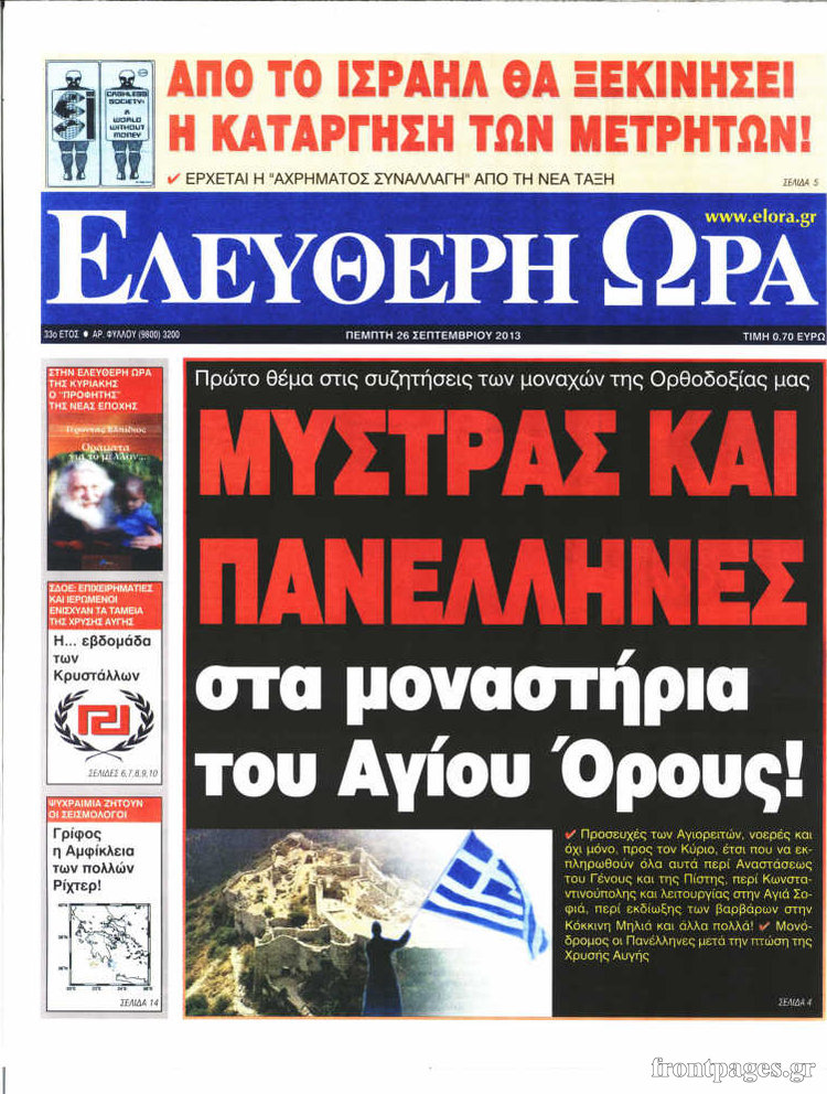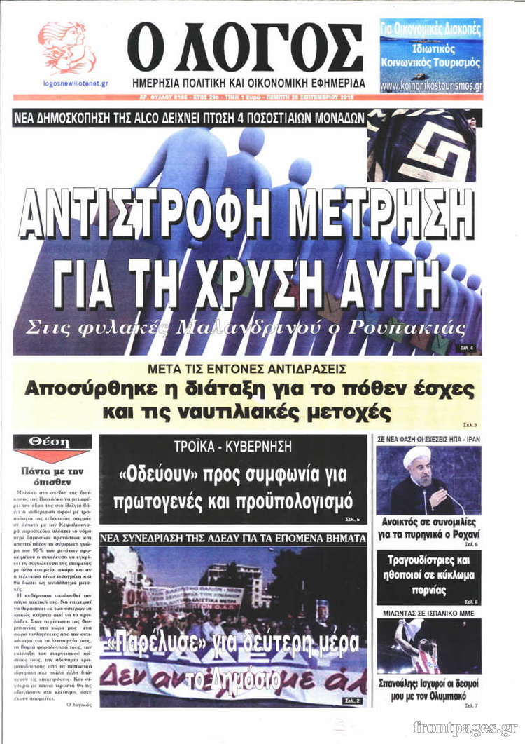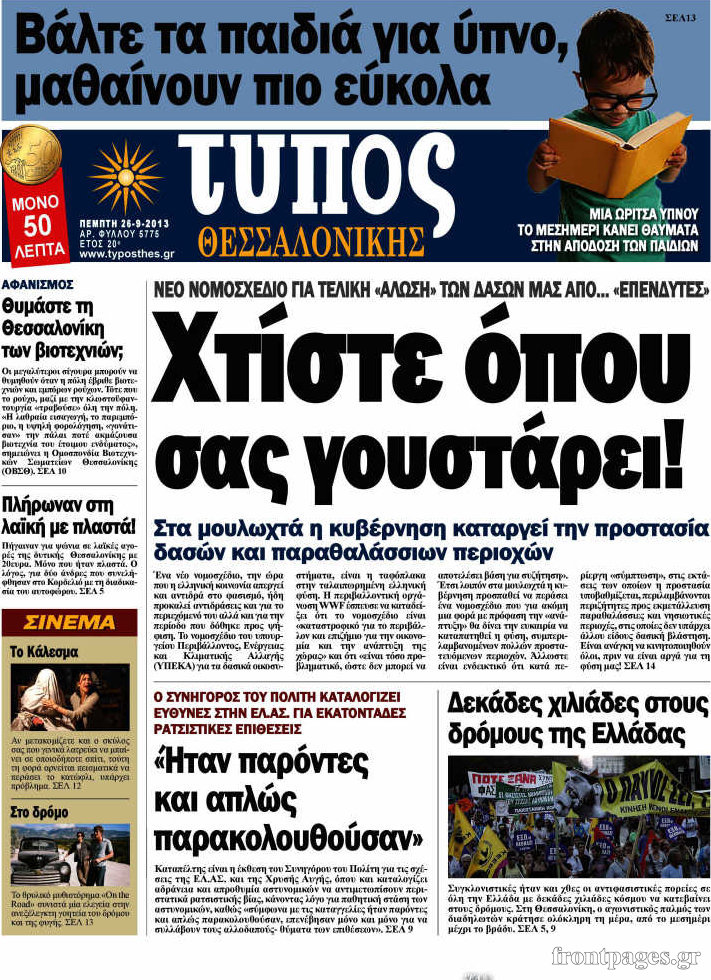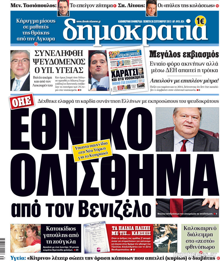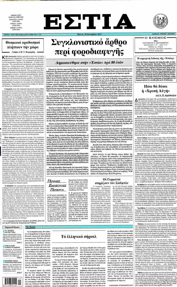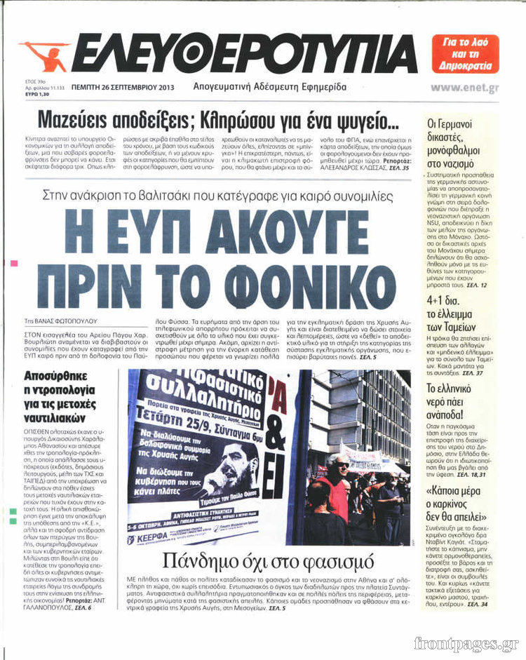 Οι πολιτικές εφημερίδες Enikos Newsroom 08:38, Πέμπτη 26 Σεπτεμβρίου 2013 Media Οι πολιτικές εφημερίδες Διαβάστε τα πρωτοσέλιδα των πολιτικών εφημερίδων: ΕΦΗΜΕΡΙΔΕΣ ΠΟΛΙΤΙΚΕΣ ΕΦΗΜΕΡΙΔΕΣ ΠΡΩΤΟΣΕΛΙΔΑ Μοιράσου το: σχολίασε κι εσύ (0 σχόλια) Ακολουθήστε το enikos.gr στο Google News και μάθετε πρώτοι όλες τις ειδήσεις Δείτε όλες τις τελευταίες ειδήσεις από την Ελλάδα και τον Κόσμο στο enikos.gr Ειδήσεις Ροή Ειδήσεων 6 ώρες πριν Εκτός ευρωομάδας ΣΥΡΙΖΑ ο Νίκος Παππάς μετά την επίθεση στον δημοσιογράφο Νίκο Γιαννόπουλο – Η μήνυση και οι νέες δηλώσεις 7 ώρες πριν «Αγριεύουν» οι αγρότες: «Δεν συντρέχει λόγος συνάντησης με τον πρωθυπουργό» – Ώρα αποφάσεων στη σύσκεψη της Πέμπτης 7 ώρες πριν Κυψέλη: Χωρίς την οικογένειά της δίπλα της απολογήθηκε η 16χρονη – «Της είχε επιτεθεί κάποιος για να την βιάσει, φοβήθηκε και κυκλοφορούσε με μαχαίρι» 6 ώρες πριν Politico: Το πρόβλημα της Ευρώπης δεν είναι το Βέλγιο αλλά ο Ντόναλντ Τραμπ 8 ώρες πριν Αλεξανδρούπολη: Πολυοργανική ανεπάρκεια λόγω υποσιτισμού η αιτία θανάτου του 3χρονου αγοριού 6 ώρες πριν Μυστήριο με τεράστιες κυκλικές πέτρες 200 κιλών – Ανακαλύφθηκαν τυχαία κατά τη διάρκεια οδικών έργων και κανείς δεν ξέρει από πού προέρχονται 7 ώρες πριν Ύπνος: Ειδικός εξηγεί τον πραγματικό λόγο που ξυπνάτε στις 4 τα ξημερώματα – Ο ρόλος των ορμονών και του κιρκάδιου ρυθμού 8 ώρες πριν Αριθμολογία: Οι άνθρωποι που έχουν γεννηθεί αυτές τις 4 ημερομηνίες, είναι τρυφεροί και αγαπούν ανιδιοτελώς 20 ώρες πριν 20 χρόνια τα Χριστούγεννα ξεκινούν στα Public με μεγάλη ποικιλία σε δώρα! 6 λεπτά πριν Το Ποντίκι σήμερα Πέμπτη 18/12/2025 10 λεπτά πριν Εφημερεύοντα φαρμακεία σε Αθήνα και Θεσσαλονίκη (18/12) 12 λεπτά πριν Αλεξάνδρα Ούστα: «Αυτό που με τρέλανε στον σύζυγό μου ήταν η ορθολογική του σκέψη» 20 λεπτά πριν Μιχάλης Αεράκης: «Της είπα “θέλω να κάνουμε σπιτικό, αλλά υπάρχουν τρεις προϋποθέσεις…”» 27 λεπτά πριν Αυστραλία: Κυβερνητική δέσμευση για αυστηρότερα μέτρα κατά της υποκίνησης μίσους ENIKOS NETWORK Αϋπνία: Το κόλπο που θα σας βοηθήσει να κοιμηθείτε απόψε – Είναι απλό και έχει αποτέλεσμα 2,6 εκατομμύρια πολίτες έχουν ήδη εμβολιαστεί κατά της γρίπης ΕΛΣΤΑΤ: Τι δείχνουν τα νέα στοιχεία για τις ηλεκτρονικές παραγγελίες των επιχειρήσεων ΚΕΠΕ: Οι 3 διακριτές συμβολές των ΜμΕ και της μεταποίησης στην ελληνική οικονομία Χαρτογραφώντας το «σημείο χωρίς επιστροφή»: Για πρώτη φορά αποκαλύπτεται με λεπτομέρεια το ακανθώδες όριο της ατμόσφαιρας τ... Η Google καταργεί τη λειτουργία «dark web report» – Πώς θα μπορούν οι χρήστες να διαγράφουν τα δεδομένα τους περισσότερα 05:22 , Πέμπτη 18 Δεκεμβρίου 2025 Το Ποντίκι σήμερα Πέμπτη 18/12/2025 Διαβάστε το πρωτοσέλιδο της εφημερίδας «Το Ποντίκι» σήμερα 18/12/2025. 02:30 , Πέμπτη 18 Δεκεμβρίου 2025 Αλ Τσαντίρι Νιουζ: Η κόρη της Πάολα στο κοινό – Η ατάκα Λαζόπουλου που την έκανε να «κοκκινήσει» Γιορτινή διάθεση και ευχάριστες στιγμές γέμισε η αποψινή, τελευταία για το 2025, εκπομπή του «... 22:24 , Τετάρτη 17 Δεκεμβρίου 2025 Το Σπίτι Δίπλα Στο Ποτάμι: Σε κίνδυνο η υγεία του Απόστολου – Τι θα δούμε απόψε “Το Σπίτι Δίπλα στο Ποτάμι” ξετυλίγει το νήμα της ζωής των πέντε αδελφών με καταισ... 21:14 , Τετάρτη 17 Δεκεμβρίου 2025 Παιχνίδια Εκδίκησης: Θα καταφέρει ο Χρήστος να κλονίσει την εμπιστοσύνη της Μάγιας απέναντι στον Άγη; Τα «Παιχνίδια Εκδίκησης» έρχονται απόψε στις 22:30, στον Αντ1, με το τελευταίο επεισόδιο της χ... ΤΕΛΕΥΤΑΙΕΣ ΕΙΔΗΣΕΙΣ 6 λεπτά πριν Το Ποντίκι σήμερα Πέμπτη 18/12/2025 10 λ