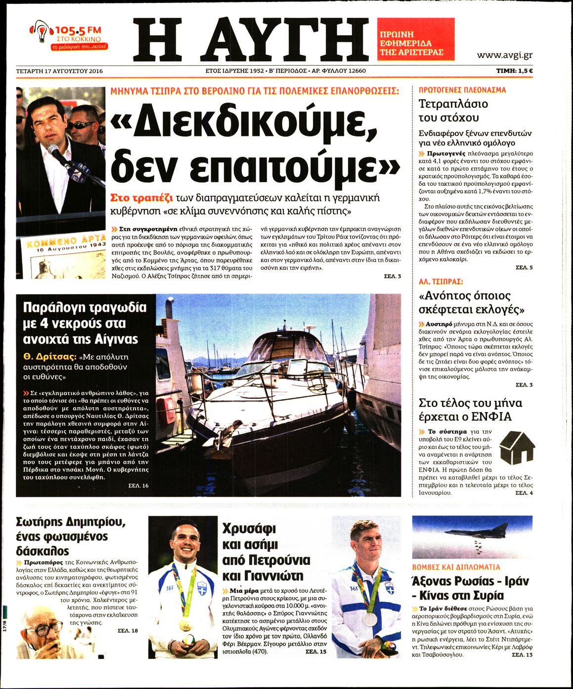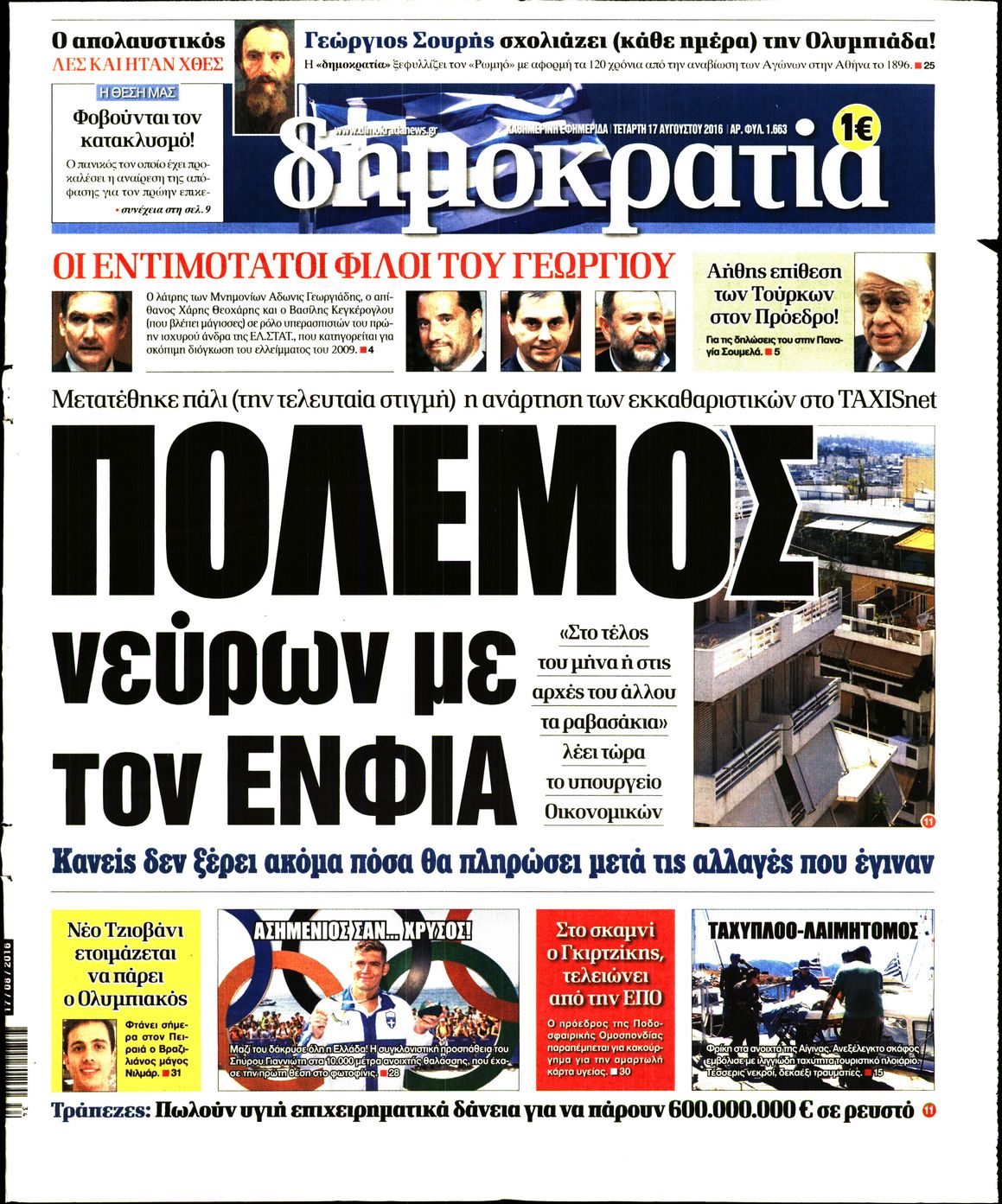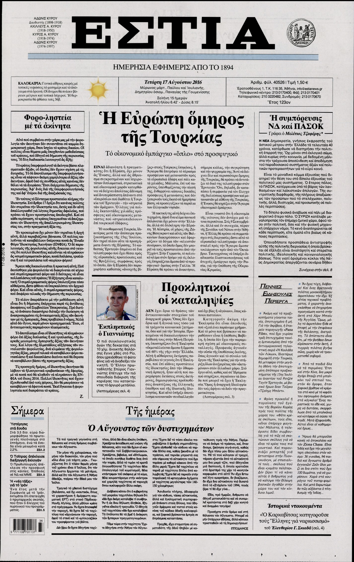 Οι πολιτικές εφημερίδες 17/8/2016 Enikos Newsroom 06:16, Τετάρτη 17 Αυγούστου 2016 Media Διαβάστε τα σημερινά πρωτοσέλιδα των πολιτικών εφημερίδων: ΠΟΛΙΤΙΚΕΣ ΕΦΗΜΕΡΙΔΕΣ ΠΡΩΤΟΣΕΛΙΔΑ Μοιράσου το: σχολίασε κι εσύ (0 σχόλια) Ακολουθήστε το enikos.gr στο Google News και μάθετε πρώτοι όλες τις ειδήσεις Δείτε όλες τις τελευταίες ειδήσεις από την Ελλάδα και τον Κόσμο στο enikos.gr Ειδήσεις Ροή Ειδήσεων 5 ώρες πριν Λιμενικό για την τραγωδία στη Χίο: «Το ταχύπλοο προσέκρουσε στην δεξιά πλευρά του σκάφους μας, ανετράπη και βυθίστηκε» 1 ώρα πριν Κικίλιας για ναυάγιο στη Χίο: Ανείπωτη τραγωδία, εχθροί της χώρας οι σύγχρονοι λαθρέμποροι 1 ώρα πριν Βήματα προσέγγισης Τουρκίας-Ισραήλ; 53 λεπτά πριν Τραγωδία στη Χίο: «Τέτοια περιστατικά τα είχαμε ξεχάσει από το 2020 – Οι αναζητήσεις συνεχίζονται» – Τι δήλωσε ο Περιφερειάρχης Β. Αιγαίου στο enikos.gr 46 λεπτά πριν Έκτακτο δελτίο επιδείνωσης καιρού από την ΕΜΥ – Έρχονται ισχυρές καταιγίδες και χαλαζοπτώσεις από το βράδυ 3 ώρες πριν Τα 4 ζώδια που λαμβάνουν ένα ισχυρό σημάδι από το σύμπαν – «Μια τυχαία κουβέντα μπορεί να κρύβει απαντήσεις για όσα μας απασχολούν» 4 ώρες πριν Κατέστρεψε κατά λάθος έναν γάμο – «Ήρθε μια γυναίκα στην τράπεζα και με ρώτησε γιατί εξαφανίζονται τα λεφτά απ’ τον λογαριασμό της» 2 ώρες πριν Γιατρός που έχασε έχασε 56 κιλά αποκαλύπτει: «Σταμάτησα να μετράω θερμίδες και άρχισα να ακούω το σώμα μου» 43 λεπτά πριν Οι γυναίκες που ανταγωνίζονται άλλες γυναίκες, έχουν συνήθως αυτές τις 8 κρυφές πεποιθήσεις 2 λεπτά πριν Ατομική έκθεση της Λεώνης Γιαγδζόγλου στην Αθήνα 6 λεπτά πριν Νέα Υόρκη: Πατέρας κατηγορείται ότι ξυλοκόπησε τον γιο του σε καταφύγιο αστέγων – Σε κρίσιμη κατάσταση ο 2χρονος 12 λεπτά πριν Θεσσαλονίκη: Ένοχη η 57χρονη που δάγκωσε στο αυτί τον σύντροφό της και έκοψε κομμάτι – Το άγριο επεισόδιο πυροδότησε καβγάς… για την γάτα 17 λεπτά πριν Ιράν: Ανεξαρτησία σε… δύο τροχούς για τις γυναίκες – Νομοσχέδιο τους επιτρέπει πλέον να αποκτήσουν δίπλωμα για μοτοσικλέτες και σκούτερ 22 λεπτά πριν Ιόνια Οδός: Νέες φωτογραφίες από την κατολίσθηση – Κλειστό το τμήμα από την Αμφιλοχία μέχρι την Άρτα ENIKOS NETWORK Καρκίνος του παγκρέατος: Πρωτοποριακή θεραπεία Ισπανού ερευνητή δίνει ελπίδες για πλήρη εξάλειψη της νόσου ΠΟΥ: Σχεδόν 4 στους 10 καρκίνους θα μπορούσαν να είχαν αποφευχθεί Δάνεια Νόμου Κατσέλη: Αύριο η απόφαση για τον τρόπο υπολογισμού των τόκων – Αγωνία για 350.000 δανειολήπτες Βουλή: Σήμερα αρχίζει η συζήτηση για το νέο νομοσχέδιο Συλλογικών Συμβάσεων – Ποιοι εργαζόμενοι θα δουν αυξήσεις στους μισθ... Ευπάθεια στο moltbook ai αποκαλύπτει email, tokens σύνδεσης και api keys Αυτός είναι ο ρόλος της μικρής τρύπας στους νυχοκόπτες – «Είμαι ο μόνος που δεν το ήξερε;»» περισσότερα 12:01 , Τετάρτη 04 Φεβρουαρίου 2026 Τηλεθέαση (3/2): Τα νούμερα για το βράδυ της Τρίτης Η τηλεθέαση το βράδυ της Τρίτης (3/2) είχε διακυμάνσεις. Στο δυναμικό κοινό πρώτο τερμάτισε το... 09:58 , Τετάρτη 04 Φεβρουαρίου 2026 LIVE – Ακούστε την εκπομπή του Νίκου Χατζηνικολάου 4/2/2026 Ακούστε την εκπομπή του Νίκου Χατζηνικολάου, στον Realfm 97,8. Ακούστε LIVE εδώ 05:38 , Τετάρτη 04 Φεβρουαρίου 2026 Οι πολιτικές εφημερίδες 4/2/2026 Διαβάστε τα πρωτοσέλιδα από τις πολιτικές εφημερίδες, σήμερα 4/2/2026. 02:33 , Τετάρτη 04 Φεβρουαρίου 2026 MasterChef: Λύγισε ο Γιώργος Αχλαδιώτης – «Κερδίζω, συγκινούμαι… Τώρα θα τους δείξω τι αξίζω» Το πρώτο Τεστ Δημιουργικότητας του MasterChef ολοκληρώθηκε με έναν ξεκάθαρο πρωταγωνιστή. Ο Γι... ΤΕΛΕ