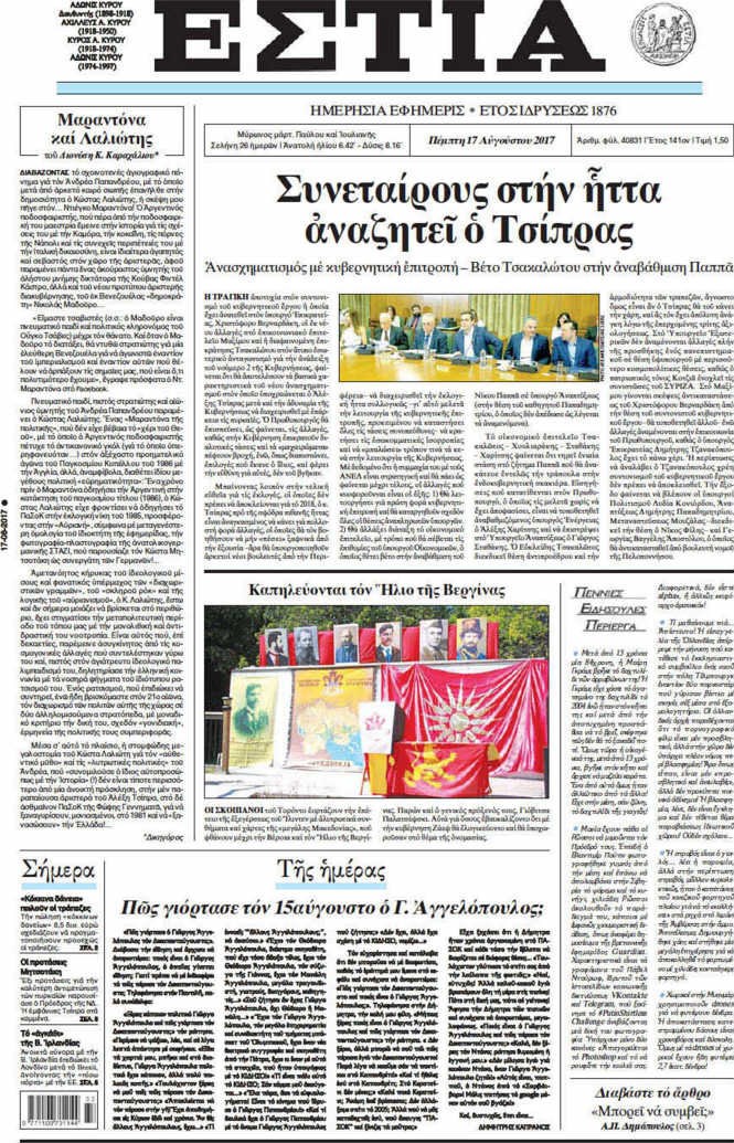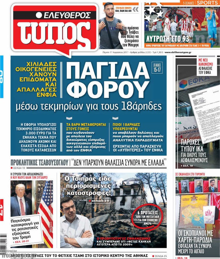 Οι πολιτικές εφημερίδες 17/8/2017 Enikos Newsroom 07:45, Πέμπτη 17 Αυγούστου 2017 Media Διαβάστε τα σημερινά πρωτοσέλιδα των πολιτικών εφημερίδων: ΠΟΛΙΤΙΚΕΣ ΕΦΗΜΕΡΙΔΕΣ ΠΡΩΤΟΣΕΛΙΔΑ Μοιράσου το: σχολίασε κι εσύ (0 σχόλια) Ακολουθήστε το enikos.gr στο Google News και μάθετε πρώτοι όλες τις ειδήσεις Δείτε όλες τις τελευταίες ειδήσεις από την Ελλάδα και τον Κόσμο στο enikos.gr Ειδήσεις Ροή Ειδήσεων 3 ώρες πριν Με μπλόκα η έξοδος των εκδρομέων για τα Χριστούγεννα – Οι αγρότες αναδιατάσσουν τα τρακτέρ τους 56 λεπτά πριν Κωνσταντινούπολη: Ελληνίδα έπεσε θύμα ερωτικής απάτης και έχασε 60.000 ευρώ – Η παγίδα που της έστησε ο «Μουράτ από τον Λίβανο» 2 ώρες πριν Ακρίβεια: Μεγάλη η «ψαλίδα» από το χωράφι στο ράφι – Σημαντικές ανατιμήσεις σε βασικά αγαθά 1 ώρα πριν Αττική: Παράτησε Lamborghini σε στάση λεωφορείου και έφυγε με τα πόδια για να αποφύγει μπλόκο της Τροχαίας 1 ώρα πριν Βινς Ζαμπέλα: Σκοτώθηκε σε τροχαίο ο συνδημιουργός του «Call of Duty» – Βίντεο-σοκ από την πρόσκρουση της κόκκινης Ferrari του 52 λεπτά πριν Αυτά τα 4 ζώδια έχουν πολλά να περιμένουν μετά τη σημερινή ημέρα – «Έρχονται υπέροχα νέα» 3 ώρες πριν Ανακαλύφθηκε μωσαϊκό της ύστερης αρχαιότητας με ελληνική επιγραφή 2 ώρες πριν Ανακάλυψε την απιστία της συζύγου του με τον πρώην της και ζήτησε διαζύγιο – «Δεν σκοπεύω να την βοηθήσω οικονομικά» 3 ημέρες πριν Enerwave: Το νέο «ρεύμα» στη λιανική ενέργειας που αλλάζει την εμπειρία του καταναλωτή 7 λεπτά πριν Euroleague: «Αντίο» στο 2025 με νίκη εκτός έδρας θέλει ο Παναθηναϊκός – Η ώρα του αγώνα με τη Ζαλγκίρις 12 λεπτά πριν Τραμπ: Στο πλευρό του Μπιλ Κλίντον μετά τη δημοσιοποίηση των αρχείων Έπσταϊν – «Δεν μου αρέσουν οι φωτογραφίες που τον απεικονίζουν» 16 λεπτά πριν Αγρότες: Ανοίγουν τα ρεύματα κυκλοφορίας στα τελωνεία Ευζώνων και Νίκης – Συμβολικός αποκλεισμός στον Προμαχώνα 17 λεπτά πριν Την Κυριακή με τη Realnews: Ό,τι και αν αγοράσεις, σκανάρεις και κερδίζεις! 22 λεπτά πριν Gift card από τα Public: Χριστούγεννα χωρίς το άγχος της επιλογής ENIKOS NETWORK Ποια συμπτώματα έχει το μίνι εγκεφαλικό – Μπορεί να εμφανιστούν ακόμα και μήνες πριν από ένα βαρύ επεισόδιο Στοιχεία σοκ για τη χρήση ναρκωτικών και αλκοόλ από ανήλικους-Καμπανάκι κινδύνου ενόψει γιορτών ΤτΕ: Τι αναφέρει η νέα ενδιάμεση έκθεση νομισματικής πολιτικής για επιτόκια, καταθέσεις και πιστωτική επέκταση Προκήρυξη ΑΣΕΠ για 2.217 μόνιμες θέσεις στο Δημόσιο: Ποιοι μπορούν να υποβάλουν ένσταση και μέχρι τι ώρα Ο Google Assistant θα παραμείνει λίγο περισσότερο για ορισμένους χρήστες Android Τεστ προσωπικότητας: Το βάζο που θα επιλέξετε αποκαλύπτει πώς λύνετε προβλήματα στη ζωή σας περισσότερα 10:34 , Τρίτη 23 Δεκεμβρίου 2025 Την Κυριακή με τη Realnews: Ό,τι και αν αγοράσεις, σκανάρεις και κερδίζεις! Την Κυριακή με τη Realnews: Ό,τι και αν αγοράσεις, σκανάρεις και κερδίζεις! Με το PADU app, το... 07:01 , Τρίτη 23 Δεκεμβρίου 2025 Την Κυριακή με τη Realnews: Δωροεπιταγή 10€ Την Κυριακή με τη Realnews: Δωροεπιταγή 10€ Δωροεπιταγή αξίας 10€ για αγορές άνω των 60€ από τ... 20:16 , Δευτέρα 22 Δεκεμβρίου 2025 «Το παιδί από την αρχή»: Special edition επεισόδια της επιτυχημένης σειράς αρχίζουν από σήμερα στην ΕΡΤ1 «Το παιδί», η ξεχωριστή σειρά της ΕΡΤ1 με στοιχεία μαύρης κωμωδίας, που φέρει την υπογραφή του... 19:41 , Δευτέρα 22 Δεκεμβρίου 2025 Porto Leone: Στη γειτονιά με τα κόκκινα φανάρια – Η Αλεξάνδρα ανακαλύπτει το μυστικό της Γαλήνης και της στήνει παγίδα Απόψε στις 22:30 στον Alpha η συγκλονιστική συνέχεια της δραματικής σειράς του Apha «Porto Leo... Τ