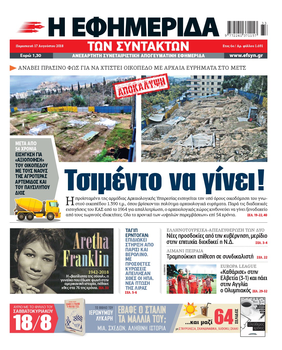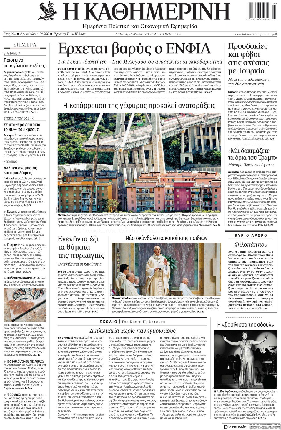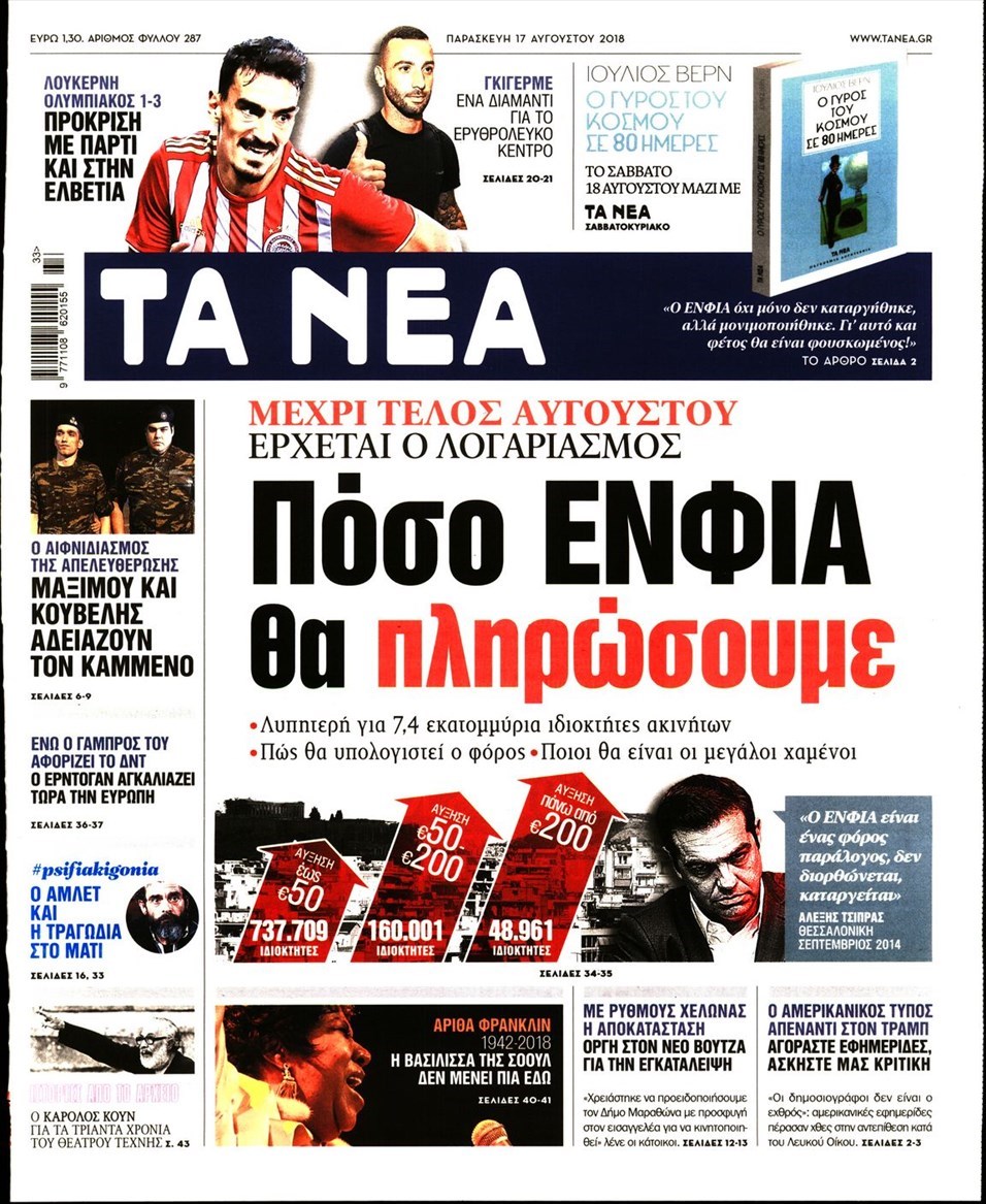 Οι πολιτικές εφημερίδες 17/8/2018 Enikos Newsroom 06:50, Παρασκευή 17 Αυγούστου 2018 Media Διαβάστε τα πρωτοσέλιδα ΠΟΛΙΤΙΚΕΣ ΕΦΗΜΕΡΙΔΕΣ Μοιράσου το: σχολίασε κι εσύ (0 σχόλια) Ακολουθήστε το enikos.gr στο Google News και μάθετε πρώτοι όλες τις ειδήσεις Δείτε όλες τις τελευταίες ειδήσεις από την Ελλάδα και τον Κόσμο στο enikos.gr Ειδήσεις Ροή Ειδήσεων 2 ώρες πριν Χριστούγεννα στα μπλόκα οι αγρότες: Άνοιξαν στα διόδια και μοίρασαν προϊόντα στους πολίτες – Νέα σύσκεψη την Κυριακή στη Νίκαια 2 ώρες πριν Κύκλωμα διακίνησης ναρκωτικών σε σχολεία: Τηλεφωνούσαν στους ανηλίκους την ώρα του μαθήματος – Οι διάλογοι-σοκ, τα «ψευδώνυμα» και τα βασανιστήρια 2 ώρες πριν Αρχεία Επστάιν: Οι 500 σελίδες που λείπουν, τα αναπάντητα ερωτήματα και οι επώνυμοι – Τι έπεται 4 ώρες πριν Ζελένσκι: Μόνο οι ΗΠΑ και ο Τραμπ μπορούν να πιέσουν τη Ρωσία να βάλει τέλος στον πόλεμο 4 ώρες πριν Φοινικούντα: Προφυλακιστέος ο 30χρονος για συνέργεια στη διπλή δολοφονία – Και άλλα πρόσωπα στο «μικροσκόπιο» 2 ώρες πριν Αποκαλύφθηκε το άγνωστο «GPS» της αρχαιότητας – Πώς οι ναοί «φώτιζαν» τον δρόμο των ναυτικών πριν από την εφεύρεση των φάρων 3 ώρες πριν Ύπνος: Η διατροφή που μπορεί να σας βοηθήσει να κοιμάστε καλύτερα και να ζήσετε περισσότερο 4 ώρες πριν Αριθμολογία: Ο αριθμός του φύλακα αγγέλου σας, με βάση τον μήνα γέννησής σας – «Έτσι σας στέλνει σημάδια το σύμπαν» 16 ώρες πριν Enerwave: Το νέο «ρεύμα» στη λιανική ενέργειας που αλλάζει την εμπειρία του καταναλωτή 10 λεπτά πριν Ρετζέπ Ταγίπ Ερντογάν: Δεν έχουμε καμία βλέψη στα εδάφη ή την κυριαρχία κανενός – Δεν θα επιτρέψουμε να παραβιαστούν τα δικαιώματά μας 25 λεπτά πριν Γερμανία: Εκδήλωση μνήμης για τα θύματα της επίθεσης στη χριστουγεννιάτικη αγορά του Μαγδεμβούργου 40 λεπτά πριν The Voice: Η επιστροφή της Έλενας Παπαρίζου και η ατάκα του Γιώργου Μαζωνάκη μετά τις καταγγελίες 55 λεπτά πριν Άδωνις Γεωργιάδης: «Η υγεία είναι κοινωνικό αγαθό, δεν μπορείς να αποκλείσεις κανέναν επειδή δεν έχει χρήματα» 1 ώρα πριν Ανηλίκιο Μετσόβου: Δύο σπίτια παραδόθηκαν στις φλόγες – Επί ποδός η Πυροσβεστική ENIKOS NETWORK Οι γυναίκες αποκαλύπτουν το πιο ελκυστικό πράγμα που μπορεί να κάνει ένας άνδρας Ομορφιά και αντιγήρανση: Ειδικοί μιλούν για συσκευές περιποίησης του δέρματος «Πολεμική» προετοιμασία από την ευρωπαϊκή βιομηχανία ενέργειας – Η Eurelectric ζητεί «ομπρέλα» προστασίας για τις υποδομές Ακύρωση ΑΦΜ για απάτες – Ποιους βάζει στο στόχαστρο η ΑΑΔΕ Χαρτογραφώντας το «σημείο χωρίς επιστροφή»: Για πρώτη φορά αποκαλύπτεται με λεπτομέρεια το ακανθώδες όριο της ατμόσφαιρας τ... Η Google καταργεί τη λειτουργία «dark web report» – Πώς θα μπορούν οι χρήστες να διαγράφουν τα δεδομένα τους περισσότερα 00:00 , Κυριακή 21 Δεκεμβρίου 2025 The Voice: Η επιστροφή της Έλενας Παπαρίζου και η ατάκα του Γιώργου Μαζωνάκη μετά τις καταγγελίες Στη φάση των Cross Battles Live μπήκε το The Voice, με την Έλενα Παπαρίζου να επιστρέφει στο π... 20:30 , Σάββατο 20 Δεκεμβρίου 2025 Αυτή την Κυριακή με τη Realnews: Instyle, μαζί Drive και Realnews Geopolitics Αυτή την Κυριακή με τη Realnews: Instyle, μαζί Drive και Realnews Geopolitics Instyle Η Άννα Ρ... 20:28 , Σάββατο 20 Δεκεμβρίου 2025 Ο ΑΝΤ1 γεμίζει τις γιορτές με μουσική – Ποιους καλλιτέχνες θα απολαύσουμε Φέτος στον ΑΝΤ1 γιορτάζουμε τις νύχτες μας παρέα με αγαπημένους καλλιτέχνες και μεγάλες μουσι... 18:19 , Σάββατο 20 Δεκεμβρίου 2025 HOTΕΛ ΕΛVIRA: Η Ελβίρα μαθαίνει πως ο Χάρι μένει κρυφά στο ξενοδοχείο του Παντελή Συνεχίζονται οι εκλογές για πρόεδρο, στο νέ