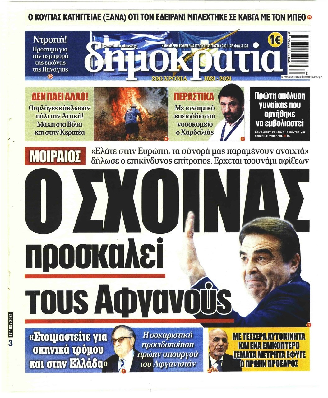 Οι πολιτικές εφημερίδες 17/8/2021 Σήφης Γαρυφαλάκης 06:32, Τρίτη 17 Αυγούστου 2021 Media Διαβάστε τα πρωτοσέλιδα των πολιτικών εφημερίδων. ΕΦΗΜΕΡΙΔΕΣ ΠΟΛΙΤΙΚΕΣ ΕΦΗΜΕΡΙΔΕΣ ΠΡΩΤΟΣΕΛΙΔΑ ΠΡΩΤΟΣΕΛΙΔΑ ΕΦΗΜΕΡΙΔΩΝ Μοιράσου το: σχολίασε κι εσύ (0 σχόλια) Ακολουθήστε το enikos.gr στο Google News και μάθετε πρώτοι όλες τις ειδήσεις Δείτε όλες τις τελευταίες ειδήσεις από την Ελλάδα και τον Κόσμο στο enikos.gr Ειδήσεις Ροή Ειδήσεων 1 ώρα πριν Αυξάνουν την πίεση προς την κυβέρνηση οι αγρότες: Κλείνουν παρακαμπτήριους και ανοίγουν διόδια – Τι θα γίνει τις γιορτές 57 λεπτά πριν Φοινικούντα: Το Σάββατο απολογείται ο 30χρονος γιος γνωστού επιχειρηματία της Πλάκας που παραδόθηκε – Όσα είπε στους αστυνομικούς και ο ρόλος του στο έγκλημα 39 λεπτά πριν Μπορεί ο Μαδούρο να αντέξει τον αποκλεισμό του Τραμπ; Τι θα χρειαστεί η Ουάσινγκτον για να τον ανατρέψει 3 ώρες πριν Δημοσκόπηση Metron Analysis: Στις 10 μονάδες η διαφορά ΝΔ-ΠΑΣΟΚ, στην 3η θέση η Πλεύση Ελευθερίας – 8 στους 10 στηρίζουν τον αγώνα των αγροτών 2 ώρες πριν Πρίγκιπας Ουίλιαμ – Κέιτ: Η νέα οικογενειακή φωτογραφία για τις Χριστουγεννιάτικες κάρτες του 2025 2 ώρες πριν Ύπνος: Η απλή βραδινή ρουτίνα για να προστατεύσετε τα μαλλιά σας από το κρύο κατά τη διάρκεια του χειμώνα 3 ώρες πριν Manifesting: Πώς να συναντήσετε τον σύντροφο της ζωής σας, ανάλογα με τον μήνα γέννησής σας 2 ημέρες πριν 20 χρόνια τα Χριστούγεννα ξεκινούν στα Public με μεγάλη ποικιλία σε δώρα! 42 λεπτά πριν Αρχαιολόγοι ανακάλυψαν ρωμαϊκά τεχνουργήματα από μια πόλη που δεν υπήρξε ποτέ – Τα τρία εντυπωσιακά κτίρια και ο αμφορέας με τις… σαρδέλες 8 λεπτά πριν Αθηνά Μαξίμου: Η τρυφερή ανάρτηση για τα γενέθλια του Αιμίλιου Χειλάκη – «Είναι η εκλεκτική συγγένειά μου, η επιλογή και η ευθύνη μου» 23 λεπτά πριν Παναθηναϊκός – Χάποελ Τελ Αβίβ 93-82: Με… φόρα από την Κωνσταντινούπολη 39 λεπτά πριν Μπορεί ο Μαδούρο να αντέξει τον αποκλεισμό του Τραμπ; Τι θα χρειαστεί η Ουάσινγκτον για να τον ανατρέψει 42 λεπτά πριν Αρχαιολόγοι ανακάλυψαν ρωμαϊκά τεχνουργήματα από μια πόλη που δεν υπήρξε ποτέ – Τα τρία εντυπωσιακά κτίρια και ο αμφορέας με τις… σαρδέλες 44 λεπτά πριν Στο ΟΑΚΑ για το «Παναθηναϊκός – Χάποελ» η Κίμπερλι Γκίλφοϊλ – ΦΩΤΟ ENIKOS NETWORK Σε περίοδο αυξημένης δραστηριότητας η γρίπη στην Ελλάδα-Μέτρα προστασίας από τον ΕΟΔΥ Σκέφτεστε συνέχεια συζητήσεις που έχετε κάνει; Τι σημαίνει αυτό, σύμφωνα με ειδικό Στεγαστικό: Τι λέει η ΠΟΜΙΔΑ για τα νέα μέτρα που ανακοίνωσε ο Κυριάκος Μητσοτάκης Λαγκάρντ: Αισιόδοξη για την ανάπτυξη της Ευρωζώνης, αβέβαιη για τον πληθωρισμό Χαρτογραφώντας το «σημείο χωρίς επιστροφή»: Για πρώτη φορά αποκαλύπτεται με λεπτομέρεια το ακανθώδες όριο της ατμόσφαιρας τ... Η Google καταργεί τη λειτουργία «dark web report» – Πώς θα μπορούν οι χρήστες να διαγράφουν τα δεδομένα τους περισσότερα 17:45 , Πέμπτη 18 Δεκεμβρίου 2025 ROUK ZOUK: Εορταστικό επεισόδιο με καλεσμένους τους πρωταγωνιστές του «Γιατί ρε πατέρα» Το Σάββατο 20 Δεκεμβρίου στις 21:00, η Ζέτα Μακρυπούλια υποδέχεται εκλεκτούς ηθοποιούς που όλο... 17:20 , Πέμπτη 18 Δεκεμβρίου 2025 Άγιος έρωτας: Η Χριστίνα εξομολογείται στον πατέρα Νικόλαο, απόψε στις 21:00 στον Alpha Η Νότα αποφασίζει να εκδικηθεί τον Πέτρο και τον Στέφανο, για χάρη του Λούη, όμως τα πράγματα ... 16:50 , Πέμπτη 18 Δεκεμβρίου 2025 Να μ’ αγαπάς: Ζωή και Φωτεινή συμφιλιώνονται ως μάνα με κόρη, απόψε στις 20:00 Η ταυτότητα του Άγγελου αποκαλύπτεται στο νέο επεισόδιο της σειράς “Να μ’ αγαπάς... 15:52 , Π