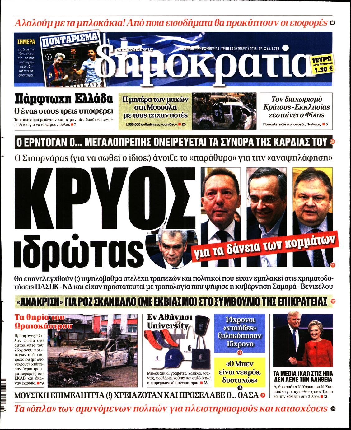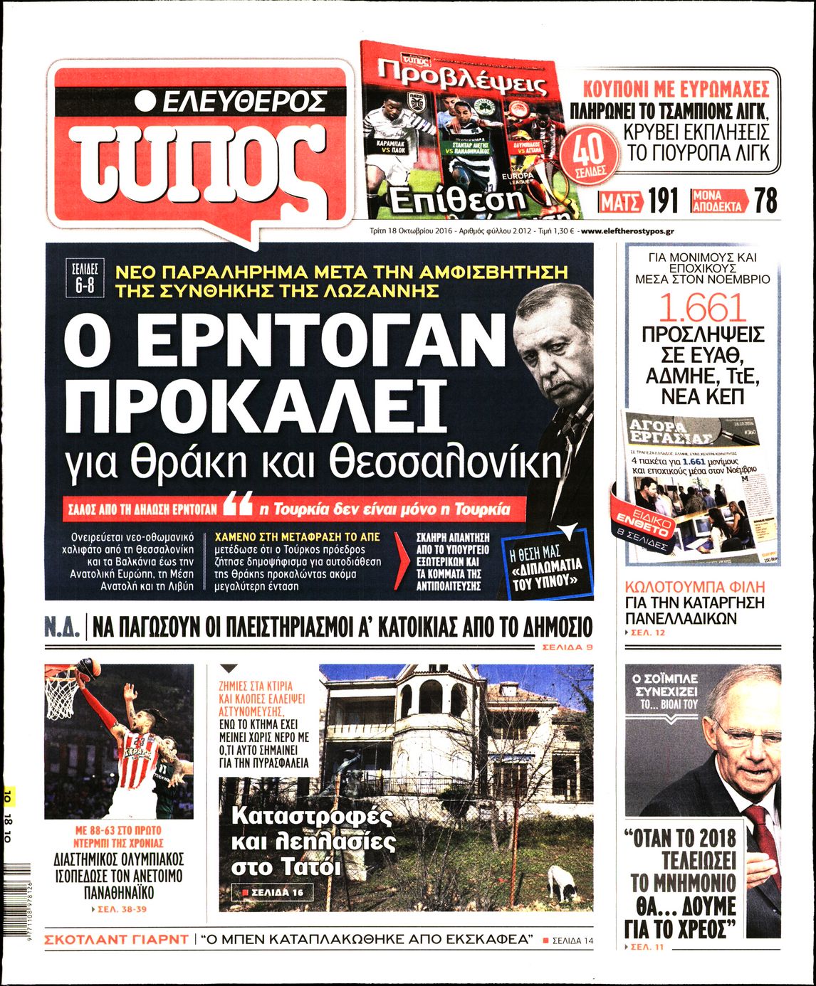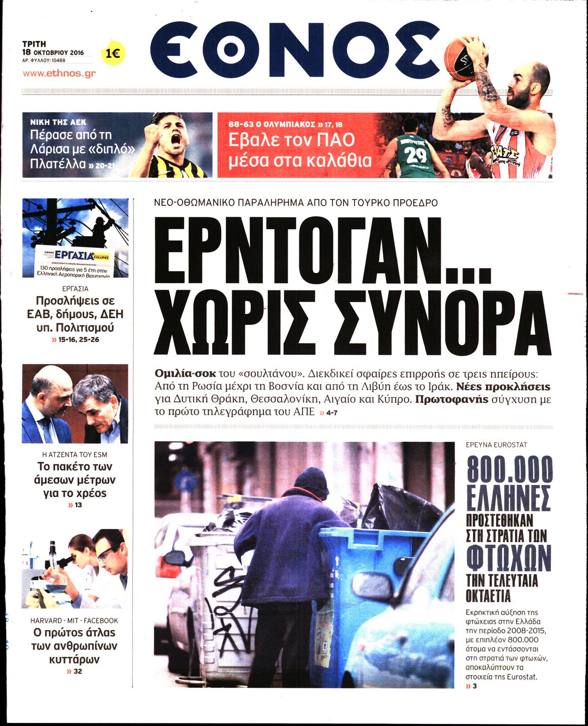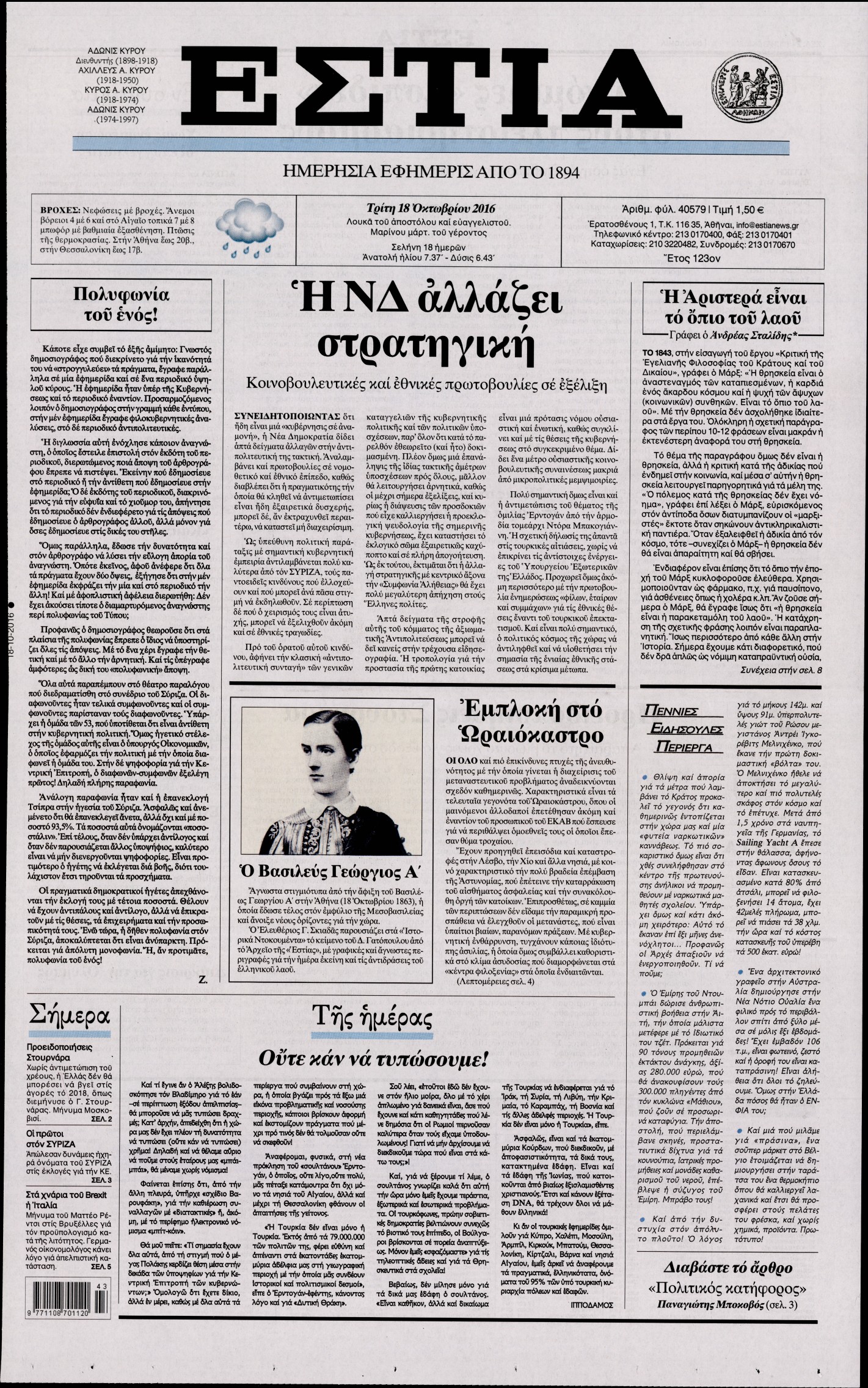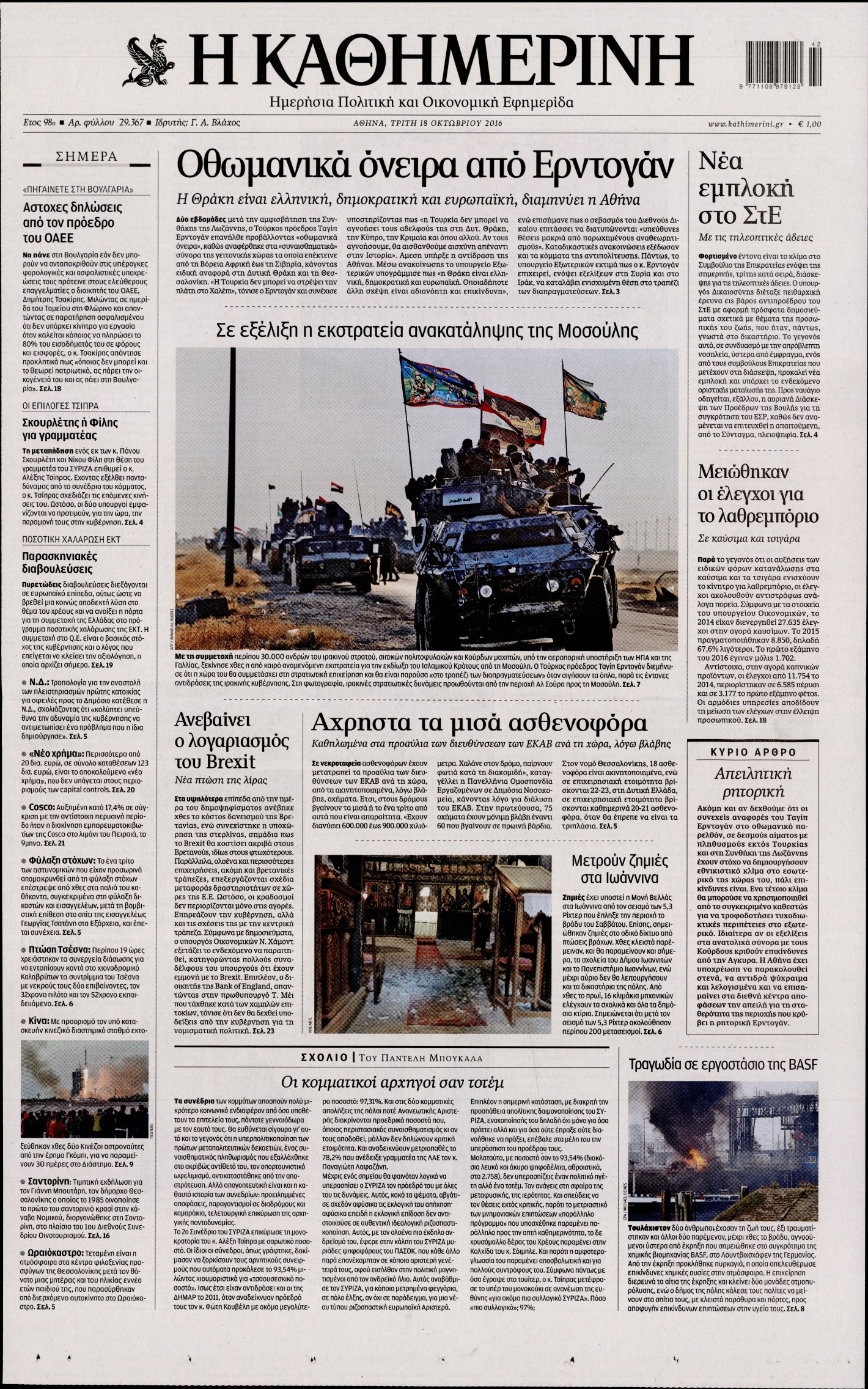 Οι πολιτικές εφημερίδες 18-10-2016 Κώστας Τεό 05:09, Τρίτη 18 Οκτωβρίου 2016 Media Διαβάστε τα σημερινά πρωτοσέλιδα των πολιτικών εφημερίδων: ΠΟΛΙΤΙΚΕΣ ΕΦΗΜΕΡΙΔΕΣ ΠΡΩΤΟΣΕΛΙΔΑ Μοιράσου το: σχολίασε κι εσύ (0 σχόλια) Ακολουθήστε το enikos.gr στο Google News και μάθετε πρώτοι όλες τις ειδήσεις Δείτε όλες τις τελευταίες ειδήσεις από την Ελλάδα και τον Κόσμο στο enikos.gr Ειδήσεις Ροή Ειδήσεων 8 ώρες πριν Χριστούγεννα στα μπλόκα: Επιμένουν στις κινητοποιήσεις τους οι αγρότες – Ανοίγουν τα διόδια το Σαββατοκύριακο 9 ώρες πριν Ουκρανία: Η άνευ προηγουμένου επίθεση σε ρωσικό τάνκερ στη Μεσόγειο και το μήνυμα προς στον Πούτιν – Το «μακρύ χέρι» του Κιέβου 8 ώρες πριν Πούτιν: Τα μηνύματα σε Ευρώπη και ΝΑΤΟ από το μαραθώνιο «σόου» του – Η απαίτηση για «σεβασμό» και η ειρήνη «με τους όρους» της Μόσχας 7 ώρες πριν ΗΠΑ: Η κυβέρνηση του Ντόναλντ Τραμπ άρχισε να δημοσιοποιεί τα αρχεία Έπσταϊν 7 ώρες πριν Άνω Λιόσια: Πυροβολισμοί σε επιχείρηση με χαλιά – Εντοπίστηκαν 10 κάλυκες 54 λεπτά πριν Αυγά: Πόσα μπορείτε να τρώτε την ημέρα με ασφάλεια για μέγιστη πρόσληψη πρωτεΐνης 1 ώρα πριν Τα ζώδια σήμερα, Σάββατο 20 Δεκεμβρίου: Παρθένοι, το σύμπαν σας δίνει το κλειδί 8 ώρες πριν Ανακαλύφθηκαν αρχαία χρυσά νομίσματα 2.200 ετών που απεικονίζουν τον θεό Απόλλωνα – Η άγνωστη σύνδεση με τον Φίλιππο Β΄ της Μακεδονίας 9 ώρες πριν Ύπνος: Μια κρυφή κατάσταση του εγκεφάλου πριν από τον ύπνο μπορεί να είναι το “κλειδί” για υψηλή ευφυΐα και δημιουργικότητα 15 λεπτά πριν Κίριλ Ντμίτριεφ: Στις ΗΠΑ ο απεσταλμένος της Ρωσίας για συνομιλίες με τους ομολόγους του, Γουίτκοφ και Κούσνερ 23 λεπτά πριν ΔΕΔΔΗΕ: Διακοπές ρεύματος σήμερα (20/12) στην Αθήνα και σε άλλες 7 περιοχές της Αττικής 31 λεπτά πριν Κολομβία: Είκοσι χρόνια κάθειρξη σε πρώην ανώτερο αξιωματικό για 72 εκτελέσεις αμάχων 39 λεπτά πριν Οπτική ψευδαίσθηση: Μόνο αν είσαι ο Σέρλοκ Χολμς θα βρεις τον αριθμό «87» σε 7 δευτερόλεπτα 46 λεπτά πριν Σαρωτικοί οι έλεγχοι στους δρόμους ενόψει εορτών – Μπλόκα της τροχαίας σε κεντρικές αρτηρίες της Αττικής ENIKOS NETWORK Το ΕΚΑΒ τιμήθηκε από την Ακαδημία Αθηνών για τα 40 χρόνια προσφοράς του Έχετε πραγματικά μεγάλη καρδιά; 10 χαρακτηριστικά όσων έχουν καλοσύνη Αναστολή μέτρων αναγκαστικής εκτέλεσης για κτηνοτρόφους που πλήττονται από την ευλογιά των αιγοπροβάτων Πλήρης επάρκεια προϊόντων στις λαϊκές της Αττικής, παρά τις αγροτικές κινητοποιήσεις – Τι απαντούν οι πωλητές Χαρτογραφώντας το «σημείο χωρίς επιστροφή»: Για πρώτη φορά αποκαλύπτεται με λεπτομέρεια το ακανθώδες όριο της ατμόσφαιρας τ... Η Google καταργεί τη λειτουργία «dark web report» – Πώς θα μπορούν οι χρήστες να διαγράφουν τα δεδομένα τους περισσότερα 05:48 , Σάββατο 20 Δεκεμβρίου 2025 Οι οικονομικές εφημερίδες 20/12/2025 Διαβάστε τα πρωτοσέλιδα από τις οικονομικές εφημερίδες, σήμερα 20/12/2025. 05:43 , Σάββατο 20 Δεκεμβρίου 2025 Οι αθλητικές εφημερίδες 20/12/2025 Διαβάστε τα πρωτοσέλιδα από τις αθλητικές εφημερίδες, σήμερα 20/12/2025. 05:38 , Σάββατο 20 Δεκεμβρίου 2025 Οι πολιτικές εφημερίδες 20/12/2025 Διαβάστε τα πρωτοσέλιδα από τις πολιτικές εφημερίδες, σήμερα 20/12/2025. 04:20 , Σάββατο 20 Δεκεμβρίου 2025 Αγγελική Νικολούλη: Τα συλλυπητήρια για την απώλεια της Ειρήνης Μαρινάκη Τα συλληπητήρια στον πρόεδρο του Mega, τον Βαγγέλη Μαρινάκη, για την απώλεια της μητέρας του Ε... ΤΕΛΕΥΤΑΙΕΣ ΕΙΔΗΣΕΙΣ 15 λεπτά πριν Κίριλ Ντμίτριεφ: Στις ΗΠΑ ο απεσταλμένος της Ρωσίας... 23 λεπτά πριν ΔΕΔΔΗΕ: Διακοπές ρεύματος σήμερα (20/12) στην Αθήν