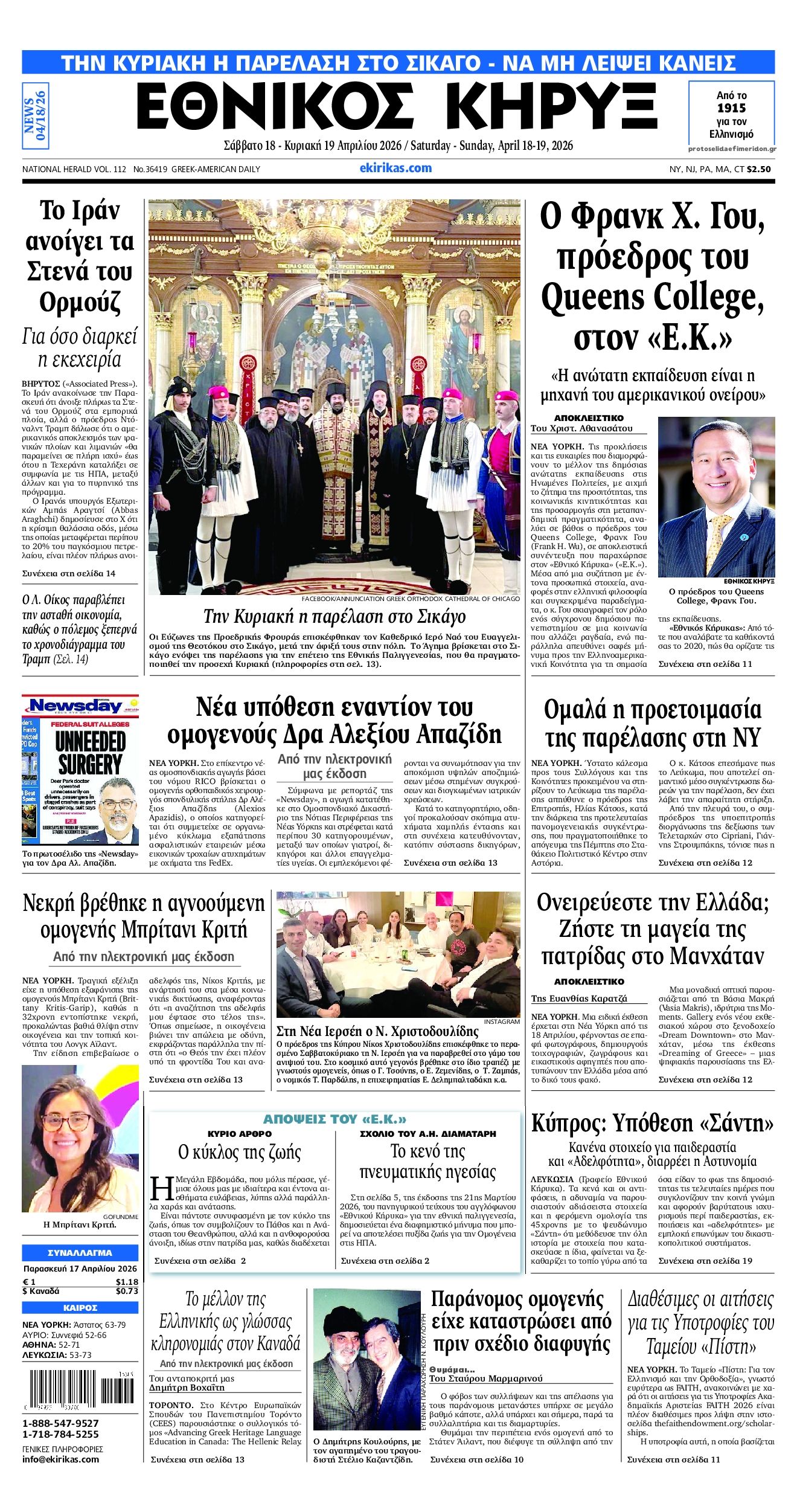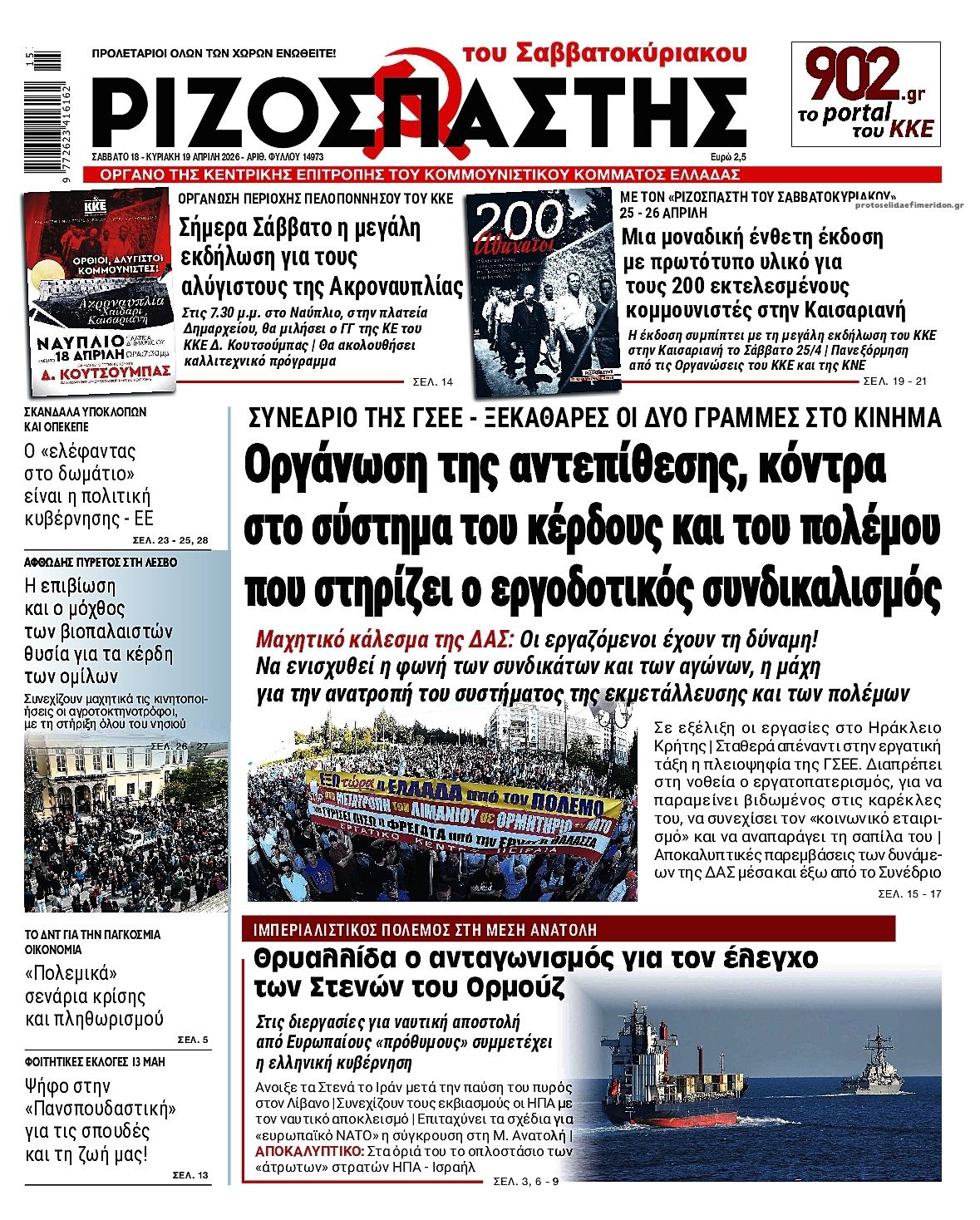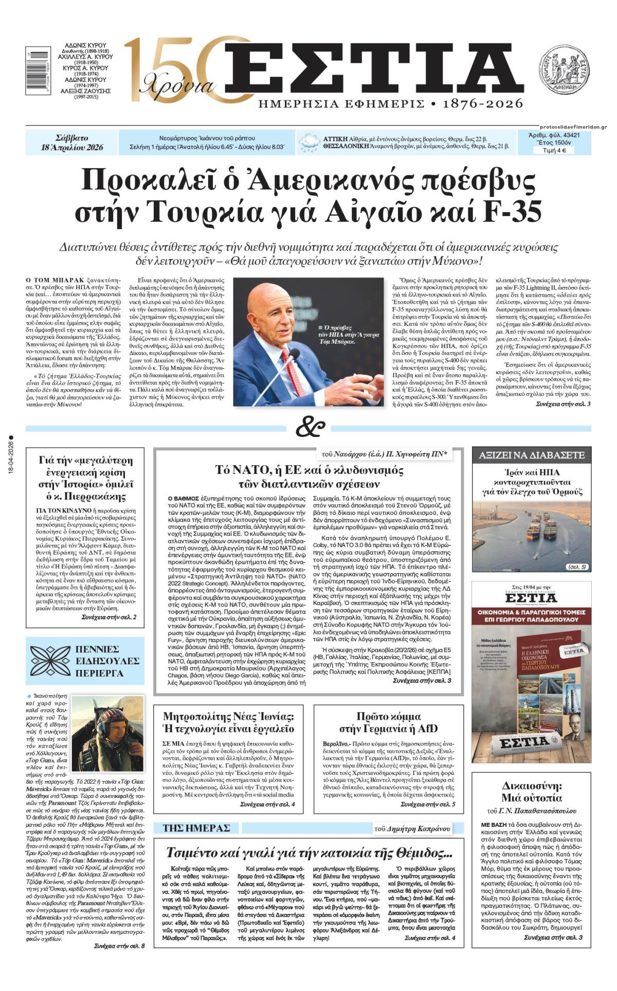 Διαβάστε τα πρωτοσέλιδα από τις πολιτικές εφημερίδες, σήμερα 18/4/2026.