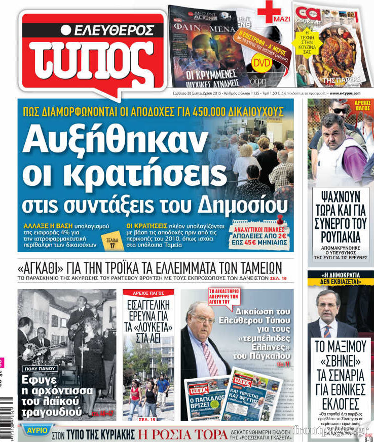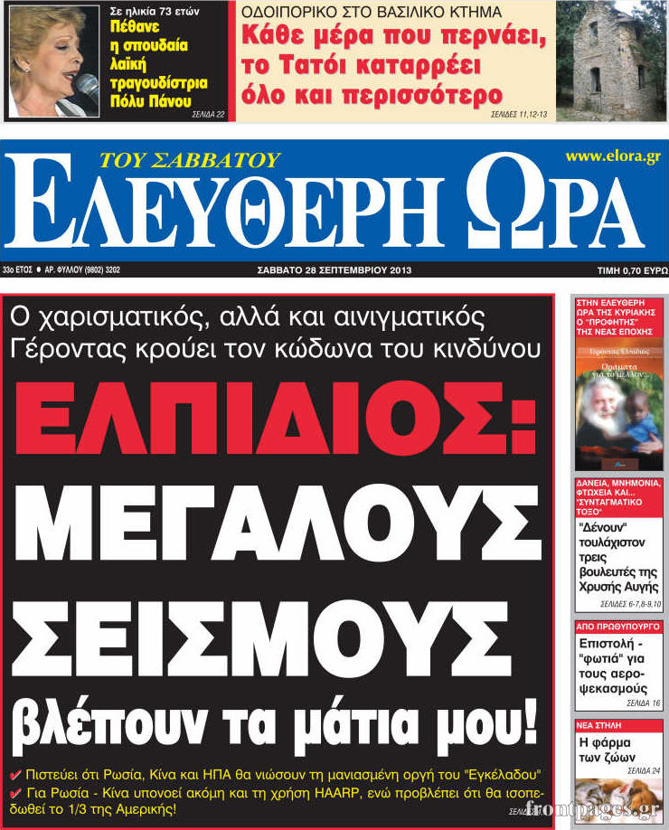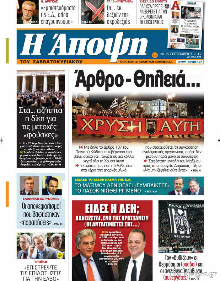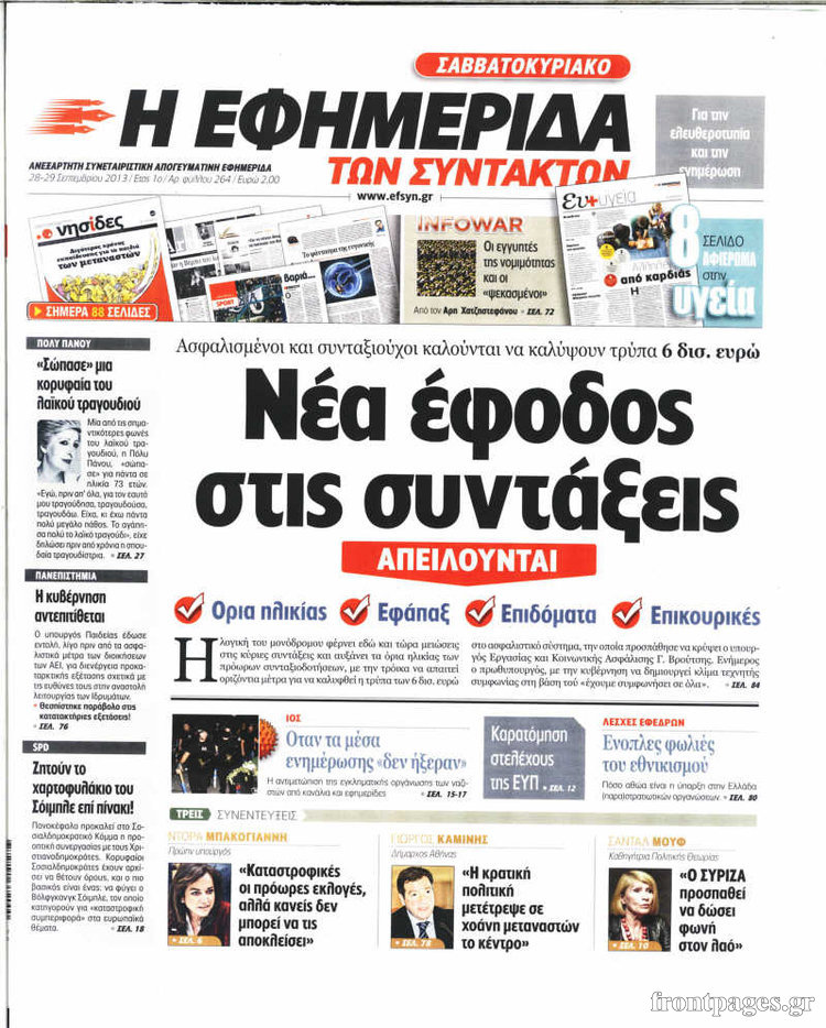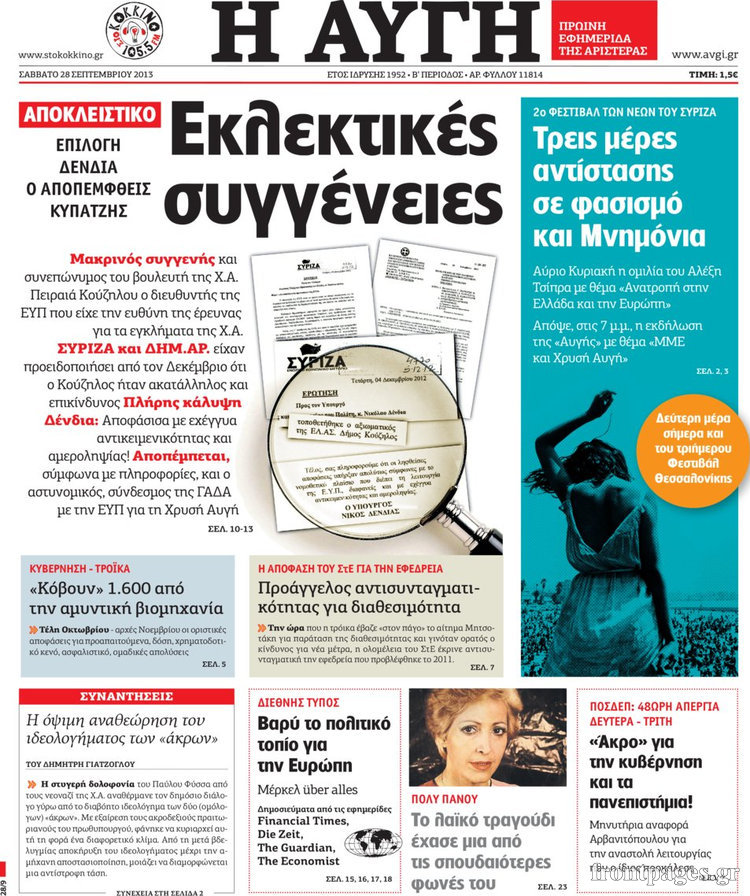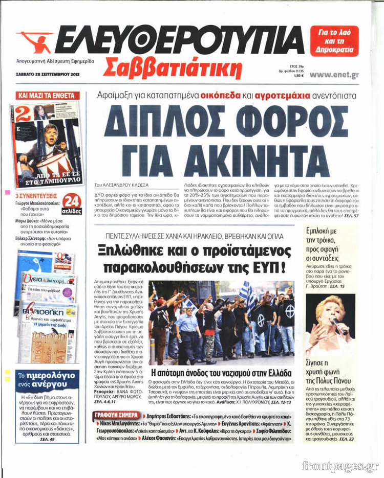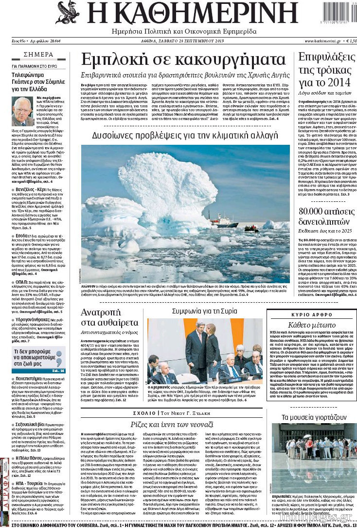 Οι πολιτικές εφημερίδες Enikos Newsroom 07:52, Σάββατο 28 Σεπτεμβρίου 2013 Media Οι πολιτικές εφημερίδες ΕΦΗΜΕΡΙΔΕΣ ΠΟΛΙΤΙΚΕΣ ΕΦΗΜΕΡΙΔΕΣ Μοιράσου το: σχολίασε κι εσύ (0 σχόλια) Ακολουθήστε το enikos.gr στο Google News και μάθετε πρώτοι όλες τις ειδήσεις Δείτε όλες τις τελευταίες ειδήσεις από την Ελλάδα και τον Κόσμο στο enikos.gr Ειδήσεις Ροή Ειδήσεων 2 ώρες πριν Χριστούγεννα στα μπλόκα: Επιμένουν στις κινητοποιήσεις τους οι αγρότες – Ανοίγουν τα διόδια το Σαββατοκύριακο 2 ώρες πριν Ουκρανία: Η άνευ προηγουμένου επίθεση σε ρωσικό τάνκερ στη Μεσόγειο και το μήνυμα προς στον Πούτιν – Το «μακρύ χέρι» του Κιέβου 1 ώρα πριν Πούτιν: Τα μηνύματα σε Ευρώπη και ΝΑΤΟ από το μαραθώνιο «σόου» του – Η απαίτηση για «σεβασμό» και η ειρήνη «με τους όρους» της Μόσχας 2 ώρες πριν Τραμπ: Δεν αποκλείει την πιθανότητα ενός πολέμου στη Βενεζουέλα – «Ο Μαδούρο ξέρει καλύτερα από τον καθένα τι ακριβώς θέλω» 3 ώρες πριν Συνεχίζει να προκαλεί ο Μίτσκοσκι: «Για μένα το όνομα Μακεδονία είναι ιερό» 1 ώρα πριν Ανακαλύφθηκαν αρχαία χρυσά νομίσματα 2.200 ετών που απεικονίζουν τον θεό Απόλλωνα – Η άγνωστη σύνδεση με τον Φίλιππο Β΄ της Μακεδονίας 2 ώρες πριν Ύπνος: Μια κρυφή κατάσταση του εγκεφάλου πριν από τον ύπνο μπορεί να είναι το “κλειδί” για υψηλή ευφυΐα και δημιουργικότητα 3 ώρες πριν Αριθμολογία: Οι άνθρωποι που έχουν γεννηθεί αυτές τις 4 ημερομηνίες, συχνά παρεξηγούνται – «Η καλοσύνη τους κρύβει τεράστια δύναμη» 4 ώρες πριν Ξεχάστε το καθάρισμα το Σαββατοκύριακο: Ο «κανόνας των 20 λεπτών» που θα σας λύσει τα χέρια 15 λεπτά πριν Βασίλης Σπανούλης: Δεν εμφανίστηκε ούτε ένας δημοσιογράφος στην συνέντευξη Τύπου – «Καλησπέρα στον… κανέναν», δείτε βίντεο 26 λεπτά πριν Πόλεμος στην Ουκρανία: Εφτά νεκροί από ρωσική πυραυλική επίθεση στο λιμάνι της Οδησσού 29 λεπτά πριν ΗΠΑ: Η κυβέρνηση του Ντόναλντ Τραμπ άρχισε να δημοσιοποιεί τα αρχεία Έπσταϊν 41 λεπτά πριν Σάμος: Άνοιξε το μπλόκο των αγροτών στον κόμβο Κοκκαρίου – Σε νέα συνεδρίαση θα καθορίσουν την στάση τους 49 λεπτά πριν Άνω Λιόσια: Πυροβολισμοί σε επιχείρηση με χαλιά – Εντοπίστηκαν 10 κάλυκες ENIKOS NETWORK Το ΕΚΑΒ τιμήθηκε από την Ακαδημία Αθηνών για τα 40 χρόνια προσφοράς του Έχετε πραγματικά μεγάλη καρδιά; 10 χαρακτηριστικά όσων έχουν καλοσύνη Αναστολή μέτρων αναγκαστικής εκτέλεσης για κτηνοτρόφους που πλήττονται από την ευλογιά των αιγοπροβάτων Πλήρης επάρκεια προϊόντων στις λαϊκές της Αττικής, παρά τις αγροτικές κινητοποιήσεις – Τι απαντούν οι πωλητές Χαρτογραφώντας το «σημείο χωρίς επιστροφή»: Για πρώτη φορά αποκαλύπτεται με λεπτομέρεια το ακανθώδες όριο της ατμόσφαιρας τ... Η Google καταργεί τη λειτουργία «dark web report» – Πώς θα μπορούν οι χρήστες να διαγράφουν τα δεδομένα τους περισσότερα 22:42 , Παρασκευή 19 Δεκεμβρίου 2025 Γιώργος Γιαννόπουλος για “Το σόι σου”: “Είναι ευτυχία και ευλογία αυτή η σειρά” «Είναι ευτυχία και ευλογία η συγκυρία αυτής της σειράς», θα πει ο Γιώργος Γιαννόπουλος -ο αγαπ... 20:37 , Παρασκευή 19 Δεκεμβρίου 2025 Don’t Forget The Lyrics: Η Έλλη Κοκκίνου υποδέχεται 4 παίκτες που θα κάνουν τα πάντα για να μη χάσουν ούτε… μισή λέξη από τους στίχους Το «Don’t Forget The Lyrics» επιστρέφει απόψε, Παρασκευή 19 Δεκεμβρίου, στις 21:00 με νέο επει... 19:31 , Παρασκευή 19 Δεκεμβρίου 2025 GNTM: Απόψε ο μεγάλος τελικός για τους 4 φιναλίστ Έπειτα από μήνες γεμάτους μόδα, δημιουργία και έντονες αναμετρήσεις, το GNTM 2025 κορυφώνεται,... 18:11 , Παρασκευή 19 Δεκεμβρίου 2025 Το σόι σου: Ο Άρης έρ
