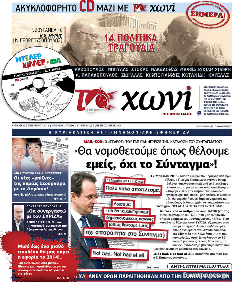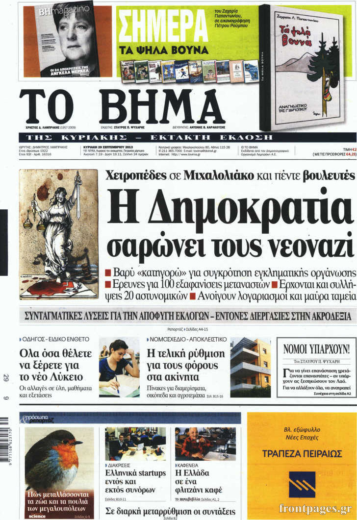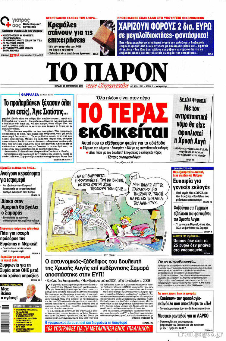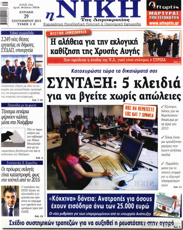 Oι πολιτικές εφημερίδες Enikos Newsroom 08:08, Κυριακή 29 Σεπτεμβρίου 2013 Media Oι πολιτικές εφημερίδες ΕΦΗΜΕΡΙΔΕΣ ΚΥΡΙΑΚΑΤΙΚΕΣ ΕΦΗΜΕΡΙΔΕΣ ΠΟΛΙΤΙΚΕΣ ΕΦΗΜΕΡΙΔΕΣ Μοιράσου το: σχολίασε κι εσύ (0 σχόλια) Ακολουθήστε το enikos.gr στο Google News και μάθετε πρώτοι όλες τις ειδήσεις Δείτε όλες τις τελευταίες ειδήσεις από την Ελλάδα και τον Κόσμο στο enikos.gr Ειδήσεις Ροή Ειδήσεων 1 ώρα πριν Αγρότες: Έδωσαν στη δημοσιότητα τη λίστα με τα αιτήματά τους – Δείτε αναλυτικά τι ζητούν 1 ώρα πριν Σίδνεϊ: Οι φωτογραφίες των δύο δραστών της τρομοκρατικής επίθεσης – Έφοδος της αστυνομίας στο σπίτι του ενός 3 ώρες πριν ΟΠΕΚΕΠΕ-Κρήτη: Προθεσμία να απολογηθούν από την Τρίτη έως την Πέμπτη έλαβαν οι 16 συλληφθέντες 38 λεπτά πριν Θεσσαλονίκη: «Δεν έκανα κάτι παράνομο» είπε ο οδηγός του λεωφορείου – Αφέθηκε ελεύθερος, προκαταρκτική έρευνα διέταξε η εισαγγελέας 2 ώρες πριν Guardian: «Μύρισαν χρήμα και έσπευσαν» – Ο ανταγωνισμός αμερικανικών εταιρειών για να πλουτίσουν από την κατεστραμμένη Γάζα 3 ώρες πριν Τα 5 ζώδια που ευνοούνται στα ερωτικά τους έως τις 21 Δεκεμβρίου – «Η επόμενη σχέση σας θα είναι καθοριστική» 4 ώρες πριν Γεωλογική αποκάλυψη: Επιστήμονες εξηγούν πώς η Ιβηρική Χερσόνησος περιστρέφεται σαν… ρολόι 7 ώρες πριν Προπονήτρια ευεξίας που έχασε 24 κιλά αποκαλύπτει: «Αυτά είναι τα 6 ανησυχητικά σημάδια της υψηλής κορτιζόλης» 8 ώρες πριν Τα 8 πράγματα που τα ευτυχισμένα ζευγάρια δεν κάνουν ποτέ μπροστά στα παιδιά τους 3 λεπτά πριν Οι 7 βραδινές συνήθειες που μαρτυρούν ότι κάποιος υποφέρει από βαθιά μοναξιά, σύμφωνα με την ψυχολογία 9 λεπτά πριν Τραγική εξέλιξη στο Αίγιο: Πέθανε ο 43χρονος που γρονθοκόπησε γιατρό στο νοσοκομείο 14 λεπτά πριν Διεθνής κατακραυγή για την τρομοκρατική επίθεση στο Σίδνεϊ – «Αποτροπιασμένοι» Κάρολος και Καμίλα 22 λεπτά πριν Κωνσταντοπούλου από το μπλόκο της Νίκαιας: Οι αγρότες πήραν μια αξιοπρεπή απόφαση, ο αγώνας θα είναι νικηφόρος 29 λεπτά πριν Τροχαίο για τον Άρη Μουγκοπέτρο: «Για ακόμη μια φορά είχα Άγιο…» – Η ανάρτηση του μουσικού στο Instagram ENIKOS NETWORK 8 κορυφαίες συμβουλές για άνδρες που θέλουν φλογερή σεξουαλική ζωή, σύμφωνα με ειδικό Baby botox: Ποια τα οφέλη και οι κίνδυνοι του να ξεκινήσει κάποιος τις ενέσεις πριν εμφανιστούν ρυτίδες Πορτοκαλί τιμολόγια ρεύματος: Πότε θα αρχίσει η εφαρμογή τους – Τι ισχύει για νοικοκυριά και επιχειρήσεις – Παραδείγματα Μετρό: Ποιες περιοχές μπαίνουν πρώτες στον χάρτη των νέων επεκτάσεων – Νέοι σταθμοί σε Γλυφάδα, Ίλιον και Μαρούσι Σύγχρονος Νοστράδαμος: Προειδοποιεί για «μεγάλο γεγονός» τους επόμενους μήνες που θα συγκλονίσει τη Βρετανία και τον κόσμο Τεστ παρατηρητικότητας: Μπορείτε να βρείτε τις 3 διαφορές στις εικόνες με έναν πιγκουίνο σε 14 δευτερόλεπτα περισσότερα 17:38 , Κυριακή 14 Δεκεμβρίου 2025 Τηλεθέαση (13/12): Τα ποσοστά για το βράδυ του Σαββάτου Η «μάχη» της prime time για την τηλεθέαση, συνεχίστηκε δυναμικά το βράδυ του Σαββάτου (13/12).... 16:32 , Κυριακή 14 Δεκεμβρίου 2025 Τηλεθέαση (13/12): Πώς κινήθηκαν οι εκπομπές στην πρωινή ζώνη το Σάββατο Με αμείωτη ένταση συνεχίστηκε η μάχη για την τηλεθέαση στην πρωινή ζώνη των τηλεοπτικών καναλι... 15:07 , Κυριακή 14 Δεκεμβρίου 2025 IQ160: Η Μαρίνα στέλνει το φούτερ του Τηλέμαχου για το τεστ πατρότητας Η Πηνελόπη αποφασίζει να κάνει αμνιοπαρακέντηση, για να βεβαιωθεί για την υγεία του μωρού της ... 12:46 , Κυριακή 14 Δεκεμβρίου 2025 Η Realnews στο www.pressreader.com Διαβάστε την ψηφιακή έκδοση της εφημερίδας στην οθ