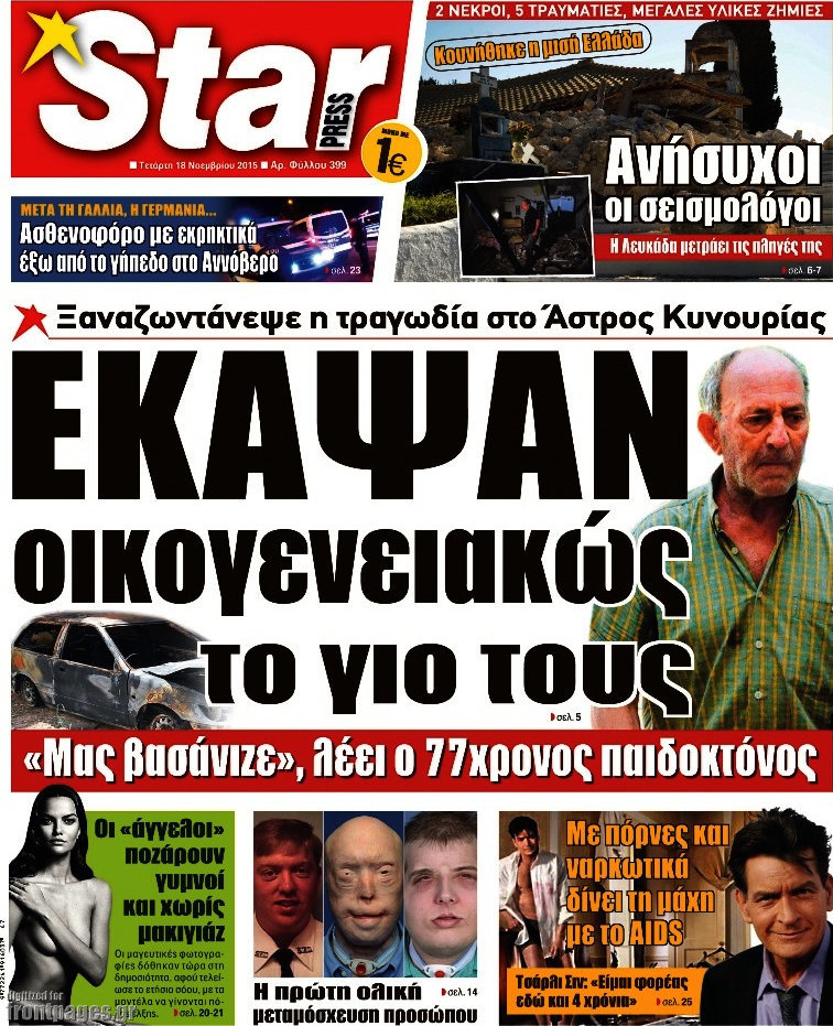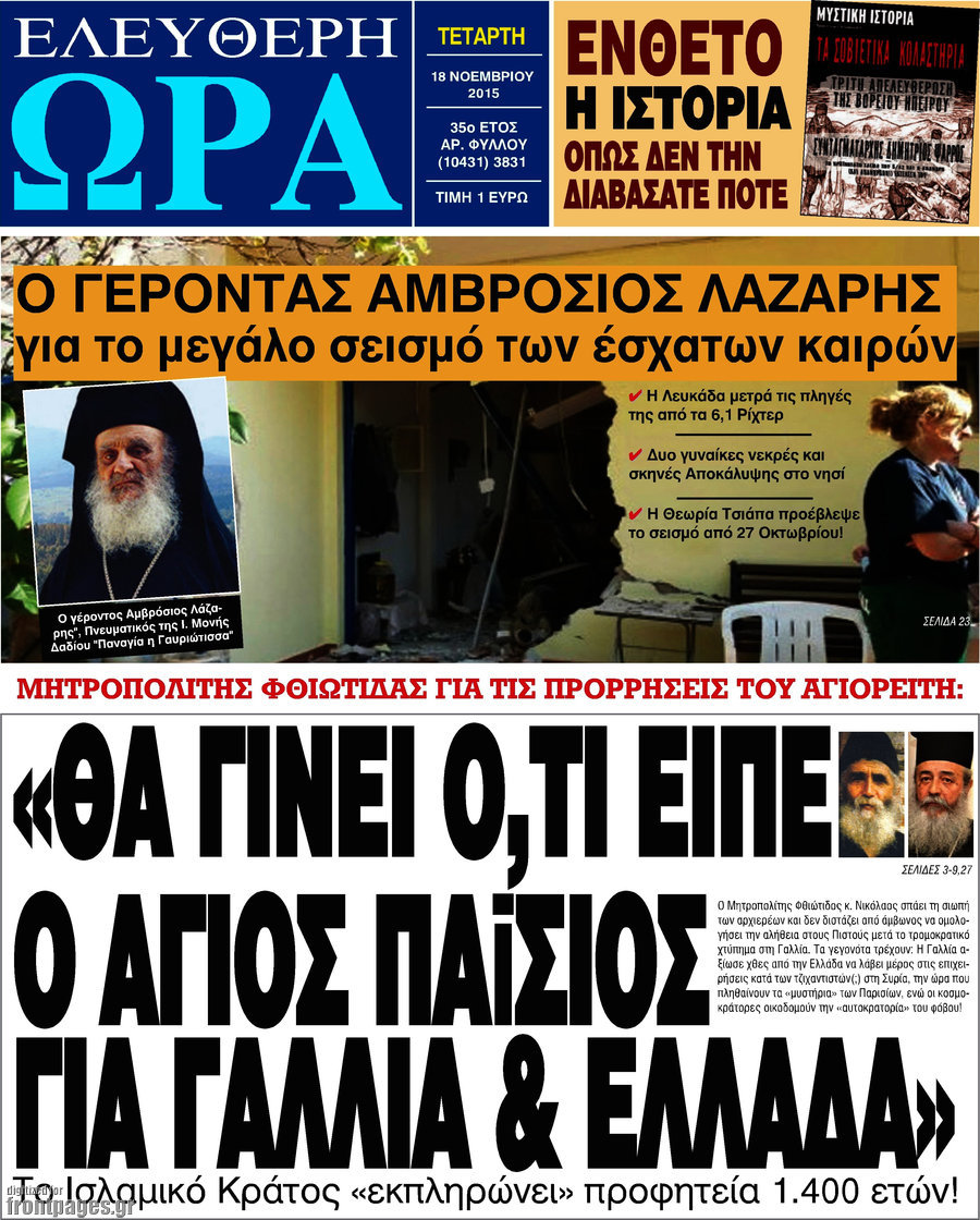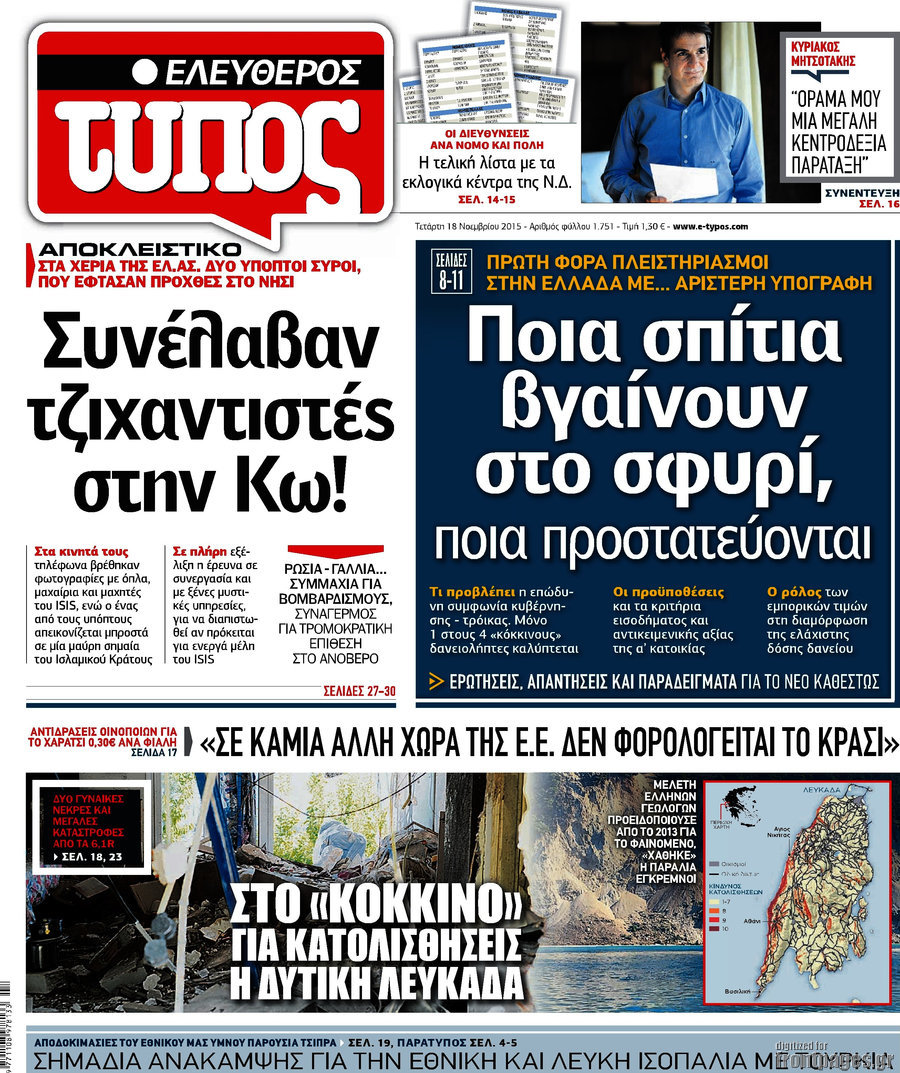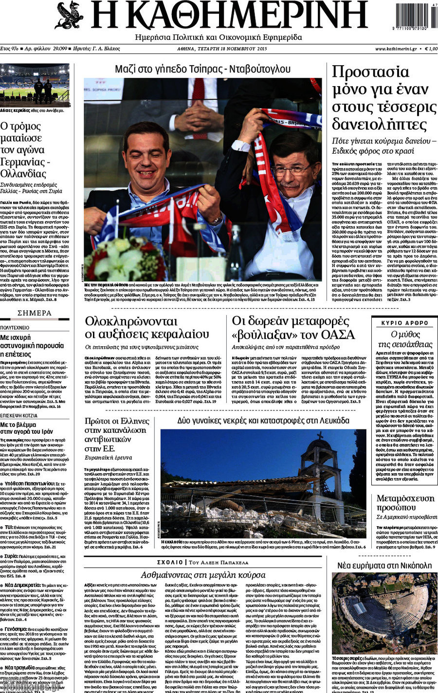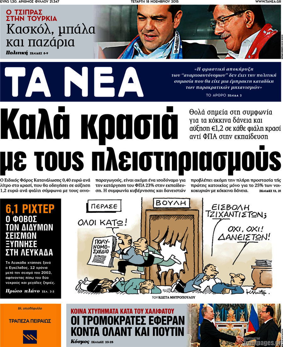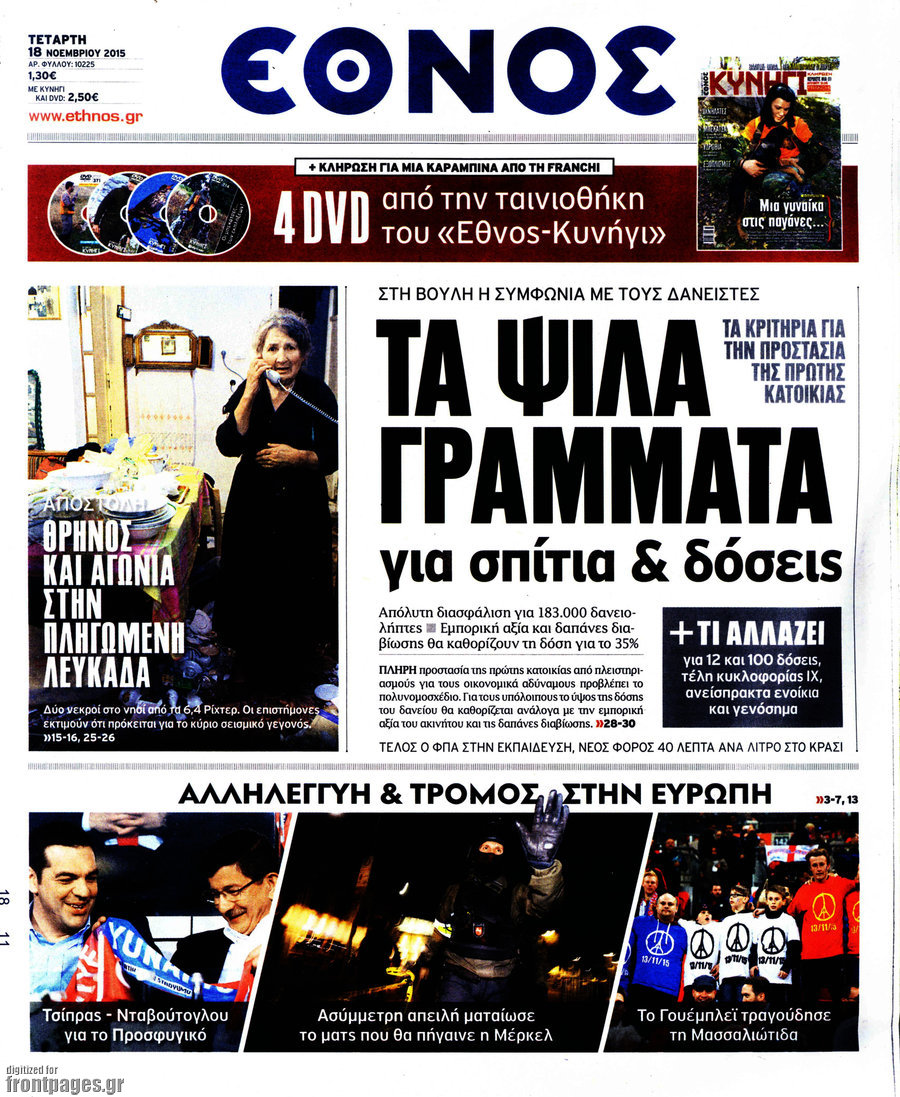 Οι πολιτικές εφημερίδες 18/11/2015 Enikos Newsroom 07:26, Τετάρτη 18 Νοεμβρίου 2015 Media Διαβάστε τα σημερινά πρωτοσέλιδα των πολιτικών εφημερίδων. ΕΦΗΜΕΡΙΔΕΣ ΠΟΛΙΤΙΚΕΣ ΕΦΗΜΕΡΙΔΕΣ ΠΡΩΤΟΣΕΛΙΔΑ Μοιράσου το: σχολίασε κι εσύ (0 σχόλια) Ακολουθήστε το enikos.gr στο Google News και μάθετε πρώτοι όλες τις ειδήσεις Δείτε όλες τις τελευταίες ειδήσεις από την Ελλάδα και τον Κόσμο στο enikos.gr Ειδήσεις Ροή Ειδήσεων 27 λεπτά πριν Τραμπ: Δεν αποκλείει την πιθανότητα ενός πολέμου στη Βενεζουέλα – «Ο Μαδούρο ξέρει καλύτερα από τον καθένα τι ακριβώς θέλω» 22 λεπτά πριν Ουκρανία: Η άνευ προηγουμένου επίθεση σε ρωσικό τάνκερ στη Μεσόγειο και το μήνυμα προς στον Πούτιν – Το «μακρύ χέρι» του Κιέβου 3 ώρες πριν Εμπλοκή και αερομαχίες με οπλισμένα τουρκικά F-16 στο Αιγαίο 3 ώρες πριν Πούτιν: «Ναι, είμαι ερωτευμένος» – Βίντεο από τη σπάνια προσωπική παραδοχή του 1 ώρα πριν Ανδρέας Λυκουρέντζος: Υπέβαλε την παραίτησή του ο πρόεδρος του ΕΛΓΑ, αλλά δεν έγινε δεκτή – Όλο το παρασκήνιο 2 ώρες πριν Αριθμολογία: Οι άνθρωποι που έχουν γεννηθεί αυτές τις 4 ημερομηνίες, συχνά παρεξηγούνται – «Η καλοσύνη τους κρύβει τεράστια δύναμη» 4 ώρες πριν Μήπως έχετε χάσει τον εαυτό σας στη σχέση σας; 7 «αθόρυβες» υποχωρήσεις που μάλλον κάνατε, χωρίς να το συνειδητοποιήσετε 3 ώρες πριν Ξεχάστε το καθάρισμα το Σαββατοκύριακο: Ο «κανόνας των 20 λεπτών» που θα σας λύσει τα χέρια 37 λεπτά πριν Ύπνος: Μια κρυφή κατάσταση του εγκεφάλου πριν από τον ύπνο μπορεί να είναι το “κλειδί” για υψηλή ευφυΐα και δημιουργικότητα 10 λεπτά πριν Χάρι και Μέγκαν: Η σπάνια οικογενειακή φωτογραφία με τον Άρτσι και τη Λίλιμπετ – Τι σχεδιάζουν για τα Χριστούγεννα 17 λεπτά πριν Βασίλης Καρράς: «Είναι πάντα δίπλα μου, δεν έφυγε…», λέει ο αδελφός του 22 λεπτά πριν Ουκρανία: Η άνευ προηγουμένου επίθεση σε ρωσικό τάνκερ στη Μεσόγειο και το μήνυμα προς στον Πούτιν – Το «μακρύ χέρι» του Κιέβου 27 λεπτά πριν Τραμπ: Δεν αποκλείει την πιθανότητα ενός πολέμου στη Βενεζουέλα – «Ο Μαδούρο ξέρει καλύτερα από τον καθένα τι ακριβώς θέλω» 29 λεπτά πριν Κηφισιά: Με πολλές απουσίες κόντρα στον Ολυμπιακό – «Last dance» για τον Τεττέη ENIKOS NETWORK Το ΕΚΑΒ τιμήθηκε από την Ακαδημία Αθηνών για τα 40 χρόνια προσφοράς του Έχετε πραγματικά μεγάλη καρδιά; 10 χαρακτηριστικά όσων έχουν καλοσύνη ΑΑΔΕ: Νέες αναβαθμίσεις στο Ψηφιακό Πελατολόγιο και την εφαρμογή myDATAapp – Τι πρέπει να γνωρίζετε Όμιλος ΔΕΗ: Νέα ορόσημα και ενισχυμένη διαφάνεια στην ετήσια Έκθεση Βιώσιμης Ανάπτυξης Χαρτογραφώντας το «σημείο χωρίς επιστροφή»: Για πρώτη φορά αποκαλύπτεται με λεπτομέρεια το ακανθώδες όριο της ατμόσφαιρας τ... Η Google καταργεί τη λειτουργία «dark web report» – Πώς θα μπορούν οι χρήστες να διαγράφουν τα δεδομένα τους περισσότερα 20:37 , Παρασκευή 19 Δεκεμβρίου 2025 Don’t Forget The Lyrics: Η Έλλη Κοκκίνου υποδέχεται 4 παίκτες που θα κάνουν τα πάντα για να μη χάσουν ούτε… μισή λέξη από τους στίχους Το «Don’t Forget The Lyrics» επιστρέφει απόψε, Παρασκευή 19 Δεκεμβρίου, στις 21:00 με νέο επει... 19:31 , Παρασκευή 19 Δεκεμβρίου 2025 GNTM: Απόψε ο μεγάλος τελικός για τους 4 φιναλίστ Έπειτα από μήνες γεμάτους μόδα, δημιουργία και έντονες αναμετρήσεις, το GNTM 2025 κορυφώνεται,... 18:11 , Παρασκευή 19 Δεκεμβρίου 2025 Το σόι σου: Ο Άρης έρχεται στην Ελλάδα για τις γιορτές των Χριστουγέννων – Τι θα δούμε στο αποψινό εορταστικό επεισόδιο Ένα απολαυστικό, εορταστικό επεισόδιο της σειράς “Το σόι σου”, γεμάτο ευτράπελα αλ... 15:15 , Παρασκευή 19 Δεκεμβρίου 2025 Την Κυρια