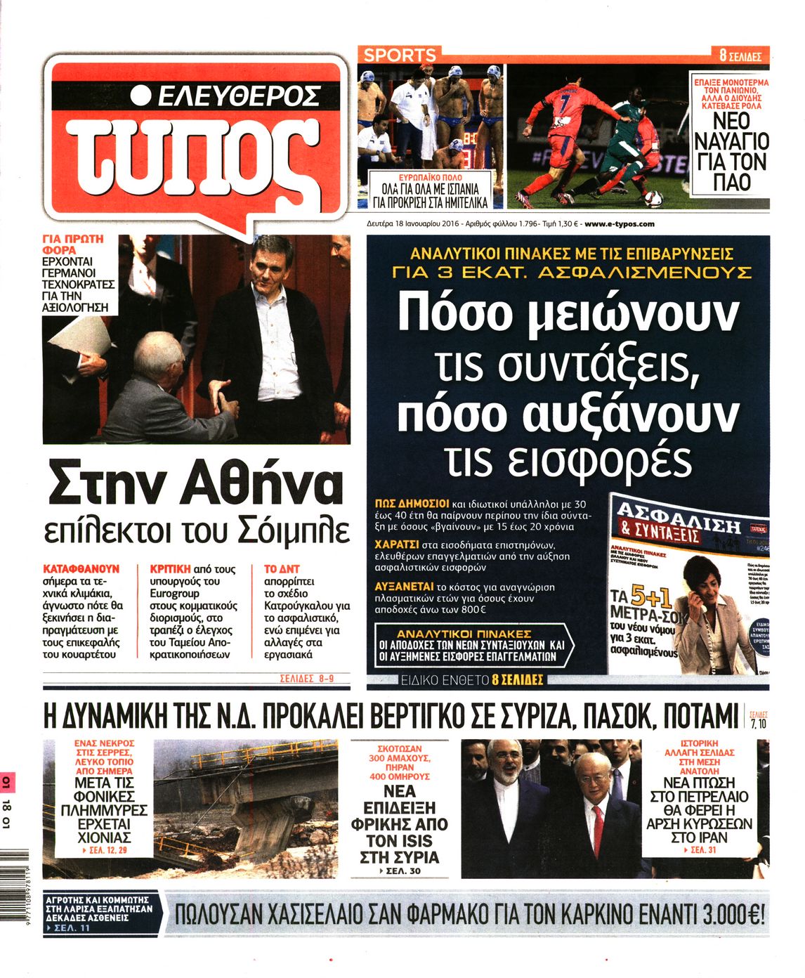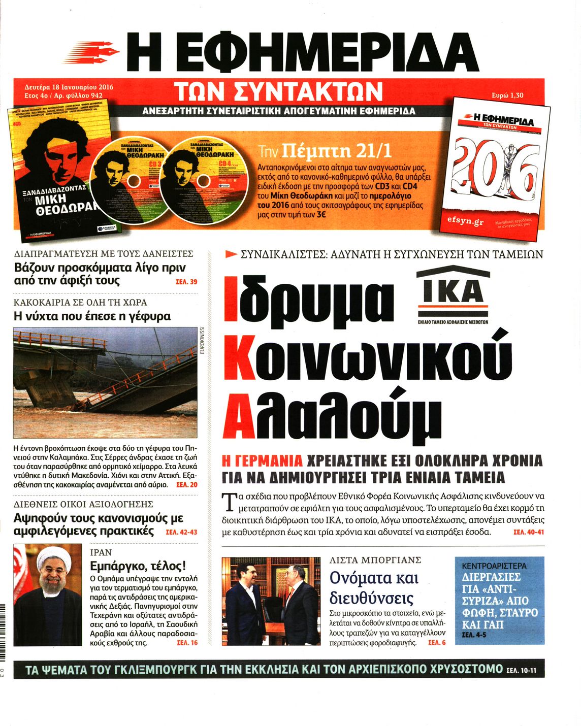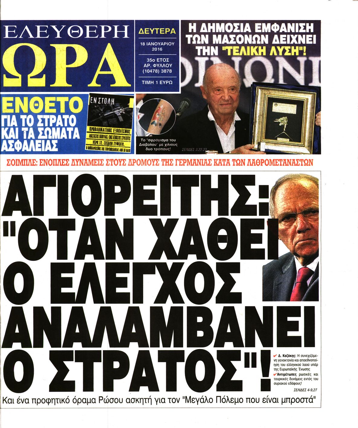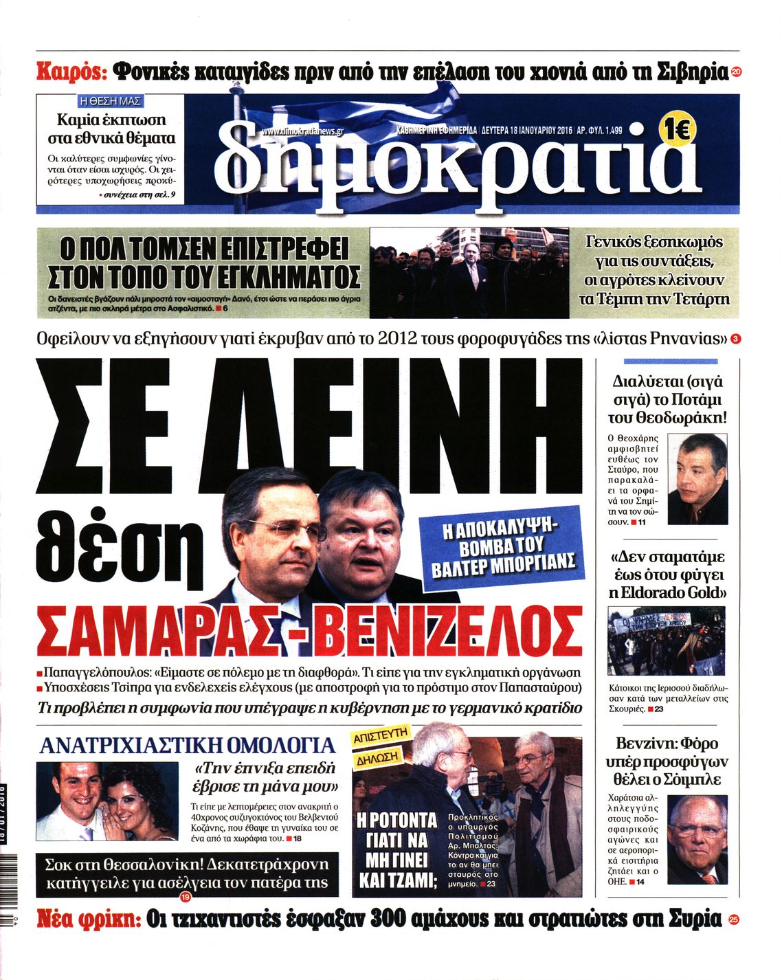 Οι πολιτικές εφημερίδες 18/1/2016 Enikos Newsroom 06:30, Δευτέρα 18 Ιανουαρίου 2016 Media Διαβάστε τα σημερινά πρωτοσέλιδα των πολιτικών εφημερίδων. ΕΦΗΜΕΡΙΔΕΣ ΠΟΛΙΤΙΚΕΣ ΕΦΗΜΕΡΙΔΕΣ Μοιράσου το: σχολίασε κι εσύ (0 σχόλια) Ακολουθήστε το enikos.gr στο Google News και μάθετε πρώτοι όλες τις ειδήσεις Δείτε όλες τις τελευταίες ειδήσεις από την Ελλάδα και τον Κόσμο στο enikos.gr Ειδήσεις Ροή Ειδήσεων 2 ώρες πριν Μπλόκα: Οι αγρότες σηκώνουν τις μπάρες σε διόδια για τους εκδρομείς των Χριστουγέννων και μοιράζουν προϊόντα – Βίντεο 2 ώρες πριν Τσιάρας προς αγρότες: Τα μπλόκα και τα πείσματα δεν ωφελούν – Οι λύσεις περνούν μέσα από τον διάλογο 3 ώρες πριν Αρχεία Έπσταϊν: Οι συγκλονιστικές φωτογραφίες – Ο Μάικλ Τζάκσον, ο Μικ Τζάγκερ και ο Κέβιν Σπέισι ανάμεσα στους διάσημους που απεικονίζονται 60 λεπτά πριν Μαθητές διακινούσαν κοκαΐνη και χασίς σε σχολείο της Αττικής – 12 συλλήψεις 1 ώρα πριν Βέλγιο: Άγνωστοι έριξαν κόκκινη μπογιά στο προξενείο της Πολωνίας στις Βρυξέλλες 5 ώρες πριν Μία νέα «χρυσή» περίοδος αρχίζει για 3 ζώδια από σήμερα – «Μία αναπάντεχη ευκαιρία οδηγεί στην επιτυχία» 4 ώρες πριν Διαιτολόγος αποκαλύπτει 9 πρωινές συνήθειες που «λιώνουν» το κοιλιακό λίπος – «Υποστηρίζουν την υγιεινή απώλεια βάρους» 5 ώρες πριν Οι 7 φράσεις που δεν λένε ποτέ οι συναισθηματικά έξυπνοι άνθρωποι κατά τη διάρκεια ενός καβγά 7 ώρες πριν Enerwave: Το νέο «ρεύμα» στη λιανική ενέργειας που αλλάζει την εμπειρία του καταναλωτή 8 λεπτά πριν Μαρινάκης στον Realfm 97,8: Η κυβέρνηση σέβεται κάθε λογική διεκδίκηση των αγροτών, αλλά και το αίτημα των πολιτών να μην ταλαιπωρούνται 15 λεπτά πριν O Πάντερ MVP της 17ης αγωνιστικής στην Euroleague 23 λεπτά πριν Πέθανε η τραγουδίστρια Κλαούντια Ντελμέρ 31 λεπτά πριν Μία ανεκμετάλλευτη πηγή θα μπορούσε να προσφέρει ανεξάντλητη ενέργεια – Οι επιστήμονες ίσως γνωρίζουν πώς να την ξεκλειδώσουν 39 λεπτά πριν Θεσσαλονίκη: Ανήλικος που είχε εξαφανιστεί βρέθηκε στο σπίτι Τούρκων μετά από αστυνομική επιχείρηση ENIKOS NETWORK Η αποχή από την αναπαραγωγή παρατείνει τη ζωή στα ζώα, σύμφωνα με μελέτη – Τι ισχύει για τους ανθρώπους; Σημαντικές επαφές στις ΗΠΑ είχε ο υπουργός Υγείας Άδωνις Γεωργιάδης Ευλογιά αιγοπροβάτων: Παρατεταμένη επιζωοτία, αυστηρά μέτρα – Τι ισχύει για τον εμβολιασμό και την ανασύσταση του ζωικού κε... Τσιάρας προς αγρότες: Έχει ικανοποιηθεί το 74% των αιτημάτων – Τα μπλόκα και τα πείσματα δεν ωφελούν Χαρτογραφώντας το «σημείο χωρίς επιστροφή»: Για πρώτη φορά αποκαλύπτεται με λεπτομέρεια το ακανθώδες όριο της ατμόσφαιρας τ... Η Google καταργεί τη λειτουργία «dark web report» – Πώς θα μπορούν οι χρήστες να διαγράφουν τα δεδομένα τους περισσότερα 14:04 , Σάββατο 20 Δεκεμβρίου 2025 Η Realnews αυτής της Κυριακής (21/12/2025) Με τίτλο: «Ασπίδα προστασίας για την Ελλάδα» κυκλοφορεί, αυτήν την Κυριακή, η Realnews. Σημαντ... 12:53 , Σάββατο 20 Δεκεμβρίου 2025 Να μ’ αγαπάς: Το παρελθόν έρχεται στο φως – Καταιγιστικές εξελίξεις στα τελευταία επεισόδια του 2025 Ο Άγγελος αποκαλύπτεται, η Φωτεινή ανησυχεί για τον Λευτέρη και η Ζωή έρχεται αντιμέτωπη με το... 11:41 , Σάββατο 20 Δεκεμβρίου 2025 «Η αγάπη δεν χάνεται ποτέ»: Η μικρού μήκους ταινία κινουμένων σχεδίων που θέτει ερωτήματα για τη ζωή και τον θάνατο Ο θάνατος είναι ένα από τα πιο σκληρά θέματα που καλείται να διαχειριστεί κάποιος στη διάρκεια... 09:30 , Σάββατο 20 Δεκεμβρίου 2025 «Porto Leone: Στη γειτονιά με τα κόκκινα φανάρια» – Ο Χρόνης αποκαλύπτει στην Αλεξάνδρα το μυστικ