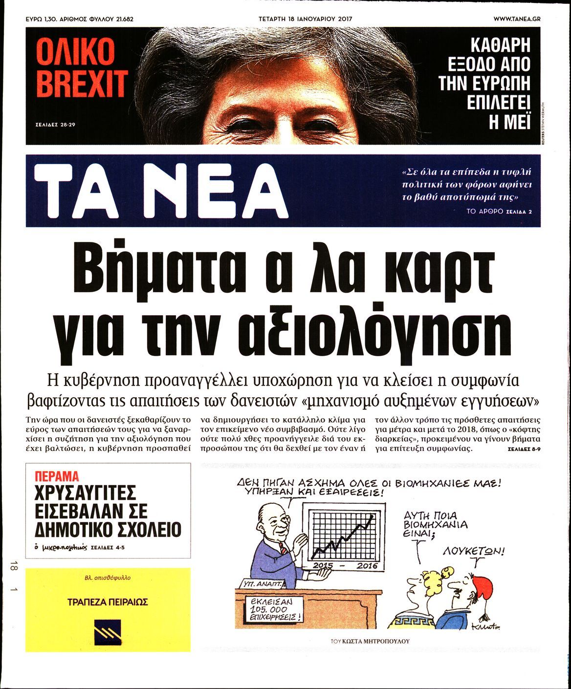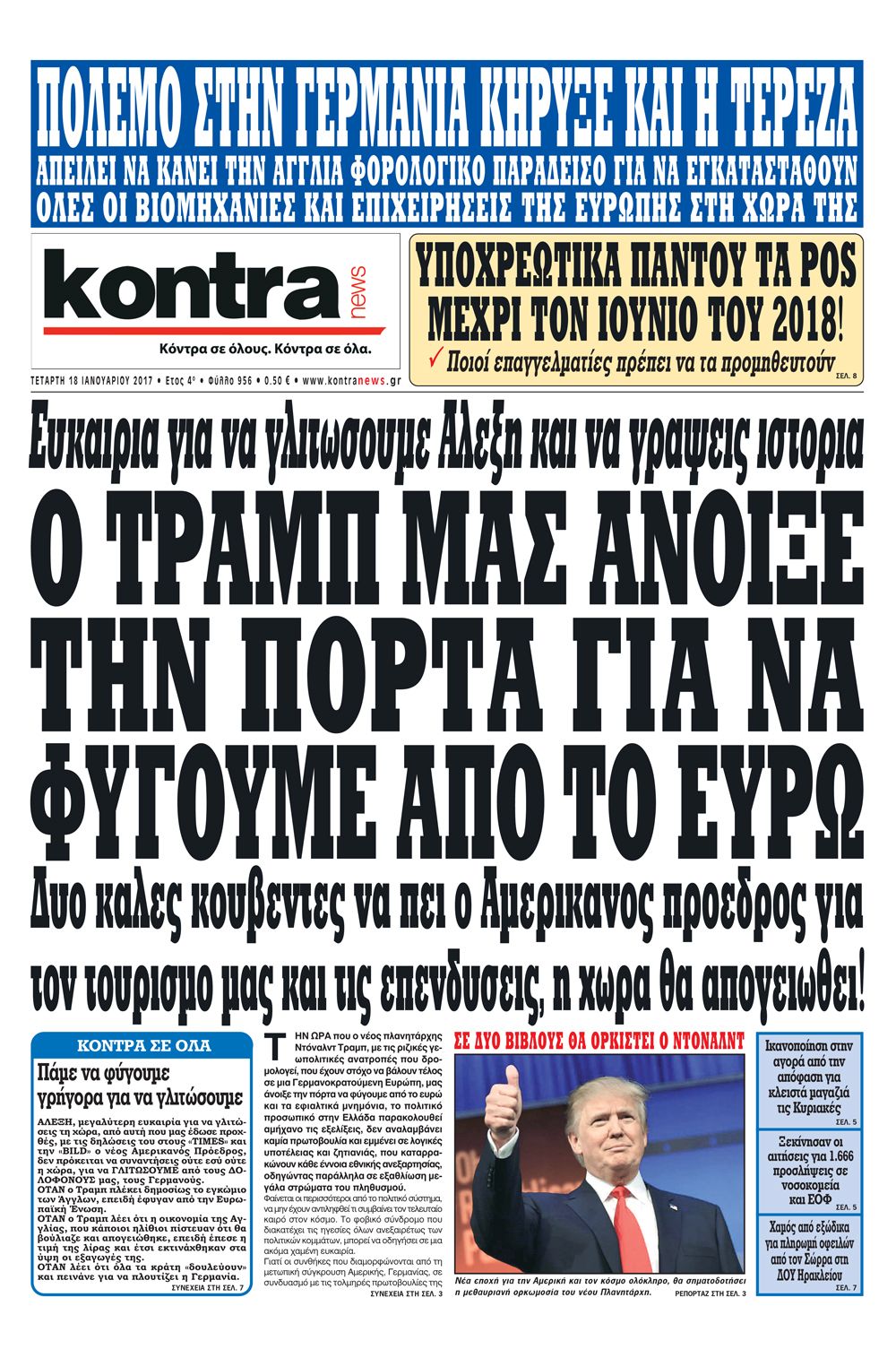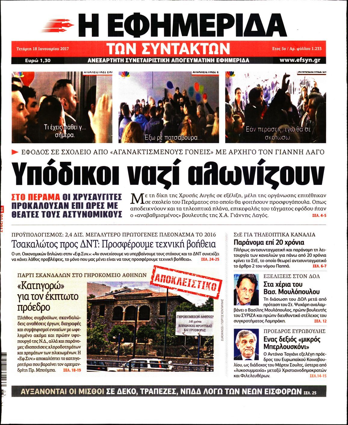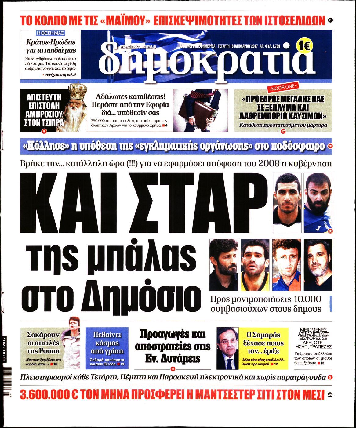 Οι πολιτικές εφημερίδες 18/1/2017 Enikos Newsroom 02:15, Τετάρτη 18 Ιανουαρίου 2017 Media Διαβάστε τα σημερινά πρωτοσέλιδα των πολιτικών εφημερίδων: ΠΟΛΙΤΙΚΕΣ ΕΦΗΜΕΡΙΔΕΣ ΠΡΩΤΟΣΕΛΙΔΑ Μοιράσου το: σχολίασε κι εσύ (0 σχόλια) Ακολουθήστε το enikos.gr στο Google News και μάθετε πρώτοι όλες τις ειδήσεις Δείτε όλες τις τελευταίες ειδήσεις από την Ελλάδα και τον Κόσμο στο enikos.gr Ειδήσεις Ροή Ειδήσεων 4 ώρες πριν Πώς δρούσε το κύκλωμα που διακινούσε ναρκωτικά σε σχολεία – Υπέβαλαν σε βασανιστήρια όσους δεν τηρούσαν τους «κανόνες πειθαρχίας» 4 ώρες πριν Αγρότες: Γιορτές στα μπλόκα με ανοιχτά διόδια – Δικογραφία στα Ιωάννινα για το σήκωμα των μπαρών 4 ώρες πριν Ζελένσκι: Οι Αμερικανοί πρότειναν συνάντηση Ουκρανίας, ΗΠΑ, Ρωσίας στο Μαϊάμι 2 ώρες πριν Τραμπ: Πώς περνάει τις γιορτές των Χριστουγέννων – Τα δώρα που κάνει στα εγγόνια του 3 ώρες πριν Μικαέλα Μπέντχαους: Ο πρώτος άνθρωπος σε αναπηρικό αμαξίδιο που ταξίδεψε στο διάστημα – ΒΙΝΤΕΟ 5 ώρες πριν Η τύχη χαμογελά σε 3 ζώδια έως τις 28 Δεκεμβρίου – «Προσέξτε τις επιλογές σας και η επιμονή σας θα ανταμειφθεί» 6 ώρες πριν Μία ανεκμετάλλευτη πηγή θα μπορούσε να προσφέρει ανεξάντλητη ενέργεια – Οι επιστήμονες ίσως γνωρίζουν πώς να την ξεκλειδώσουν 2 ώρες πριν Μήπως οι γιορτές σας δεν είναι τόσο τέλειες; 7 χριστουγεννιάτικες συνήθειες που μαρτυρούν ότι μια οικογένεια είναι δυσλειτουργική 12 ώρες πριν Enerwave: Το νέο «ρεύμα» στη λιανική ενέργειας που αλλάζει την εμπειρία του καταναλωτή 9 λεπτά πριν Super League: Ο Σιαμπάνης «κατέβασε ρολά» και ο Βόλος νίκησε 1-0 τον Παναιτωλικό 18 λεπτά πριν Αυτή την Κυριακή με τη Realnews: Instyle, μαζί Drive και Realnews Geopolitics 20 λεπτά πριν Ο ΑΝΤ1 γεμίζει τις γιορτές με μουσική – Ποιους καλλιτέχνες θα απολαύσουμε 30 λεπτά πριν Πάπας Λέων: Όταν έχει αϋπνίες επενδύει παραγωγικά τον χρόνο του – Ποιο παιχνίδι παίζει στο κινητό 38 λεπτά πριν Πέθανε η σπουδαία αρχαιολόγος Λίλα Μαραγκού ENIKOS NETWORK Οι γυναίκες αποκαλύπτουν το πιο ελκυστικό πράγμα που μπορεί να κάνει ένας άνδρας Ομορφιά και αντιγήρανση: Ειδικοί μιλούν για συσκευές περιποίησης του δέρματος Πορτοκαλί τιμολόγια ρεύματος: Τα σημεία που πρέπει να προσέξουν οι καταναλωτές – Πότε θα εφαρμοστούν Θεοδωρικάκος: Εθνική στρατηγική για τους ημιαγωγούς – Πρώτο βήμα η χρηματοδότηση του πρώτου Κέντρου Ικανοτήτων, με 3,63 εκα... Χαρτογραφώντας το «σημείο χωρίς επιστροφή»: Για πρώτη φορά αποκαλύπτεται με λεπτομέρεια το ακανθώδες όριο της ατμόσφαιρας τ... Η Google καταργεί τη λειτουργία «dark web report» – Πώς θα μπορούν οι χρήστες να διαγράφουν τα δεδομένα τους περισσότερα 20:30 , Σάββατο 20 Δεκεμβρίου 2025 Αυτή την Κυριακή με τη Realnews: Instyle, μαζί Drive και Realnews Geopolitics Αυτή την Κυριακή με τη Realnews: Instyle, μαζί Drive και Realnews Geopolitics Instyle Η Άννα Ρ... 20:28 , Σάββατο 20 Δεκεμβρίου 2025 Ο ΑΝΤ1 γεμίζει τις γιορτές με μουσική – Ποιους καλλιτέχνες θα απολαύσουμε Φέτος στον ΑΝΤ1 γιορτάζουμε τις νύχτες μας παρέα με αγαπημένους καλλιτέχνες και μεγάλες μουσι... 18:19 , Σάββατο 20 Δεκεμβρίου 2025 HOTΕΛ ΕΛVIRA: Η Ελβίρα μαθαίνει πως ο Χάρι μένει κρυφά στο ξενοδοχείο του Παντελή Συνεχίζονται οι εκλογές για πρόεδρο, στο νέο επεισόδιο της κωμικής σειράς του MEGA, HOTΕΛ ΕΛVI... 14:04 , Σάββατο 20 Δεκεμβρίου 2025 Η Realnews αυτής της Κυριακής (21/12/2025) Με τίτλο: «Ασπίδα προστασίας για την Ελλάδα» κυκλοφορεί, αυτήν την Κυριακή, η Realnews. Σημαντ... ΤΕΛΕΥΤΑΙΕΣ ΕΙΔΗΣΕΙΣ 9 λεπτά πριν Super League: Ο Σιαμπάνης «κατέβασε ρολά» και ο Βόλος νίκησε... 18 λεπτά πριν Αυτή την Κυριακή με τη Real