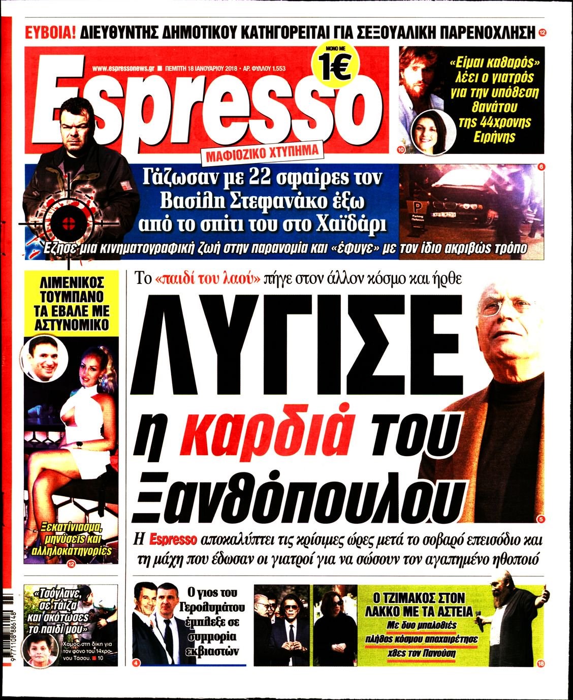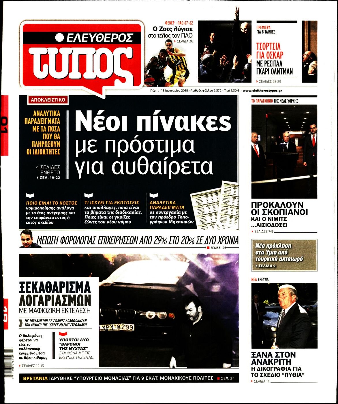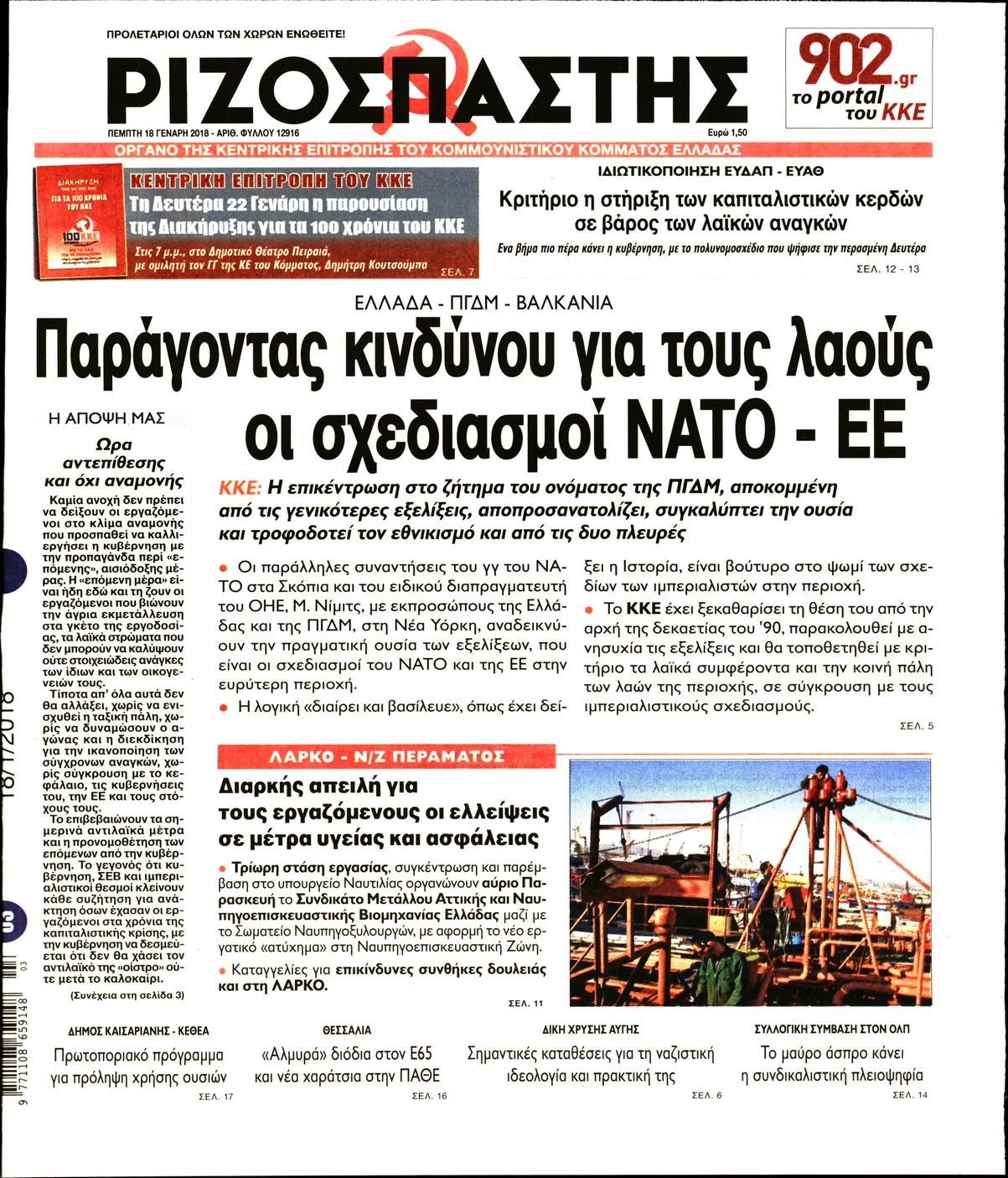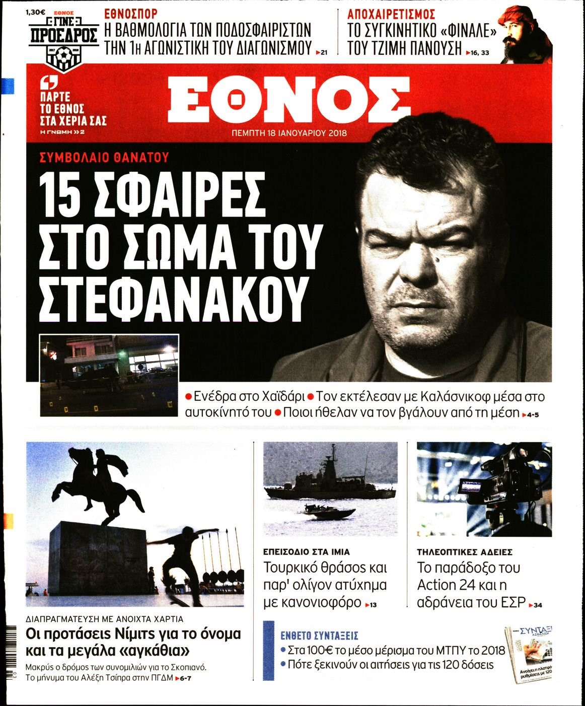Οι πολιτικές εφημερίδες 18/1/2018 Enikos Newsroom 07:30, Πέμπτη 18 Ιανουαρίου 2018 Media Διαβάστε τα σημερινά πρωτοσέλιδα των πολιτικών εφημερίδων: ΠΟΛΙΤΙΚΕΣ ΕΦΗΜΕΡΙΔΕΣ ΠΡΩΤΟΣΕΛΙΔΑ Μοιράσου το: σχολίασε κι εσύ (0 σχόλια) Ακολουθήστε το enikos.gr στο Google News και μάθετε πρώτοι όλες τις ειδήσεις Δείτε όλες τις τελευταίες ειδήσεις από την Ελλάδα και τον Κόσμο στο enikos.gr Ειδήσεις Ροή Ειδήσεων 4 ώρες πριν Χριστούγεννα στα μπλόκα: Επιμένουν στις κινητοποιήσεις τους οι αγρότες – Ανοίγουν τα διόδια το Σαββατοκύριακο 4 ώρες πριν Ουκρανία: Η άνευ προηγουμένου επίθεση σε ρωσικό τάνκερ στη Μεσόγειο και το μήνυμα προς στον Πούτιν – Το «μακρύ χέρι» του Κιέβου 4 ώρες πριν Πούτιν: Τα μηνύματα σε Ευρώπη και ΝΑΤΟ από το μαραθώνιο «σόου» του – Η απαίτηση για «σεβασμό» και η ειρήνη «με τους όρους» της Μόσχας 4 ώρες πριν Τραμπ: Δεν αποκλείει την πιθανότητα ενός πολέμου στη Βενεζουέλα – «Ο Μαδούρο ξέρει καλύτερα από τον καθένα τι ακριβώς θέλω» 5 ώρες πριν Συνεχίζει να προκαλεί ο Μίτσκοσκι: «Για μένα το όνομα Μακεδονία είναι ιερό» 4 ώρες πριν Ανακαλύφθηκαν αρχαία χρυσά νομίσματα 2.200 ετών που απεικονίζουν τον θεό Απόλλωνα – Η άγνωστη σύνδεση με τον Φίλιππο Β΄ της Μακεδονίας 5 ώρες πριν Ύπνος: Μια κρυφή κατάσταση του εγκεφάλου πριν από τον ύπνο μπορεί να είναι το “κλειδί” για υψηλή ευφυΐα και δημιουργικότητα 6 ώρες πριν Αριθμολογία: Οι άνθρωποι που έχουν γεννηθεί αυτές τις 4 ημερομηνίες, συχνά παρεξηγούνται – «Η καλοσύνη τους κρύβει τεράστια δύναμη» 7 ώρες πριν Ξεχάστε το καθάρισμα το Σαββατοκύριακο: Ο «κανόνας των 20 λεπτών» που θα σας λύσει τα χέρια 7 λεπτά πριν Ντόναλντ Τραμπ: «Πολύ βαριά αντίποινα» στη Συρία – «Πλήττουμε πολύ δυνατά οχυρά του Ισλαμικού Κράτους» 21 λεπτά πριν Εξάρχεια: Ένταση με μολότοφ, χημικά και κρότου λάμψης 37 λεπτά πριν ΗΠΑ: Τραγωδία στην Αλαμπάμα – Σκότωσε την δημοσιογράφο σύζυγό του και αυτοκτόνησε μπροστά στον 3χρονο γιο τους 51 λεπτά πριν Πρόταση γάμου στο ΣΕΦ κατά την διάρκεια του αγώνα Ολυμπιακός-Βιλερμπάν – Δείτε βίντεο 1 ώρα πριν Euroleague: Επέστρεψε στις νίκες ο Ολυμπιακός, πήρε την ματσάρα της χρονιάς η Μπάρτσα – Τα αποτελέσματα και η βαθμολογία ENIKOS NETWORK Το ΕΚΑΒ τιμήθηκε από την Ακαδημία Αθηνών για τα 40 χρόνια προσφοράς του Έχετε πραγματικά μεγάλη καρδιά; 10 χαρακτηριστικά όσων έχουν καλοσύνη Αναστολή μέτρων αναγκαστικής εκτέλεσης για κτηνοτρόφους που πλήττονται από την ευλογιά των αιγοπροβάτων Πλήρης επάρκεια προϊόντων στις λαϊκές της Αττικής, παρά τις αγροτικές κινητοποιήσεις – Τι απαντούν οι πωλητές Χαρτογραφώντας το «σημείο χωρίς επιστροφή»: Για πρώτη φορά αποκαλύπτεται με λεπτομέρεια το ακανθώδες όριο της ατμόσφαιρας τ... Η Google καταργεί τη λειτουργία «dark web report» – Πώς θα μπορούν οι χρήστες να διαγράφουν τα δεδομένα τους περισσότερα 22:42 , Παρασκευή 19 Δεκεμβρίου 2025 Γιώργος Γιαννόπουλος για “Το σόι σου”: “Είναι ευτυχία και ευλογία αυτή η σειρά” «Είναι ευτυχία και ευλογία η συγκυρία αυτής της σειράς», θα πει ο Γιώργος Γιαννόπουλος -ο αγαπ... 20:37 , Παρασκευή 19 Δεκεμβρίου 2025 Don’t Forget The Lyrics: Η Έλλη Κοκκίνου υποδέχεται 4 παίκτες που θα κάνουν τα πάντα για να μη χάσουν ούτε… μισή λέξη από τους στίχους Το «Don’t Forget The Lyrics» επιστρέφει απόψε, Παρασκευή 19 Δεκεμβρίου, στις 21:00 με νέο επει... 19:31 , Παρασκευή 19 Δεκεμβρίου 2025 GNTM: Απόψε ο μεγάλος τελικός για τους 4 φιναλίστ Έπειτα από μήνες γεμάτους μόδα, δημιουργία και έντονες αναμετρήσεις, το GNTM 2025 κορυφώνεται,... 18:11 , Παρασ