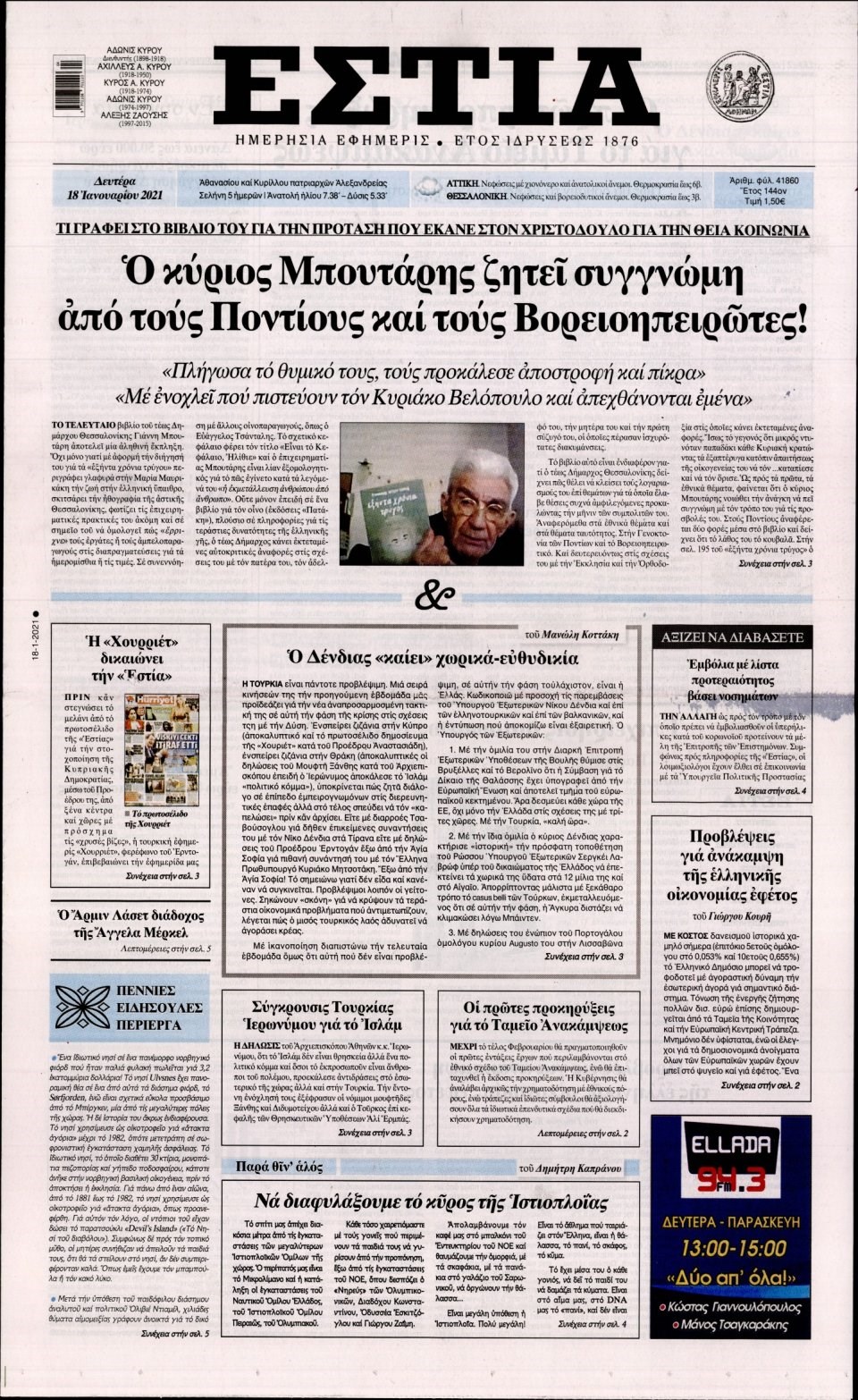 Οι πολιτικές εφημερίδες 18/1/2021 Σήφης Γαρυφαλάκης 06:31, Δευτέρα 18 Ιανουαρίου 2021 Media Διαβάστε τα πρωτοσέλιδα των πολιτικών εφημερίδων… ΕΦΗΜΕΡΙΔΕΣ ΠΟΛΙΤΙΚΕΣ ΕΦΗΜΕΡΙΔΕΣ ΠΡΩΤΟΣΕΛΙΔΑ ΠΡΩΤΟΣΕΛΙΔΑ ΕΦΗΜΕΡΙΔΩΝ Μοιράσου το: σχολίασε κι εσύ (0 σχόλια) Ακολουθήστε το enikos.gr στο Google News και μάθετε πρώτοι όλες τις ειδήσεις Δείτε όλες τις τελευταίες ειδήσεις από την Ελλάδα και τον Κόσμο στο enikos.gr Ειδήσεις Ροή Ειδήσεων 2 ώρες πριν Κυριάκος Μητσοτάκης: «Κάποιοι αγρότες δεν αισθάνονται την ανάγκη να διαφωνήσουν με τις προτάσεις της κυβέρνησης, η Ευρώπη στέκεται στο πλευρό της Ουκρανίας» 7 ώρες πριν ΟΠΕΚΕΠΕ: Προφυλακιστέος ο φερόμενος αρχηγός και ο λογιστής της εγκληματικής οργάνωσης 8 ώρες πριν Αυξάνουν την πίεση προς την κυβέρνηση οι αγρότες: Κλείνουν παρακαμπτήριους και ανοίγουν διόδια – Τι θα γίνει τις γιορτές 8 ώρες πριν Φοινικούντα: Το Σάββατο απολογείται ο 30χρονος γιος γνωστού επιχειρηματία της Πλάκας που παραδόθηκε – Όσα είπε στους αστυνομικούς και ο ρόλος του στο έγκλημα 7 ώρες πριν ΑΕΚ – Κραϊόβα 3-2: Επική ανατροπή και πρόκριση στους «16» του Conference League η Ένωση 8 ώρες πριν Αρχαιολόγοι ανακάλυψαν ρωμαϊκά τεχνουργήματα από μια πόλη που δεν υπήρξε ποτέ – Τα τρία εντυπωσιακά κτίρια και ο αμφορέας με τις… σαρδέλες 9 ώρες πριν Ύπνος: Η απλή βραδινή ρουτίνα για να προστατεύσετε τα μαλλιά σας από το κρύο κατά τη διάρκεια του χειμώνα 10 ώρες πριν Manifesting: Πώς να συναντήσετε τον σύντροφο της ζωής σας, ανάλογα με τον μήνα γέννησής σας 2 ημέρες πριν 20 χρόνια τα Χριστούγεννα ξεκινούν στα Public με μεγάλη ποικιλία σε δώρα! 11 λεπτά πριν Απειλή για το Προϋπολογισμό τα ληξιπρόθεσμα χρέη των ιδιωτών προς την εφορία 12 λεπτά πριν Πέντε νεκροί σε πλήγματα των ΗΠΑ κατά δύο σκαφών που φέρεται να μετέφεραν ναρκωτικά στον Ανατολικό Ειρηνικό 20 λεπτά πριν ΕΥΔΑΠ: Αλλάζουν τα τιμολόγια του νερού 28 λεπτά πριν Οπτική ψευδαίσθηση: Μόνο αν έχεις αετίσια ματιά θα βρεις τον παπαγάλο σε 12 δευτερόλεπτα 34 λεπτά πριν Αθήνα: Βρέθηκε η 16χρονη που είχε εξαφανιστεί από τις 6 Δεκεμβρίου – Η ανακοίνωση από το «Χαμόγελο του Παιδιού» ENIKOS NETWORK Σε περίοδο αυξημένης δραστηριότητας η γρίπη στην Ελλάδα-Μέτρα προστασίας από τον ΕΟΔΥ Σκέφτεστε συνέχεια συζητήσεις που έχετε κάνει; Τι σημαίνει αυτό, σύμφωνα με ειδικό Στεγαστικό: Τι λέει η ΠΟΜΙΔΑ για τα νέα μέτρα που ανακοίνωσε ο Κυριάκος Μητσοτάκης Λαγκάρντ: Αισιόδοξη για την ανάπτυξη της Ευρωζώνης, αβέβαιη για τον πληθωρισμό Χαρτογραφώντας το «σημείο χωρίς επιστροφή»: Για πρώτη φορά αποκαλύπτεται με λεπτομέρεια το ακανθώδες όριο της ατμόσφαιρας τ... Η Google καταργεί τη λειτουργία «dark web report» – Πώς θα μπορούν οι χρήστες να διαγράφουν τα δεδομένα τους περισσότερα 05:48 , Παρασκευή 19 Δεκεμβρίου 2025 Οι οικονομικές εφημερίδες 19/12/2025 Διαβάστε τα πρωτοσέλιδα από τις οικονομικές εφημερίδες, σήμερα 19/12/2025. 05:43 , Παρασκευή 19 Δεκεμβρίου 2025 Οι αθλητικές εφημερίδες 19/12/2025 Διαβάστε τα πρωτοσέλιδα από τις αθλητικές εφημερίδες, σήμερα 19/12/2025. 05:38 , Παρασκευή 19 Δεκεμβρίου 2025 Οι πολιτικές εφημερίδες 19/12/2025 Διαβάστε τα πρωτοσέλιδα από τις πολιτικές εφημερίδες, σήμερα 19/12/2025. 02:50 , Παρασκευή 19 Δεκεμβρίου 2025 GNTM: «Κλείδωσαν» οι τέσσερις φιναλίστ – Μεγάλη ανατροπή στις τελευταίες αποχωρήσεις Για προτελευταία φορά εμφανίστηκαν στο πλατό του GNTM οι φιναλίστ του φετινού κύκλου, το βράδυ... ΤΕΛΕΥΤΑΙΕΣ ΕΙΔΗΣΕΙΣ 11 λεπτά πριν Απειλή για το Προϋπολογισμό τα ληξιπρόθεσμα χρέη των... 12 λεπτά πριν Πέν