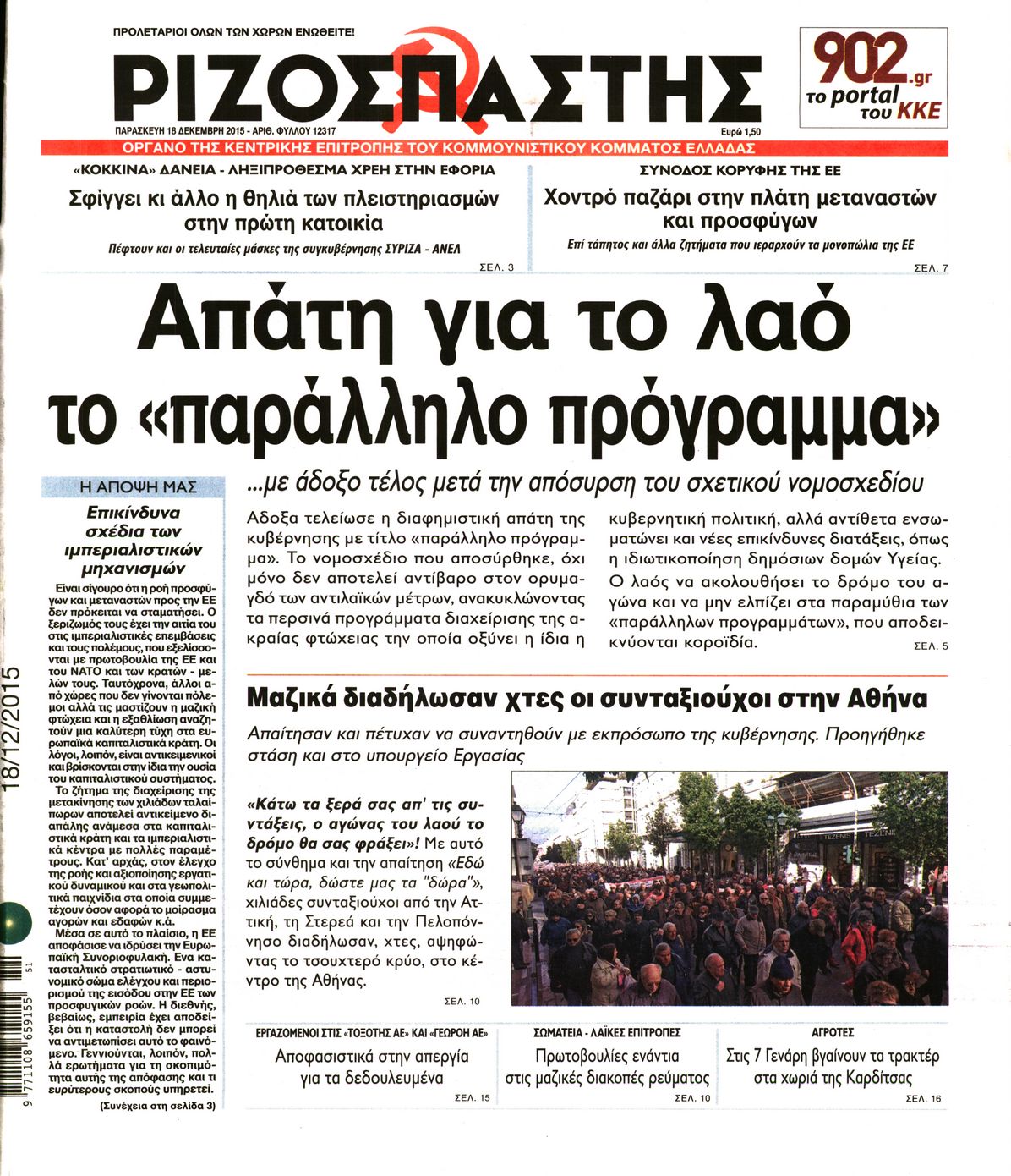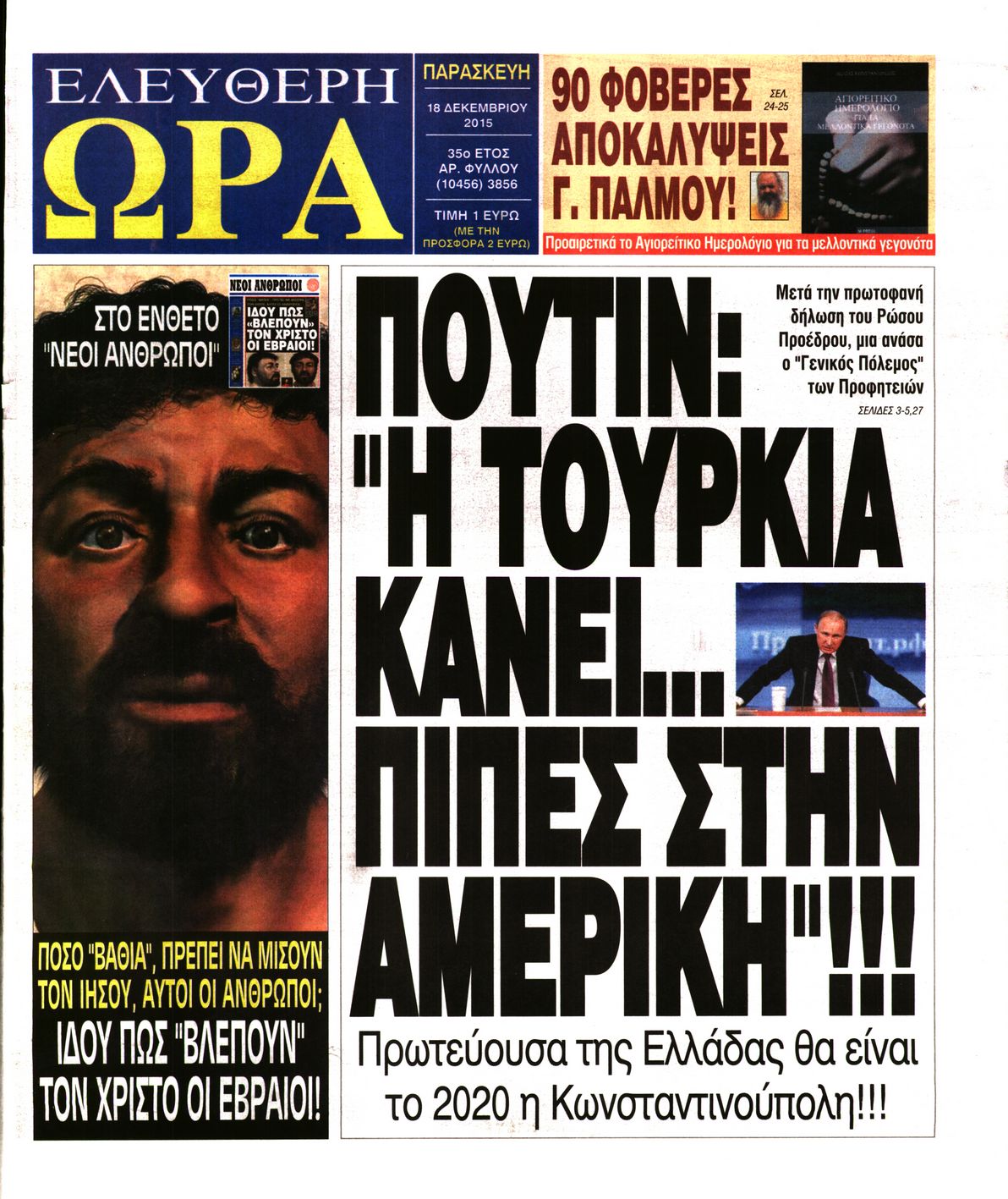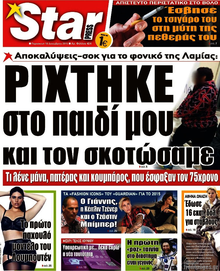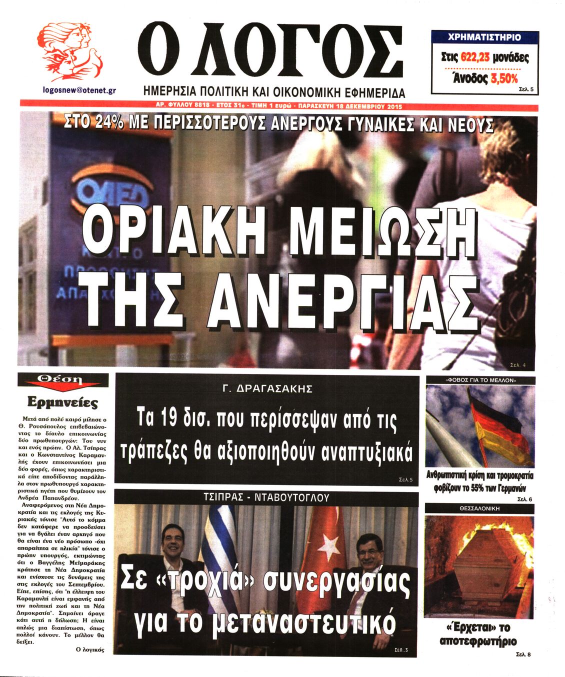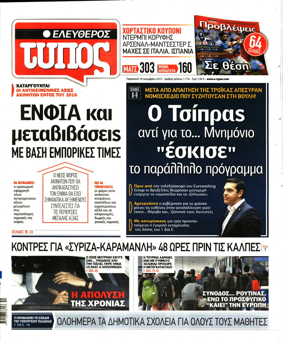 Οι πολιτικές εφημερίδες 18/12/2015 Enikos Newsroom 06:47, Παρασκευή 18 Δεκεμβρίου 2015 Media Διαβάστε τα σημερινά πρωτοσέλιδα των πολιτικών εφημερίδων: ΠΟΛΙΤΙΚΕΣ ΕΦΗΜΕΡΙΔΕΣ ΠΡΩΤΟΣΕΛΙΔΑ Μοιράσου το: σχολίασε κι εσύ (0 σχόλια) Ακολουθήστε το enikos.gr στο Google News και μάθετε πρώτοι όλες τις ειδήσεις Δείτε όλες τις τελευταίες ειδήσεις από την Ελλάδα και τον Κόσμο στο enikos.gr Ειδήσεις Ροή Ειδήσεων 4 ώρες πριν Χριστούγεννα στα μπλόκα: Επιμένουν στις κινητοποιήσεις τους οι αγρότες – Ανοίγουν τα διόδια το Σαββατοκύριακο 5 ώρες πριν Ουκρανία: Η άνευ προηγουμένου επίθεση σε ρωσικό τάνκερ στη Μεσόγειο και το μήνυμα προς στον Πούτιν – Το «μακρύ χέρι» του Κιέβου 4 ώρες πριν Πούτιν: Τα μηνύματα σε Ευρώπη και ΝΑΤΟ από το μαραθώνιο «σόου» του – Η απαίτηση για «σεβασμό» και η ειρήνη «με τους όρους» της Μόσχας 5 ώρες πριν Τραμπ: Δεν αποκλείει την πιθανότητα ενός πολέμου στη Βενεζουέλα – «Ο Μαδούρο ξέρει καλύτερα από τον καθένα τι ακριβώς θέλω» 5 ώρες πριν Συνεχίζει να προκαλεί ο Μίτσκοσκι: «Για μένα το όνομα Μακεδονία είναι ιερό» 4 ώρες πριν Ανακαλύφθηκαν αρχαία χρυσά νομίσματα 2.200 ετών που απεικονίζουν τον θεό Απόλλωνα – Η άγνωστη σύνδεση με τον Φίλιππο Β΄ της Μακεδονίας 5 ώρες πριν Ύπνος: Μια κρυφή κατάσταση του εγκεφάλου πριν από τον ύπνο μπορεί να είναι το “κλειδί” για υψηλή ευφυΐα και δημιουργικότητα 6 ώρες πριν Αριθμολογία: Οι άνθρωποι που έχουν γεννηθεί αυτές τις 4 ημερομηνίες, συχνά παρεξηγούνται – «Η καλοσύνη τους κρύβει τεράστια δύναμη» 7 ώρες πριν Ξεχάστε το καθάρισμα το Σαββατοκύριακο: Ο «κανόνας των 20 λεπτών» που θα σας λύσει τα χέρια 22 λεπτά πριν Θεσσαλονίκη: Εξαφανίστηκε 13χρονος από χώρο φιλοξενίας ασυνόδευτων ανηλίκων στο Ωραιόκαστρο 32 λεπτά πριν Ντόναλντ Τραμπ: «Πολύ βαριά αντίποινα» στη Συρία – «Πλήττουμε πολύ δυνατά οχυρά του Ισλαμικού Κράτους» 47 λεπτά πριν Εξάρχεια: Ένταση με μολότοφ, χημικά και κρότου λάμψης 1 ώρα πριν ΗΠΑ: Τραγωδία στην Αλαμπάμα – Σκότωσε την δημοσιογράφο σύζυγό του και αυτοκτόνησε μπροστά στον 3χρονο γιο τους 1 ώρα πριν Πρόταση γάμου στο ΣΕΦ κατά την διάρκεια του αγώνα Ολυμπιακός-Βιλερμπάν – Δείτε βίντεο ENIKOS NETWORK Το ΕΚΑΒ τιμήθηκε από την Ακαδημία Αθηνών για τα 40 χρόνια προσφοράς του Έχετε πραγματικά μεγάλη καρδιά; 10 χαρακτηριστικά όσων έχουν καλοσύνη Αναστολή μέτρων αναγκαστικής εκτέλεσης για κτηνοτρόφους που πλήττονται από την ευλογιά των αιγοπροβάτων Πλήρης επάρκεια προϊόντων στις λαϊκές της Αττικής, παρά τις αγροτικές κινητοποιήσεις – Τι απαντούν οι πωλητές Χαρτογραφώντας το «σημείο χωρίς επιστροφή»: Για πρώτη φορά αποκαλύπτεται με λεπτομέρεια το ακανθώδες όριο της ατμόσφαιρας τ... Η Google καταργεί τη λειτουργία «dark web report» – Πώς θα μπορούν οι χρήστες να διαγράφουν τα δεδομένα τους περισσότερα 22:42 , Παρασκευή 19 Δεκεμβρίου 2025 Γιώργος Γιαννόπουλος για “Το σόι σου”: “Είναι ευτυχία και ευλογία αυτή η σειρά” «Είναι ευτυχία και ευλογία η συγκυρία αυτής της σειράς», θα πει ο Γιώργος Γιαννόπουλος -ο αγαπ... 20:37 , Παρασκευή 19 Δεκεμβρίου 2025 Don’t Forget The Lyrics: Η Έλλη Κοκκίνου υποδέχεται 4 παίκτες που θα κάνουν τα πάντα για να μη χάσουν ούτε… μισή λέξη από τους στίχους Το «Don’t Forget The Lyrics» επιστρέφει απόψε, Παρασκευή 19 Δεκεμβρίου, στις 21:00 με νέο επει... 19:31 , Παρασκευή 19 Δεκεμβρίου 2025 GNTM: Απόψε ο μεγάλος τελικός για τους 4 φιναλίστ Έπειτα από μήνες γεμάτους μόδα, δημιουργία και έντονες αναμετρήσεις, το GNTM 2025 κορυφώνεται,... 18:11 , Παρασκευή 19 Δεκεμβρίου 2025 