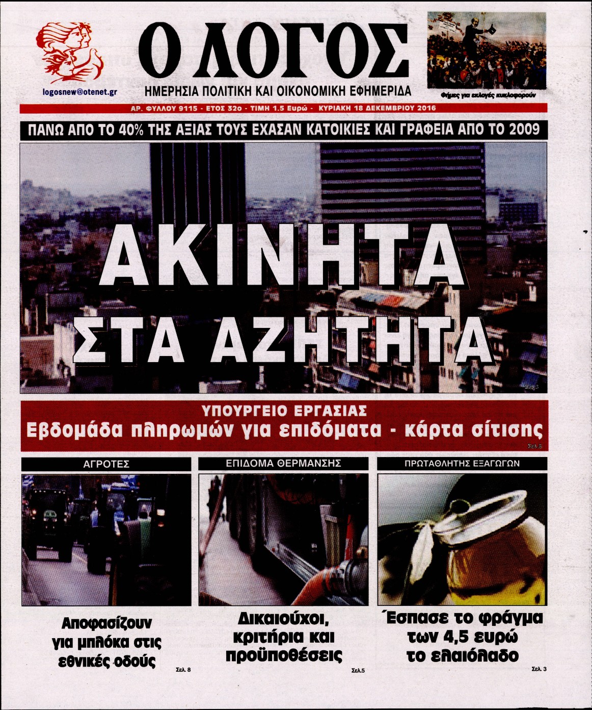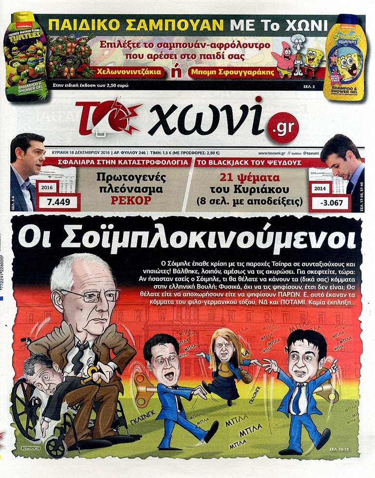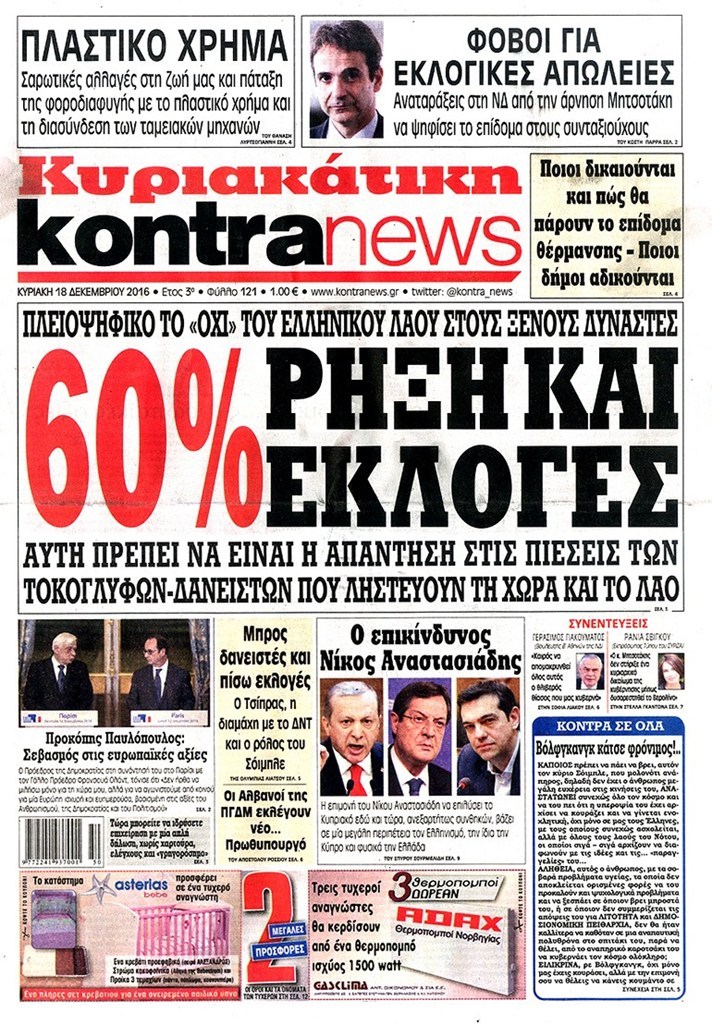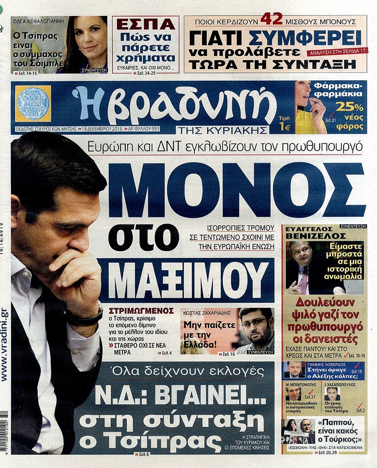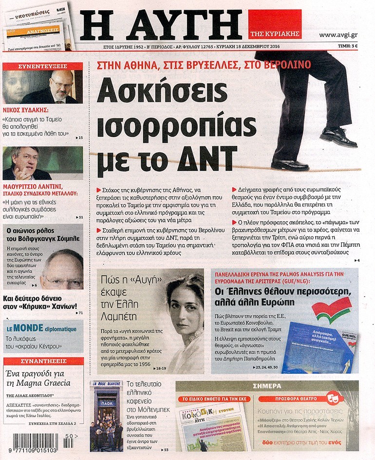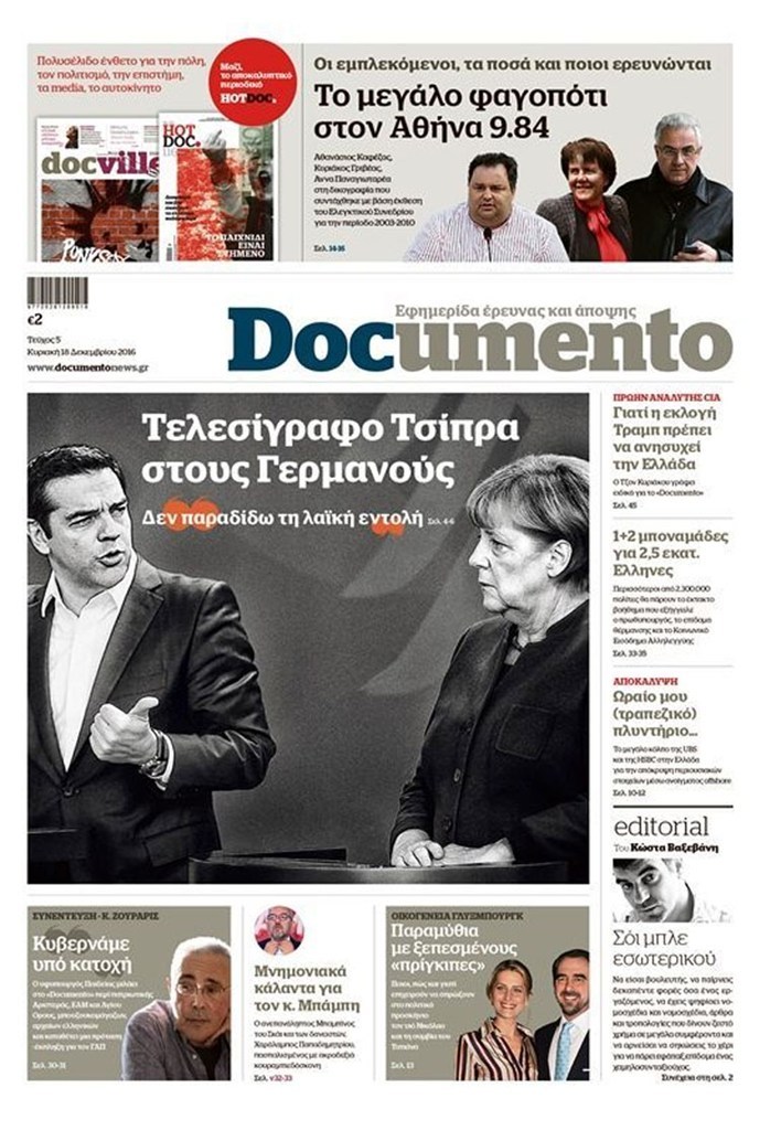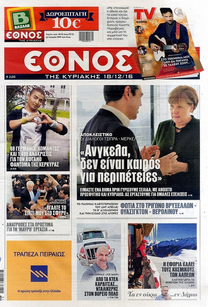 Οι πολιτικές εφημερίδες 18/12/2016 Κώστας Τεό 03:05, Κυριακή 18 Δεκεμβρίου 2016 Media Διαβάστε τα σημερινά πρωτοσέλιδα των πολιτικών εφημερίδων: ΠΟΛΙΤΙΚΕΣ ΕΦΗΜΕΡΙΔΕΣ ΠΡΩΤΟΣΕΛΙΔΑ Μοιράσου το: σχολίασε κι εσύ (0 σχόλια) Ακολουθήστε το enikos.gr στο Google News και μάθετε πρώτοι όλες τις ειδήσεις Δείτε όλες τις τελευταίες ειδήσεις από την Ελλάδα και τον Κόσμο στο enikos.gr Ειδήσεις Ροή Ειδήσεων 3 ώρες πριν Χριστούγεννα στα μπλόκα: Επιμένουν στις κινητοποιήσεις τους οι αγρότες – Ανοίγουν τα διόδια το Σαββατοκύριακο 3 ώρες πριν Ουκρανία: Η άνευ προηγουμένου επίθεση σε ρωσικό τάνκερ στη Μεσόγειο και το μήνυμα προς στον Πούτιν – Το «μακρύ χέρι» του Κιέβου 2 ώρες πριν Πούτιν: Τα μηνύματα σε Ευρώπη και ΝΑΤΟ από το μαραθώνιο «σόου» του – Η απαίτηση για «σεβασμό» και η ειρήνη «με τους όρους» της Μόσχας 3 ώρες πριν Τραμπ: Δεν αποκλείει την πιθανότητα ενός πολέμου στη Βενεζουέλα – «Ο Μαδούρο ξέρει καλύτερα από τον καθένα τι ακριβώς θέλω» 4 ώρες πριν Συνεχίζει να προκαλεί ο Μίτσκοσκι: «Για μένα το όνομα Μακεδονία είναι ιερό» 2 ώρες πριν Ανακαλύφθηκαν αρχαία χρυσά νομίσματα 2.200 ετών που απεικονίζουν τον θεό Απόλλωνα – Η άγνωστη σύνδεση με τον Φίλιππο Β΄ της Μακεδονίας 3 ώρες πριν Ύπνος: Μια κρυφή κατάσταση του εγκεφάλου πριν από τον ύπνο μπορεί να είναι το “κλειδί” για υψηλή ευφυΐα και δημιουργικότητα 4 ώρες πριν Αριθμολογία: Οι άνθρωποι που έχουν γεννηθεί αυτές τις 4 ημερομηνίες, συχνά παρεξηγούνται – «Η καλοσύνη τους κρύβει τεράστια δύναμη» 5 ώρες πριν Ξεχάστε το καθάρισμα το Σαββατοκύριακο: Ο «κανόνας των 20 λεπτών» που θα σας λύσει τα χέρια 8 λεπτά πριν Συρία: Μαζικά πλήγματα των ΗΠΑ σε θέσεις του Ισλαμικού Κράτους – Χέγκσεθ: «Δεν είναι αρχή πολέμου, είναι μια δήλωση εκδίκησης» για το θάνατο των στρατιωτών μας 21 λεπτά πριν Ουκρανία: Ολοκληρώθηκαν οι συνομιλίες με τους Αμερικανούς κι Ευρωπαίους διαπραγματευτές 36 λεπτά πριν Μπαρτσελόνα – Μπασκόνια 134-124: Οι «μπλαουγκράνα» πήραν το ματς της χρονιάς ύστερα από τρεις παρατάσεις 51 λεπτά πριν Φαίη Σκορδά: «Παλιότερα τα κομπλιμέντα τα προσπερνούσα, τώρα τα έχω ανάγκη» 1 ώρα πριν Βασίλης Σπανούλης: Δεν εμφανίστηκε ούτε ένας δημοσιογράφος στην συνέντευξη Τύπου – «Καλησπέρα στον… κανέναν», δείτε βίντεο ENIKOS NETWORK Το ΕΚΑΒ τιμήθηκε από την Ακαδημία Αθηνών για τα 40 χρόνια προσφοράς του Έχετε πραγματικά μεγάλη καρδιά; 10 χαρακτηριστικά όσων έχουν καλοσύνη Αναστολή μέτρων αναγκαστικής εκτέλεσης για κτηνοτρόφους που πλήττονται από την ευλογιά των αιγοπροβάτων Πλήρης επάρκεια προϊόντων στις λαϊκές της Αττικής, παρά τις αγροτικές κινητοποιήσεις – Τι απαντούν οι πωλητές Χαρτογραφώντας το «σημείο χωρίς επιστροφή»: Για πρώτη φορά αποκαλύπτεται με λεπτομέρεια το ακανθώδες όριο της ατμόσφαιρας τ... Η Google καταργεί τη λειτουργία «dark web report» – Πώς θα μπορούν οι χρήστες να διαγράφουν τα δεδομένα τους περισσότερα 22:42 , Παρασκευή 19 Δεκεμβρίου 2025 Γιώργος Γιαννόπουλος για “Το σόι σου”: “Είναι ευτυχία και ευλογία αυτή η σειρά” «Είναι ευτυχία και ευλογία η συγκυρία αυτής της σειράς», θα πει ο Γιώργος Γιαννόπουλος -ο αγαπ... 20:37 , Παρασκευή 19 Δεκεμβρίου 2025 Don’t Forget The Lyrics: Η Έλλη Κοκκίνου υποδέχεται 4 παίκτες που θα κάνουν τα πάντα για να μη χάσουν ούτε… μισή λέξη από τους στίχους Το «Don’t Forget The Lyrics» επιστρέφει απόψε, Παρασκευή 19 Δεκεμβρίου, στις 21:00 με νέο επει... 19:31 , Παρασκευή 19 Δεκεμβρίου 2025 GNTM: Απόψε ο μεγάλος τελικός για τους 4 φιναλίστ Έπειτα από μήνες