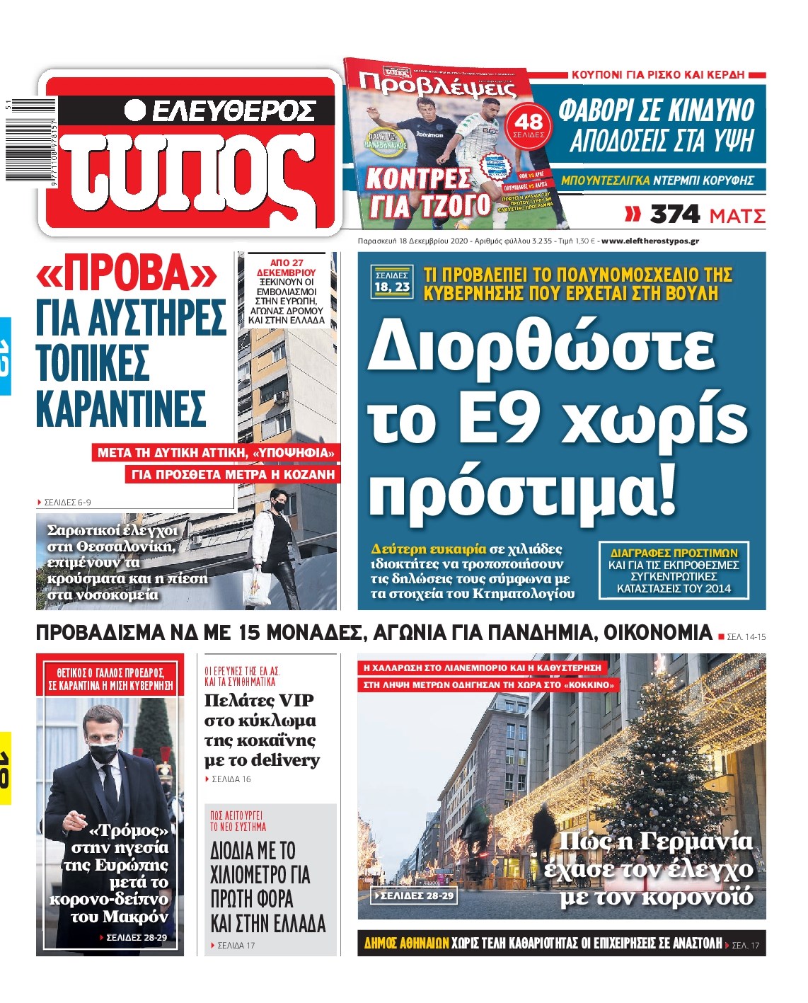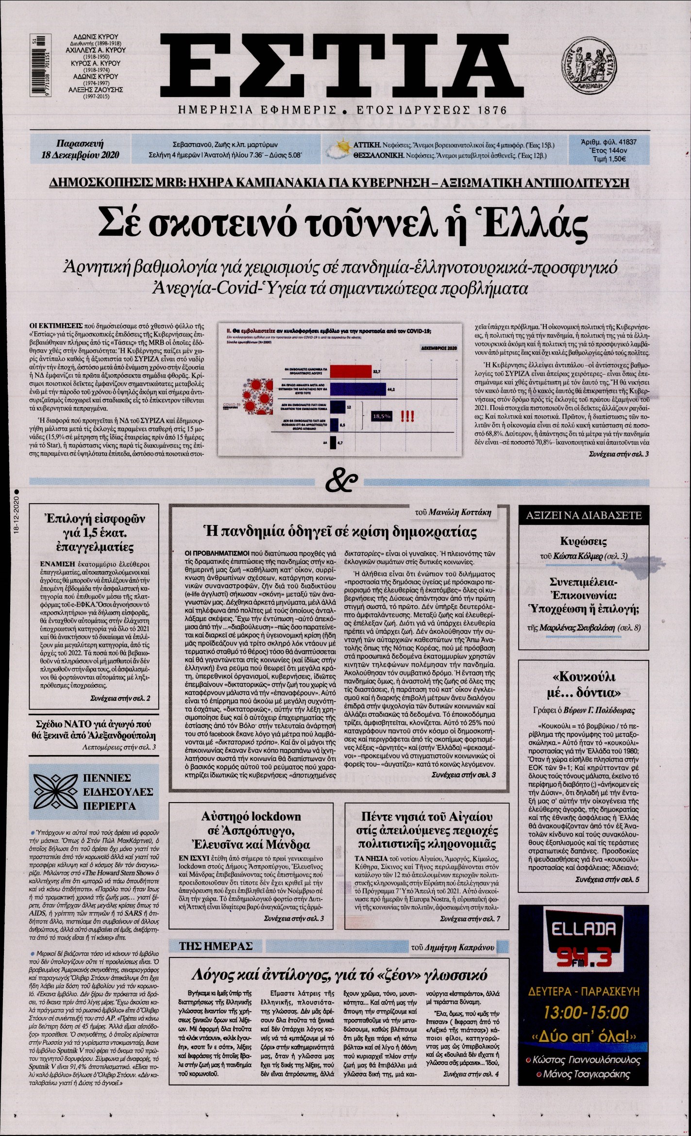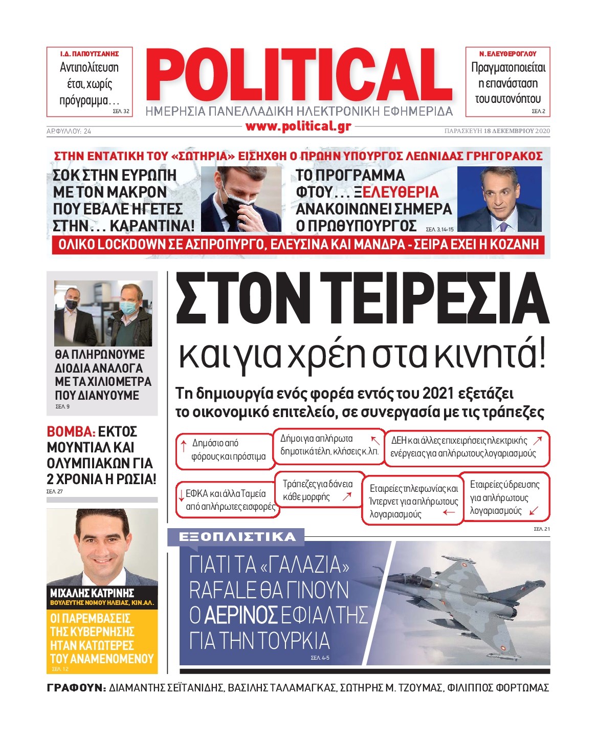 Οι πολιτικές εφημερίδες 18/12/2020 Διονύσης Νίκκας 06:07, Παρασκευή 18 Δεκεμβρίου 2020 Media Διαβάστε τα πρωτοσέλιδα των πολιτικών εφημερίδων… ΕΦΗΜΕΡΙΔΕΣ ΠΟΛΙΤΙΚΕΣ ΕΦΗΜΕΡΙΔΕΣ ΠΡΩΤΟΣΕΛΙΔΑ Μοιράσου το: σχολίασε κι εσύ (0 σχόλια) Ακολουθήστε το enikos.gr στο Google News και μάθετε πρώτοι όλες τις ειδήσεις Δείτε όλες τις τελευταίες ειδήσεις από την Ελλάδα και τον Κόσμο στο enikos.gr Ειδήσεις Ροή Ειδήσεων 4 ώρες πριν Μεσόγειος: Η διαδρομή του ρωσικού τάνκερ «Qendil» και η στοχευμένη επίθεση της Ουκρανίας με drone – Ο Πούτιν προειδοποίησε για αντίποινα 23 λεπτά πριν Αγρότες: Έκλεισαν για μία ώρα την παρακαμπτήρια της Ιόνιας Οδού στη θέση Χαλίκι 2 ώρες πριν Εμπλοκή και αερομαχίες με οπλισμένα τουρκικά F-16 στο Αιγαίο 2 ώρες πριν Πούτιν: «Ναι, είμαι ερωτευμένος» – Βίντεο από τη σπάνια προσωπική παραδοχή του 27 λεπτά πριν Ανδρέας Λυκουρέντζος: Υπέβαλε την παραίτησή του ο πρόεδρος του ΕΛΓΑ, αλλά δεν έγινε δεκτή – Όλο το παρασκήνιο 37 λεπτά πριν Αριθμολογία: Οι άνθρωποι που έχουν γεννηθεί αυτές τις 4 ημερομηνίες, συχνά παρεξηγούνται – «Η καλοσύνη τους κρύβει τεράστια δύναμη» 3 ώρες πριν Μήπως έχετε χάσει τον εαυτό σας στη σχέση σας; 7 «αθόρυβες» υποχωρήσεις που μάλλον κάνατε, χωρίς να το συνειδητοποιήσετε 2 ώρες πριν Ξεχάστε το καθάρισμα το Σαββατοκύριακο: Ο «κανόνας των 20 λεπτών» που θα σας λύσει τα χέρια 5 ώρες πριν Κουίζ για την παλιά Αθήνα: Αναγνωρίζετε την περιοχή; Έχετε περάσει 100% από εκεί 8 λεπτά πριν Συνεχίζει να προκαλεί ο Μίτσκοσκι: «Για μένα το όνομα Μακεδονία είναι ιερό» 17 λεπτά πριν Ο Γιάννης Κακλέας σκηνοθετεί Βερόνικα Δαβάκη και Ιβάν Σβιτάιλο στη «Locandiera» 23 λεπτά πριν Αγρότες: Έκλεισαν για μία ώρα την παρακαμπτήρια της Ιόνιας Οδού στη θέση Χαλίκι 27 λεπτά πριν Ανδρέας Λυκουρέντζος: Υπέβαλε την παραίτησή του ο πρόεδρος του ΕΛΓΑ, αλλά δεν έγινε δεκτή – Όλο το παρασκήνιο 31 λεπτά πριν Ηράκλειο: «Ιπτάμενοι» Άγιοι Βασίληδες μοίρασαν δώρα και χαμόγελα στα παιδιά στο ΠΑΓΝΗ – Δείτε βίντεο ENIKOS NETWORK Το ΕΚΑΒ τιμήθηκε από την Ακαδημία Αθηνών για τα 40 χρόνια προσφοράς του Έχετε πραγματικά μεγάλη καρδιά; 10 χαρακτηριστικά όσων έχουν καλοσύνη Έρχονται νέες προσλήψεις σε Δήμο – Όλες οι λεπτομέρειες Επίδομα παιδιού: Πότε ανοίγει ξανά η πλατφόρμα για τις αιτήσεις Χαρτογραφώντας το «σημείο χωρίς επιστροφή»: Για πρώτη φορά αποκαλύπτεται με λεπτομέρεια το ακανθώδες όριο της ατμόσφαιρας τ... Η Google καταργεί τη λειτουργία «dark web report» – Πώς θα μπορούν οι χρήστες να διαγράφουν τα δεδομένα τους περισσότερα 20:37 , Παρασκευή 19 Δεκεμβρίου 2025 Don’t Forget The Lyrics: Η Έλλη Κοκκίνου υποδέχεται 4 παίκτες που θα κάνουν τα πάντα για να μη χάσουν ούτε… μισή λέξη από τους στίχους Το «Don’t Forget The Lyrics» επιστρέφει απόψε, Παρασκευή 19 Δεκεμβρίου, στις 21:00 με νέο επει... 19:31 , Παρασκευή 19 Δεκεμβρίου 2025 GNTM: Απόψε ο μεγάλος τελικός για τους 4 φιναλίστ Έπειτα από μήνες γεμάτους μόδα, δημιουργία και έντονες αναμετρήσεις, το GNTM 2025 κορυφώνεται,... 18:11 , Παρασκευή 19 Δεκεμβρίου 2025 Το σόι σου: Ο Άρης έρχεται στην Ελλάδα για τις γιορτές των Χριστουγέννων – Τι θα δούμε στο αποψινό εορταστικό επεισόδιο Ένα απολαυστικό, εορταστικό επεισόδιο της σειράς “Το σόι σου”, γεμάτο ευτράπελα αλ... 15:15 , Παρασκευή 19 Δεκεμβρίου 2025 Την Κυριακή με τη Realnews: Ό,τι και αν αγοράσεις, σκανάρεις και κερδίζεις! Την Κυριακή με τη Realnews: Ό,τι και αν αγοράσεις, σκανάρεις και κερδίζεις! Με το PADU app, το... ΤΕΛΕΥΤΑΙΕΣ ΕΙΔΗΣΕΙΣ 8 λεπτά πριν Συνεχίζει να προκαλεί ο Μίτσκοσκι: «Για 