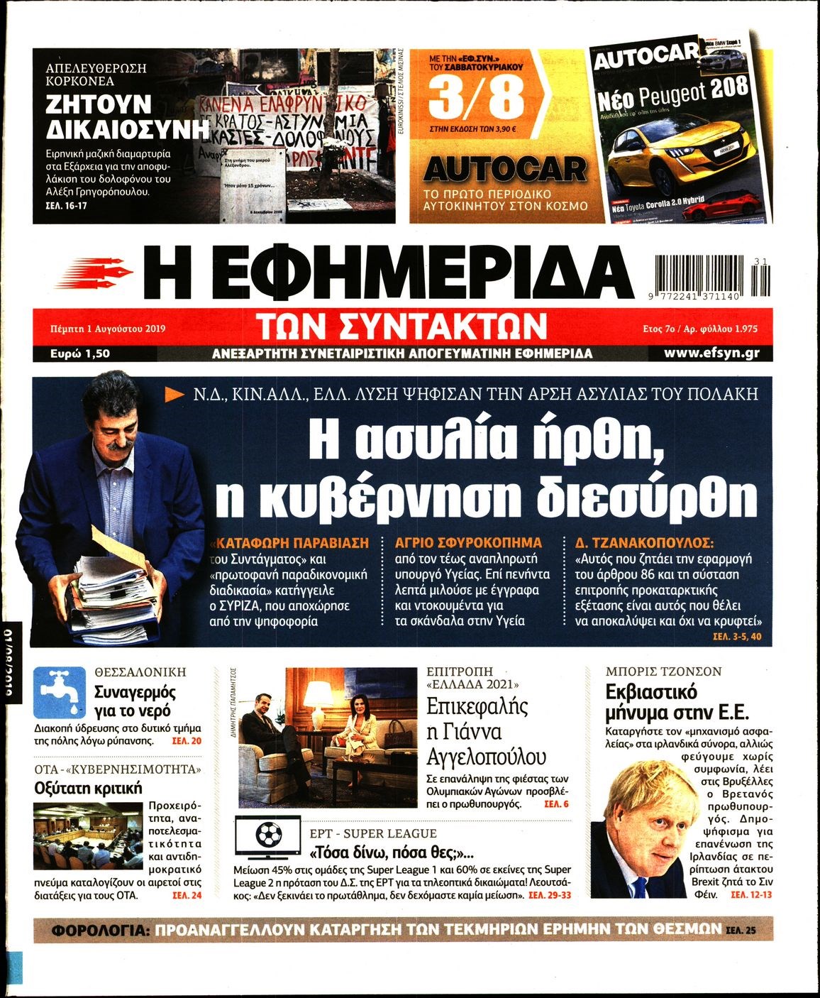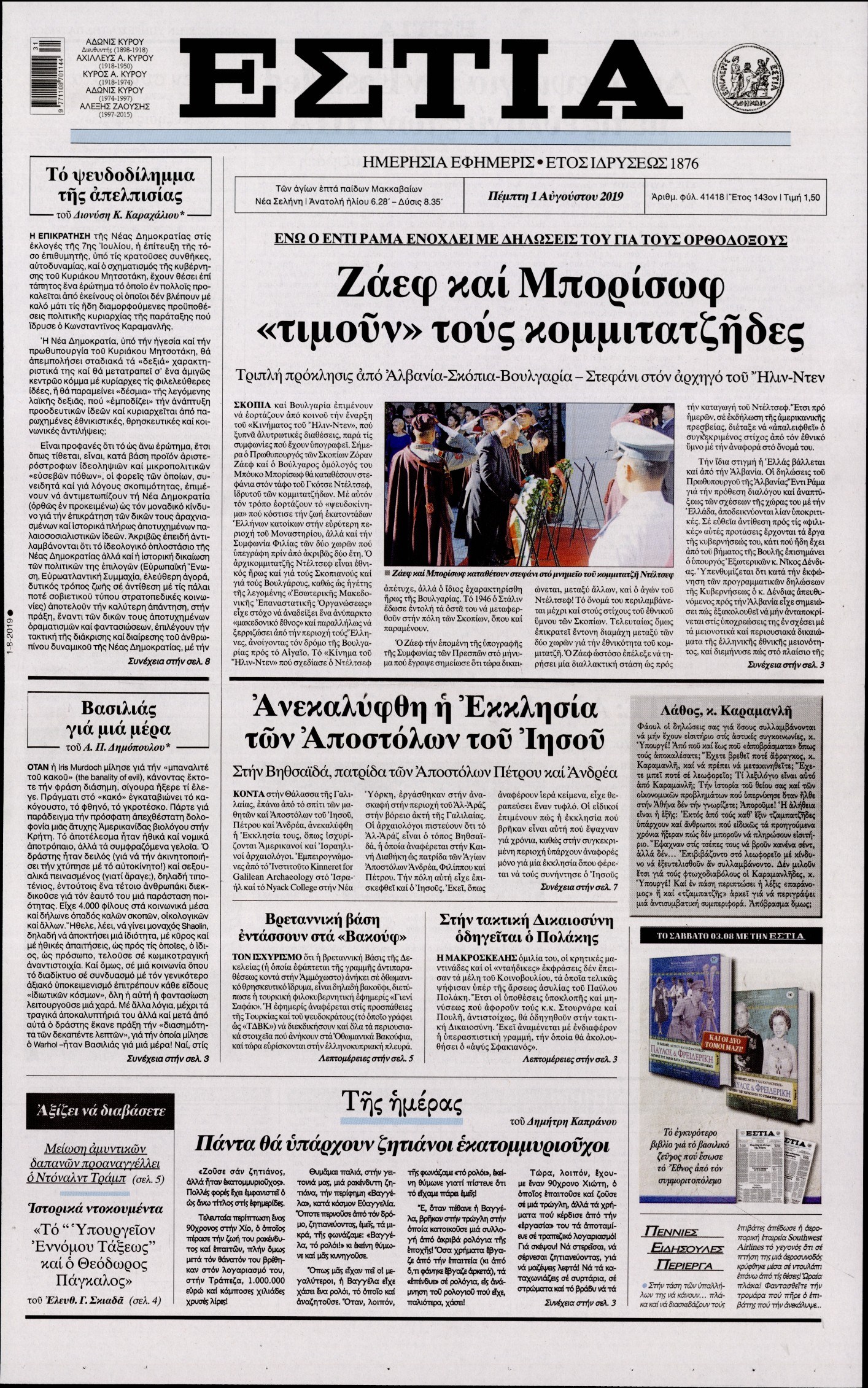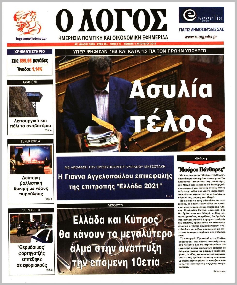 Οι πολιτικές εφημερίδες 1/8/19 Διονύσης Νίκκας 06:28, Πέμπτη 01 Αυγούστου 2019 Media Διαβάστε τα πρωτοσέλιδα των πολιτικών εφημερίδων… ΕΦΗΜΕΡΙΔΩΝ ΠΟΛΙΤΙΚΩΝ ΠΡΩΤΟΣΕΛΙΔΑ Μοιράσου το: σχολίασε κι εσύ (0 σχόλια) Ακολουθήστε το enikos.gr στο Google News και μάθετε πρώτοι όλες τις ειδήσεις Δείτε όλες τις τελευταίες ειδήσεις από την Ελλάδα και τον Κόσμο στο enikos.gr Ειδήσεις Ροή Ειδήσεων 5 ώρες πριν Τραγωδία στη Χίο: Εισαγγελική εντολή για την σύλληψη του Μαροκινού – Ήταν ο διακινητής, σύμφωνα με καταθέσεις μεταναστών 2 ώρες πριν Axios: Καταρρέουν πριν καν αρχίσουν οι συνομιλίες ΗΠΑ-Ιράν για τα πυρηνικά 39 λεπτά πριν Χίος: «Δεν μπορώ να συνέλθω – Κακώς τα βάζουν με το Λιμενικό» λέει στο enikos.gr δύτης που επιχείρησε στο σημείο της τραγωδίας 3 ώρες πριν Αγρότες: Αποφάσισαν συλλαλητήριο με τρακτέρ στην Αθήνα – Κινητοποιήσεις την επόμενη εβδομάδα σε μεγάλες πόλεις 3 ώρες πριν Καιρός: Έρχεται ραγδαία επιδείνωση με βροχές και καταιγίδες – Πότε θα επηρεαστεί η Αττική 5 ώρες πριν Τα 4 ζώδια που προσελκύουν μεγάλη αφθονία και τύχη σ’ όλη τη διάρκεια του μήνα – «Το σύμπαν σας ευνοεί» 3 ώρες πριν Πετσέτες: Η μέθοδος διπλώματος που εξοικονομεί χώρο στο μπάνιο σας 2 ώρες πριν Καταλαβαίνετε ότι έχετε ξεπεράσει κάποιον όταν αυτές οι 9 ανεπαίσθητες συμπεριφορές αρχίζουν να σας ενοχλούν 6 ώρες πριν Νέα εποχή στα καταστήματα Allwyn με Instant Win και κέρδη στη στιγμή – Χιλιάδες τυχεροί διεκδικούν κέρδη έως 500 ευρώ εντελώς δωρεάν 1 ημέρα πριν Οπτική ψευδαίσθηση: Μόνο το 1% των ανθρώπων θα βρει το ελάφι σε 17 δευτερόλεπτα 6 λεπτά πριν Ευρυδίκη Παπαδοπούλου: Το μήνυμα για την «Παγκόσμια Ημέρα κατά του Καρκίνου» – «Δεν πίστευα πως θα είμαι ζωντανή…» 16 λεπτά πριν Χατζηβασιλείου για Σαμαρά: «Καμία απόκλιση από τις εθνικές θέσεις – Και ο ίδιος είχε μεταβεί στην Τουρκία για Ανώτατο Συμβούλιο Συνεργασίας» 23 λεπτά πριν Σίσσυ Χρηστίδου: Η συγκινητική ανάρτηση για τα 4 χρόνια από τον θάνατο της μητέρας της – «Σ’ αγαπώ» 29 λεπτά πριν Σεισμός 3,7 Ρίχτερ στην Φλώρινα ENIKOS NETWORK Το λάθος που κάνουμε με το μαξιλάρι στον ύπνο και αυξάνει τον κίνδυνο για γλαύκωμα και τύφλωση ΕΟΠΕ: Ολιστική στρατηγική απέναντι στον καρκίνο με επίκεντρο τον άνθρωπο Χρηματιστήριο: Κέρδη 1,56% – Σε νέα υψηλά 16 ετών η αγορά ΑΑΔΕ: Νέα ψηφιακή εφαρμογή για την απαλλαγή από τα τέλη κυκλοφορίας για Άτομα με Αναπηρία Ευπάθεια στο moltbook ai αποκαλύπτει email, tokens σύνδεσης και api keys Αυτός είναι ο ρόλος της μικρής τρύπας στους νυχοκόπτες – «Είμαι ο μόνος που δεν το ήξερε;»» περισσότερα 20:19 , Τετάρτη 04 Φεβρουαρίου 2026 Eurovision 2026: Θα το… φέρει το «Ferto» του Akyla; Δείτε ποια θέση κατέχει στα ευρωπαϊκά προγνωστικά Πριν καλά-καλά ανακοινωθούν όλα τα κομμάτια του διαγωνισμού της φετινής Eurovision και πριν ακ... 19:50 , Τετάρτη 04 Φεβρουαρίου 2026 Να μ’ αγαπάς: Ο Άγγελος τινάζει στον αέρα τη συμφωνία πώλησης των επιχειρήσεων Η Άννα φεύγει οριστικά από το σπίτι των Καλλιγάδων στο νέο επεισόδιο της σειράς “Να μ΄αγ... 18:22 , Τετάρτη 04 Φεβρουαρίου 2026 Ο Όμιλος Antenna υπέγραψε Μνημόνιο Συνεργασίας με το Junior Achievement Greece και επενδύει στη νέα γενιά Ο Όμιλος Antenna υπέγραψε Μνημόνιο Συνεργασίας με τον μη κερδοσκοπικό οργανισμό Junior Achieve... 16:20 , Τετάρτη 04 Φεβρουαρίου 2026 Μπαμπά, σ’αγαπώ: Έτσι ξεκινά η περιπέτεια της πατρότητας για τα «3 μπαμπαδάκια» Η νέα οικογενειακή σειρά του Alpha «Μπαμπά, σ’ αγαπώ» κάνει πρεμιέρα αύριο στις 21:00 με διπλό... ΤΕΛΕΥΤΑΙΕΣ ΕΙΔΗΣΕΙΣ 6 λεπτά πριν Ευρυδίκη Παπαδοπούλου: Το μήνυμα 