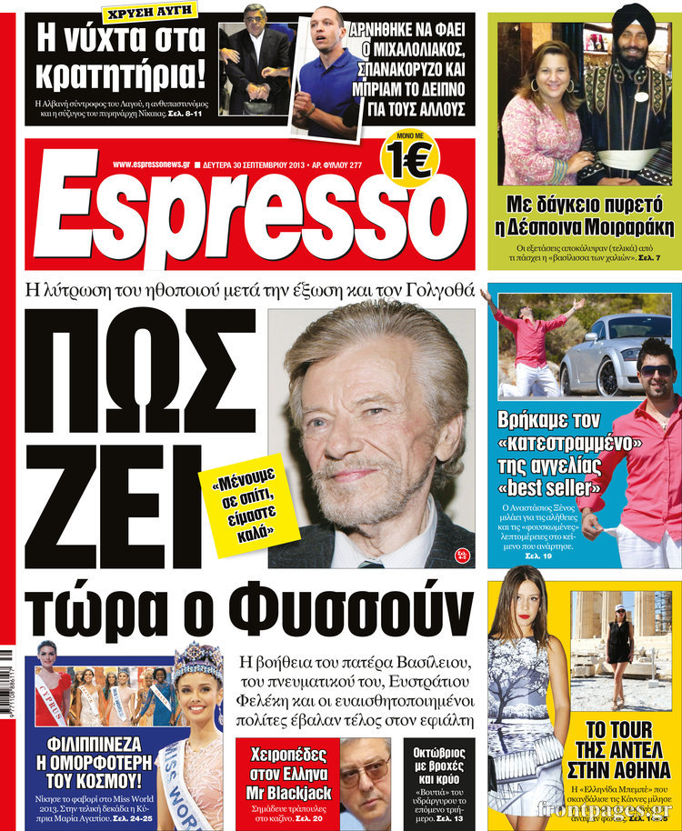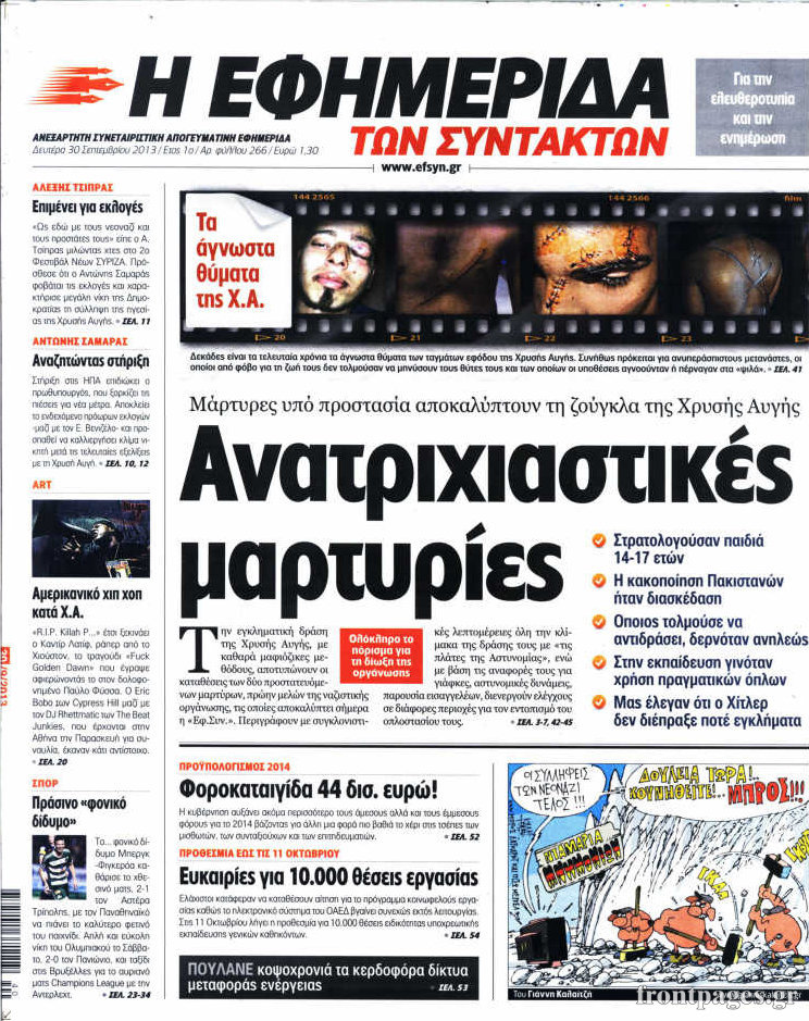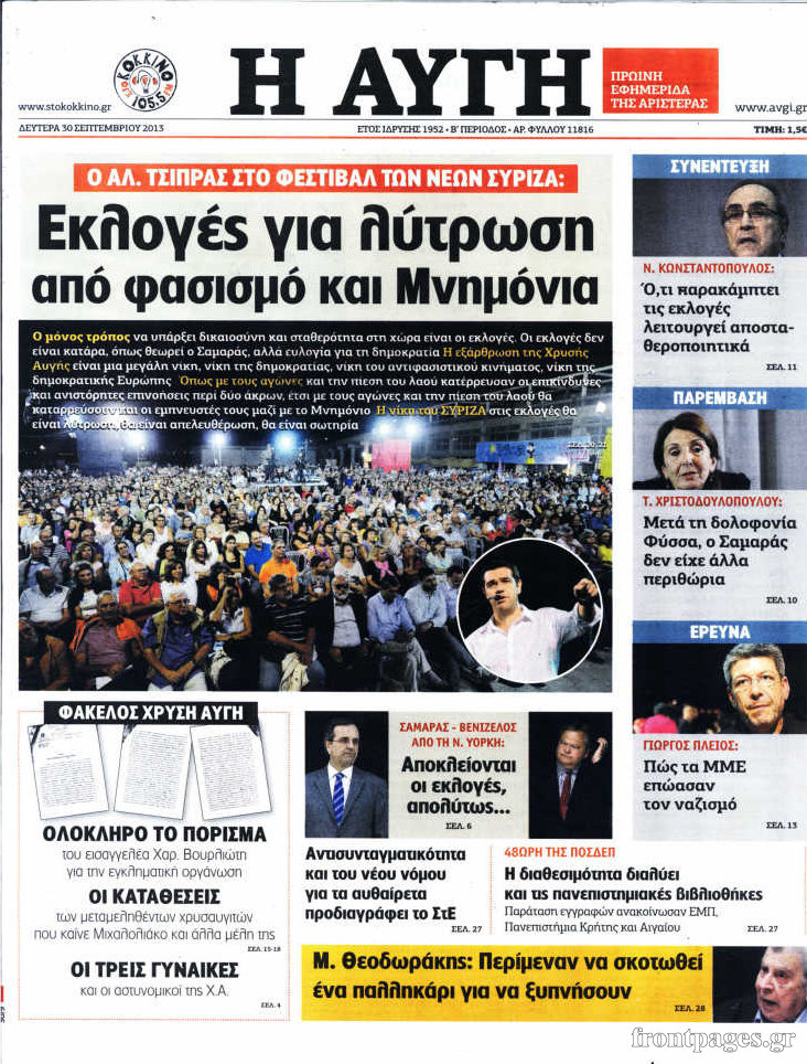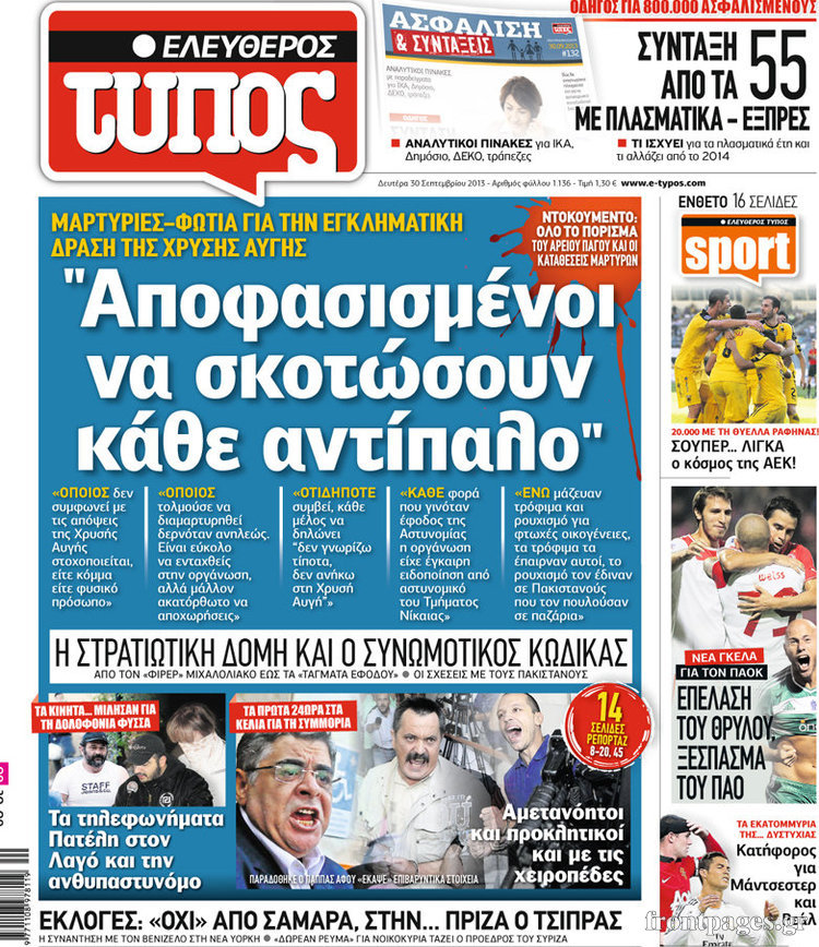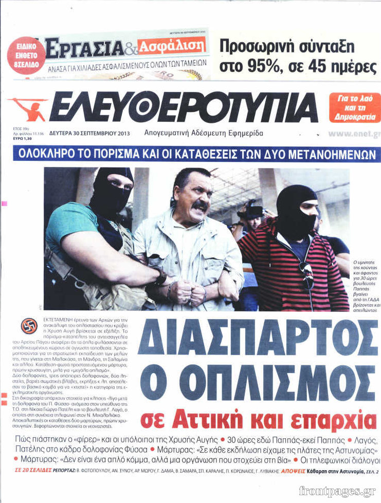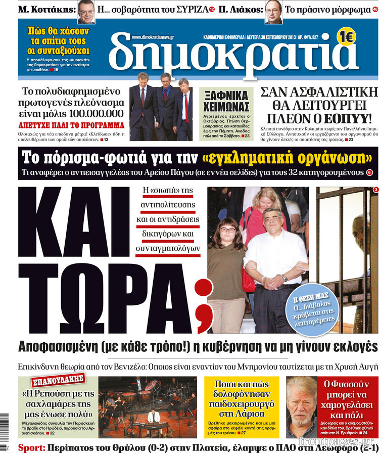 Οι πολιτικές εφημερίδες Enikos Newsroom 08:03, Δευτέρα 30 Σεπτεμβρίου 2013 Media Οι πολιτικές εφημερίδες ΠΟΛΙΤΙΚΕΣ ΕΦΗΜΕΡΙΔΕΣ ΠΡΩΤΟΣΕΛΙΔΑ Μοιράσου το: σχολίασε κι εσύ (0 σχόλια) Ακολουθήστε το enikos.gr στο Google News και μάθετε πρώτοι όλες τις ειδήσεις Δείτε όλες τις τελευταίες ειδήσεις από την Ελλάδα και τον Κόσμο στο enikos.gr Ειδήσεις Ροή Ειδήσεων 5 ώρες πριν Εκτός ευρωομάδας ΣΥΡΙΖΑ ο Νίκος Παππάς μετά την επίθεση στον δημοσιογράφο Νίκο Γιαννόπουλο – Η μήνυση και οι νέες δηλώσεις 6 ώρες πριν «Αγριεύουν» οι αγρότες: «Δεν συντρέχει λόγος συνάντησης με τον πρωθυπουργό» – Ώρα αποφάσεων στη σύσκεψη της Πέμπτης 6 ώρες πριν Κυψέλη: Χωρίς την οικογένειά της δίπλα της απολογήθηκε η 16χρονη – «Της είχε επιτεθεί κάποιος για να την βιάσει, φοβήθηκε και κυκλοφορούσε με μαχαίρι» 5 ώρες πριν Politico: Το πρόβλημα της Ευρώπης δεν είναι το Βέλγιο αλλά ο Ντόναλντ Τραμπ 7 ώρες πριν Αλεξανδρούπολη: Πολυοργανική ανεπάρκεια λόγω υποσιτισμού η αιτία θανάτου του 3χρονου αγοριού 6 ώρες πριν Μυστήριο με τεράστιες κυκλικές πέτρες 200 κιλών – Ανακαλύφθηκαν τυχαία κατά τη διάρκεια οδικών έργων και κανείς δεν ξέρει από πού προέρχονται 7 ώρες πριν Ύπνος: Ειδικός εξηγεί τον πραγματικό λόγο που ξυπνάτε στις 4 τα ξημερώματα – Ο ρόλος των ορμονών και του κιρκάδιου ρυθμού 8 ώρες πριν Αριθμολογία: Οι άνθρωποι που έχουν γεννηθεί αυτές τις 4 ημερομηνίες, είναι τρυφεροί και αγαπούν ανιδιοτελώς 19 ώρες πριν 20 χρόνια τα Χριστούγεννα ξεκινούν στα Public με μεγάλη ποικιλία σε δώρα! 5 λεπτά πριν Κτηνοτρόφοι: Με δάκρυα στα μάτια ζουν τον εφιάλτη των άδειων στάβλων – «Καταστράφηκαν οι ζωές μας» 20 λεπτά πριν Νέο αμερικανικό πλήγμα σε σκάφος που φέρεται να μετέφερε ναρκωτικά στον Ειρηνικό – Τέσσερις νεκροί 35 λεπτά πριν Αλ Τσαντίρι Νιουζ: «Λύγισε» ο Δημήτρης Λάλος για τον Δημήτρη Ήμελλο – «Τον μνημονεύω, να ‘ναι καλά εκεί που είναι» 50 λεπτά πριν GNTM: Με δάκρυα τον αποχαιρέτησε η Ηλιάνα Παπαγεωργίου πριν από τον ημιτελικό – «Αισθάνομαι πολύ παράξενα» 1 ώρα πριν Αμερικανικά στρατεύματα στον Ισημερινό για «προσωρινή» επιχείρηση κατά των ναρκωτικών ENIKOS NETWORK Αϋπνία: Το κόλπο που θα σας βοηθήσει να κοιμηθείτε απόψε – Είναι απλό και έχει αποτέλεσμα 2,6 εκατομμύρια πολίτες έχουν ήδη εμβολιαστεί κατά της γρίπης ΕΛΣΤΑΤ: Τι δείχνουν τα νέα στοιχεία για τις ηλεκτρονικές παραγγελίες των επιχειρήσεων ΚΕΠΕ: Οι 3 διακριτές συμβολές των ΜμΕ και της μεταποίησης στην ελληνική οικονομία Χαρτογραφώντας το «σημείο χωρίς επιστροφή»: Για πρώτη φορά αποκαλύπτεται με λεπτομέρεια το ακανθώδες όριο της ατμόσφαιρας τ... Η Google καταργεί τη λειτουργία «dark web report» – Πώς θα μπορούν οι χρήστες να διαγράφουν τα δεδομένα τους περισσότερα 02:30 , Πέμπτη 18 Δεκεμβρίου 2025 Αλ Τσαντίρι Νιουζ: Η κόρη της Πάολα στο κοινό – Η ατάκα Λαζόπουλου που την έκανε να «κοκκινήσει» Γιορτινή διάθεση και ευχάριστες στιγμές γέμισε η αποψινή, τελευταία για το 2025, εκπομπή του «... 22:24 , Τετάρτη 17 Δεκεμβρίου 2025 Το Σπίτι Δίπλα Στο Ποτάμι: Σε κίνδυνο η υγεία του Απόστολου – Τι θα δούμε απόψε “Το Σπίτι Δίπλα στο Ποτάμι” ξετυλίγει το νήμα της ζωής των πέντε αδελφών με καταισ... 21:14 , Τετάρτη 17 Δεκεμβρίου 2025 Παιχνίδια Εκδίκησης: Θα καταφέρει ο Χρήστος να κλονίσει την εμπιστοσύνη της Μάγιας απέναντι στον Άγη; Τα «Παιχνίδια Εκδίκησης» έρχονται απόψε στις 22:30, στον Αντ1, με το τελευταίο επεισόδιο της χ... 20:57 , Τετάρτη 17 Δεκεμβρίου 2025 Άγιος Έρωτας: Η Χλόη καταθέτει εναντίον του πατέρα της και ο