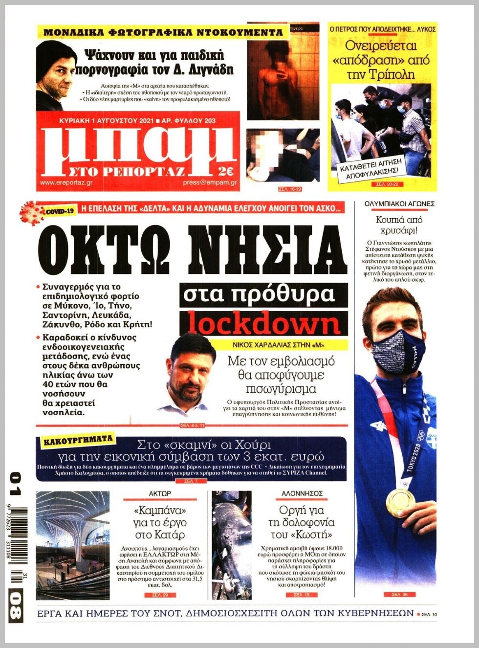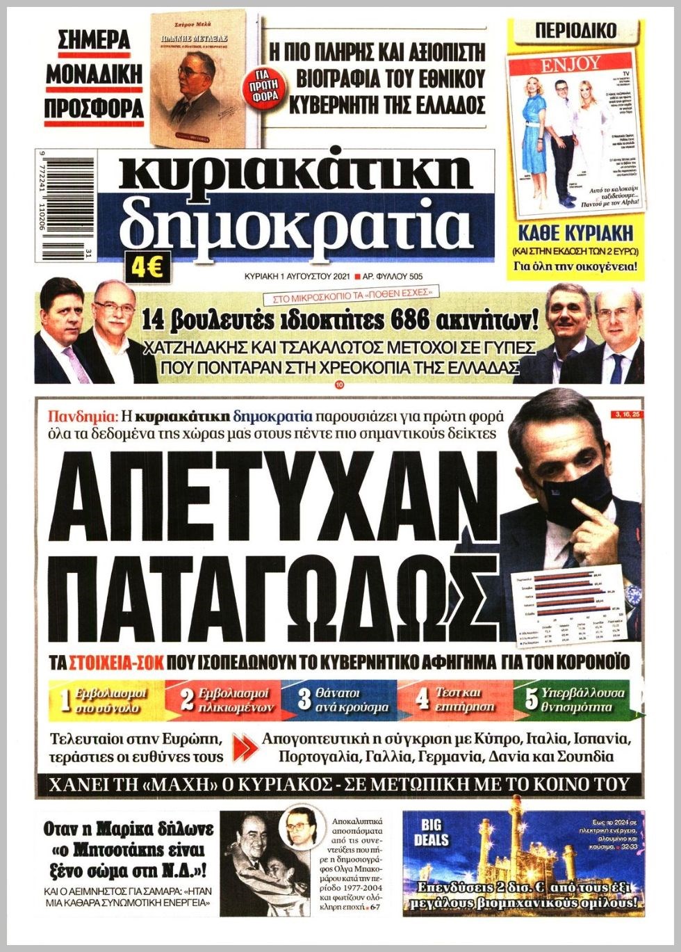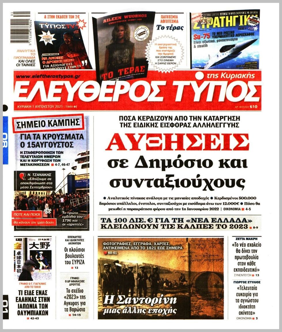 Οι πολιτικές εφημερίδες 1/8/2021 Διονύσης Νίκκας 07:14, Κυριακή 01 Αυγούστου 2021 Media Διαβάστε τα πρωτοσέλιδα των πολιτικών εφημερίδων… ΕΦΗΜΕΡΙΔΕΣ ΠΡΩΤΟΣΕΛΙΔΑ Μοιράσου το: σχολίασε κι εσύ (0 σχόλια) Ακολουθήστε το enikos.gr στο Google News και μάθετε πρώτοι όλες τις ειδήσεις Δείτε όλες τις τελευταίες ειδήσεις από την Ελλάδα και τον Κόσμο στο enikos.gr Ειδήσεις Ροή Ειδήσεων 3 ώρες πριν Υπόθεση Έπσταϊν: Το Υπουργείο Δικαιοσύνης δημοσιοποίησε μια σειρά από εξαιρετικά επεξεργασμένα αρχεία – «Λείπουν τα πιο σημαντικά έγγραφα», λένε οι Δημοκρατικοί 42 λεπτά πριν Γιορτές με μπλόκα για τους αγρότες: Ανοίγουν διόδια και μοιράζουν προϊόντα στους ταξιδιώτες 1 ώρα πριν Εξαφάνιση 33χρονου γιατρού στην Κρήτη: «Άναψα τα φώτα, τρόμαξε και άρχισε να τρέχει στα χωράφια» – Η τελευταία διαδρομή και η μαρτυρία «κλειδί» 3 ώρες πριν Ο «χάρτης» με τις αυξήσεις και τις φοροελαφρύνσεις του 2026 – Ποιοι και πόσα κερδίζουν 58 λεπτά πριν Τα αρχεία του Έπσταϊν αποκαλύπτουν φωτογραφία του έκπτωτου πρίγκιπα Άντριου – Είναι ξαπλωμένος στην αγκαλιά 5 γυναικών 1 ώρα πριν Μία νέα «χρυσή» περίοδος αρχίζει για 3 ζώδια από σήμερα – «Μία αναπάντεχη ευκαιρία οδηγεί στην επιτυχία» 5 ώρες πριν Αυγά: Πόσα μπορείτε να τρώτε την ημέρα με ασφάλεια για μέγιστη πρόσληψη πρωτεΐνης 3 ώρες πριν Αρχαιολόγοι ανακάλυψαν σε χωράφι απεικόνιση 600 ετών ενός Αγίου – Τα στοιχεία που δείχνουν ότι μαρτύρησε 2 ώρες πριν Αγχώνεται για το χριστουγεννιάτικο δώρο που πήρε στην πλούσια σύντροφό του – «Φοβάμαι πως θα το βρει φθηνιάρικο, φοράει βραχιόλια Cartier» 7 λεπτά πριν Νέες ταυτότητες: Μεγάλη αναμονή για ραντεβού στην Αττική – Τέλος τα ταξίδια εκτός Ελλάδος από τον Αύγουστο για όσους δεν έχουν αλλάξει 15 λεπτά πριν Οι 7 φράσεις που δεν λένε ποτέ οι συναισθηματικά έξυπνοι άνθρωποι κατά τη διάρκεια ενός καβγά 18 λεπτά πριν Τηλεθέαση (19/12): Ανατροπές και πρωτιές στην πρωινή ζώνη 26 λεπτά πριν Πώς η κλιματική αλλαγή επηρεάζει εγκύους και βρέφη – Οι επιπτώσεις των υψηλών θερμοκρασιών 34 λεπτά πριν e-ΕΦΚΑ και ΔΥΠΑ: Οι πληρωμές από 22 έως 24 Δεκεμβρίου – Ποιοι θα δουν χρήματα στους λογαριασμούς τους ENIKOS NETWORK Είστε μόνιμα απρόσεκτοι; 3 σημάδια που δείχνουν ότι μπορεί να είναι σύμπτωμα πάθησης Πόσα κιλά παίρνουμε πραγματικά τα Χριστούγεννα, σύμφωνα με την επιστήμη – Πώς να το αποτρέψουμε; Επίδομα παιδιού: Τι αλλάζει από το 2026 – Το όφελος από τις φορολογικές ελαφρύνσεις Mega χριστουγεννιάτικη φορολοταρία: «Κλείδωσε» η ημερομηνία για την κλήρωση – Ερωτήσεις και απαντήσεις Χαρτογραφώντας το «σημείο χωρίς επιστροφή»: Για πρώτη φορά αποκαλύπτεται με λεπτομέρεια το ακανθώδες όριο της ατμόσφαιρας τ... Η Google καταργεί τη λειτουργία «dark web report» – Πώς θα μπορούν οι χρήστες να διαγράφουν τα δεδομένα τους περισσότερα 09:30 , Σάββατο 20 Δεκεμβρίου 2025 «Porto Leone: Στη γειτονιά με τα κόκκινα φανάρια» – Ο Χρόνης αποκαλύπτει στην Αλεξάνδρα το μυστικό για το παιδί της Λένας Η μεγάλη δραματική σειρά του Apha «Porto Leone: Στη γειτονιά με τα κόκκινα φανάρια» μας μεταφέ... 08:14 , Σάββατο 20 Δεκεμβρίου 2025 Τρομεροί γονείς: Η Μαρία Καβογιάννη εισβάλλει στο σπίτι της οικογένειας Στεφανίδη Όσα θα δούμε στο νέο διπλό επεισόδιο της σειράς «Τρομεροί γονείς», σήμερα Σάββατο 20 Δεκεμβρίο... 05:48 , Σάββατο 20 Δεκεμβρίου 2025 Οι οικονομικές εφημερίδες 20/12/2025 Διαβάστε τα πρωτοσέλιδα από τις οικονομικές εφημερίδες, σήμερα 20/12/2025. 05:43 , Σάββατο 20 Δεκεμβρίου 2025 Οι αθλητικές εφημερίδες 20/12/2025 Διαβάστε 