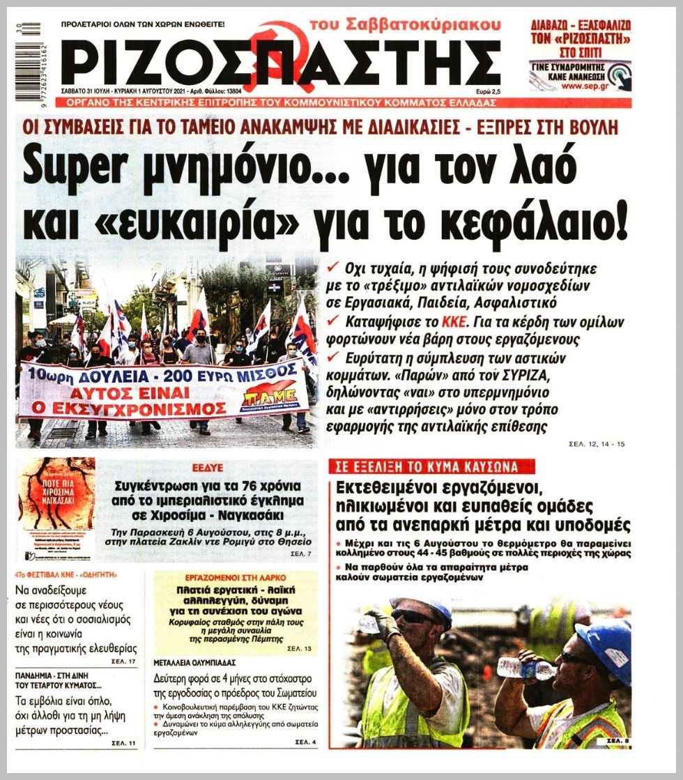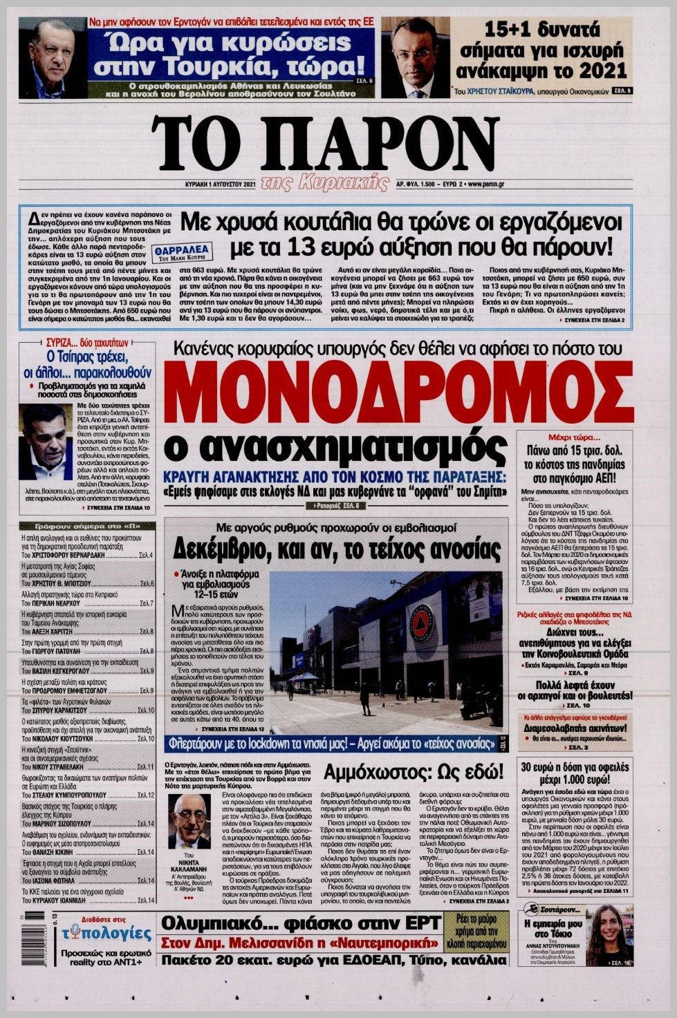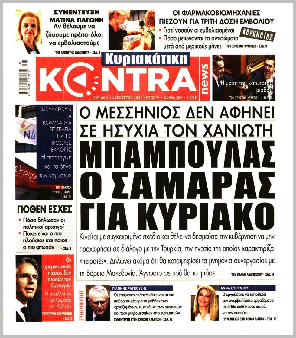 Οι πολιτικές εφημερίδες 1/8/2021 Διονύσης Νίκκας 07:14, Κυριακή 01 Αυγούστου 2021 Media Διαβάστε τα πρωτοσέλιδα των πολιτικών εφημερίδων… ΕΦΗΜΕΡΙΔΕΣ ΠΡΩΤΟΣΕΛΙΔΑ Μοιράσου το: σχολίασε κι εσύ (0 σχόλια) Ακολουθήστε το enikos.gr στο Google News και μάθετε πρώτοι όλες τις ειδήσεις Δείτε όλες τις τελευταίες ειδήσεις από την Ελλάδα και τον Κόσμο στο enikos.gr Ειδήσεις Ροή Ειδήσεων 3 ώρες πριν Υπόθεση Έπσταϊν: Το Υπουργείο Δικαιοσύνης δημοσιοποίησε μια σειρά από εξαιρετικά επεξεργασμένα αρχεία – «Λείπουν τα πιο σημαντικά έγγραφα», λένε οι Δημοκρατικοί 42 λεπτά πριν Γιορτές με μπλόκα για τους αγρότες: Ανοίγουν διόδια και μοιράζουν προϊόντα στους ταξιδιώτες 1 ώρα πριν Εξαφάνιση 33χρονου γιατρού στην Κρήτη: «Άναψα τα φώτα, τρόμαξε και άρχισε να τρέχει στα χωράφια» – Η τελευταία διαδρομή και η μαρτυρία «κλειδί» 3 ώρες πριν Ο «χάρτης» με τις αυξήσεις και τις φοροελαφρύνσεις του 2026 – Ποιοι και πόσα κερδίζουν 58 λεπτά πριν Τα αρχεία του Έπσταϊν αποκαλύπτουν φωτογραφία του έκπτωτου πρίγκιπα Άντριου – Είναι ξαπλωμένος στην αγκαλιά 5 γυναικών 1 ώρα πριν Μία νέα «χρυσή» περίοδος αρχίζει για 3 ζώδια από σήμερα – «Μία αναπάντεχη ευκαιρία οδηγεί στην επιτυχία» 5 ώρες πριν Αυγά: Πόσα μπορείτε να τρώτε την ημέρα με ασφάλεια για μέγιστη πρόσληψη πρωτεΐνης 3 ώρες πριν Αρχαιολόγοι ανακάλυψαν σε χωράφι απεικόνιση 600 ετών ενός Αγίου – Τα στοιχεία που δείχνουν ότι μαρτύρησε 2 ώρες πριν Αγχώνεται για το χριστουγεννιάτικο δώρο που πήρε στην πλούσια σύντροφό του – «Φοβάμαι πως θα το βρει φθηνιάρικο, φοράει βραχιόλια Cartier» 7 λεπτά πριν Νέες ταυτότητες: Μεγάλη αναμονή για ραντεβού στην Αττική – Τέλος τα ταξίδια εκτός Ελλάδος από τον Αύγουστο για όσους δεν έχουν αλλάξει 15 λεπτά πριν Οι 7 φράσεις που δεν λένε ποτέ οι συναισθηματικά έξυπνοι άνθρωποι κατά τη διάρκεια ενός καβγά 18 λεπτά πριν Τηλεθέαση (19/12): Ανατροπές και πρωτιές στην πρωινή ζώνη 26 λεπτά πριν Πώς η κλιματική αλλαγή επηρεάζει εγκύους και βρέφη – Οι επιπτώσεις των υψηλών θερμοκρασιών 34 λεπτά πριν e-ΕΦΚΑ και ΔΥΠΑ: Οι πληρωμές από 22 έως 24 Δεκεμβρίου – Ποιοι θα δουν χρήματα στους λογαριασμούς τους ENIKOS NETWORK Είστε μόνιμα απρόσεκτοι; 3 σημάδια που δείχνουν ότι μπορεί να είναι σύμπτωμα πάθησης Πόσα κιλά παίρνουμε πραγματικά τα Χριστούγεννα, σύμφωνα με την επιστήμη – Πώς να το αποτρέψουμε; Επίδομα παιδιού: Τι αλλάζει από το 2026 – Το όφελος από τις φορολογικές ελαφρύνσεις Mega χριστουγεννιάτικη φορολοταρία: «Κλείδωσε» η ημερομηνία για την κλήρωση – Ερωτήσεις και απαντήσεις Χαρτογραφώντας το «σημείο χωρίς επιστροφή»: Για πρώτη φορά αποκαλύπτεται με λεπτομέρεια το ακανθώδες όριο της ατμόσφαιρας τ... Η Google καταργεί τη λειτουργία «dark web report» – Πώς θα μπορούν οι χρήστες να διαγράφουν τα δεδομένα τους περισσότερα 09:30 , Σάββατο 20 Δεκεμβρίου 2025 «Porto Leone: Στη γειτονιά με τα κόκκινα φανάρια» – Ο Χρόνης αποκαλύπτει στην Αλεξάνδρα το μυστικό για το παιδί της Λένας Η μεγάλη δραματική σειρά του Apha «Porto Leone: Στη γειτονιά με τα κόκκινα φανάρια» μας μεταφέ... 08:14 , Σάββατο 20 Δεκεμβρίου 2025 Τρομεροί γονείς: Η Μαρία Καβογιάννη εισβάλλει στο σπίτι της οικογένειας Στεφανίδη Όσα θα δούμε στο νέο διπλό επεισόδιο της σειράς «Τρομεροί γονείς», σήμερα Σάββατο 20 Δεκεμβρίο... 05:48 , Σάββατο 20 Δεκεμβρίου 2025 Οι οικονομικές εφημερίδες 20/12/2025 Διαβάστε τα πρωτοσέλιδα από τις οικονομικές εφημερίδες, σήμερα 20/12/2025. 05:43 , Σάββατο 20 Δεκεμβρίου 2025 Οι αθλητικές εφημερίδες 20/12/2025 Διαβάστε 