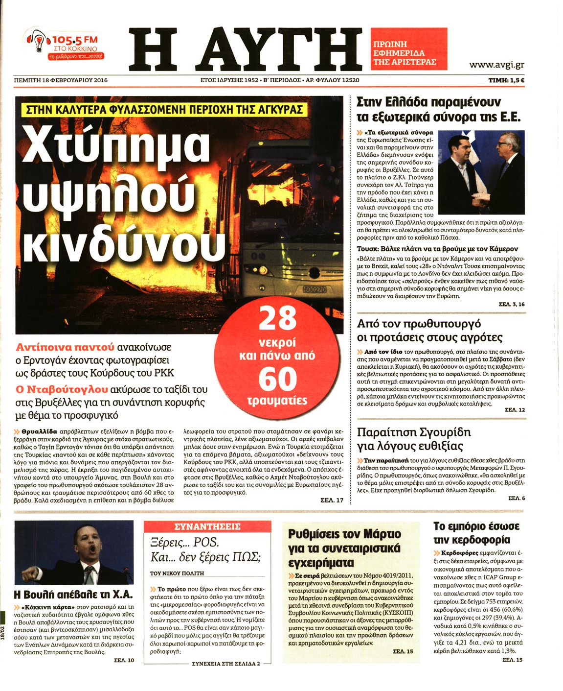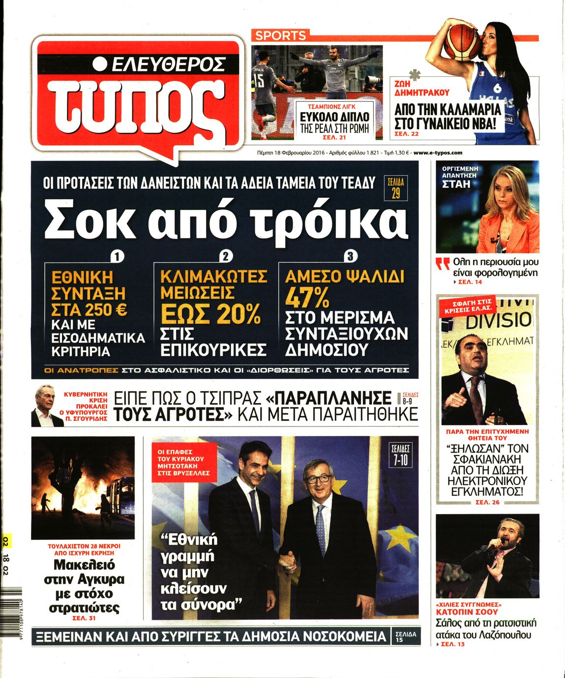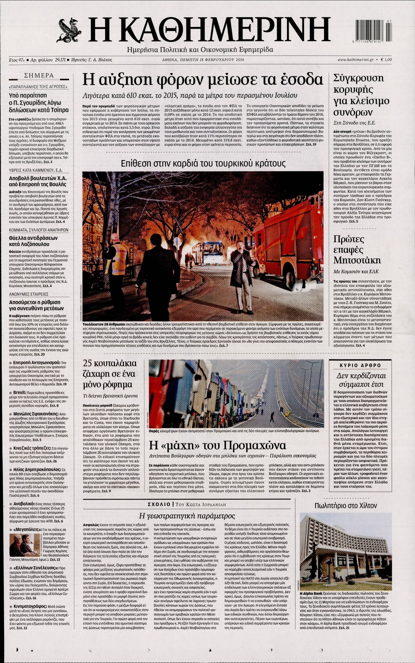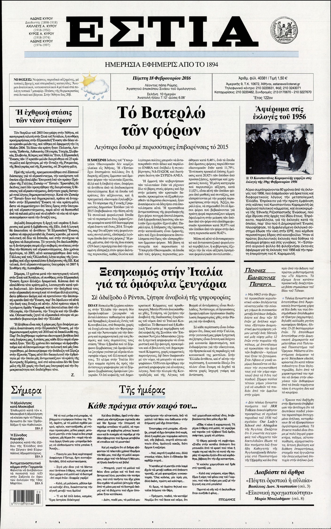 Οι πολιτικές εφημερίδες 18/2/2016 Enikos Newsroom 06:11, Πέμπτη 18 Φεβρουαρίου 2016 Media Διαβάστε τα σημερινά πρωτοσέλιδα των πολιτικών εφημερίδων: ΠΟΛΙΤΙΚΕΣ ΕΦΗΜΕΡΙΔΕΣ ΠΡΩΤΟΣΕΛΙΔΑ Μοιράσου το: σχολίασε κι εσύ (0 σχόλια) Ακολουθήστε το enikos.gr στο Google News και μάθετε πρώτοι όλες τις ειδήσεις Δείτε όλες τις τελευταίες ειδήσεις από την Ελλάδα και τον Κόσμο στο enikos.gr Ειδήσεις Ροή Ειδήσεων 38 λεπτά πριν Μπλόκα: Οι αγρότες σηκώνουν τις μπάρες σε διόδια για τους εκδρομείς των Χριστουγέννων και μοιράζουν προϊόντα – Βίντεο 1 ώρα πριν Τσιάρας προς αγρότες: Τα μπλόκα και τα πείσματα δεν ωφελούν – Οι λύσεις περνούν μέσα από τον διάλογο 2 ώρες πριν Αρχεία Έπσταϊν: Οι συγκλονιστικές φωτογραφίες – Ο Μάικλ Τζάκσον, ο Μικ Τζάγκερ και ο Κέβιν Σπέισι ανάμεσα στους διάσημους που απεικονίζονται 3 ώρες πριν Νέες ταυτότητες: Μεγάλη αναμονή για ραντεβού στην Αττική – Τέλος τα ταξίδια εκτός Ελλάδος από τον Αύγουστο για όσους δεν έχουν αλλάξει 3 ώρες πριν Ινδία: Επτά ελέφαντες σκοτώθηκαν κατά τη σύγκρουση επιβατικού τρένου με κοπάδι 4 ώρες πριν Μία νέα «χρυσή» περίοδος αρχίζει για 3 ζώδια από σήμερα – «Μία αναπάντεχη ευκαιρία οδηγεί στην επιτυχία» 5 ώρες πριν Αγχώνεται για το χριστουγεννιάτικο δώρο που πήρε στην πλούσια σύντροφό του – «Φοβάμαι πως θα το βρει φθηνιάρικο, φοράει βραχιόλια Cartier» 3 ώρες πριν Διαιτολόγος αποκαλύπτει 9 πρωινές συνήθειες που «λιώνουν» το κοιλιακό λίπος – «Υποστηρίζουν την υγιεινή απώλεια βάρους» 3 ώρες πριν Οι 7 φράσεις που δεν λένε ποτέ οι συναισθηματικά έξυπνοι άνθρωποι κατά τη διάρκεια ενός καβγά 3 λεπτά πριν Βέλγιο: Άγνωστοι έριξαν κόκκινη μπογιά στο προξενείο της Πολωνίας στις Βρυξέλλες 10 λεπτά πριν Γρηγόρης Δημητριάδης: Χριστουγεννιάτικη συνάντηση με τα παιδιά της ΔΑΠ-ΝΔΦΚ και της ΟΝΝΕΔ 18 λεπτά πριν Στέφανος Παπαδόπουλος: Ξέσπασε σε κλάματα – «Θέλω να έρθει μπροστά μου και να μου πει ότι είμαι ψεύτης» 26 λεπτά πριν Η Realnews αυτής της Κυριακής (21/12/2025) 36 λεπτά πριν Πέτρου Ράλλη: Καρέ – καρέ η κλοπή αυτοκινήτου μέσα σε 2,5 λεπτά ENIKOS NETWORK Η αποχή από την αναπαραγωγή παρατείνει τη ζωή στα ζώα, σύμφωνα με μελέτη – Τι ισχύει για τους ανθρώπους; Σημαντικές επαφές στις ΗΠΑ είχε ο υπουργός Υγείας Άδωνις Γεωργιάδης MyHealth App: Τα στοιχεία για τον Προσωπικό Βοηθό Υγείας Πολίτη – Τι ερωτήματα έγιναν μέσα σε 7 ημέρες Χειμερινές εκπτώσεις 2026: Πρεμιέρα στις 12 Ιανουαρίου – Πόσο θα διαρκέσουν και τι πρέπει να γνωρίζουν οι καταναλωτές Χαρτογραφώντας το «σημείο χωρίς επιστροφή»: Για πρώτη φορά αποκαλύπτεται με λεπτομέρεια το ακανθώδες όριο της ατμόσφαιρας τ... Η Google καταργεί τη λειτουργία «dark web report» – Πώς θα μπορούν οι χρήστες να διαγράφουν τα δεδομένα τους περισσότερα 14:04 , Σάββατο 20 Δεκεμβρίου 2025 Η Realnews αυτής της Κυριακής (21/12/2025) Με τίτλο: «Ασπίδα προστασίας για την Ελλάδα» κυκλοφορεί, αυτήν την Κυριακή, η Realnews. Σημαντ... 12:53 , Σάββατο 20 Δεκεμβρίου 2025 Να μ’ αγαπάς: Το παρελθόν έρχεται στο φως – Καταιγιστικές εξελίξεις στα τελευταία επεισόδια του 2025 Ο Άγγελος αποκαλύπτεται, η Φωτεινή ανησυχεί για τον Λευτέρη και η Ζωή έρχεται αντιμέτωπη με το... 11:41 , Σάββατο 20 Δεκεμβρίου 2025 «Η αγάπη δεν χάνεται ποτέ»: Η μικρού μήκους ταινία κινουμένων σχεδίων που θέτει ερωτήματα για τη ζωή και τον θάνατο Ο θάνατος είναι ένα από τα πιο σκληρά θέματα που καλείται να διαχειριστεί κάποιος στη διάρκεια... 09:30 , Σάββατο 20 Δεκεμβρίου 2025 «Porto Leone: Στη γειτονιά με τα κόκκινα φανάρια» – Ο Χρόνης αποκαλύπτει σ