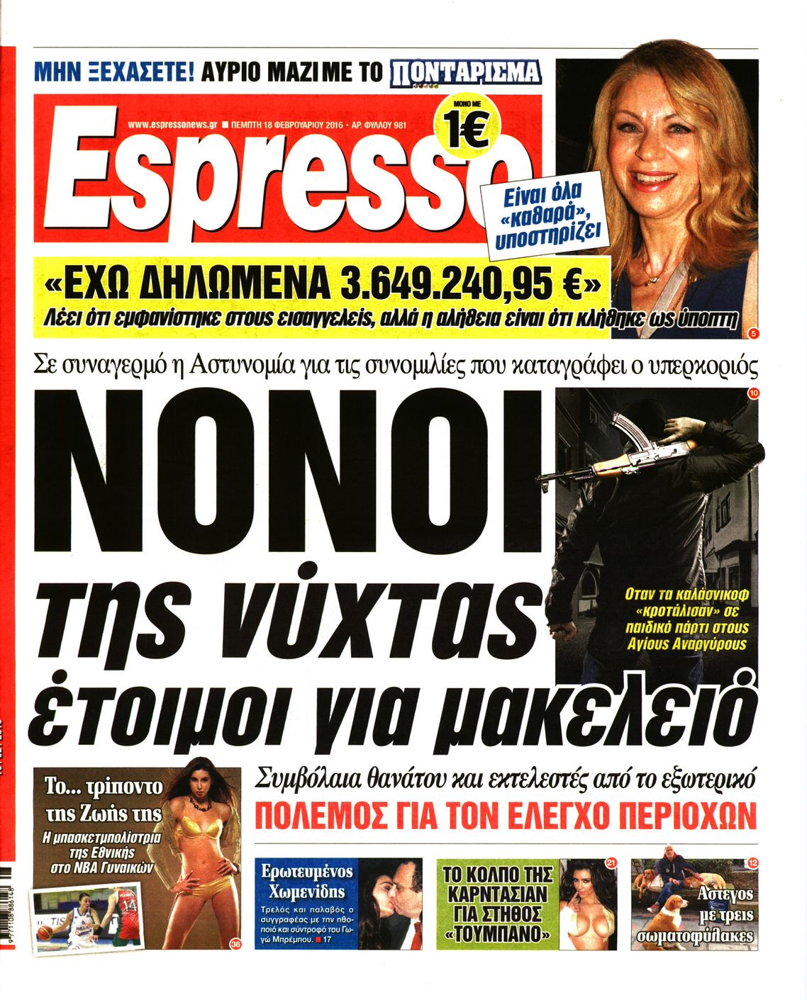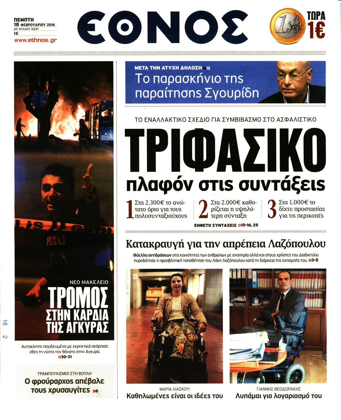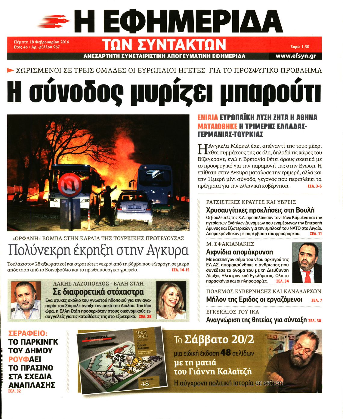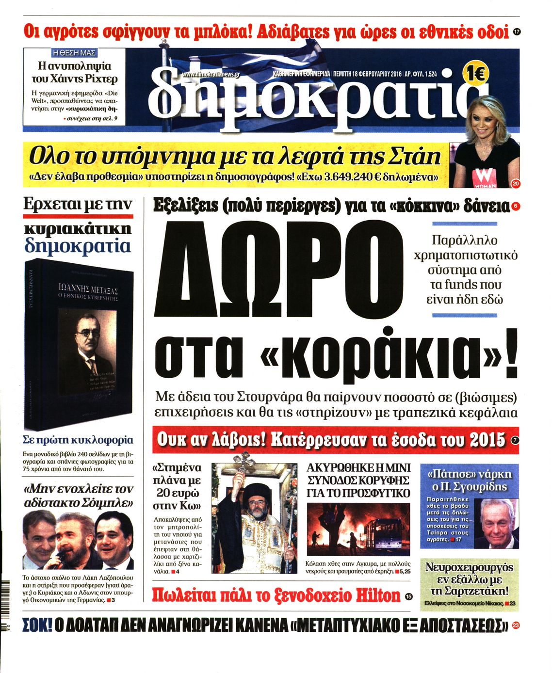 Οι πολιτικές εφημερίδες 18/2/2016 Enikos Newsroom 06:11, Πέμπτη 18 Φεβρουαρίου 2016 Media Διαβάστε τα σημερινά πρωτοσέλιδα των πολιτικών εφημερίδων: ΠΟΛΙΤΙΚΕΣ ΕΦΗΜΕΡΙΔΕΣ ΠΡΩΤΟΣΕΛΙΔΑ Μοιράσου το: σχολίασε κι εσύ (0 σχόλια) Ακολουθήστε το enikos.gr στο Google News και μάθετε πρώτοι όλες τις ειδήσεις Δείτε όλες τις τελευταίες ειδήσεις από την Ελλάδα και τον Κόσμο στο enikos.gr Ειδήσεις Ροή Ειδήσεων 38 λεπτά πριν Μπλόκα: Οι αγρότες σηκώνουν τις μπάρες σε διόδια για τους εκδρομείς των Χριστουγέννων και μοιράζουν προϊόντα – Βίντεο 1 ώρα πριν Τσιάρας προς αγρότες: Τα μπλόκα και τα πείσματα δεν ωφελούν – Οι λύσεις περνούν μέσα από τον διάλογο 2 ώρες πριν Αρχεία Έπσταϊν: Οι συγκλονιστικές φωτογραφίες – Ο Μάικλ Τζάκσον, ο Μικ Τζάγκερ και ο Κέβιν Σπέισι ανάμεσα στους διάσημους που απεικονίζονται 3 ώρες πριν Νέες ταυτότητες: Μεγάλη αναμονή για ραντεβού στην Αττική – Τέλος τα ταξίδια εκτός Ελλάδος από τον Αύγουστο για όσους δεν έχουν αλλάξει 3 ώρες πριν Ινδία: Επτά ελέφαντες σκοτώθηκαν κατά τη σύγκρουση επιβατικού τρένου με κοπάδι 4 ώρες πριν Μία νέα «χρυσή» περίοδος αρχίζει για 3 ζώδια από σήμερα – «Μία αναπάντεχη ευκαιρία οδηγεί στην επιτυχία» 5 ώρες πριν Αγχώνεται για το χριστουγεννιάτικο δώρο που πήρε στην πλούσια σύντροφό του – «Φοβάμαι πως θα το βρει φθηνιάρικο, φοράει βραχιόλια Cartier» 3 ώρες πριν Διαιτολόγος αποκαλύπτει 9 πρωινές συνήθειες που «λιώνουν» το κοιλιακό λίπος – «Υποστηρίζουν την υγιεινή απώλεια βάρους» 3 ώρες πριν Οι 7 φράσεις που δεν λένε ποτέ οι συναισθηματικά έξυπνοι άνθρωποι κατά τη διάρκεια ενός καβγά 3 λεπτά πριν Βέλγιο: Άγνωστοι έριξαν κόκκινη μπογιά στο προξενείο της Πολωνίας στις Βρυξέλλες 10 λεπτά πριν Γρηγόρης Δημητριάδης: Χριστουγεννιάτικη συνάντηση με τα παιδιά της ΔΑΠ-ΝΔΦΚ και της ΟΝΝΕΔ 18 λεπτά πριν Στέφανος Παπαδόπουλος: Ξέσπασε σε κλάματα – «Θέλω να έρθει μπροστά μου και να μου πει ότι είμαι ψεύτης» 26 λεπτά πριν Η Realnews αυτής της Κυριακής (21/12/2025) 36 λεπτά πριν Πέτρου Ράλλη: Καρέ – καρέ η κλοπή αυτοκινήτου μέσα σε 2,5 λεπτά ENIKOS NETWORK Η αποχή από την αναπαραγωγή παρατείνει τη ζωή στα ζώα, σύμφωνα με μελέτη – Τι ισχύει για τους ανθρώπους; Σημαντικές επαφές στις ΗΠΑ είχε ο υπουργός Υγείας Άδωνις Γεωργιάδης MyHealth App: Τα στοιχεία για τον Προσωπικό Βοηθό Υγείας Πολίτη – Τι ερωτήματα έγιναν μέσα σε 7 ημέρες Χειμερινές εκπτώσεις 2026: Πρεμιέρα στις 12 Ιανουαρίου – Πόσο θα διαρκέσουν και τι πρέπει να γνωρίζουν οι καταναλωτές Χαρτογραφώντας το «σημείο χωρίς επιστροφή»: Για πρώτη φορά αποκαλύπτεται με λεπτομέρεια το ακανθώδες όριο της ατμόσφαιρας τ... Η Google καταργεί τη λειτουργία «dark web report» – Πώς θα μπορούν οι χρήστες να διαγράφουν τα δεδομένα τους περισσότερα 14:04 , Σάββατο 20 Δεκεμβρίου 2025 Η Realnews αυτής της Κυριακής (21/12/2025) Με τίτλο: «Ασπίδα προστασίας για την Ελλάδα» κυκλοφορεί, αυτήν την Κυριακή, η Realnews. Σημαντ... 12:53 , Σάββατο 20 Δεκεμβρίου 2025 Να μ’ αγαπάς: Το παρελθόν έρχεται στο φως – Καταιγιστικές εξελίξεις στα τελευταία επεισόδια του 2025 Ο Άγγελος αποκαλύπτεται, η Φωτεινή ανησυχεί για τον Λευτέρη και η Ζωή έρχεται αντιμέτωπη με το... 11:41 , Σάββατο 20 Δεκεμβρίου 2025 «Η αγάπη δεν χάνεται ποτέ»: Η μικρού μήκους ταινία κινουμένων σχεδίων που θέτει ερωτήματα για τη ζωή και τον θάνατο Ο θάνατος είναι ένα από τα πιο σκληρά θέματα που καλείται να διαχειριστεί κάποιος στη διάρκεια... 09:30 , Σάββατο 20 Δεκεμβρίου 2025 «Porto Leone: Στη γειτονιά με τα κόκκινα φανάρια» – Ο Χρόνης αποκαλύπτει σ