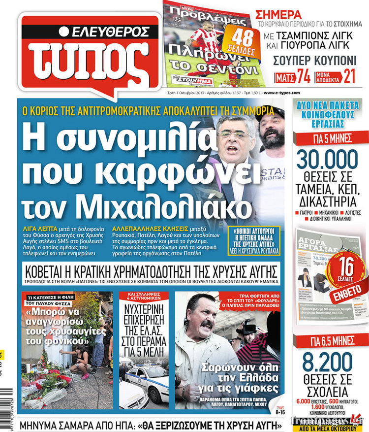 Οι πολιτικές εφημερίδες Enikos Newsroom 08:10, Τρίτη 01 Οκτωβρίου 2013 Media Οι πολιτικές εφημερίδες ΠΟΛΙΤΙΚΕΣ ΕΦΗΜΕΡΙΔΕΣ ΠΡΩΤΟΣΕΛΙΔΑ Μοιράσου το: σχολίασε κι εσύ (0 σχόλια) Ακολουθήστε το enikos.gr στο Google News και μάθετε πρώτοι όλες τις ειδήσεις Δείτε όλες τις τελευταίες ειδήσεις από την Ελλάδα και τον Κόσμο στο enikos.gr Ειδήσεις Ροή Ειδήσεων 1 ώρα πριν Αγρότες από το μπλόκο Νίκαιας κλείνουν τη Δευτέρα τις σήραγγες των Τεμπών για τα φορτηγά – Τι αποφάσισαν 5 ώρες πριν Μητσοτάκης σε αγρότες: Είμαστε ανοιχτοί στον διάλογο, αλλά όχι στο παράλογο – Η διεκδίκηση αιτημάτων οφείλει να γίνεται με σεβασμό στο κοινωνικό σύνολο 4 ώρες πριν Κηφισιά: Δύο συλλήψεις για ληστεία με λεία 180.000 ευρώ – Βίντεο ντοκουμέντα από τη δράση των συλληφθέντων 59 λεπτά πριν Ζελένσκι: Τάχθηκε σήμερα υπέρ της διεξαγωγής ευρύτερων διαβουλεύσεων με Ευρωπαίους εταίρους 2 ώρες πριν Θεσσαλονίκη: Με Αγιοβασίληδες γέμισε ο Θερμαϊκός στο 5ο Santa SUP 5 ώρες πριν Τα άστρα ευνοούν σκανδαλωδώς 4 ζώδια – «Εμφανίζονται ξαφνικά ευκαιρίες γιατί αποφασίζετε να αφήσετε πίσω το παρελθόν» 5 ώρες πριν Προπονήτρια γυμναστικής που έχασε 9 κιλά αποκαλύπτει: «Αυτοί είναι οι 5 παράγοντες που εμποδίζουν την απώλεια βάρους» 3 ώρες πριν Οι άνθρωποι που στρώνουν το κρεβάτι τους κάθε πρωί, διαθέτουν αυτές τις 8 κρυφές δυνάμεις 1 ημέρα πριν Enerwave: Το νέο «ρεύμα» στη λιανική ενέργειας που αλλάζει την εμπειρία του καταναλωτή 10 λεπτά πριν Αγρότες: Ανοιχτός ο Προμαχώνας για όλα τα οχήματα την Παραμονή και την ημέρα των Χριστουγέννων 15 λεπτά πριν Βελόπουλος: Ο πρωθυπουργός επαναλαμβάνει συνεχώς τα ίδια ψέματα 23 λεπτά πριν Μια νύχτα μόνο: Η Αρετή και ο Οδυσσέας έρχονται και πάλι κοντά 30 λεπτά πριν Ένα πλάσμα στα βάθη της θάλασσας απορροφά άνθρακα από την ατμόσφαιρα – «Δεν είχαμε ιδέα για την ύπαρξή του» 30 λεπτά πριν Στο «μικροσκόπιο» των Αρχών ο αγροτοσυνδικαλιστής Κωνσταντίνος Ανεστίδης – Υπό διερεύνηση για επιδοτήσεις 122.000 ευρώ ENIKOS NETWORK Ο εγκέφαλός μας ξεπερνά ακόμα σε εξυπνάδα το ΑΙ – Ποιο είναι αυτό στο οποίο είμαστε καλύτεροι Φοράτε ψηλοτάκουνα παπούτσια; Ποδίατροι συμβουλεύουν πόσο ψηλά επιτρέπεται να είναι και πώς να τα επιλέξετε IRIS: Διπλασιάζεται το όριο μεταφοράς χρημάτων μεταξύ ιδιωτών – Οι νέες αλλαγές και πότε θα εφαρμοστούν Η επόμενη ημέρα για τις ελληνικές τράπεζες -Τι λένε κορυφαία στελέχη του κλάδου Χαρτογραφώντας το «σημείο χωρίς επιστροφή»: Για πρώτη φορά αποκαλύπτεται με λεπτομέρεια το ακανθώδες όριο της ατμόσφαιρας τ... Η Google καταργεί τη λειτουργία «dark web report» – Πώς θα μπορούν οι χρήστες να διαγράφουν τα δεδομένα τους περισσότερα 15:08 , Κυριακή 21 Δεκεμβρίου 2025 Μια νύχτα μόνο: Η Αρετή και ο Οδυσσέας έρχονται και πάλι κοντά Το νέο επεισόδιο της δραματικής σειράς του MEGA «Μια νύχτα μόνο», θα προβληθεί απόψε Κυριακή 2... 14:24 , Κυριακή 21 Δεκεμβρίου 2025 IQ 160: Ο φάκελος με το τεστ πατρότητας ανοίγει, απόψε στις 21:00 στο Star Ανατρεπτικό το νέο διπλό επεισόδιο της σειράς “IQ 160” στις 21:00 στο Star. Ο Τηλέ... 09:43 , Κυριακή 21 Δεκεμβρίου 2025 Το λάθος στην ταινία Die Hard που άφησε άναυδους τους θαυμαστές του Μπρους Γουίλις Ένας φανατικός των ταινιών άφησε άναυδους τους θαυμαστές του Die Hard, επισημαίνοντας τρία βασ... 08:13 , Κυριακή 21 Δεκεμβρίου 2025 Άγιος έρωτας: Ένας καταστροφικός σεισμός χτυπά τη Στέρνα Καταιγιστικές είναι οι εξελίξεις στα δυο τελευταία, συγκλονιστικά επεισόδια του 2025 της σειρά... ΤΕΛΕΥΤΑΙΕΣ ΕΙΔΗΣΕΙΣ 10 λεπτά πριν Αγρότες: Ανοιχτ
