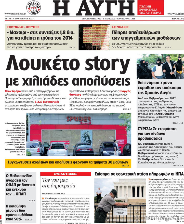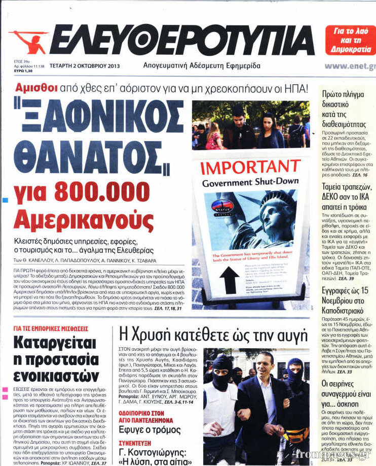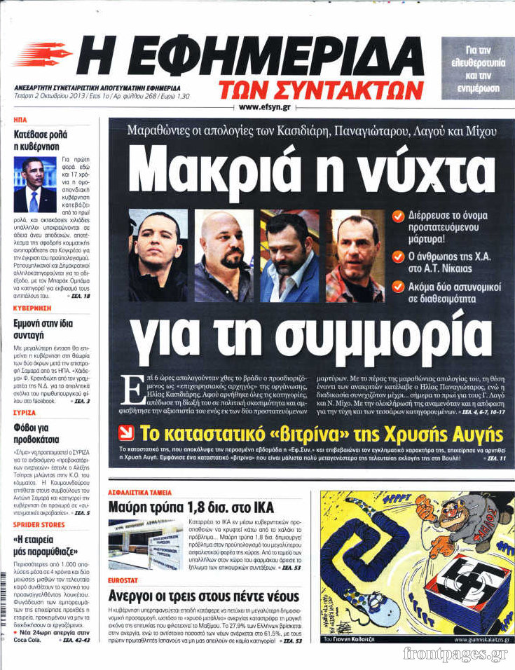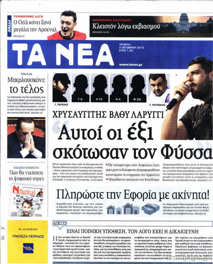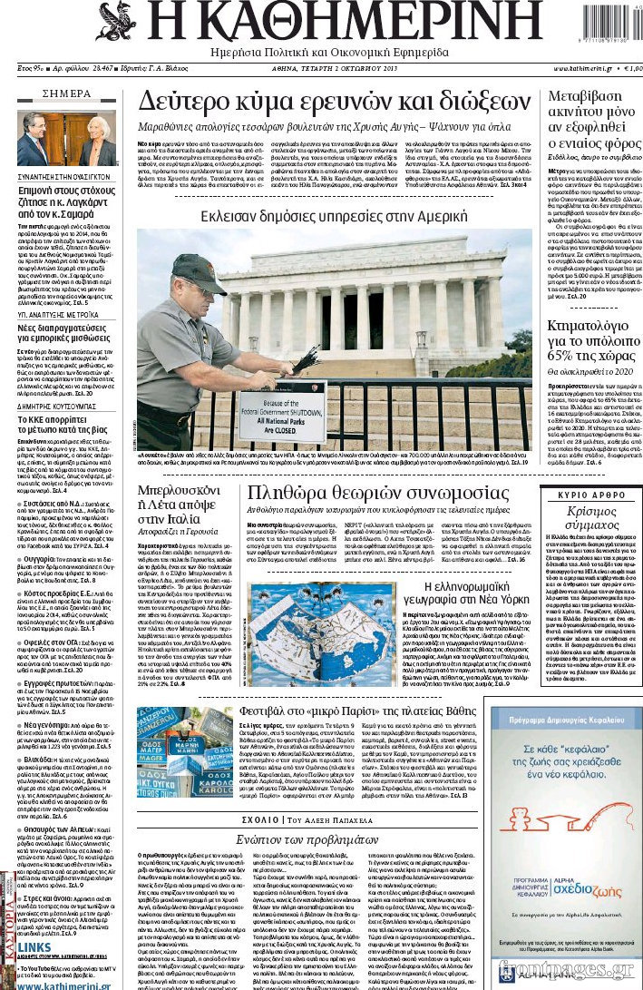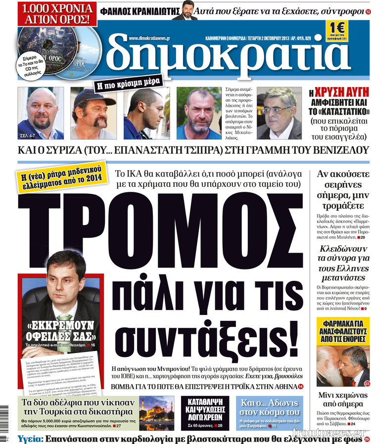 Οι πολιτικές εφημερίδες Enikos Newsroom 08:36, Τετάρτη 02 Οκτωβρίου 2013 Media Οι πολιτικές εφημερίδες ΕΦΗΜΕΡΙΔΕΣ ΠΟΛΙΤΙΚΕΣ ΕΦΗΜΕΡΙΔΕΣ ΠΡΩΤΟΣΕΛΙΔΑ Μοιράσου το: σχολίασε κι εσύ (0 σχόλια) Ακολουθήστε το enikos.gr στο Google News και μάθετε πρώτοι όλες τις ειδήσεις Δείτε όλες τις τελευταίες ειδήσεις από την Ελλάδα και τον Κόσμο στο enikos.gr Ειδήσεις Ροή Ειδήσεων 8 ώρες πριν Χριστούγεννα στα μπλόκα: Επιμένουν στις κινητοποιήσεις τους οι αγρότες – Ανοίγουν τα διόδια το Σαββατοκύριακο 9 ώρες πριν Ουκρανία: Η άνευ προηγουμένου επίθεση σε ρωσικό τάνκερ στη Μεσόγειο και το μήνυμα προς στον Πούτιν – Το «μακρύ χέρι» του Κιέβου 8 ώρες πριν Πούτιν: Τα μηνύματα σε Ευρώπη και ΝΑΤΟ από το μαραθώνιο «σόου» του – Η απαίτηση για «σεβασμό» και η ειρήνη «με τους όρους» της Μόσχας 7 ώρες πριν ΗΠΑ: Η κυβέρνηση του Ντόναλντ Τραμπ άρχισε να δημοσιοποιεί τα αρχεία Έπσταϊν 7 ώρες πριν Άνω Λιόσια: Πυροβολισμοί σε επιχείρηση με χαλιά – Εντοπίστηκαν 10 κάλυκες 53 λεπτά πριν Αυγά: Πόσα μπορείτε να τρώτε την ημέρα με ασφάλεια για μέγιστη πρόσληψη πρωτεΐνης 1 ώρα πριν Τα ζώδια σήμερα, Σάββατο 20 Δεκεμβρίου: Παρθένοι, το σύμπαν σας δίνει το κλειδί 8 ώρες πριν Ανακαλύφθηκαν αρχαία χρυσά νομίσματα 2.200 ετών που απεικονίζουν τον θεό Απόλλωνα – Η άγνωστη σύνδεση με τον Φίλιππο Β΄ της Μακεδονίας 9 ώρες πριν Ύπνος: Μια κρυφή κατάσταση του εγκεφάλου πριν από τον ύπνο μπορεί να είναι το “κλειδί” για υψηλή ευφυΐα και δημιουργικότητα 13 λεπτά πριν Κίριλ Ντμίτριεφ: Στις ΗΠΑ ο απεσταλμένος της Ρωσίας για συνομιλίες με τους ομολόγους του, Γουίτκοφ και Κούσνερ 21 λεπτά πριν ΔΕΔΔΗΕ: Διακοπές ρεύματος σήμερα (20/12) στην Αθήνα και σε άλλες 7 περιοχές της Αττικής 29 λεπτά πριν Κολομβία: Είκοσι χρόνια κάθειρξη σε πρώην ανώτερο αξιωματικό για 72 εκτελέσεις αμάχων 37 λεπτά πριν Οπτική ψευδαίσθηση: Μόνο αν είσαι ο Σέρλοκ Χολμς θα βρεις τον αριθμό «87» σε 7 δευτερόλεπτα 44 λεπτά πριν Σαρωτικοί οι έλεγχοι στους δρόμους ενόψει εορτών – Μπλόκα της τροχαίας σε κεντρικές αρτηρίες της Αττικής ENIKOS NETWORK Το ΕΚΑΒ τιμήθηκε από την Ακαδημία Αθηνών για τα 40 χρόνια προσφοράς του Έχετε πραγματικά μεγάλη καρδιά; 10 χαρακτηριστικά όσων έχουν καλοσύνη Αναστολή μέτρων αναγκαστικής εκτέλεσης για κτηνοτρόφους που πλήττονται από την ευλογιά των αιγοπροβάτων Πλήρης επάρκεια προϊόντων στις λαϊκές της Αττικής, παρά τις αγροτικές κινητοποιήσεις – Τι απαντούν οι πωλητές Χαρτογραφώντας το «σημείο χωρίς επιστροφή»: Για πρώτη φορά αποκαλύπτεται με λεπτομέρεια το ακανθώδες όριο της ατμόσφαιρας τ... Η Google καταργεί τη λειτουργία «dark web report» – Πώς θα μπορούν οι χρήστες να διαγράφουν τα δεδομένα τους περισσότερα 05:48 , Σάββατο 20 Δεκεμβρίου 2025 Οι οικονομικές εφημερίδες 20/12/2025 Διαβάστε τα πρωτοσέλιδα από τις οικονομικές εφημερίδες, σήμερα 20/12/2025. 05:43 , Σάββατο 20 Δεκεμβρίου 2025 Οι αθλητικές εφημερίδες 20/12/2025 Διαβάστε τα πρωτοσέλιδα από τις αθλητικές εφημερίδες, σήμερα 20/12/2025. 05:38 , Σάββατο 20 Δεκεμβρίου 2025 Οι πολιτικές εφημερίδες 20/12/2025 Διαβάστε τα πρωτοσέλιδα από τις πολιτικές εφημερίδες, σήμερα 20/12/2025. 04:20 , Σάββατο 20 Δεκεμβρίου 2025 Αγγελική Νικολούλη: Τα συλλυπητήρια για την απώλεια της Ειρήνης Μαρινάκη Τα συλληπητήρια στον πρόεδρο του Mega, τον Βαγγέλη Μαρινάκη, για την απώλεια της μητέρας του Ε... ΤΕΛΕΥΤΑΙΕΣ ΕΙΔΗΣΕΙΣ 13 λεπτά πριν Κίριλ Ντμίτριεφ: Στις ΗΠΑ ο απεσταλμένος της Ρωσίας... 21 λεπτά πριν ΔΕΔΔΗΕ: Διακοπές ρεύματος σήμερα (20/12) στην Αθήνα και... 29 λεπτά πριν Κολομβία: 