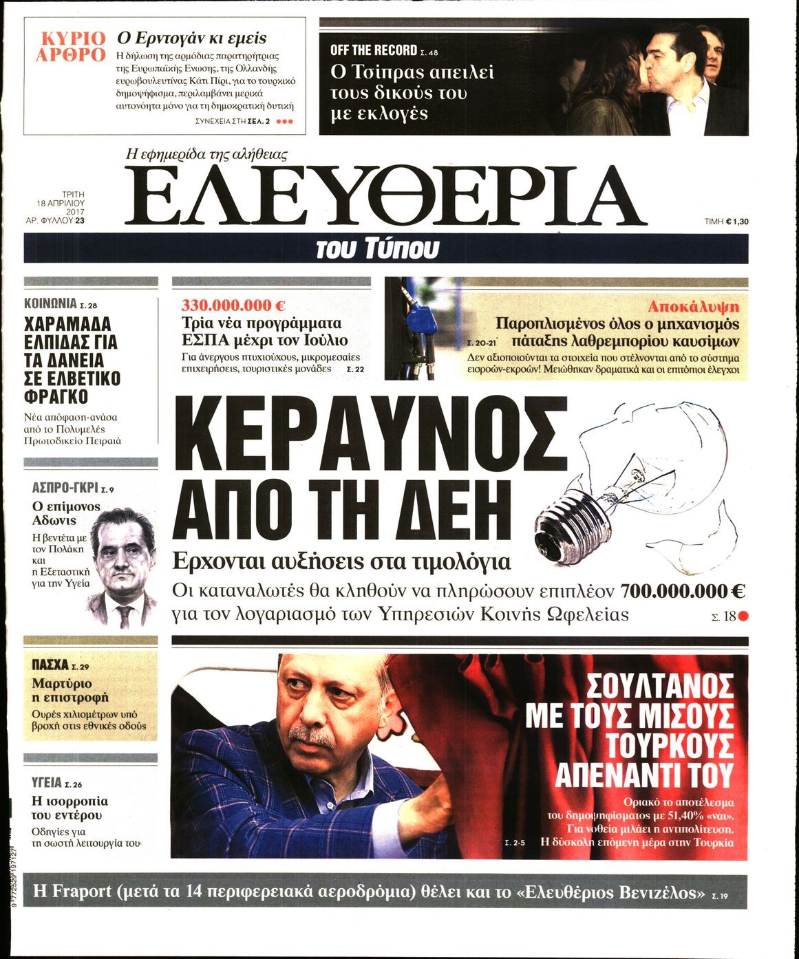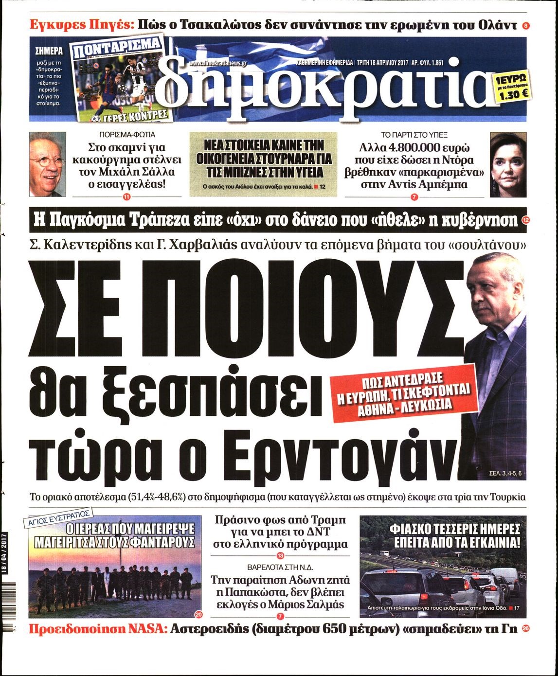 Οι πολιτικές εφημερίδες 18/4/2017 Enikos Newsroom 07:02, Τρίτη 18 Απριλίου 2017 Media Διαβάστε τα σημερινά πρωτοσέλιδα των πολιτικών εφημερίδων: ΠΟΛΙΤΙΚΕΣ ΕΦΗΜΕΡΙΔΕΣ ΠΡΩΤΟΣΕΛΙΔΑ Μοιράσου το: σχολίασε κι εσύ (0 σχόλια) Ακολουθήστε το enikos.gr στο Google News και μάθετε πρώτοι όλες τις ειδήσεις Δείτε όλες τις τελευταίες ειδήσεις από την Ελλάδα και τον Κόσμο στο enikos.gr Ειδήσεις Ροή Ειδήσεων 6 ώρες πριν Εκτός ευρωομάδας ΣΥΡΙΖΑ ο Νίκος Παππάς μετά την επίθεση στον δημοσιογράφο Νίκο Γιαννόπουλο – Η μήνυση και οι νέες δηλώσεις 6 ώρες πριν «Αγριεύουν» οι αγρότες: «Δεν συντρέχει λόγος συνάντησης με τον πρωθυπουργό» – Ώρα αποφάσεων στη σύσκεψη της Πέμπτης 6 ώρες πριν Κυψέλη: Χωρίς την οικογένειά της δίπλα της απολογήθηκε η 16χρονη – «Της είχε επιτεθεί κάποιος για να την βιάσει, φοβήθηκε και κυκλοφορούσε με μαχαίρι» 6 ώρες πριν Politico: Το πρόβλημα της Ευρώπης δεν είναι το Βέλγιο αλλά ο Ντόναλντ Τραμπ 8 ώρες πριν Αλεξανδρούπολη: Πολυοργανική ανεπάρκεια λόγω υποσιτισμού η αιτία θανάτου του 3χρονου αγοριού 6 ώρες πριν Μυστήριο με τεράστιες κυκλικές πέτρες 200 κιλών – Ανακαλύφθηκαν τυχαία κατά τη διάρκεια οδικών έργων και κανείς δεν ξέρει από πού προέρχονται 7 ώρες πριν Ύπνος: Ειδικός εξηγεί τον πραγματικό λόγο που ξυπνάτε στις 4 τα ξημερώματα – Ο ρόλος των ορμονών και του κιρκάδιου ρυθμού 8 ώρες πριν Αριθμολογία: Οι άνθρωποι που έχουν γεννηθεί αυτές τις 4 ημερομηνίες, είναι τρυφεροί και αγαπούν ανιδιοτελώς 20 ώρες πριν 20 χρόνια τα Χριστούγεννα ξεκινούν στα Public με μεγάλη ποικιλία σε δώρα! 3 λεπτά πριν Αυστραλία: Κυβερνητική δέσμευση για αυστηρότερα μέτρα κατά της υποκίνησης μίσους 19 λεπτά πριν Ντόναλντ Τραμπ: Παρουσίασε τα επιτεύγματα της διακυβέρνησής του – Σκληρή κριτική στον Τζο Μπάιντεν 34 λεπτά πριν Κτηνοτρόφοι: Με δάκρυα στα μάτια ζουν τον εφιάλτη των άδειων στάβλων – «Καταστράφηκαν οι ζωές μας» 48 λεπτά πριν Νέο αμερικανικό πλήγμα σε σκάφος που φέρεται να μετέφερε ναρκωτικά στον Ειρηνικό – Τέσσερις νεκροί 1 ώρα πριν Αλ Τσαντίρι Νιουζ: «Λύγισε» ο Δημήτρης Λάλος για τον Δημήτρη Ήμελλο – «Τον μνημονεύω, να ‘ναι καλά εκεί που είναι» ENIKOS NETWORK Αϋπνία: Το κόλπο που θα σας βοηθήσει να κοιμηθείτε απόψε – Είναι απλό και έχει αποτέλεσμα 2,6 εκατομμύρια πολίτες έχουν ήδη εμβολιαστεί κατά της γρίπης ΕΛΣΤΑΤ: Τι δείχνουν τα νέα στοιχεία για τις ηλεκτρονικές παραγγελίες των επιχειρήσεων ΚΕΠΕ: Οι 3 διακριτές συμβολές των ΜμΕ και της μεταποίησης στην ελληνική οικονομία Χαρτογραφώντας το «σημείο χωρίς επιστροφή»: Για πρώτη φορά αποκαλύπτεται με λεπτομέρεια το ακανθώδες όριο της ατμόσφαιρας τ... Η Google καταργεί τη λειτουργία «dark web report» – Πώς θα μπορούν οι χρήστες να διαγράφουν τα δεδομένα τους περισσότερα 02:30 , Πέμπτη 18 Δεκεμβρίου 2025 Αλ Τσαντίρι Νιουζ: Η κόρη της Πάολα στο κοινό – Η ατάκα Λαζόπουλου που την έκανε να «κοκκινήσει» Γιορτινή διάθεση και ευχάριστες στιγμές γέμισε η αποψινή, τελευταία για το 2025, εκπομπή του «... 22:24 , Τετάρτη 17 Δεκεμβρίου 2025 Το Σπίτι Δίπλα Στο Ποτάμι: Σε κίνδυνο η υγεία του Απόστολου – Τι θα δούμε απόψε “Το Σπίτι Δίπλα στο Ποτάμι” ξετυλίγει το νήμα της ζωής των πέντε αδελφών με καταισ... 21:14 , Τετάρτη 17 Δεκεμβρίου 2025 Παιχνίδια Εκδίκησης: Θα καταφέρει ο Χρήστος να κλονίσει την εμπιστοσύνη της Μάγιας απέναντι στον Άγη; Τα «Παιχνίδια Εκδίκησης» έρχονται απόψε στις 22:30, στον Αντ1, με το τελευταίο επεισόδιο της χ... 20:57 , Τετάρτη 17 Δεκεμβρίου 2025 Άγιος Έρωτας: Η Χλόη καταθέτει εναν