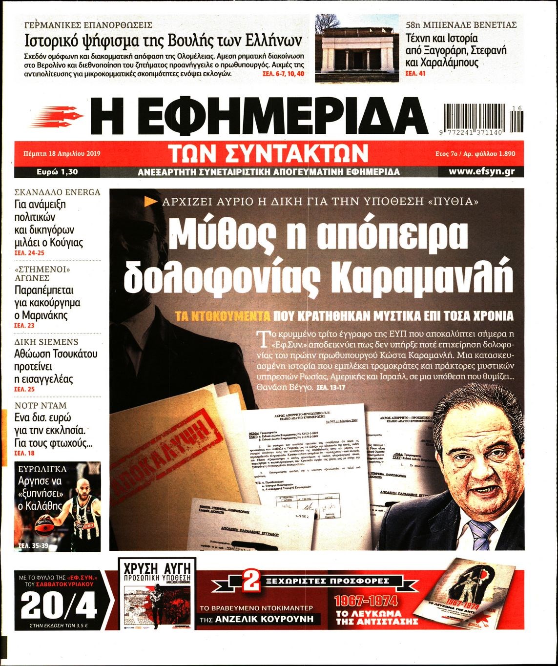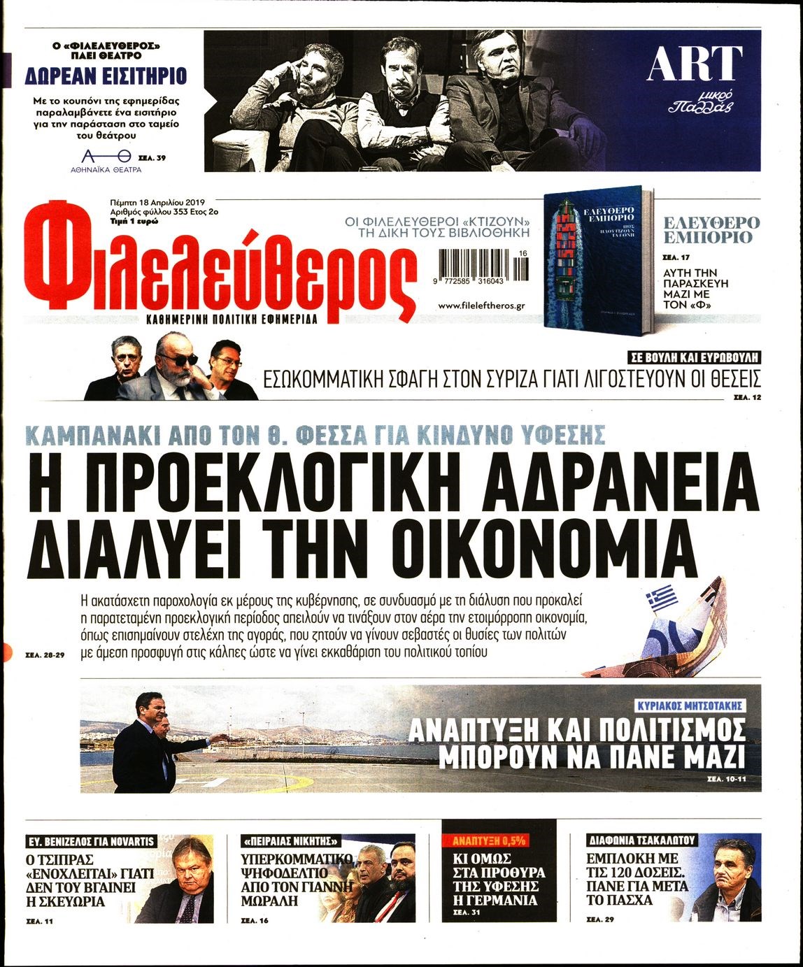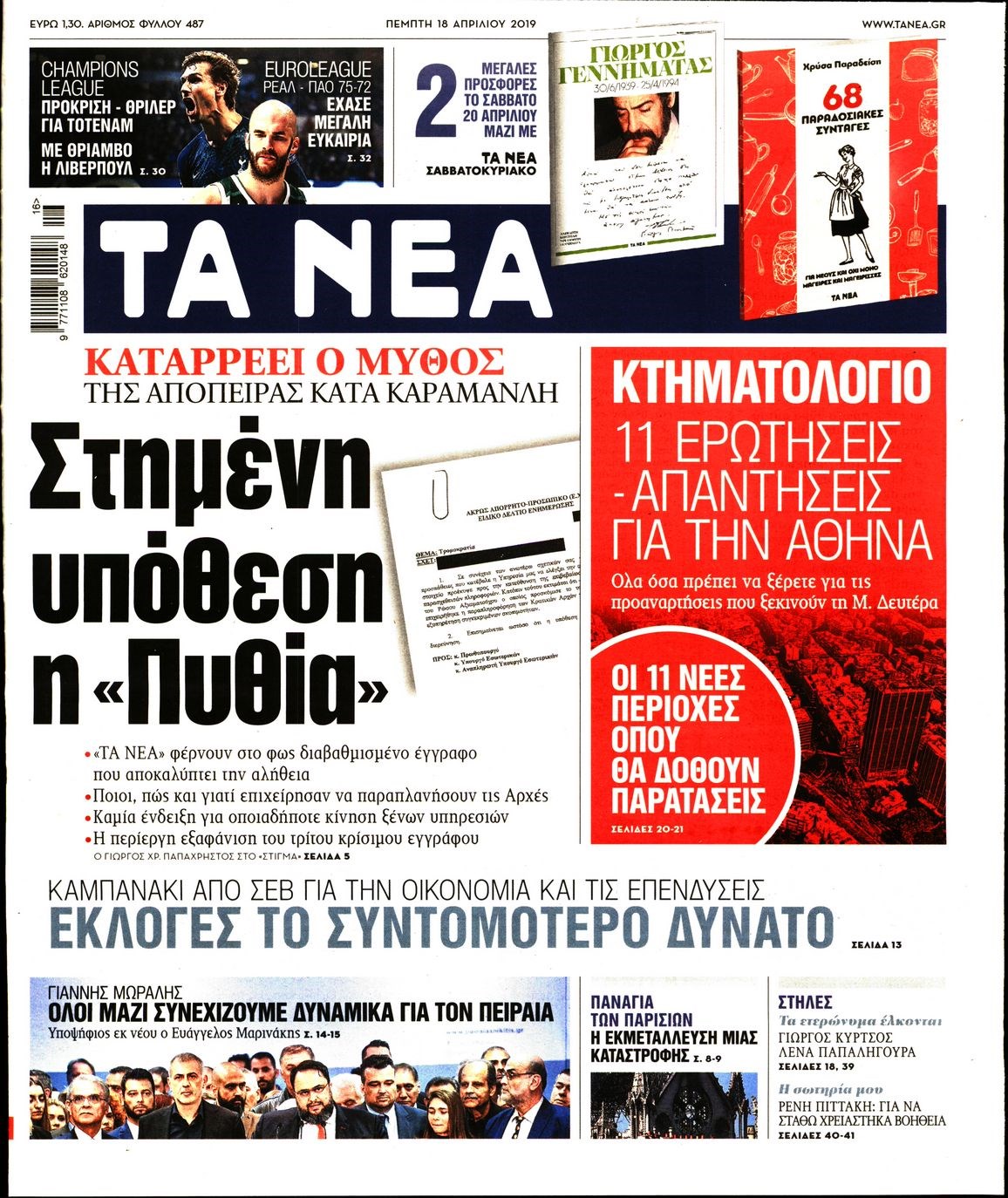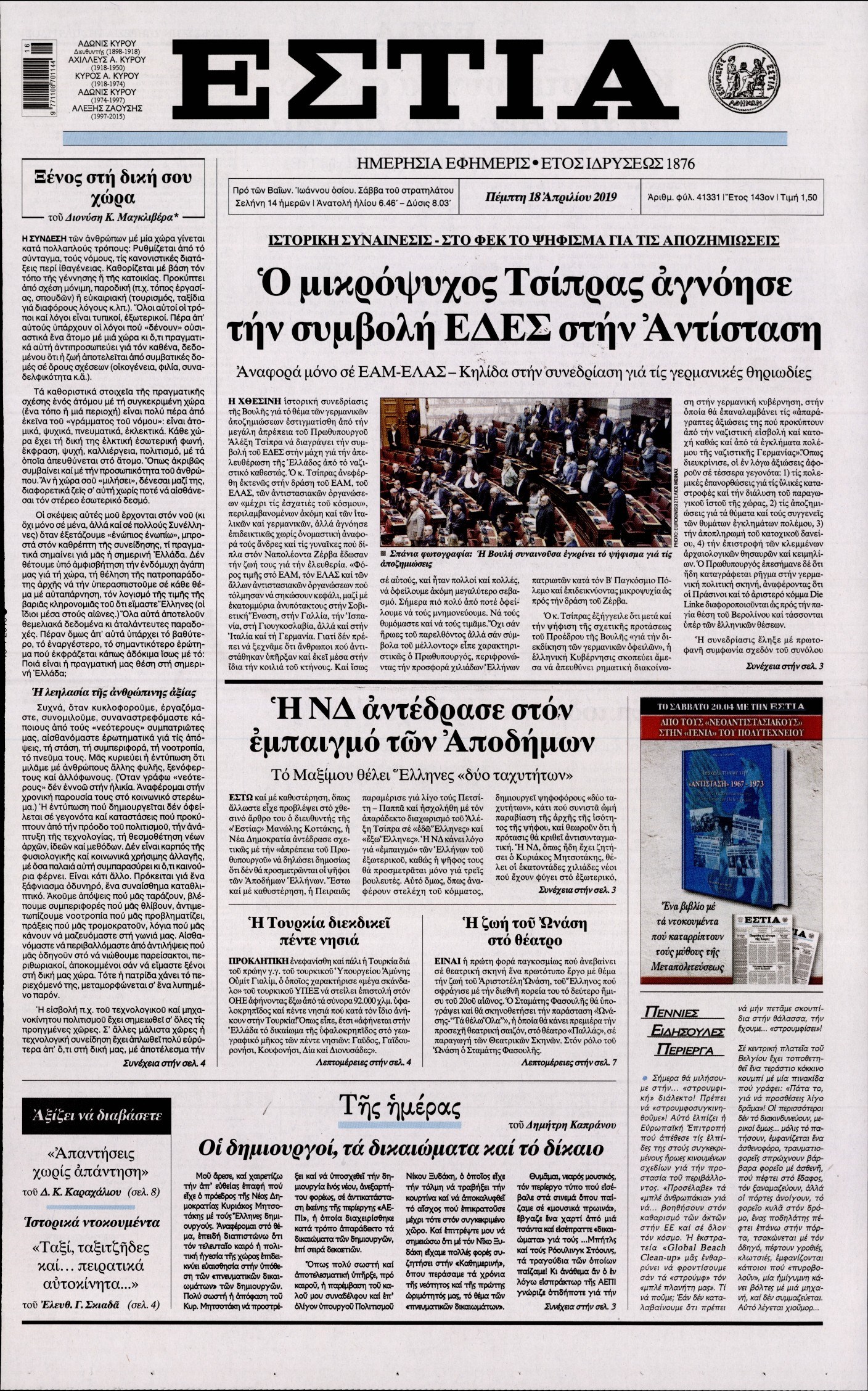 Οι πολιτικές εφημερίδες 18/4/2019 Enikos Newsroom 06:49, Πέμπτη 18 Απριλίου 2019 Media Διαβάστε τα πρωτοσέλιδα των πολιτικών εφημερίδων: ΠΟΛΙΤΙΚΕΣ ΕΦΗΜΕΡΙΔΕΣ ΠΡΩΤΟΣΕΛΙΔΑ Μοιράσου το: σχολίασε κι εσύ (0 σχόλια) Ακολουθήστε το enikos.gr στο Google News και μάθετε πρώτοι όλες τις ειδήσεις Δείτε όλες τις τελευταίες ειδήσεις από την Ελλάδα και τον Κόσμο στο enikos.gr Ειδήσεις Ροή Ειδήσεων 4 ώρες πριν Υπόθεση Έπσταϊν: Το Υπουργείο Δικαιοσύνης δημοσιοποίησε μια σειρά από εξαιρετικά επεξεργασμένα αρχεία – «Λείπουν τα πιο σημαντικά έγγραφα», λένε οι Δημοκρατικοί 43 λεπτά πριν Γιορτές με μπλόκα για τους αγρότες: Ανοίγουν διόδια και μοιράζουν προϊόντα στους ταξιδιώτες 1 ώρα πριν Εξαφάνιση 33χρονου γιατρού στην Κρήτη: «Άναψα τα φώτα, τρόμαξε και άρχισε να τρέχει στα χωράφια» – Η τελευταία διαδρομή και η μαρτυρία «κλειδί» 3 ώρες πριν Ο «χάρτης» με τις αυξήσεις και τις φοροελαφρύνσεις του 2026 – Ποιοι και πόσα κερδίζουν 59 λεπτά πριν Τα αρχεία του Έπσταϊν αποκαλύπτουν φωτογραφία του έκπτωτου πρίγκιπα Άντριου – Είναι ξαπλωμένος στην αγκαλιά 5 γυναικών 1 ώρα πριν Μία νέα «χρυσή» περίοδος αρχίζει για 3 ζώδια από σήμερα – «Μία αναπάντεχη ευκαιρία οδηγεί στην επιτυχία» 5 ώρες πριν Αυγά: Πόσα μπορείτε να τρώτε την ημέρα με ασφάλεια για μέγιστη πρόσληψη πρωτεΐνης 3 ώρες πριν Αρχαιολόγοι ανακάλυψαν σε χωράφι απεικόνιση 600 ετών ενός Αγίου – Τα στοιχεία που δείχνουν ότι μαρτύρησε 2 ώρες πριν Αγχώνεται για το χριστουγεννιάτικο δώρο που πήρε στην πλούσια σύντροφό του – «Φοβάμαι πως θα το βρει φθηνιάρικο, φοράει βραχιόλια Cartier» 8 λεπτά πριν Νέες ταυτότητες: Μεγάλη αναμονή για ραντεβού στην Αττική – Τέλος τα ταξίδια εκτός Ελλάδος από τον Αύγουστο για όσους δεν έχουν αλλάξει 17 λεπτά πριν Οι 7 φράσεις που δεν λένε ποτέ οι συναισθηματικά έξυπνοι άνθρωποι κατά τη διάρκεια ενός καβγά 20 λεπτά πριν Τηλεθέαση (19/12): Ανατροπές και πρωτιές στην πρωινή ζώνη 28 λεπτά πριν Πώς η κλιματική αλλαγή επηρεάζει εγκύους και βρέφη – Οι επιπτώσεις των υψηλών θερμοκρασιών 36 λεπτά πριν e-ΕΦΚΑ και ΔΥΠΑ: Οι πληρωμές από 22 έως 24 Δεκεμβρίου – Ποιοι θα δουν χρήματα στους λογαριασμούς τους ENIKOS NETWORK Είστε μόνιμα απρόσεκτοι; 3 σημάδια που δείχνουν ότι μπορεί να είναι σύμπτωμα πάθησης Πόσα κιλά παίρνουμε πραγματικά τα Χριστούγεννα, σύμφωνα με την επιστήμη – Πώς να το αποτρέψουμε; Επίδομα παιδιού: Τι αλλάζει από το 2026 – Το όφελος από τις φορολογικές ελαφρύνσεις Mega χριστουγεννιάτικη φορολοταρία: «Κλείδωσε» η ημερομηνία για την κλήρωση – Ερωτήσεις και απαντήσεις Χαρτογραφώντας το «σημείο χωρίς επιστροφή»: Για πρώτη φορά αποκαλύπτεται με λεπτομέρεια το ακανθώδες όριο της ατμόσφαιρας τ... Η Google καταργεί τη λειτουργία «dark web report» – Πώς θα μπορούν οι χρήστες να διαγράφουν τα δεδομένα τους περισσότερα 09:30 , Σάββατο 20 Δεκεμβρίου 2025 «Porto Leone: Στη γειτονιά με τα κόκκινα φανάρια» – Ο Χρόνης αποκαλύπτει στην Αλεξάνδρα το μυστικό για το παιδί της Λένας Η μεγάλη δραματική σειρά του Apha «Porto Leone: Στη γειτονιά με τα κόκκινα φανάρια» μας μεταφέ... 08:14 , Σάββατο 20 Δεκεμβρίου 2025 Τρομεροί γονείς: Η Μαρία Καβογιάννη εισβάλλει στο σπίτι της οικογένειας Στεφανίδη Όσα θα δούμε στο νέο διπλό επεισόδιο της σειράς «Τρομεροί γονείς», σήμερα Σάββατο 20 Δεκεμβρίο... 05:48 , Σάββατο 20 Δεκεμβρίου 2025 Οι οικονομικές εφημερίδες 20/12/2025 Διαβάστε τα πρωτοσέλιδα από τις οικονομικές εφημερίδες, σήμερα 20/12/2025. 05:43 , Σάββατο 20 Δεκεμβρίου 2025 Οι αθλητικές εφημερίδες 20/12/2025 Διαβάστε 