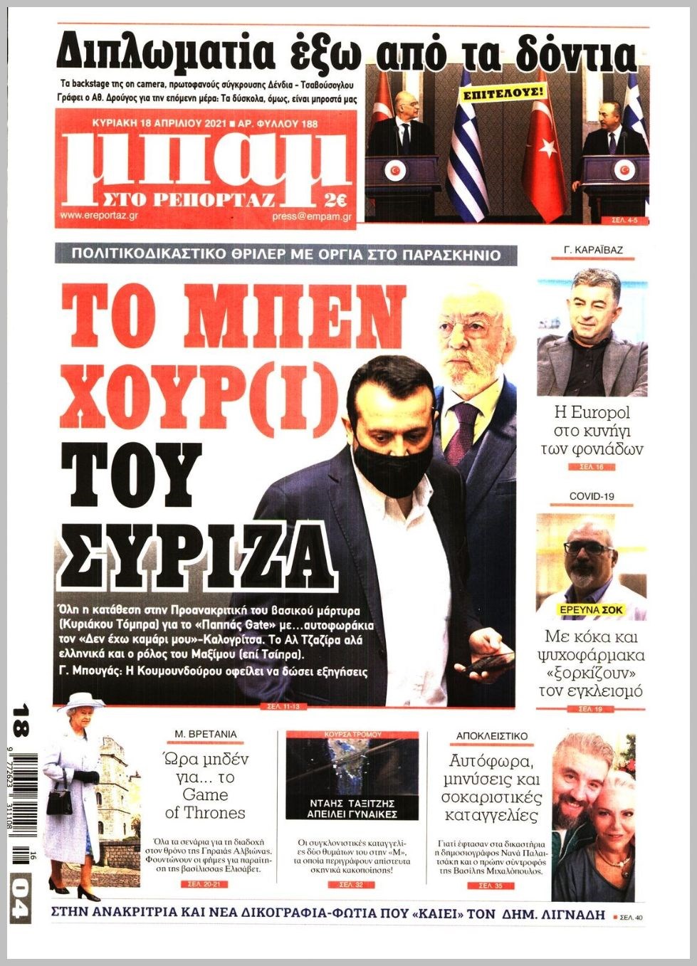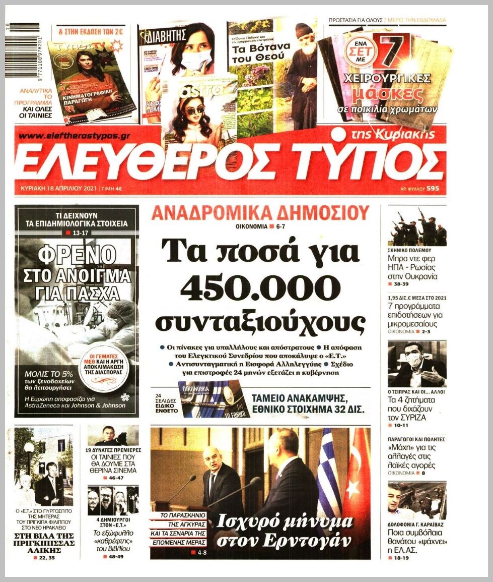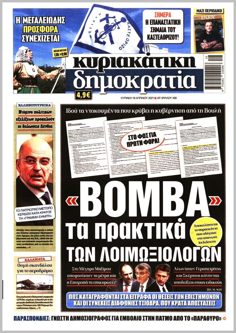 Οι πολιτικές εφημερίδες 18/4/2021 Διονύσης Νίκκας 07:20, Κυριακή 18 Απριλίου 2021 Media Διαβάστε τα πρωτοσέλιδα των πολιτικών εφημερίδων… ΕΦΗΜΕΡΙΔΕΣ ΠΡΩΤΟΣΕΛΙΔΑ Μοιράσου το: σχολίασε κι εσύ (0 σχόλια) Ακολουθήστε το enikos.gr στο Google News και μάθετε πρώτοι όλες τις ειδήσεις Δείτε όλες τις τελευταίες ειδήσεις από την Ελλάδα και τον Κόσμο στο enikos.gr Ειδήσεις Ροή Ειδήσεων 53 λεπτά πριν Διάλογοι-σοκ από το κύκλωμα που διακινούσε ναρκωτικά σε σχολεία – «Αν δεν είσαι εκεί σε 5 λεπτά, θα φας πολύ ξύλο μπρο» 2 ώρες πριν Αγρότες από το μπλόκο Νίκαιας κλείνουν τη Δευτέρα τις σήραγγες των Τεμπών για τα φορτηγά – Τι αποφάσισαν 5 ώρες πριν Κηφισιά: Δύο συλλήψεις για ληστεία με λεία 180.000 ευρώ – Βίντεο ντοκουμέντα από τη δράση των συλληφθέντων 2 ώρες πριν Ζελένσκι: Τάχθηκε σήμερα υπέρ της διεξαγωγής ευρύτερων διαβουλεύσεων με Ευρωπαίους εταίρους 3 ώρες πριν Θεσσαλονίκη: Με Αγιοβασίληδες γέμισε ο Θερμαϊκός στο 5ο Santa SUP 6 ώρες πριν Τα άστρα ευνοούν σκανδαλωδώς 4 ζώδια – «Εμφανίζονται ξαφνικά ευκαιρίες γιατί αποφασίζετε να αφήσετε πίσω το παρελθόν» 4 ώρες πριν Οι άνθρωποι που στρώνουν το κρεβάτι τους κάθε πρωί, διαθέτουν αυτές τις 8 κρυφές δυνάμεις 1 ώρα πριν Ένα πλάσμα στα βάθη της θάλασσας απορροφά άνθρακα από την ατμόσφαιρα – «Δεν είχαμε ιδέα για την ύπαρξή του» 1 ημέρα πριν Enerwave: Το νέο «ρεύμα» στη λιανική ενέργειας που αλλάζει την εμπειρία του καταναλωτή 5 δευτερόλεπτα πριν «Πλημμύρισε» με κόσμο η Ερμού ενόψει των Χριστουγέννων – Ουρές στα καταστήματα – ΦΩΤΟ και ΒΙΝΤΕΟ 9 λεπτά πριν Ολυμπιακός: Υπέταξε τον Κολοσσό στο ΣΕΦ με… σούπερ Ντόρσεϊ – Ντεμπούτο για τον Μόντε Μόρις 16 λεπτά πριν Πέθανε σε ηλικία 88 ετών η σπουδαία Ντόρα Γιαννακοπούλου 23 λεπτά πριν Αν ανήκετε σε ένα από αυτά τα 3 ζώδια, το 2026 θα είναι η χρονιά σας – «Η ζωή σας βελτιώνεται σε όλους τους τομείς» 31 λεπτά πριν Φάμελλος: Πάγια θέση του ΣΥΡΙΖΑ η επαναφορά 13ου και 14ου μισθού και 13ης σύνταξης ENIKOS NETWORK Ο εγκέφαλός μας ξεπερνά ακόμα σε εξυπνάδα το ΑΙ – Ποιο είναι αυτό στο οποίο είμαστε καλύτεροι Φοράτε ψηλοτάκουνα παπούτσια; Ποδίατροι συμβουλεύουν πόσο ψηλά επιτρέπεται να είναι και πώς να τα επιλέξετε ΕΚΤ: Προβλέπει χαμηλότερες τιμές ενέργειας και αποκλιμάκωση πληθωρισμού στην Ευρωζώνη το 2026 IRIS: Διπλασιάζεται το όριο μεταφοράς χρημάτων μεταξύ ιδιωτών – Οι νέες αλλαγές και πότε θα εφαρμοστούν Χαρτογραφώντας το «σημείο χωρίς επιστροφή»: Για πρώτη φορά αποκαλύπτεται με λεπτομέρεια το ακανθώδες όριο της ατμόσφαιρας τ... Η Google καταργεί τη λειτουργία «dark web report» – Πώς θα μπορούν οι χρήστες να διαγράφουν τα δεδομένα τους περισσότερα 15:08 , Κυριακή 21 Δεκεμβρίου 2025 Μια νύχτα μόνο: Η Αρετή και ο Οδυσσέας έρχονται και πάλι κοντά Το νέο επεισόδιο της δραματικής σειράς του MEGA «Μια νύχτα μόνο», θα προβληθεί απόψε Κυριακή 2... 14:24 , Κυριακή 21 Δεκεμβρίου 2025 IQ 160: Ο φάκελος με το τεστ πατρότητας ανοίγει, απόψε στις 21:00 στο Star Ανατρεπτικό το νέο διπλό επεισόδιο της σειράς “IQ 160” στις 21:00 στο Star. Ο Τηλέ... 09:43 , Κυριακή 21 Δεκεμβρίου 2025 Το λάθος στην ταινία Die Hard που άφησε άναυδους τους θαυμαστές του Μπρους Γουίλις Ένας φανατικός των ταινιών άφησε άναυδους τους θαυμαστές του Die Hard, επισημαίνοντας τρία βασ... 08:13 , Κυριακή 21 Δεκεμβρίου 2025 Άγιος έρωτας: Ένας καταστροφικός σεισμός χτυπά τη Στέρνα Καταιγιστικές είναι οι εξελίξεις στα δυο τελευταία, συγκλονιστικά επεισόδια του 2025 της σειρά... ΤΕΛΕΥΤΑΙΕΣ ΕΙΔΗΣΕΙΣ 9 λεπτά πριν Ολυμπιακός: Υπέταξε το