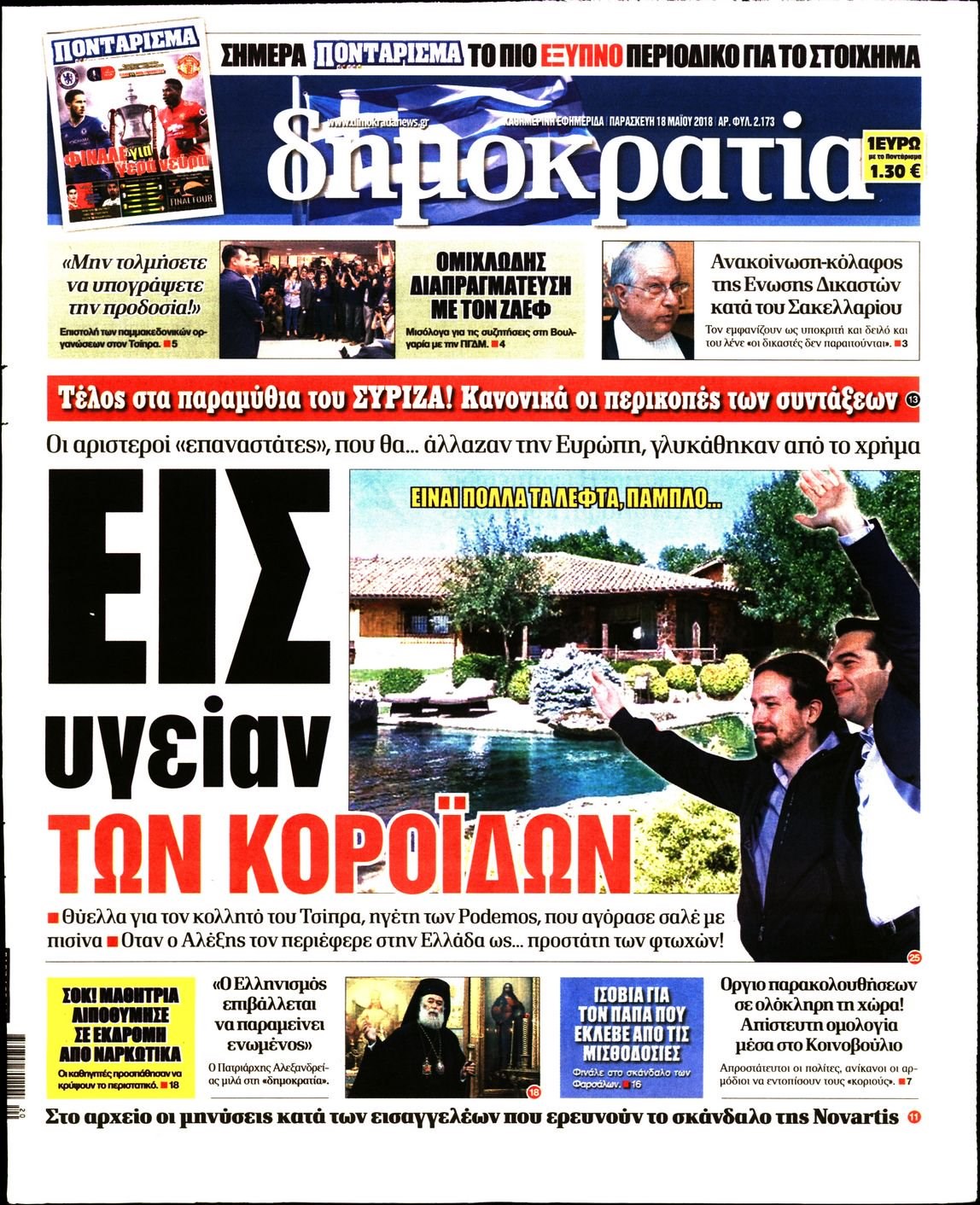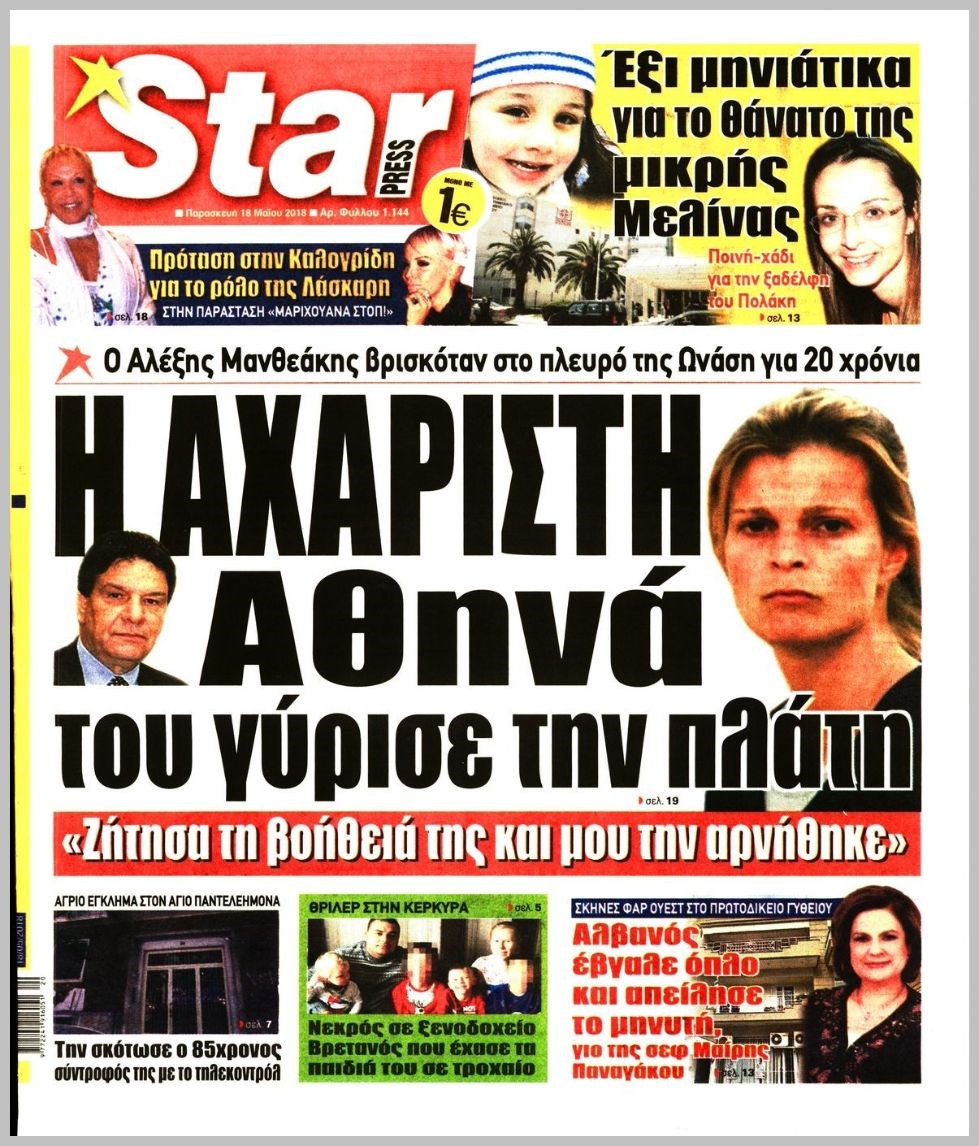 Οι πολιτικές εφημερίδες 18/5/2018 Κώστας Τεό 06:15, Παρασκευή 18 Μαΐου 2018 Media Διαβάστε τα σημερινά πρωτοσέλιδα των πολιτικών εφημερίδων: ΠΟΛΙΤΙΚΕΣ ΕΦΗΜΕΡΙΔΕΣ ΠΡΩΤΟΣΕΛΙΔΑ Μοιράσου το: σχολίασε κι εσύ (0 σχόλια) Ακολουθήστε το enikos.gr στο Google News και μάθετε πρώτοι όλες τις ειδήσεις Δείτε όλες τις τελευταίες ειδήσεις από την Ελλάδα και τον Κόσμο στο enikos.gr Ειδήσεις Ροή Ειδήσεων 2 ώρες πριν Γιορτές με μπλόκα για τους αγρότες: Ανοίγουν διόδια και μοιράζουν προϊόντα στους ταξιδιώτες 2 ώρες πριν Τα αρχεία του Έπσταϊν αποκαλύπτουν φωτογραφία του έκπτωτου πρίγκιπα Άντριου – Είναι ξαπλωμένος στην αγκαλιά 5 γυναικών 2 ώρες πριν Νέες ταυτότητες: Μεγάλη αναμονή για ραντεβού στην Αττική – Τέλος τα ταξίδια εκτός Ελλάδος από τον Αύγουστο για όσους δεν έχουν αλλάξει 3 ώρες πριν Εξαφάνιση 33χρονου γιατρού στην Κρήτη: «Άναψα τα φώτα, τρόμαξε και άρχισε να τρέχει στα χωράφια» – Η τελευταία διαδρομή και η μαρτυρία «κλειδί» 50 λεπτά πριν Ινδία: Επτά ελέφαντες σκοτώθηκαν κατά τη σύγκρουση επιβατικού τρένου με κοπάδι 3 ώρες πριν Μία νέα «χρυσή» περίοδος αρχίζει για 3 ζώδια από σήμερα – «Μία αναπάντεχη ευκαιρία οδηγεί στην επιτυχία» 5 ώρες πριν Αρχαιολόγοι ανακάλυψαν σε χωράφι απεικόνιση 600 ετών ενός Αγίου – Τα στοιχεία που δείχνουν ότι μαρτύρησε 4 ώρες πριν Αγχώνεται για το χριστουγεννιάτικο δώρο που πήρε στην πλούσια σύντροφό του – «Φοβάμαι πως θα το βρει φθηνιάρικο, φοράει βραχιόλια Cartier» 48 λεπτά πριν Διαιτολόγος αποκαλύπτει 9 πρωινές συνήθειες που «λιώνουν» το κοιλιακό λίπος – «Υποστηρίζουν την υγιεινή απώλεια βάρους» 4 λεπτά πριν Τσιάρας για αγρότες: Ικανοποιείται το αίτημα για αφορολόγητο πετρέλαιο στη μάνικα, πρόθεσή μας να μειωθεί ακόμη περισσότερο η τιμή στο ρεύμα 11 λεπτά πριν Η Ζιζέλ Μπούντχεν παντρεύτηκε τον δάσκαλο ζίου-ζίτσου, Χοακίμ Βαλέντε 18 λεπτά πριν Αρχεία Έπσταϊν: Οι συγκλονιστικές φωτογραφίες – Ο Μάικλ Τζάκσον, ο Μικ Τζάγκερ και ο Κέβιν Σπέισι ανάμεσα στους διάσημους που απεικονίζονται 27 λεπτά πριν Χρήστος Μάντακας: «Θα μπορούσα να είχα φύγει από τη ζωή, δεν μπορούσα να περπατήσω…» 34 λεπτά πριν Εντυπωσιακό βίντεο από «τσουνάμι» πάγου στη Σιβηρία – Πώς προκαλείται το σπάνιο φαινόμενο ENIKOS NETWORK Είστε μόνιμα απρόσεκτοι; 3 σημάδια που δείχνουν ότι μπορεί να είναι σύμπτωμα πάθησης Πόσα κιλά παίρνουμε πραγματικά τα Χριστούγεννα, σύμφωνα με την επιστήμη – Πώς να το αποτρέψουμε; Χρήστος Δήμας: Στα 2,5 εκατ. ευρώ την ημέρα το κόστος από το άνοιγμα των διοδίων από τους αγρότες – Θα αξιώσουν αποζημίωση ... Χριστούγεννα και Πρωτοχρονιά: Πώς αμείβονται όσοι εργαστούν Χαρτογραφώντας το «σημείο χωρίς επιστροφή»: Για πρώτη φορά αποκαλύπτεται με λεπτομέρεια το ακανθώδες όριο της ατμόσφαιρας τ... Η Google καταργεί τη λειτουργία «dark web report» – Πώς θα μπορούν οι χρήστες να διαγράφουν τα δεδομένα τους περισσότερα 11:41 , Σάββατο 20 Δεκεμβρίου 2025 «Η αγάπη δεν χάνεται ποτέ»: Η μικρού μήκους ταινία κινουμένων σχεδίων που θέτει ερωτήματα για τη ζωή και τον θάνατο Ο θάνατος είναι ένα από τα πιο σκληρά θέματα που καλείται να διαχειριστεί κάποιος στη διάρκεια... 09:30 , Σάββατο 20 Δεκεμβρίου 2025 «Porto Leone: Στη γειτονιά με τα κόκκινα φανάρια» – Ο Χρόνης αποκαλύπτει στην Αλεξάνδρα το μυστικό για το παιδί της Λένας Η μεγάλη δραματική σειρά του Apha «Porto Leone: Στη γειτονιά με τα κόκκινα φανάρια» μας μεταφέ... 08:14 , Σάββατο 20 Δεκεμβρίου 2025 Τρομεροί γονείς: Η Μαρία Καβογιάννη εισβάλλει στο σπίτι της οικ